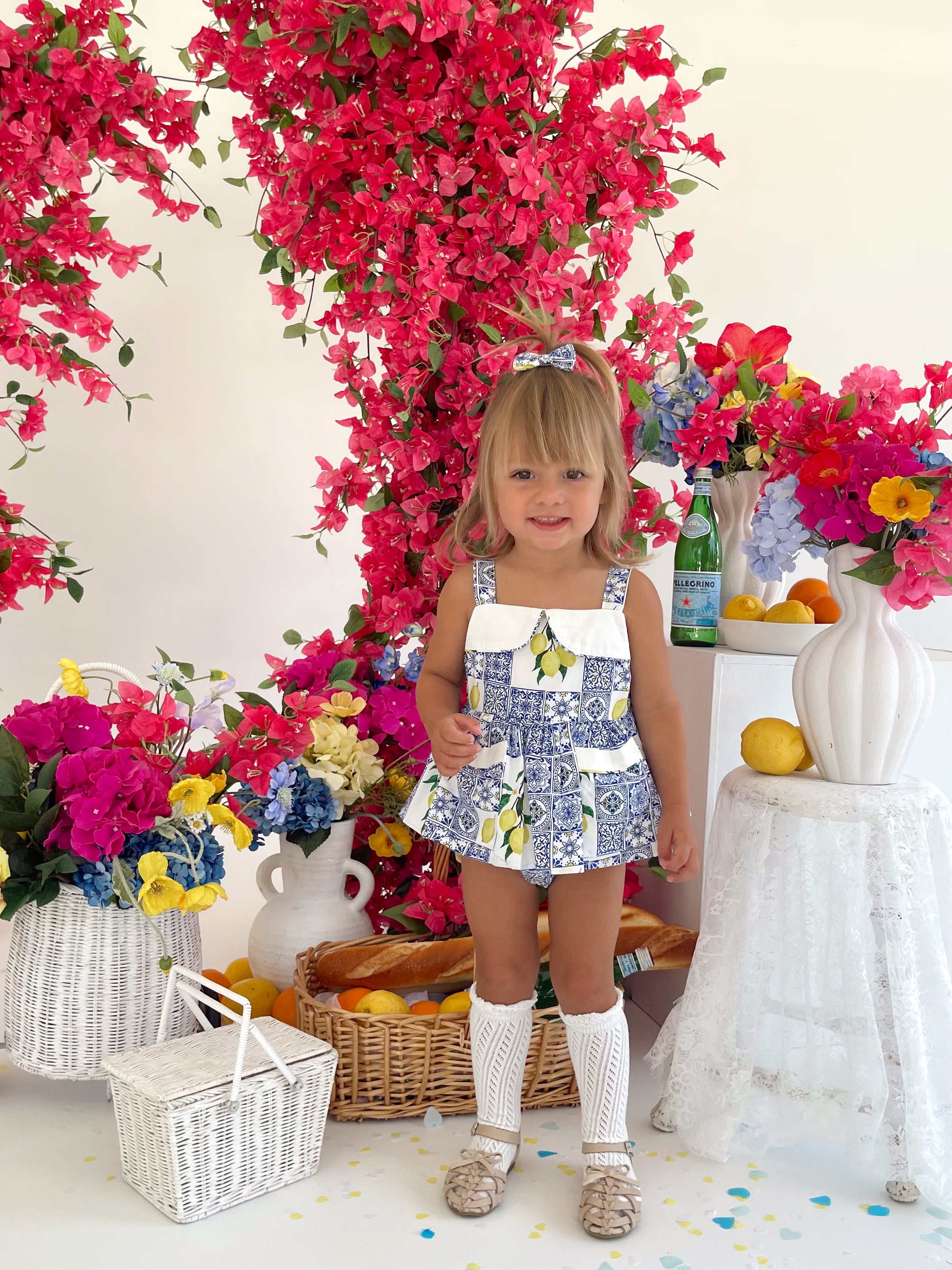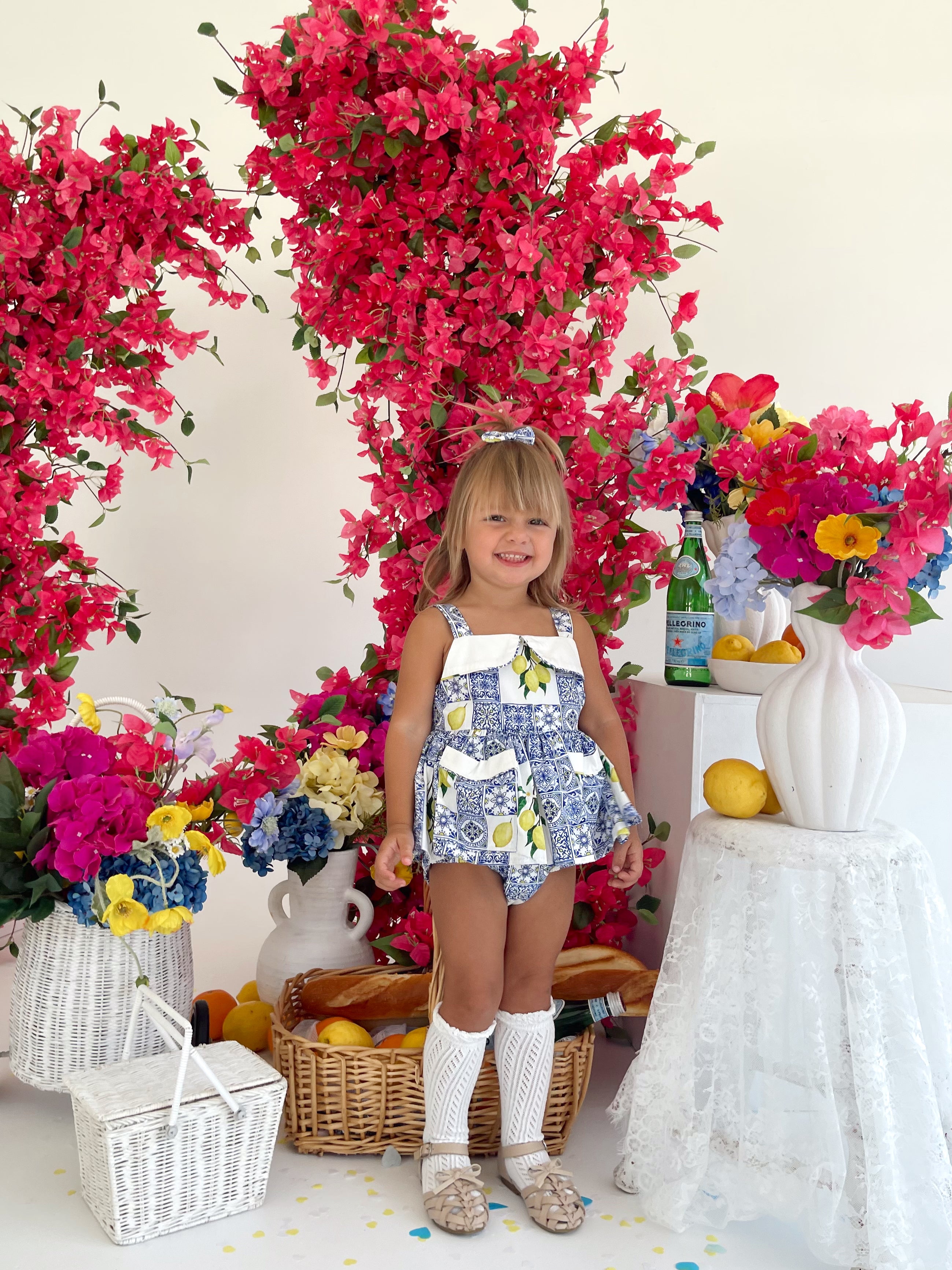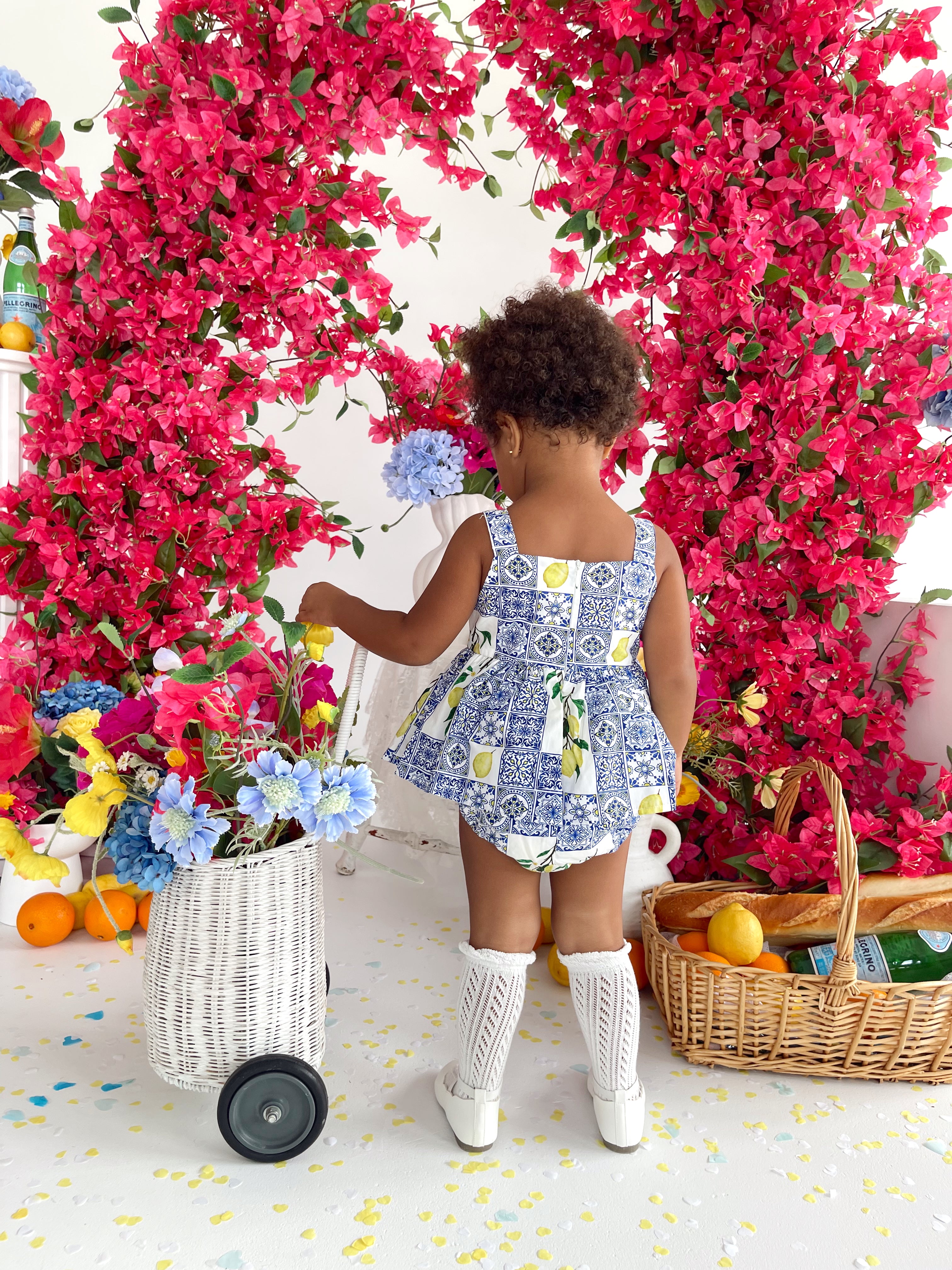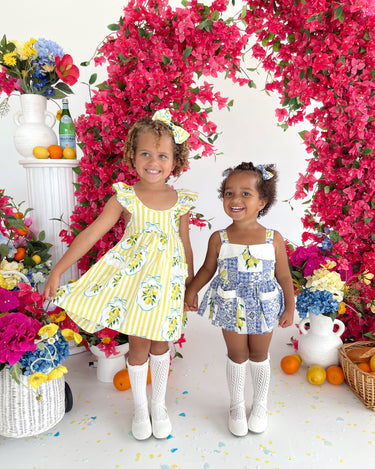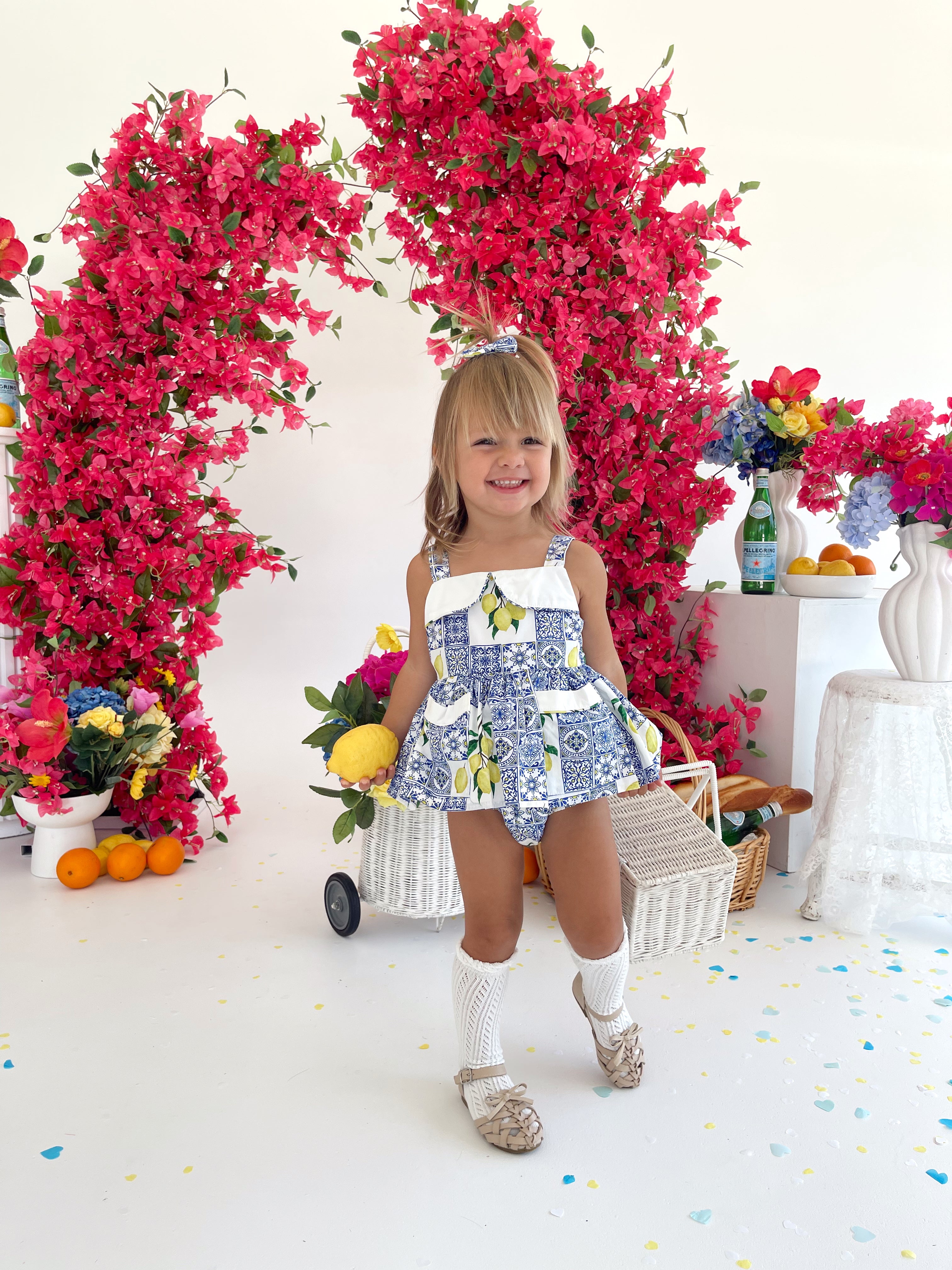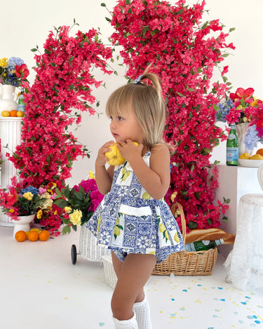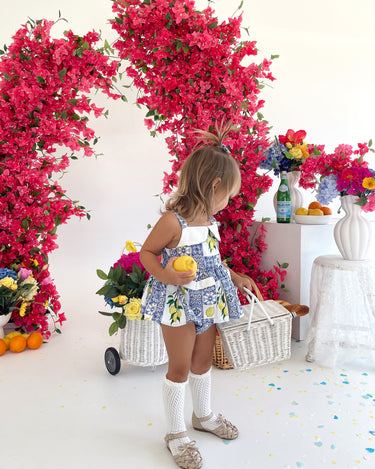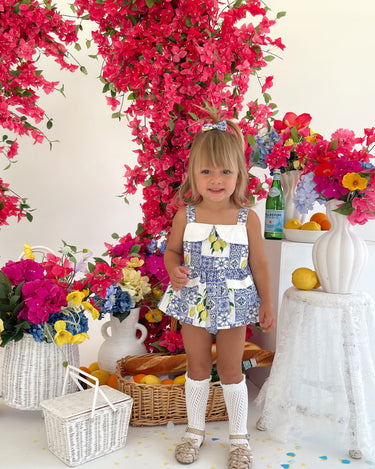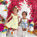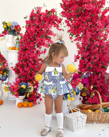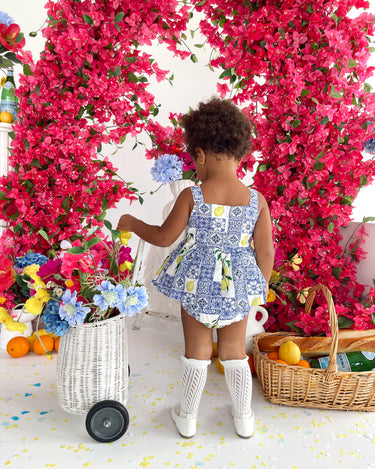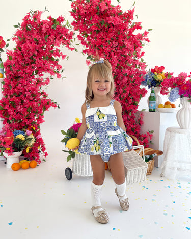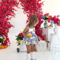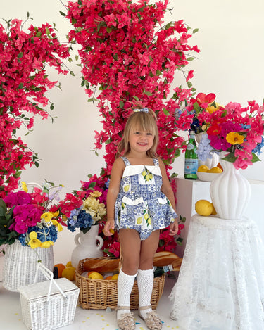 Crafted in the sweetest Euro print with pops of blue and yellow, this romper is a must-have addition to your little girl’s collection! It features a cute collar detail, a peplum-style swing top, and adorable pockets. Made from 100% cotton, this romper offers ultimate comfort with elasticated waist and leg openings, plus snaps on all sizes for easy on-and-off wear.