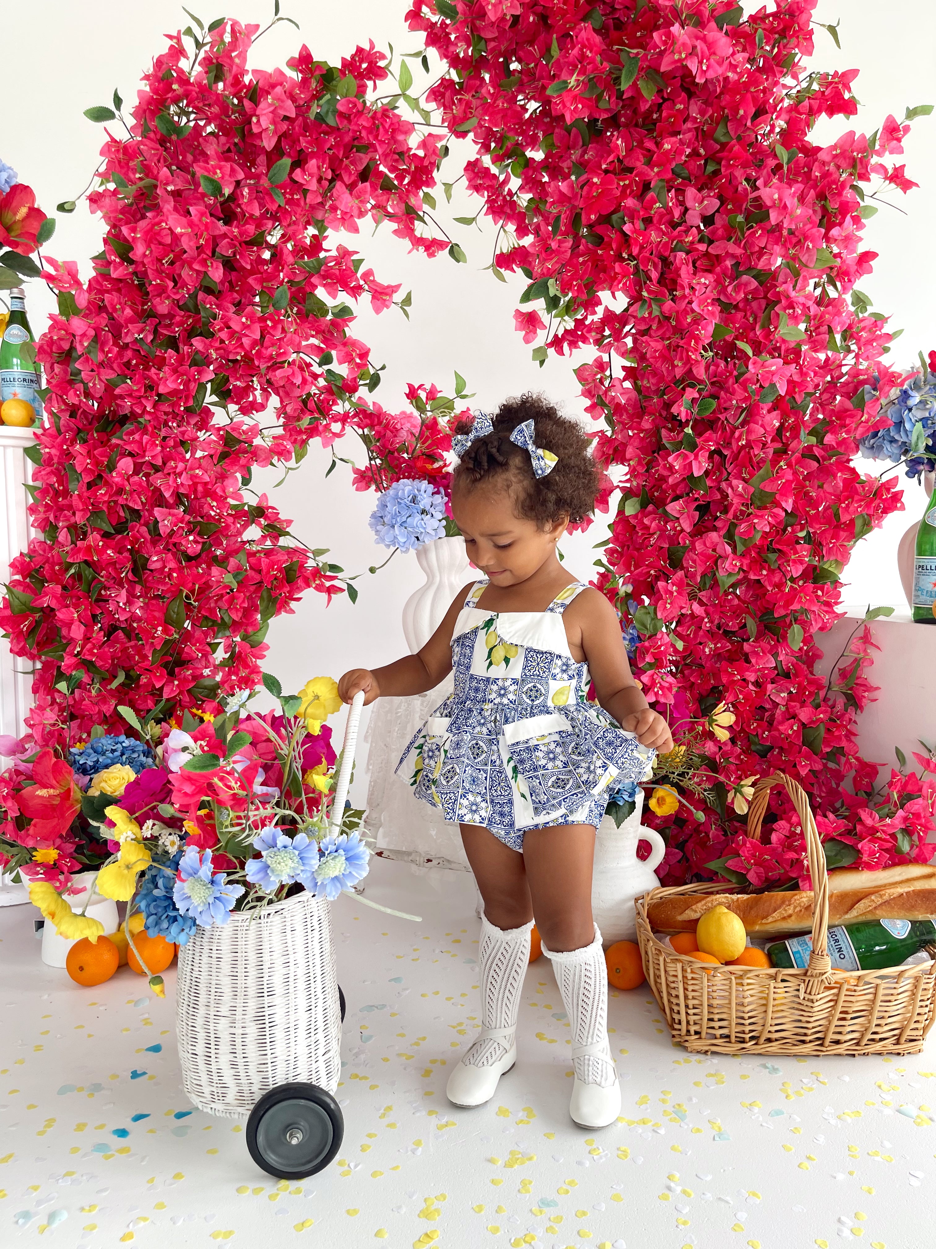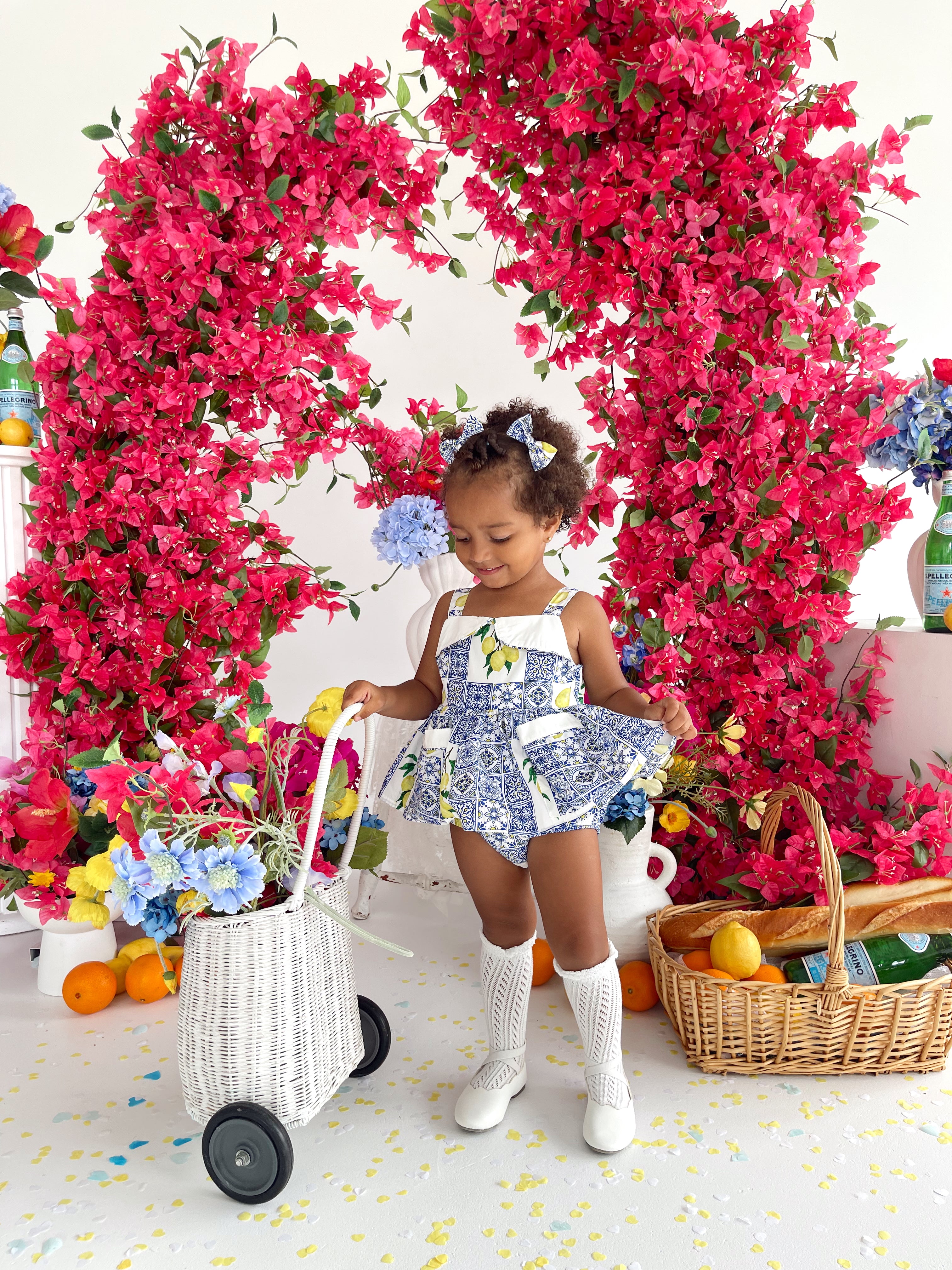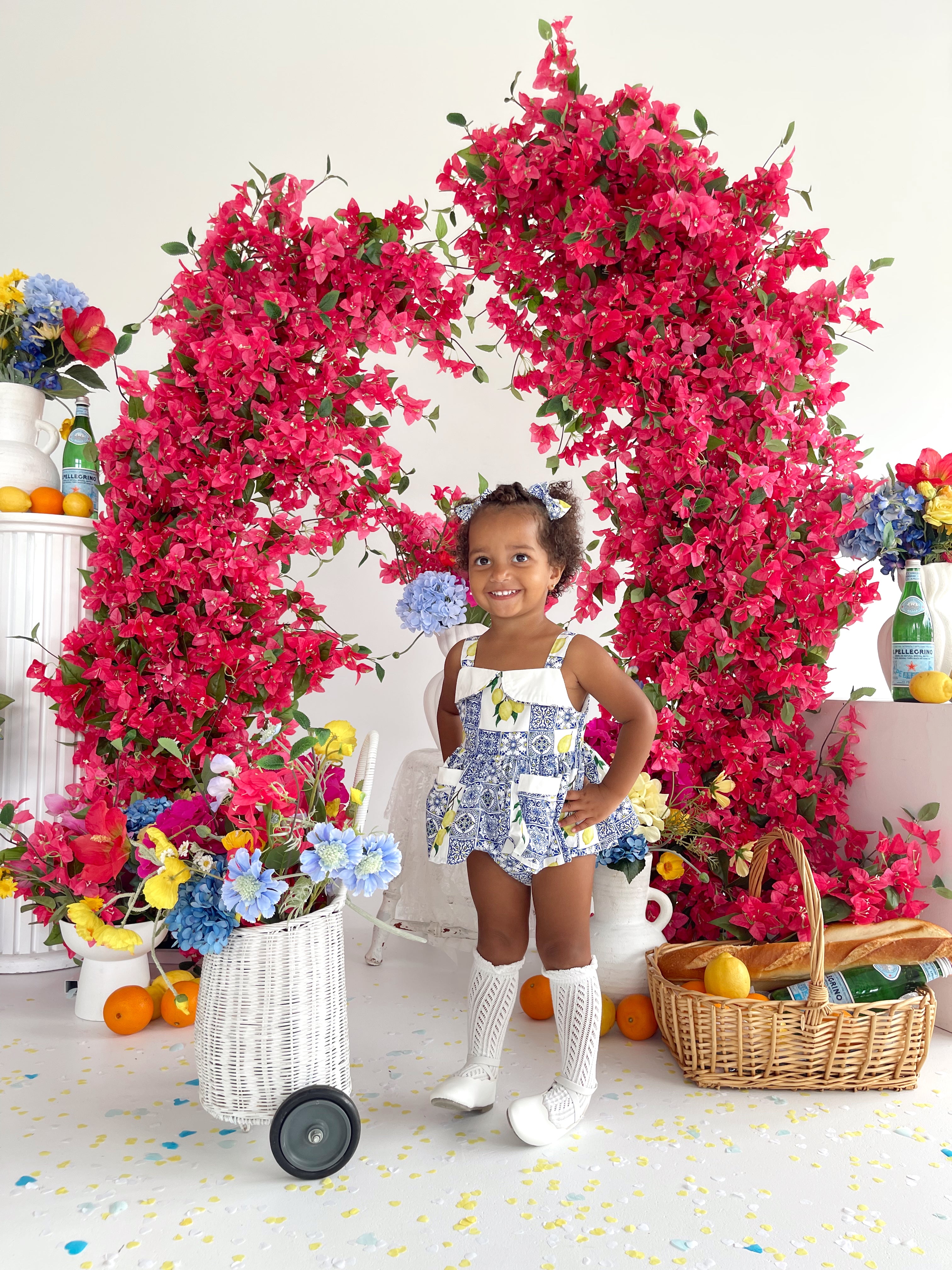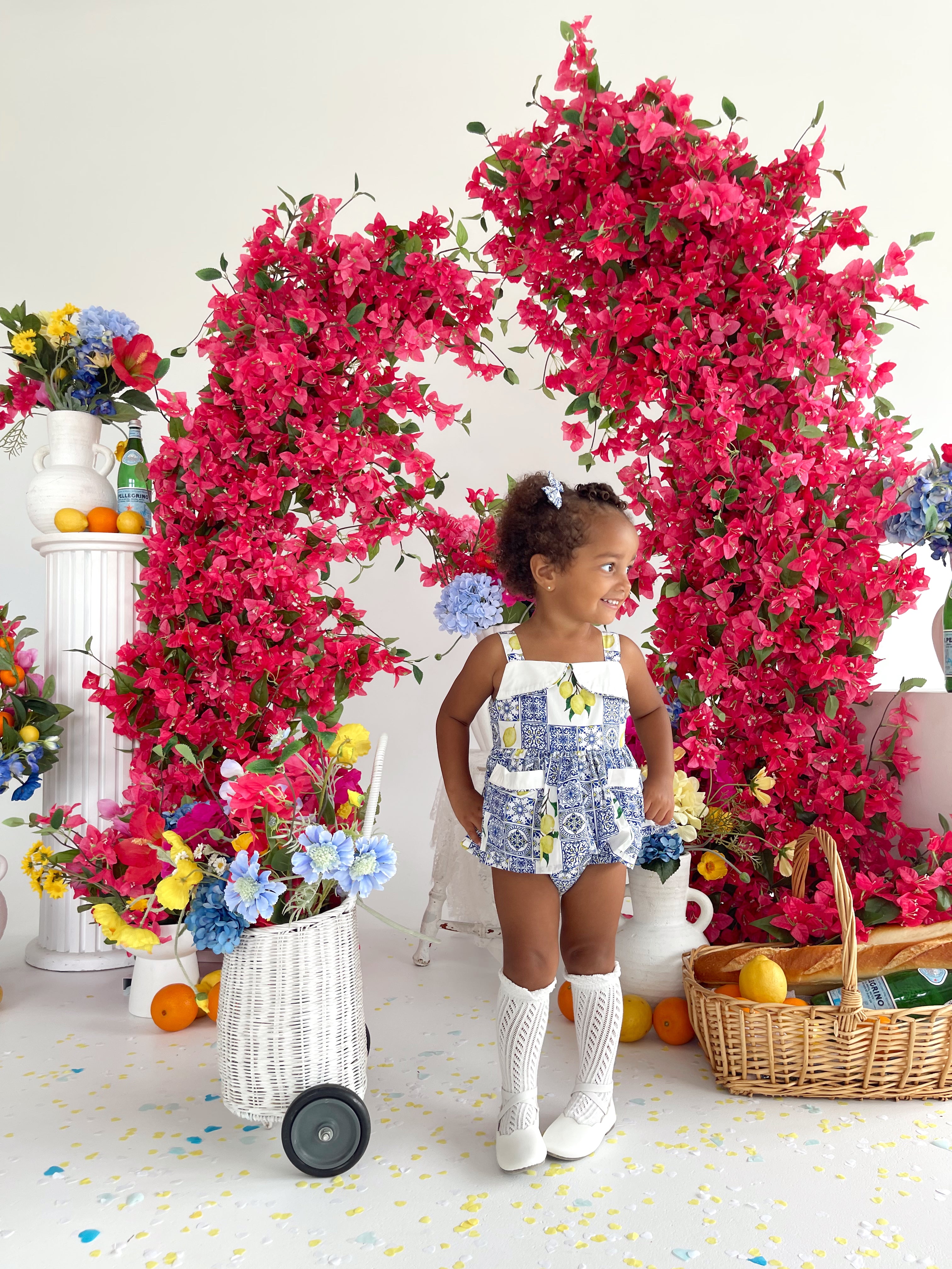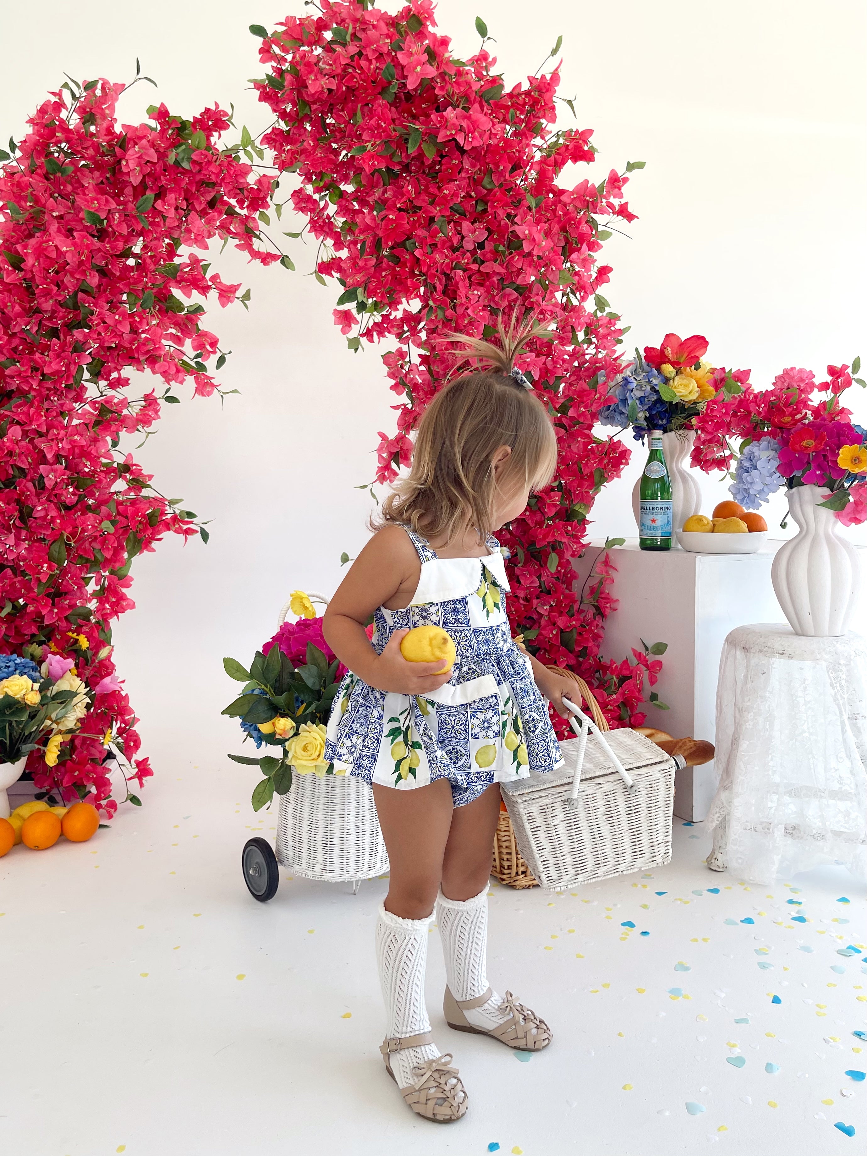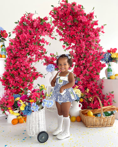 Crafted in the sweetest Euro print with pops of blue and yellow, this romper is a must-have addition to your little girl’s collection! It features a cute collar detail, a peplum-style swing top, and adorable pockets. Made from 100% cotton, this romper offers ultimate comfort with elasticated waist and leg openings, plus snaps on all sizes for easy on-and-off wear.