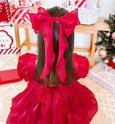 Gorgeous Ruby Red Organza Girls Hair Bow to complete your little girl’s outfit!
