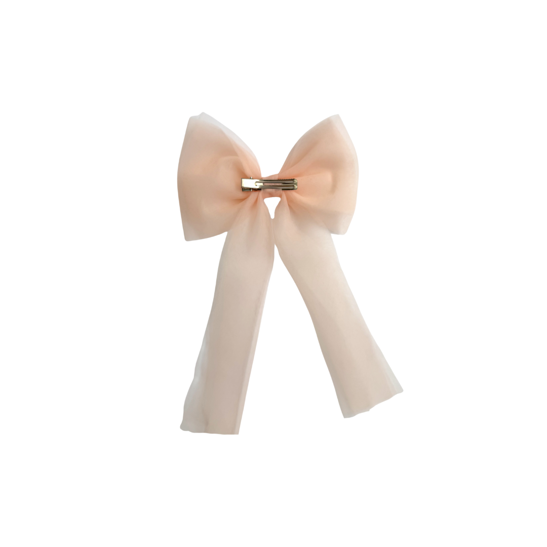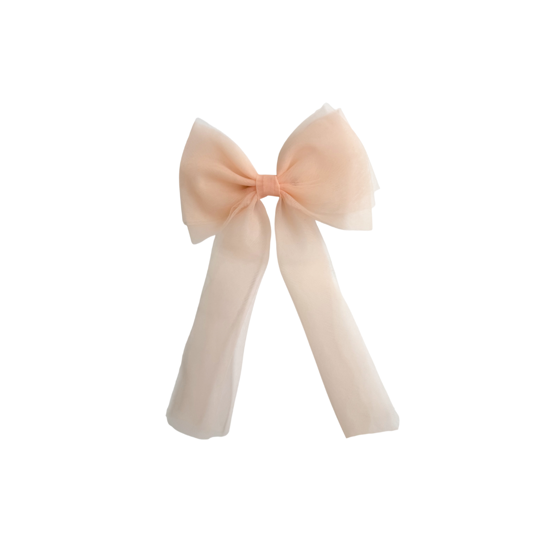 Gorgeous Peach Tulle Hair Bow to complete your little girl’s outfit!