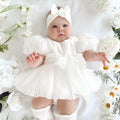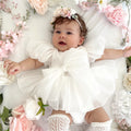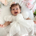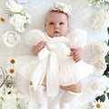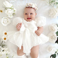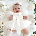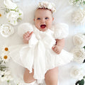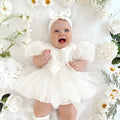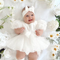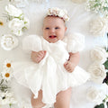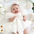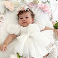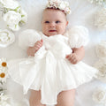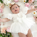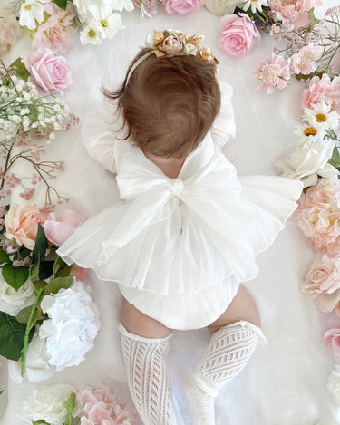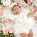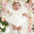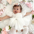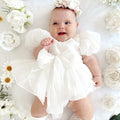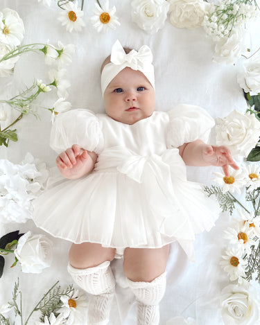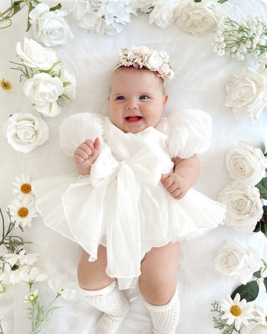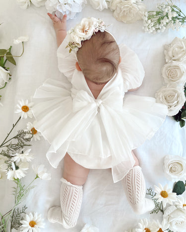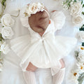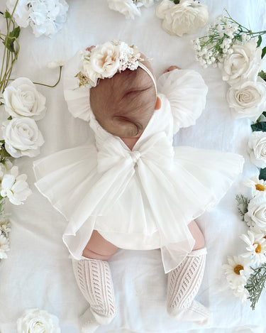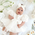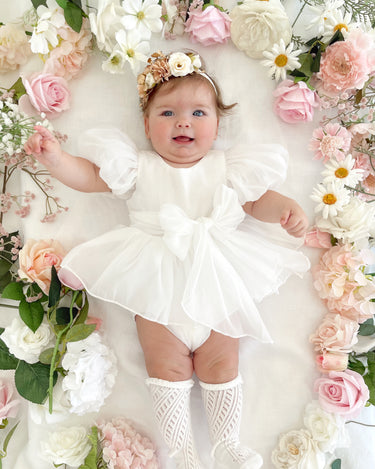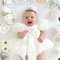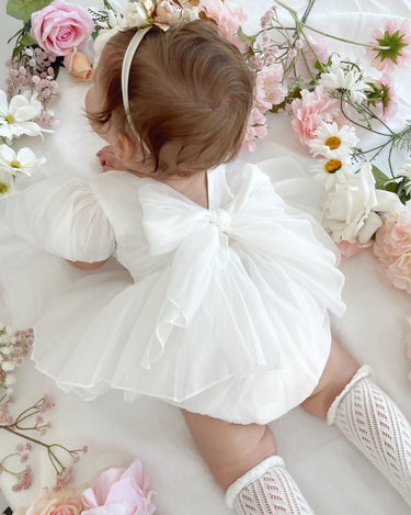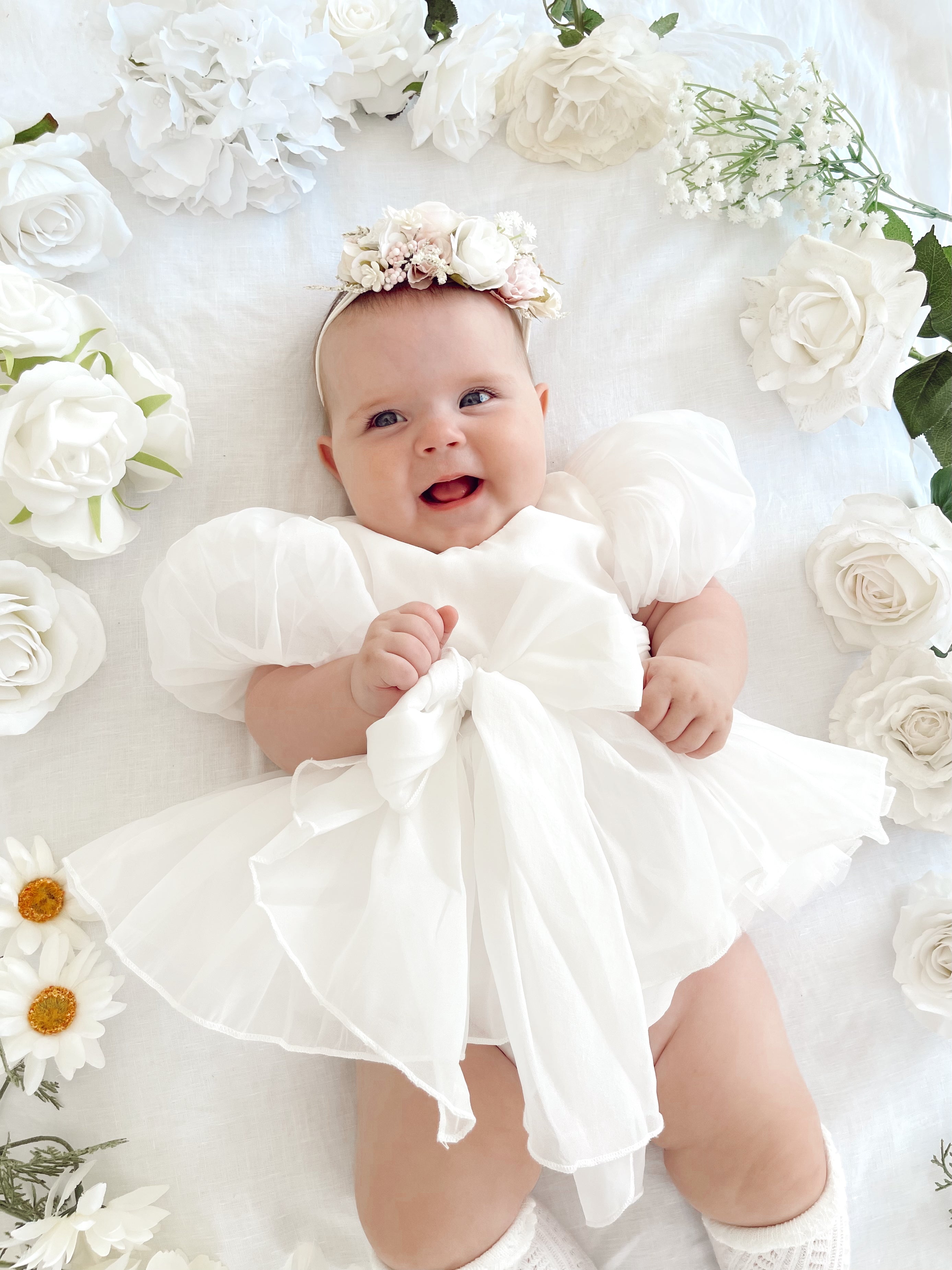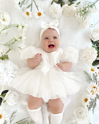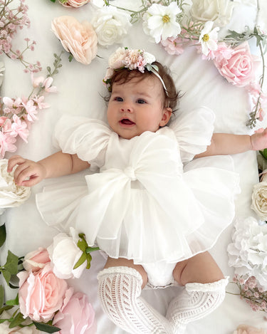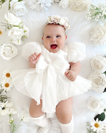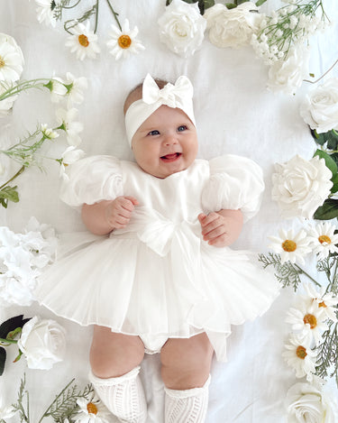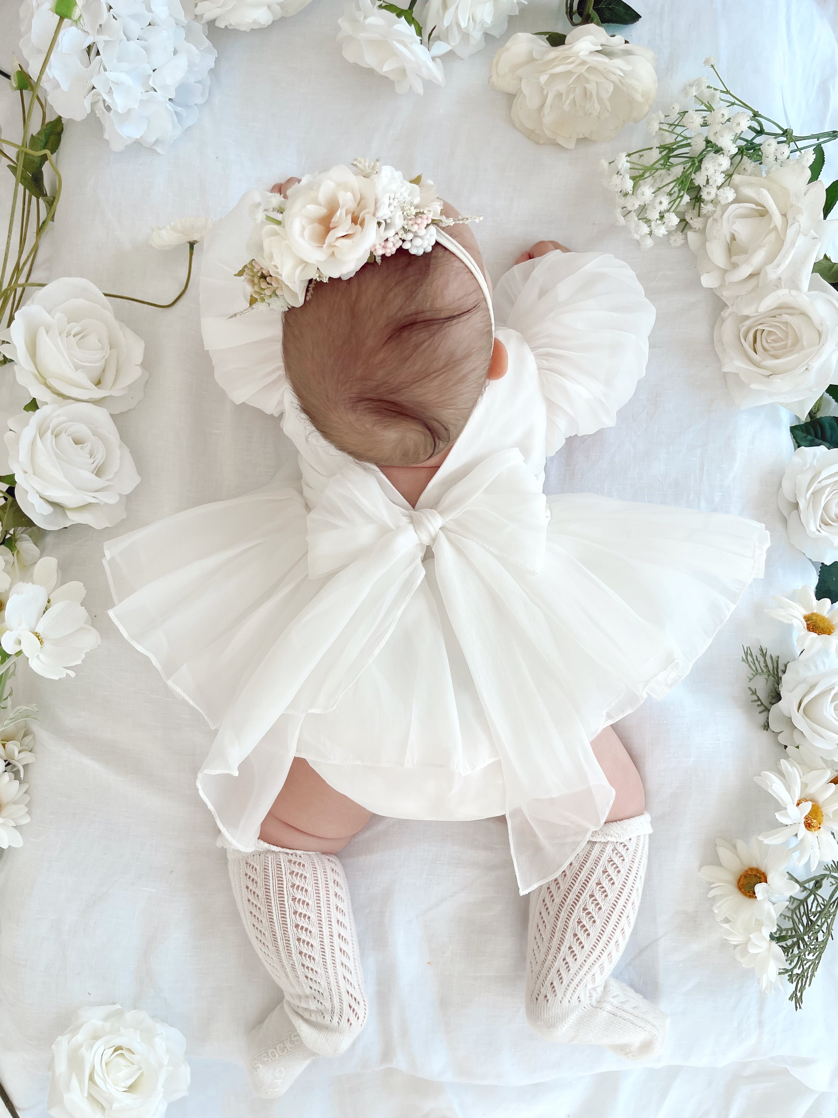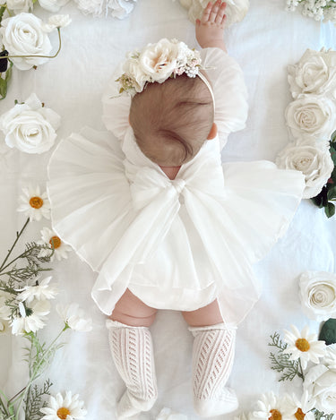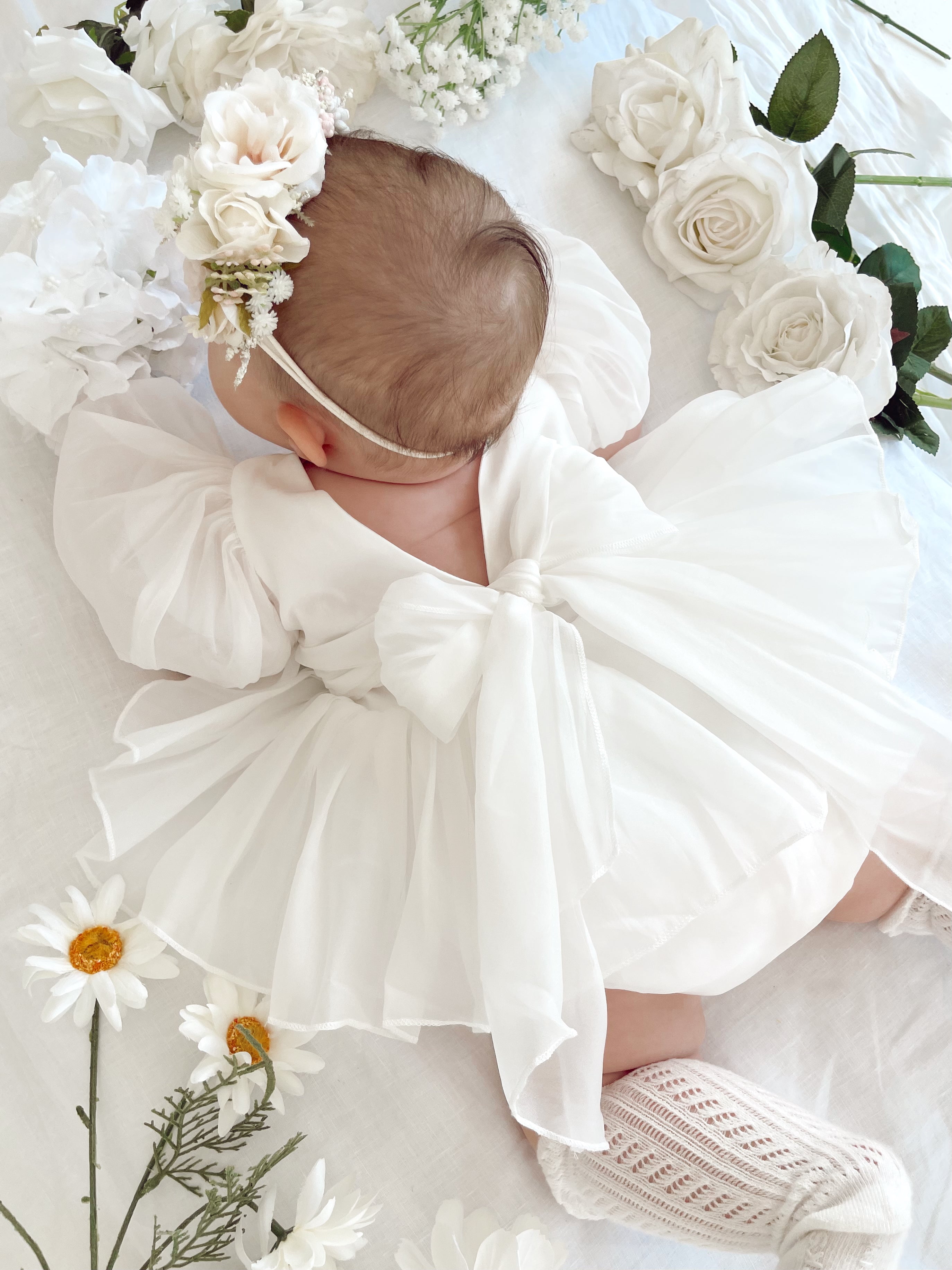 Prepare to be obsessed with the gorgeous Clementine Matte White Organza Baby Girl Romper!