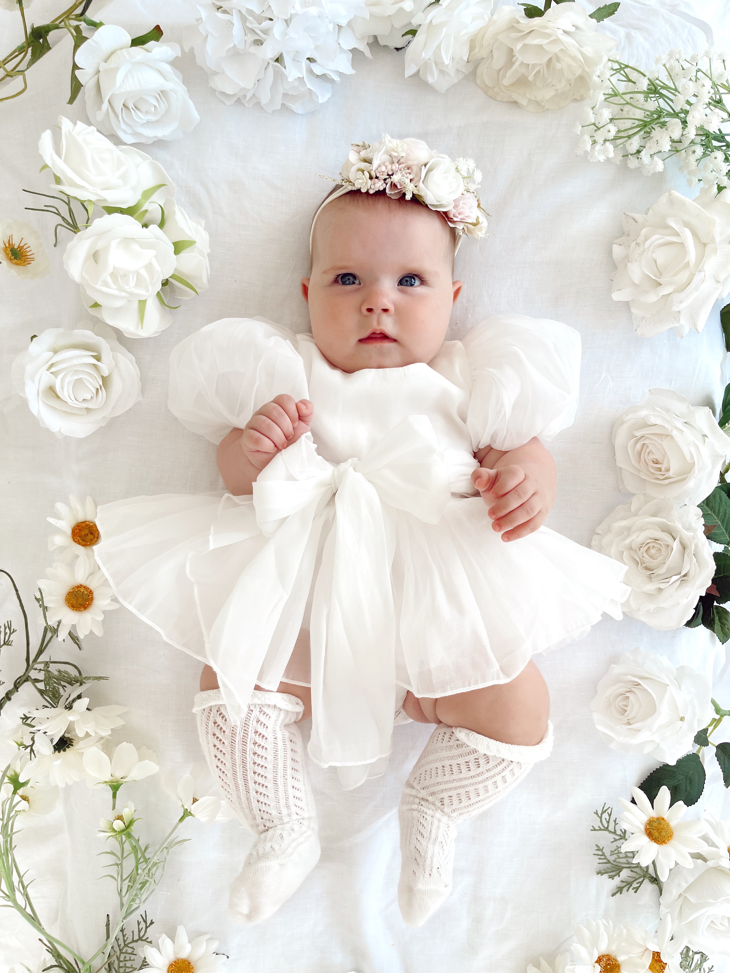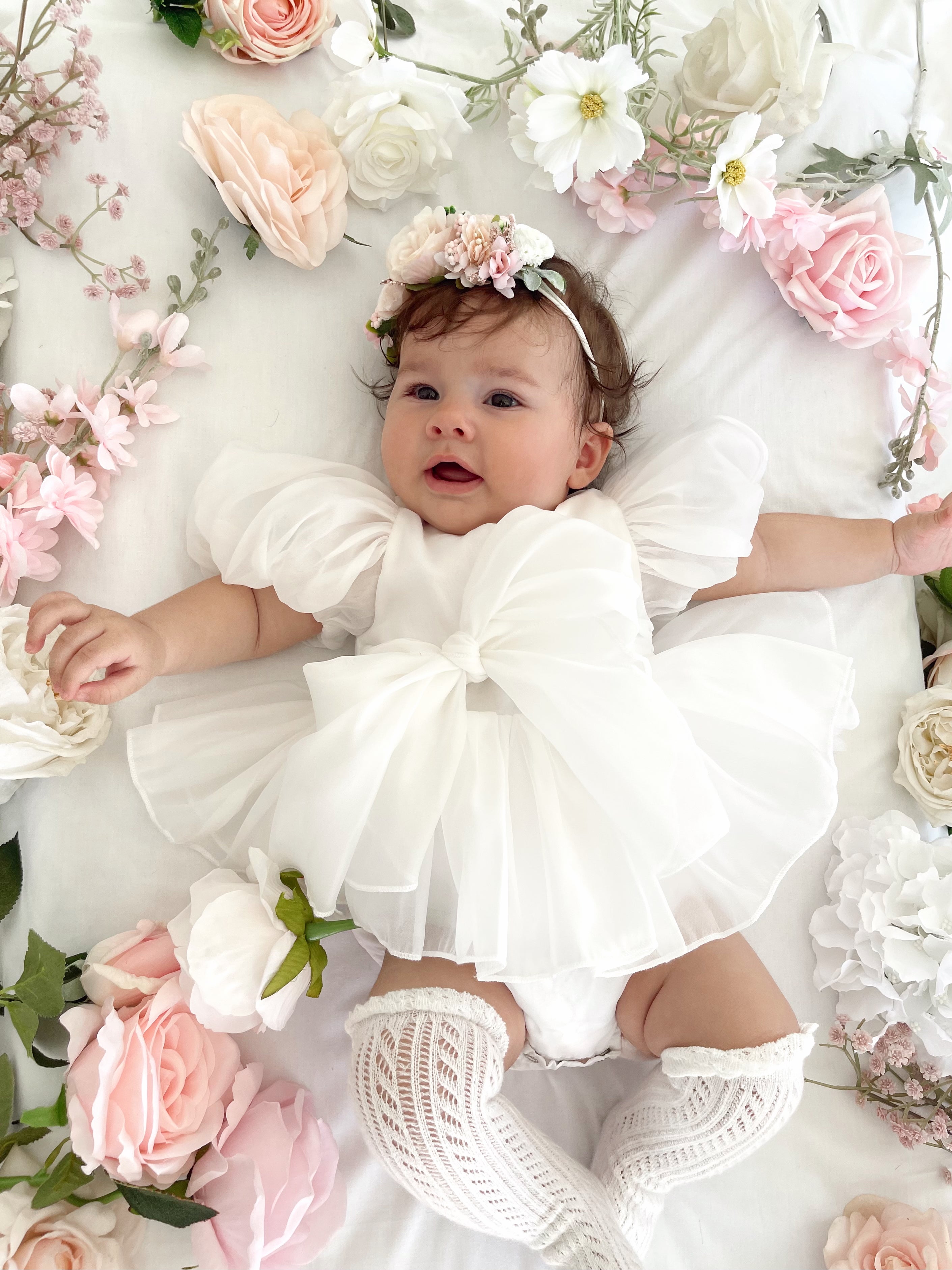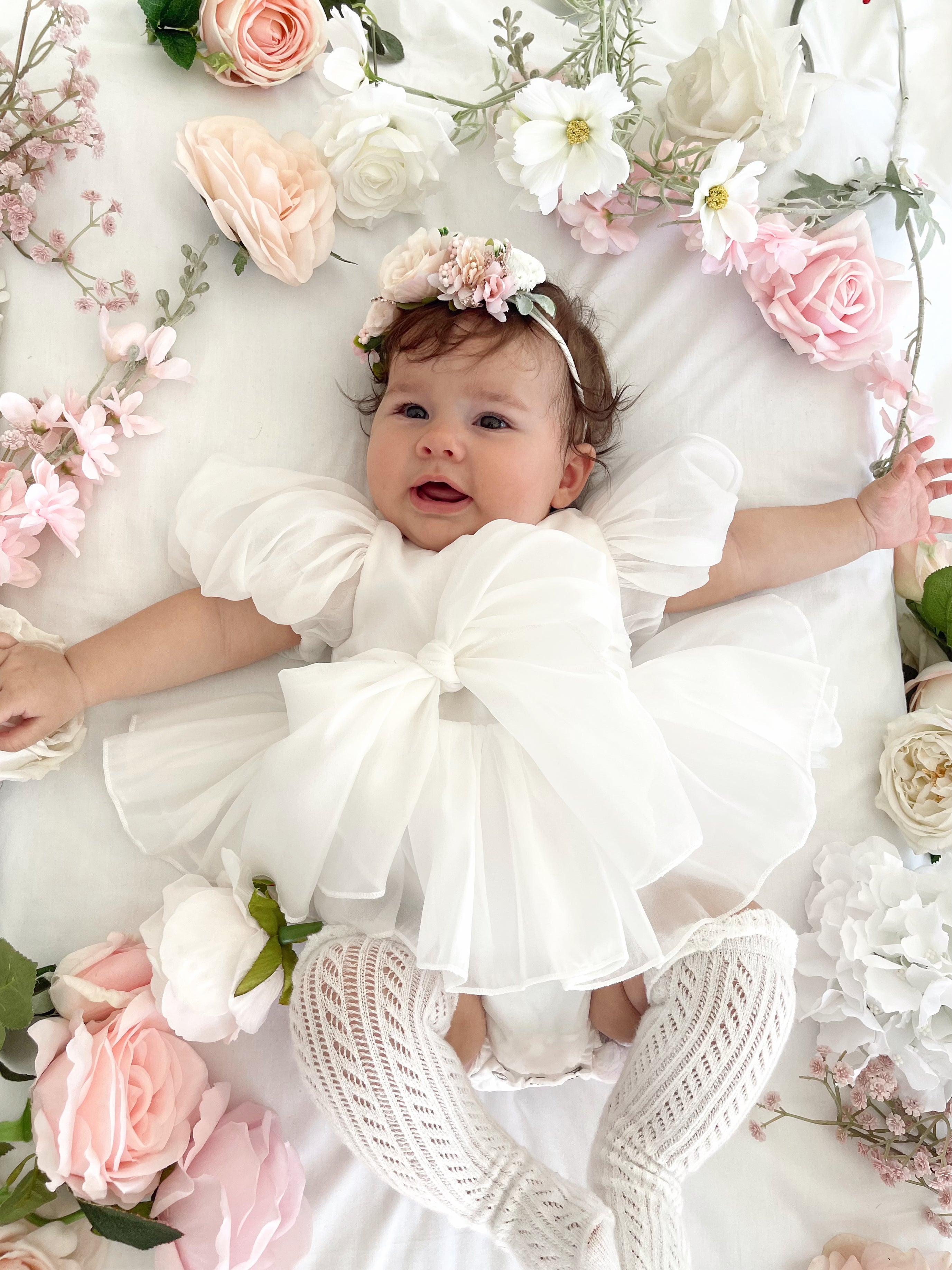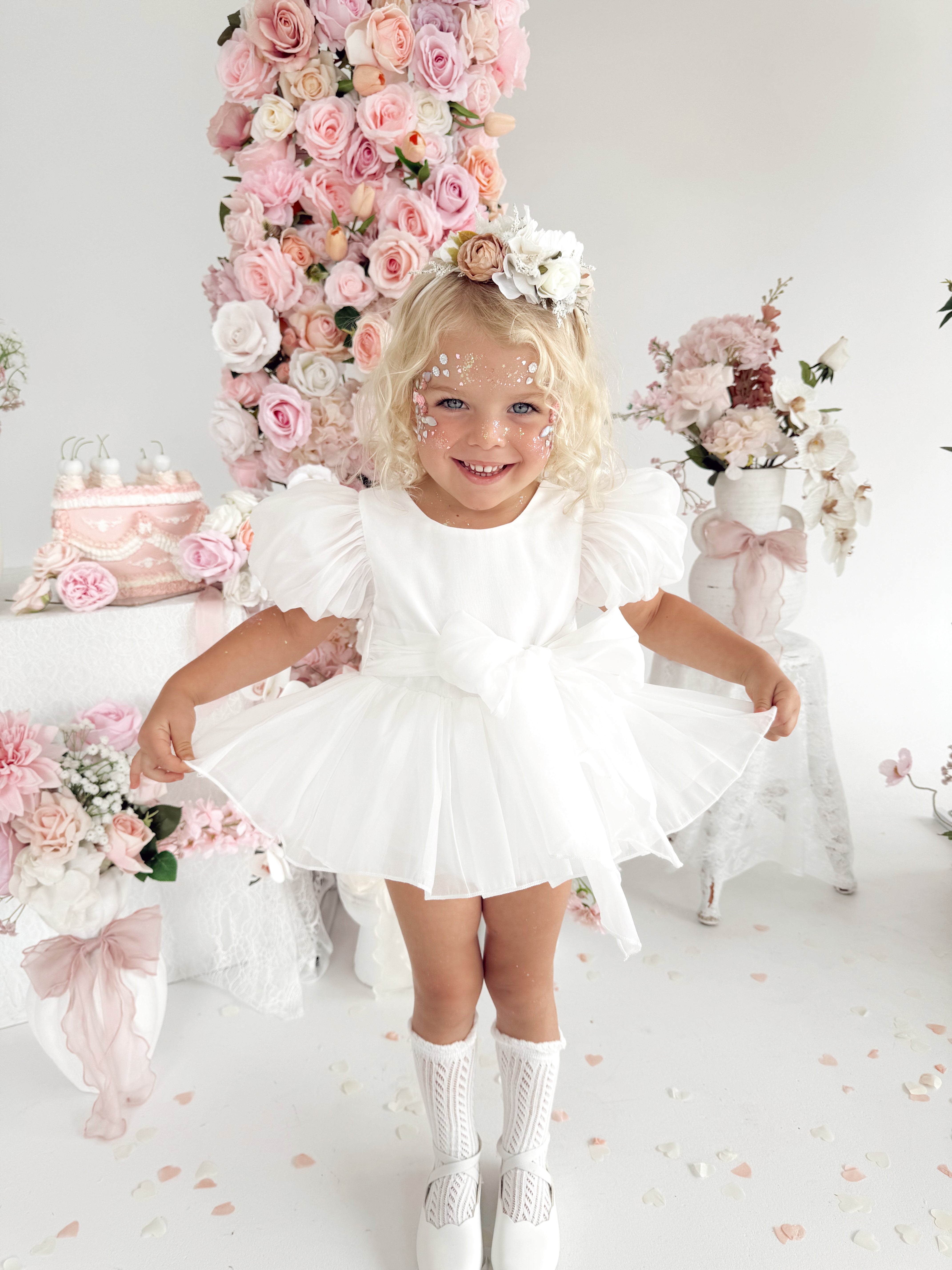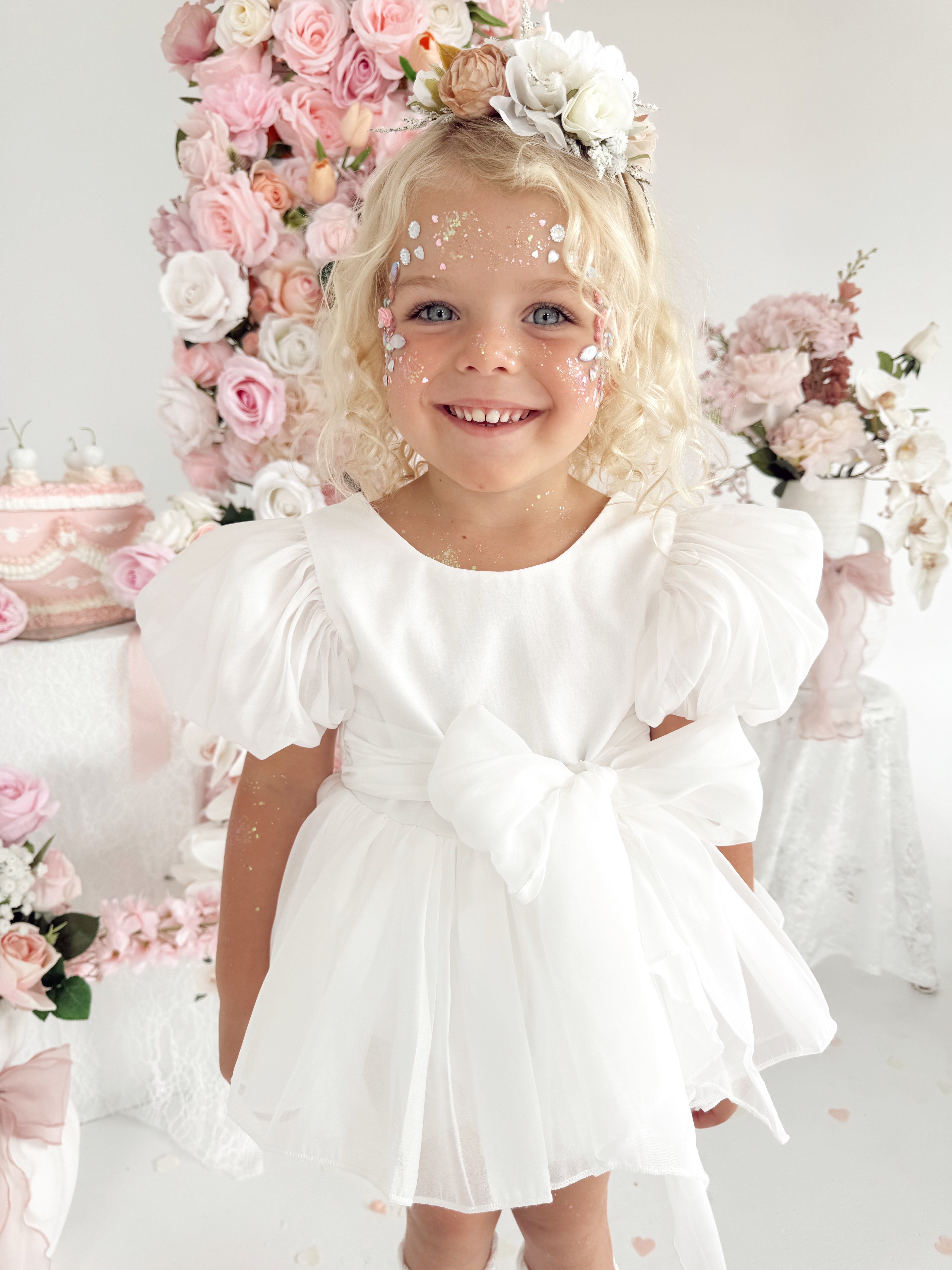 Introducing the Flower Girl Collection, a timeless blend of sweetness and elegance. This collection features our matte organza dresses and matching sister rompers in stunning, blush rose, white, and cream. Soft organza, delicate details, and gentle textures make each piece perfect for weddings, celebrations, and those picture-perfect moments. The collection is completed with matching accessories and matte organza hair bows for the sweetest finishing touch. Classic, dreamy, and beautifully refined, the Flower Girl Collection is made for magical moments.