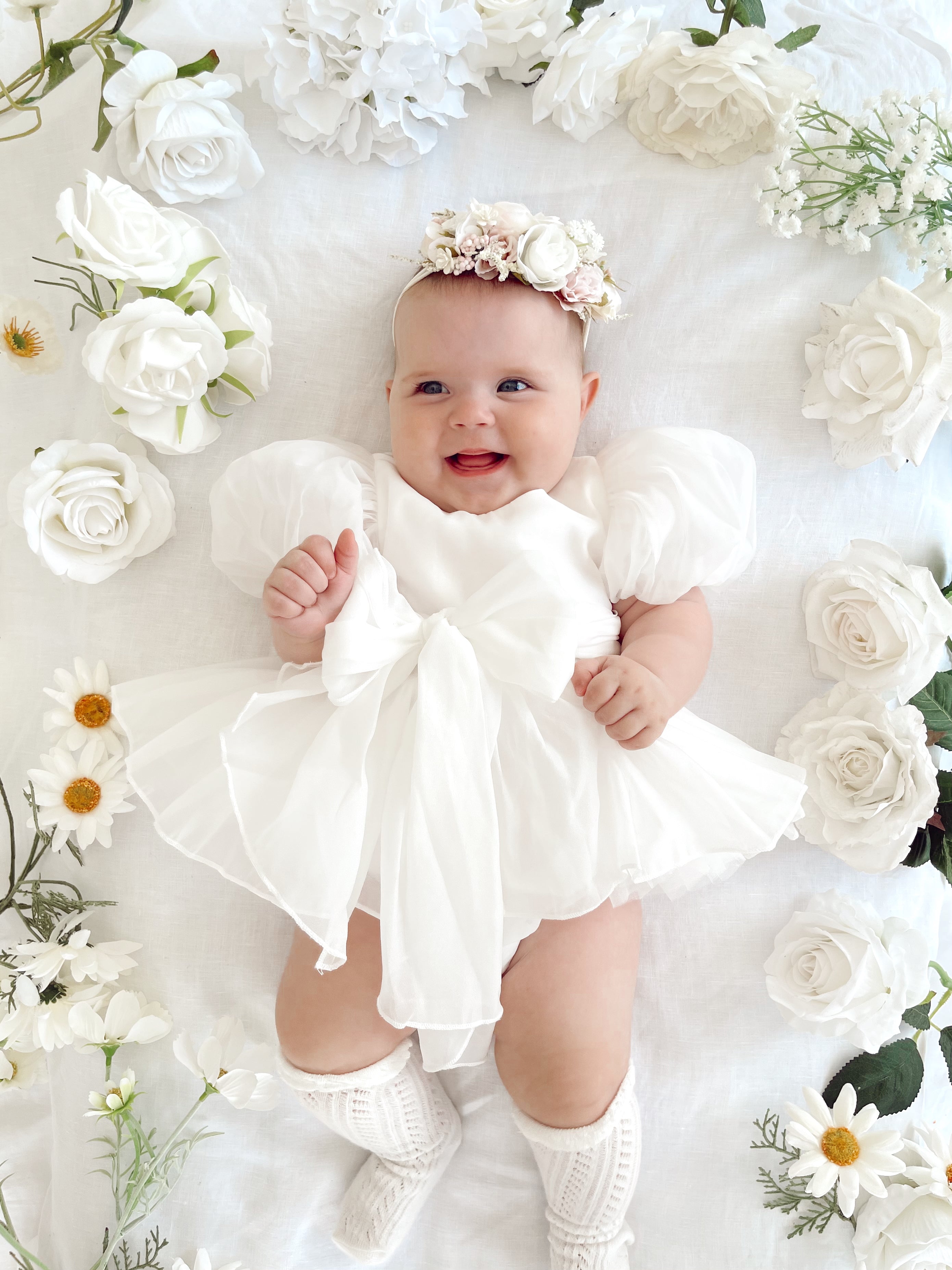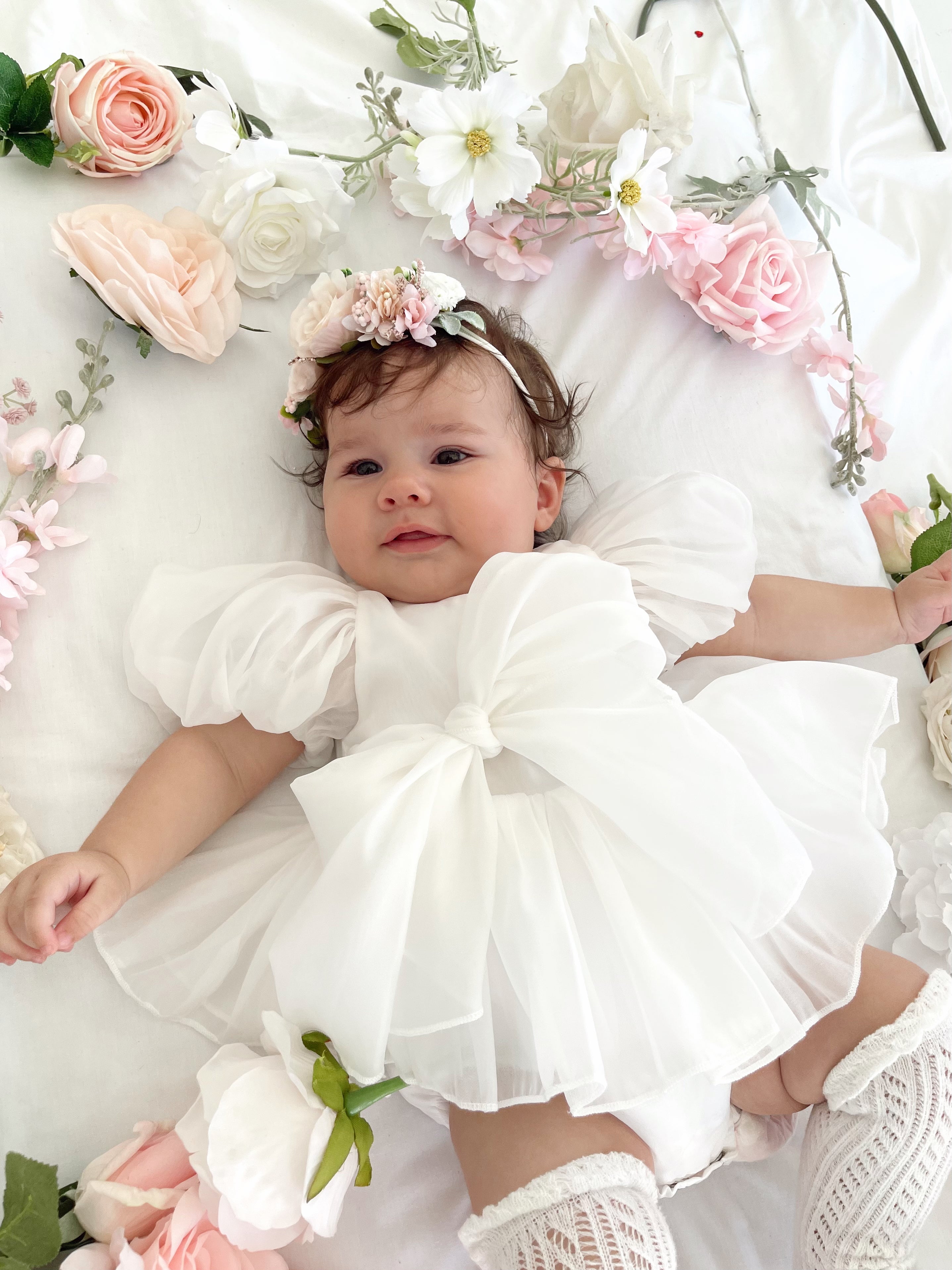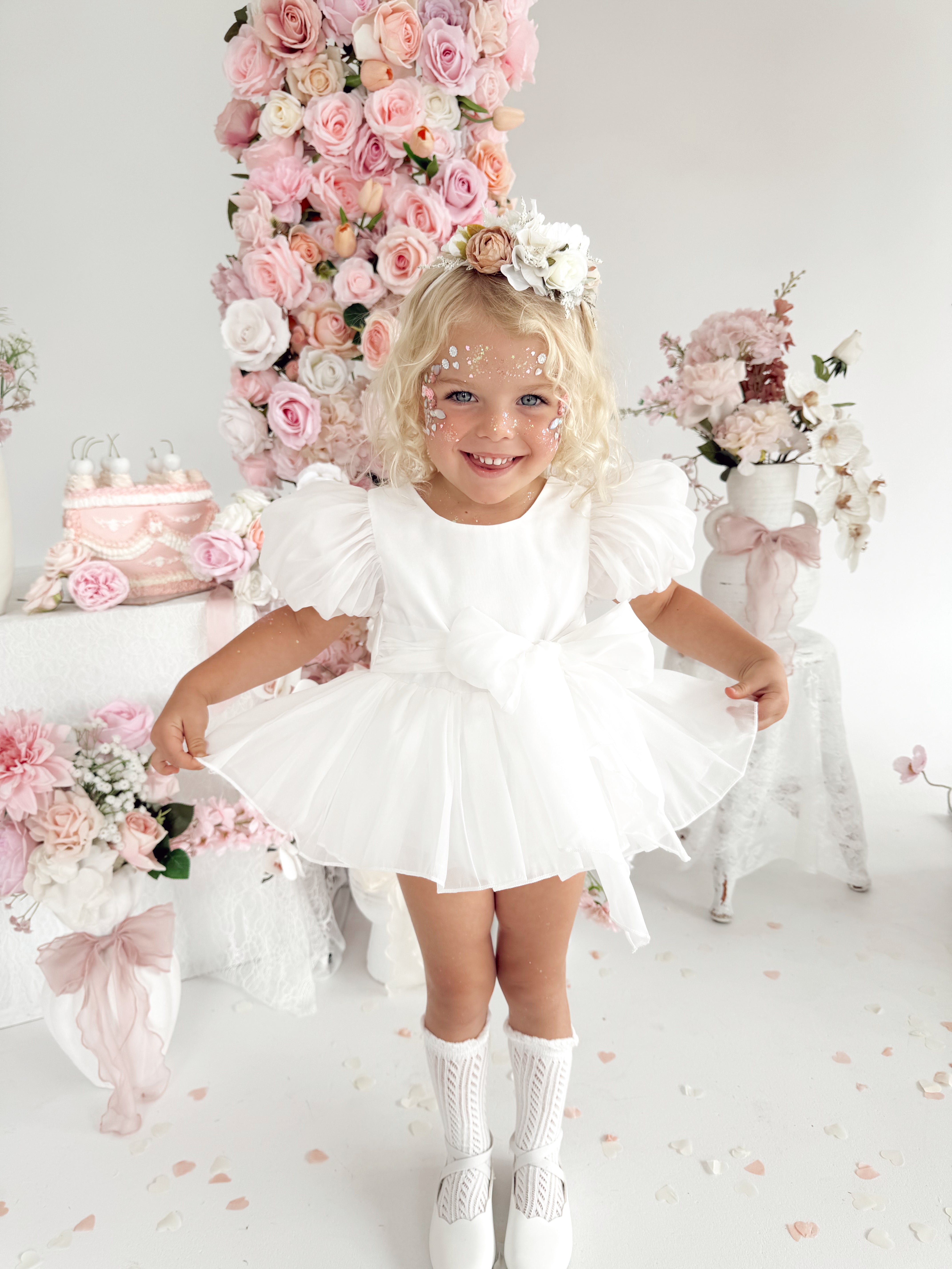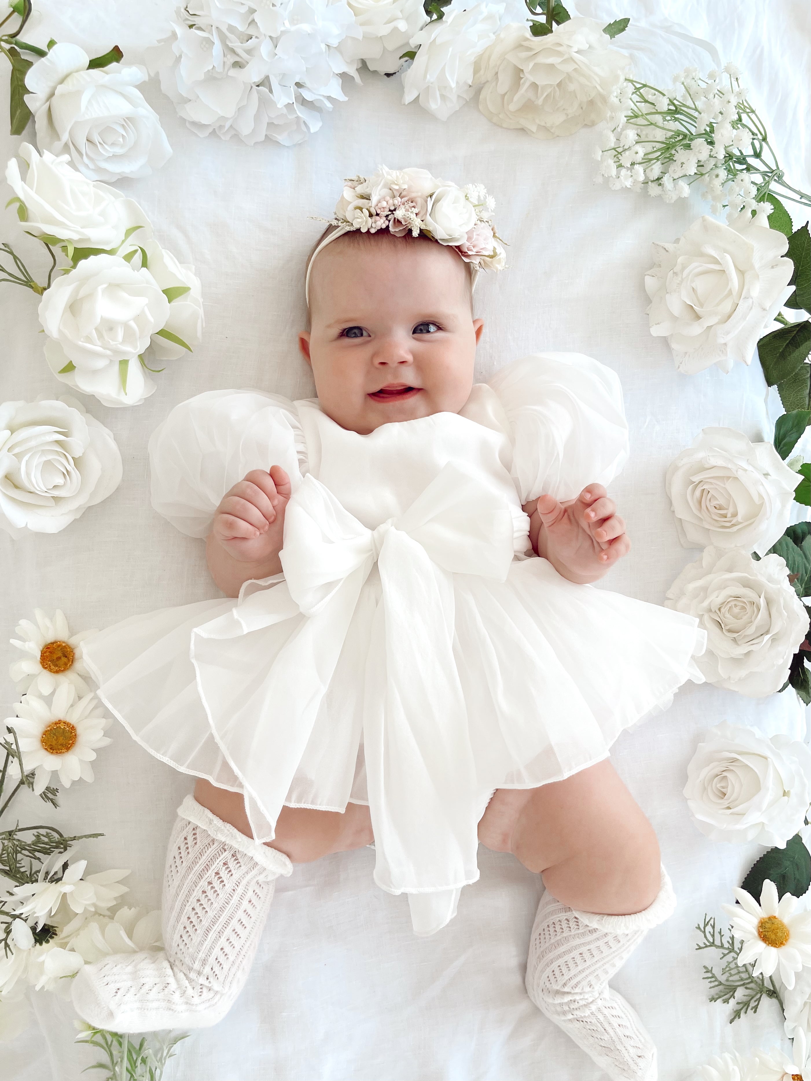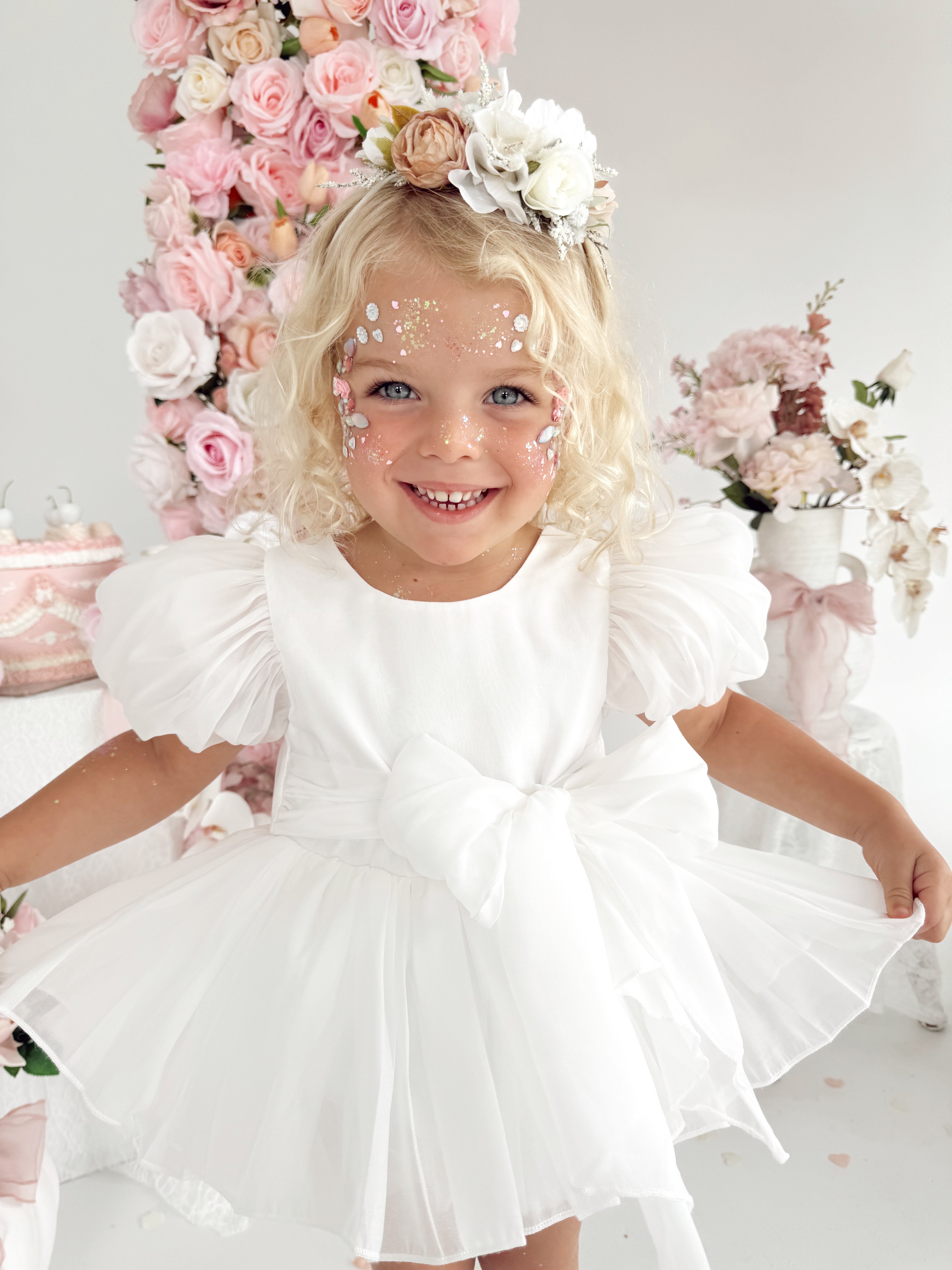 Introducing the Flower Girl Collection, a timeless blend of sweetness and elegance. This collection features our matte organza dresses and matching sister rompers in stunning, blush rose, white, and cream. Soft organza, delicate details, and gentle textures make each piece perfect for weddings, celebrations, and those picture-perfect moments. The collection is completed with matching accessories and matte organza hair bows for the sweetest finishing touch. Classic, dreamy, and beautifully refined, the Flower Girl Collection is made for magical moments.