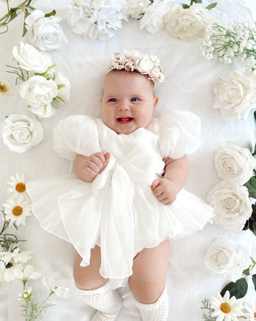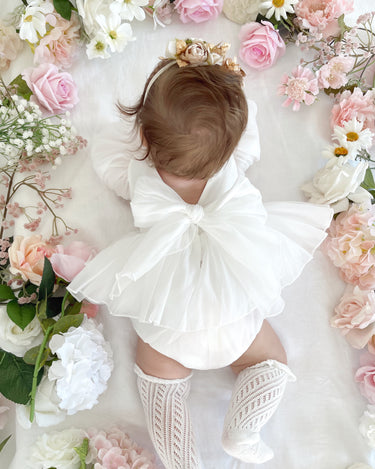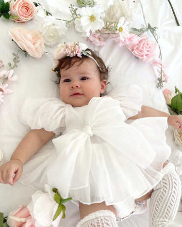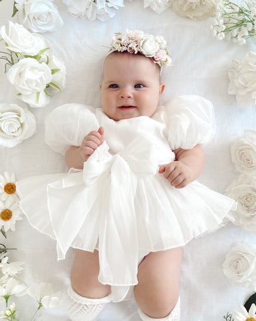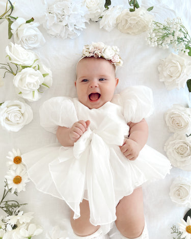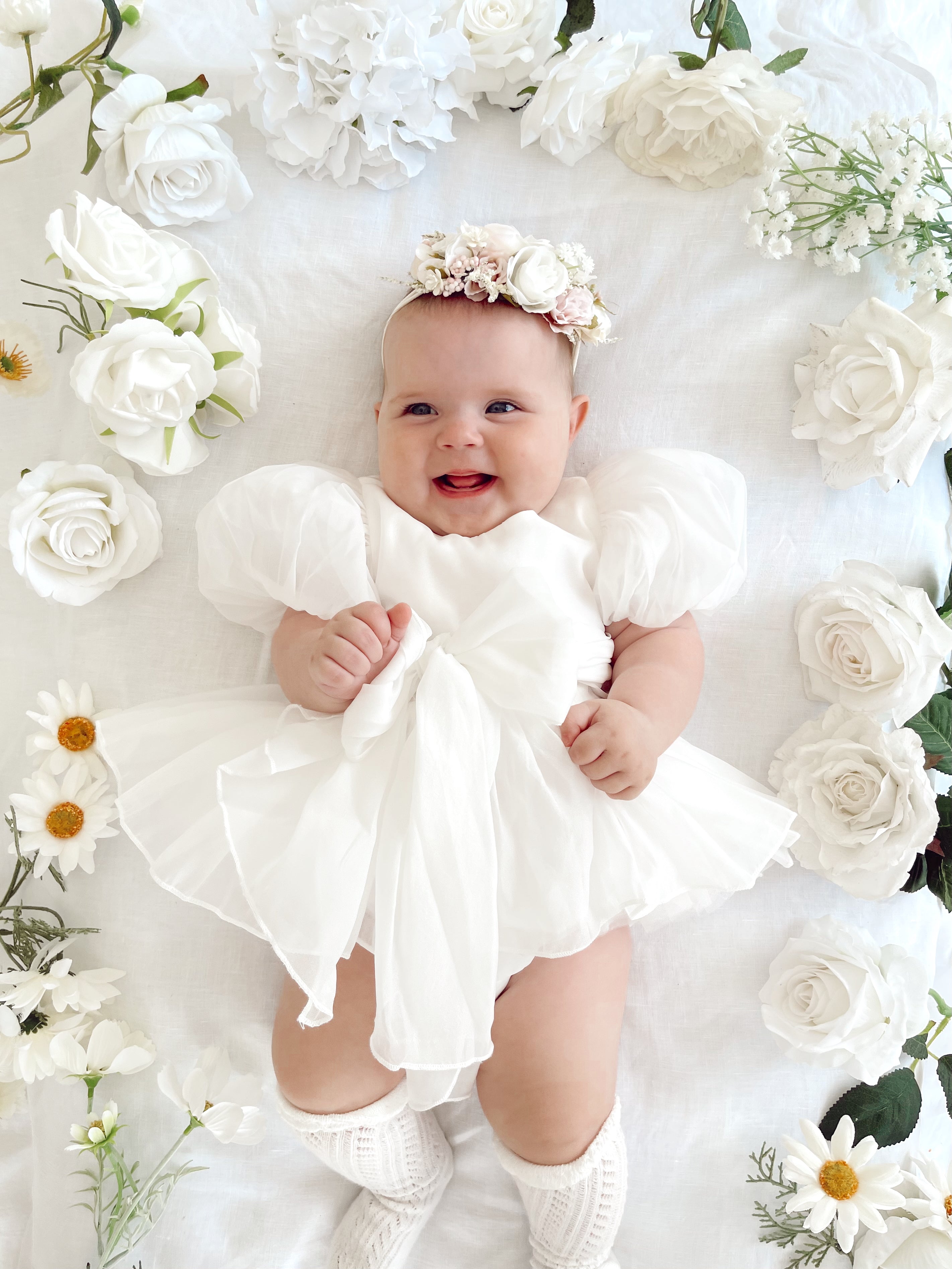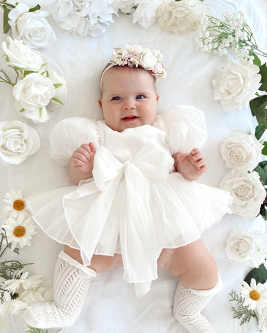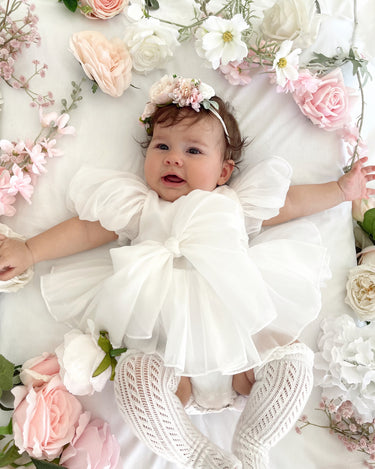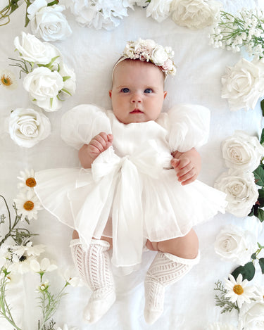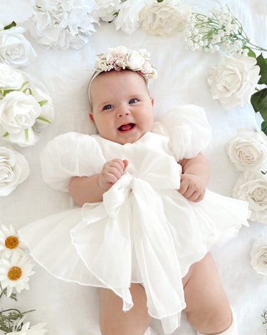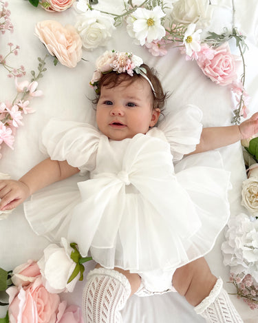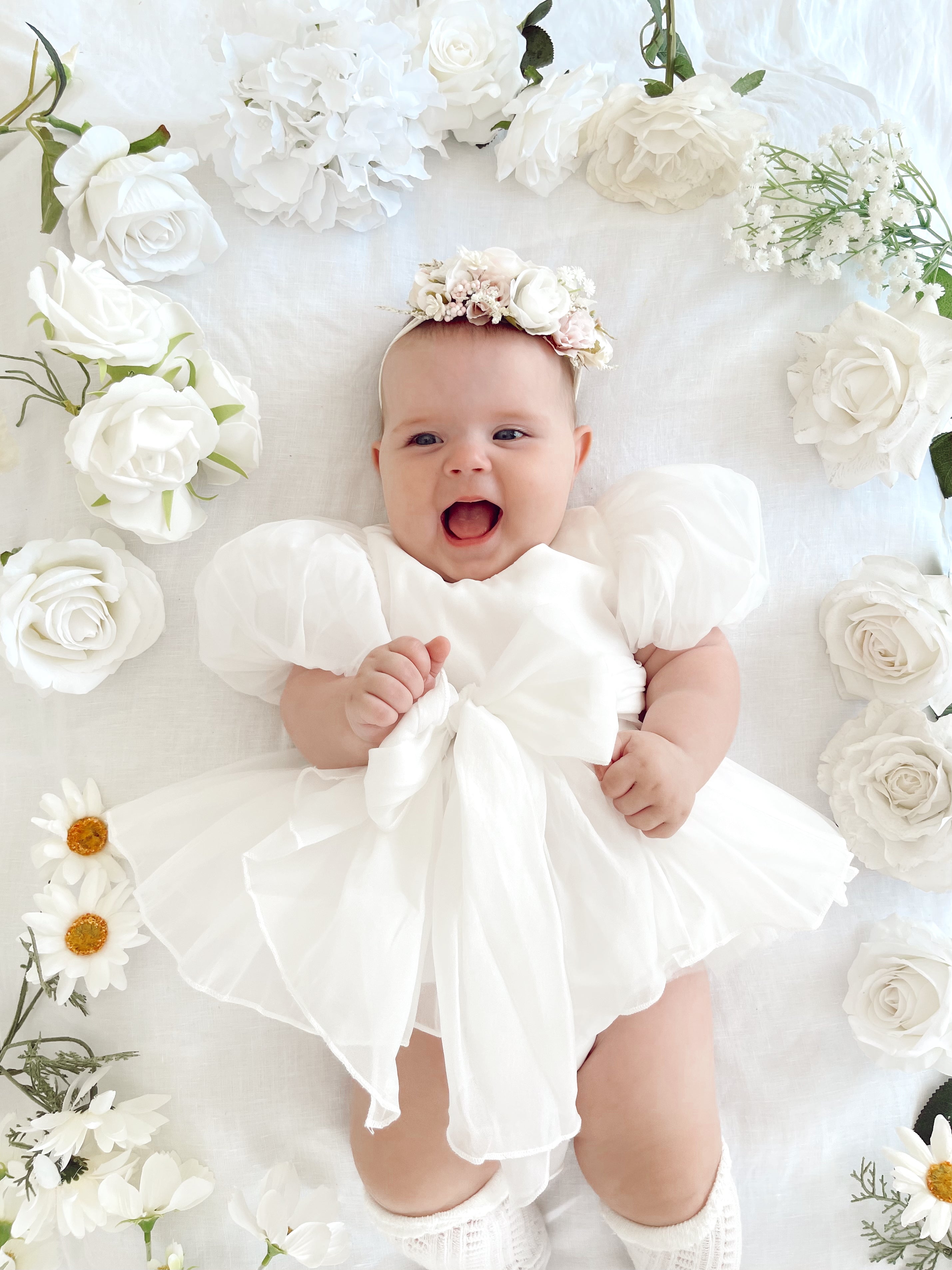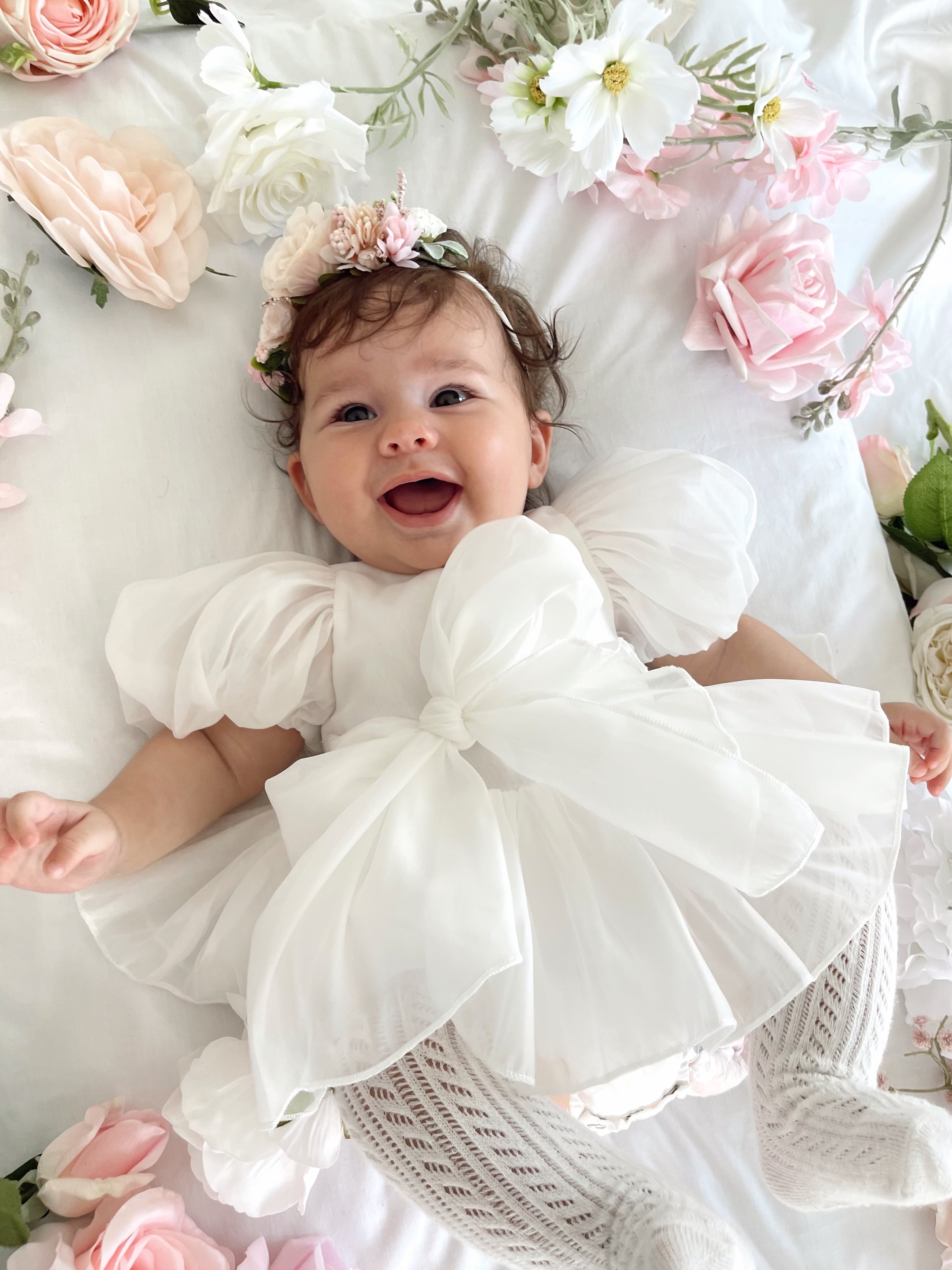 Introducing the Flower Girl Collection, a timeless blend of sweetness and elegance. This collection features our matte organza dresses and matching sister rompers in stunning, blush rose, white, and cream. Soft organza, delicate details, and gentle textures make each piece perfect for weddings, celebrations, and those picture-perfect moments. The collection is completed with matching accessories and matte organza hair bows for the sweetest finishing touch. Classic, dreamy, and beautifully refined, the Flower Girl Collection is made for magical moments.