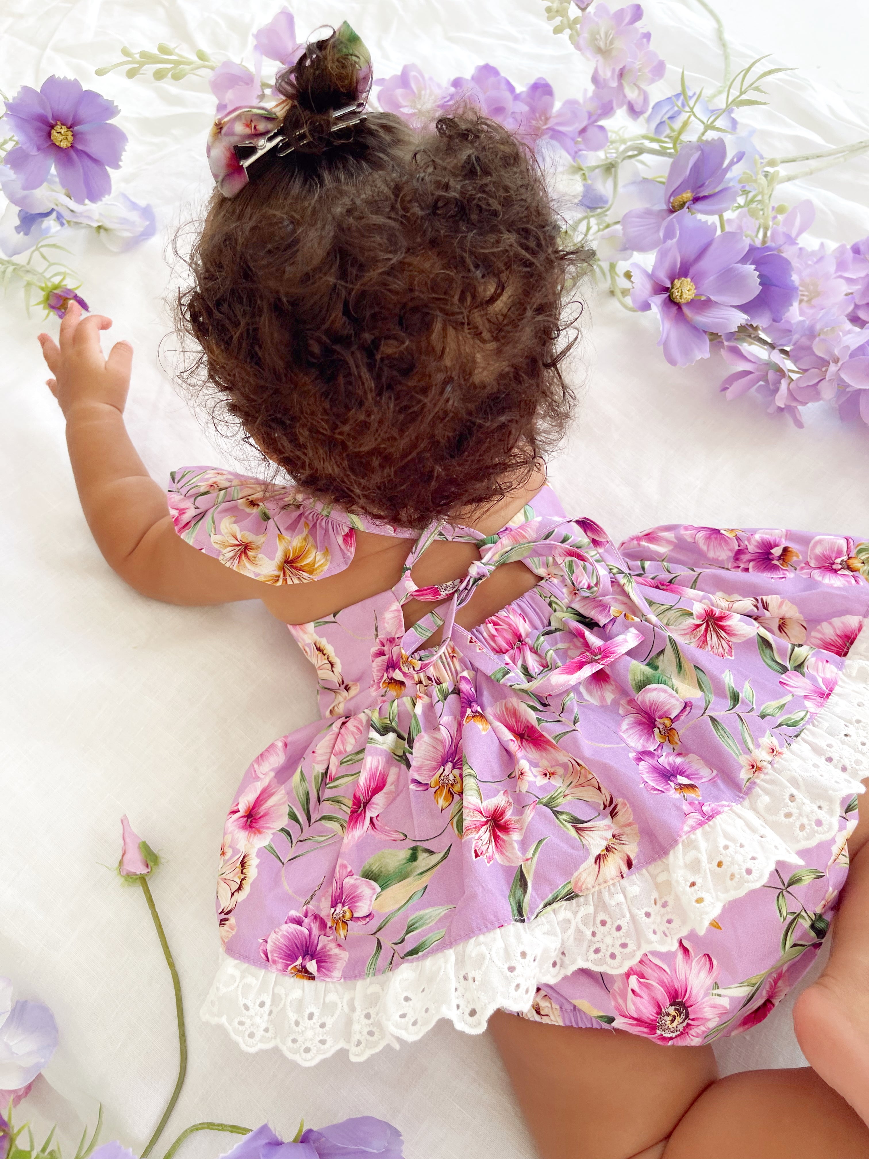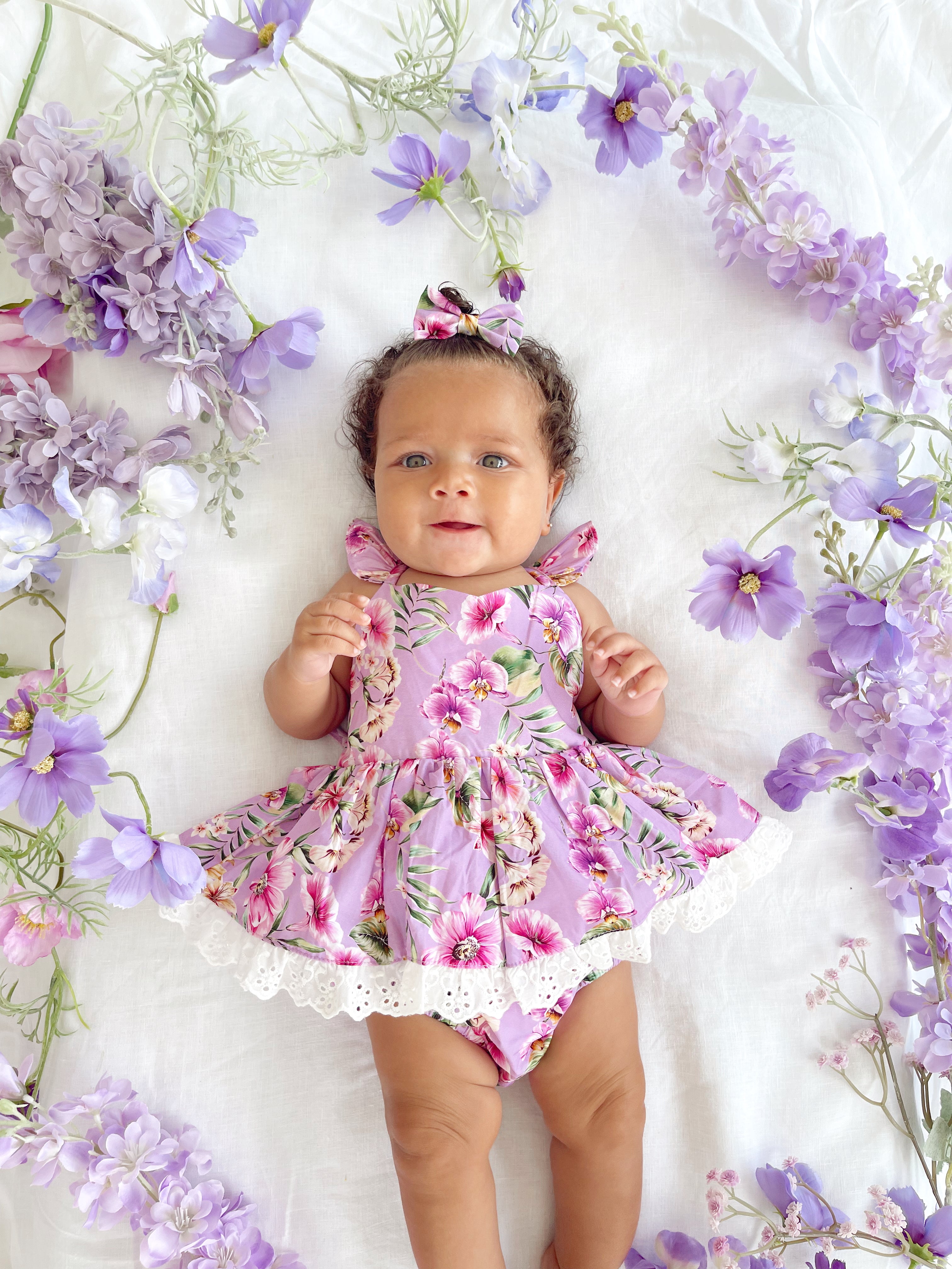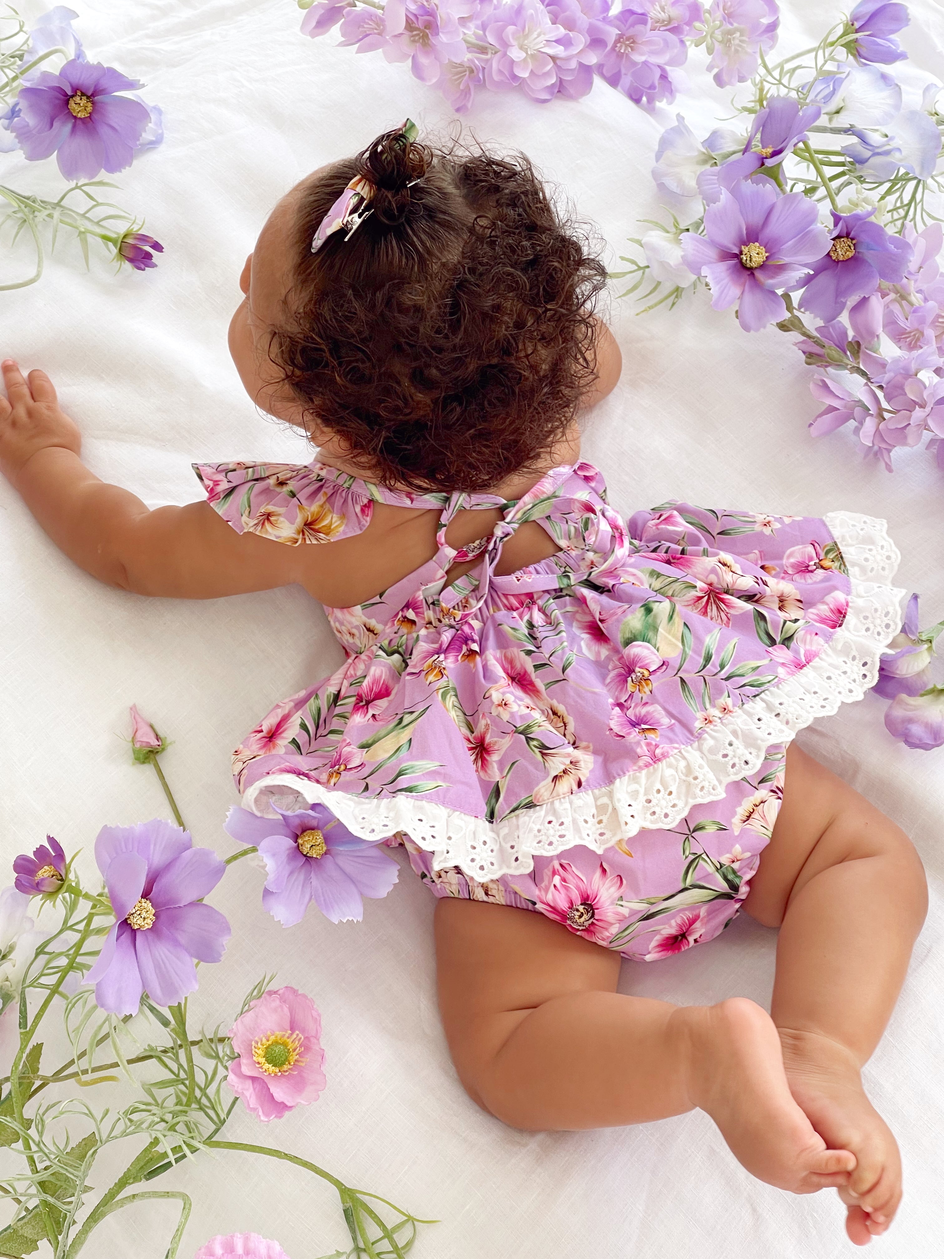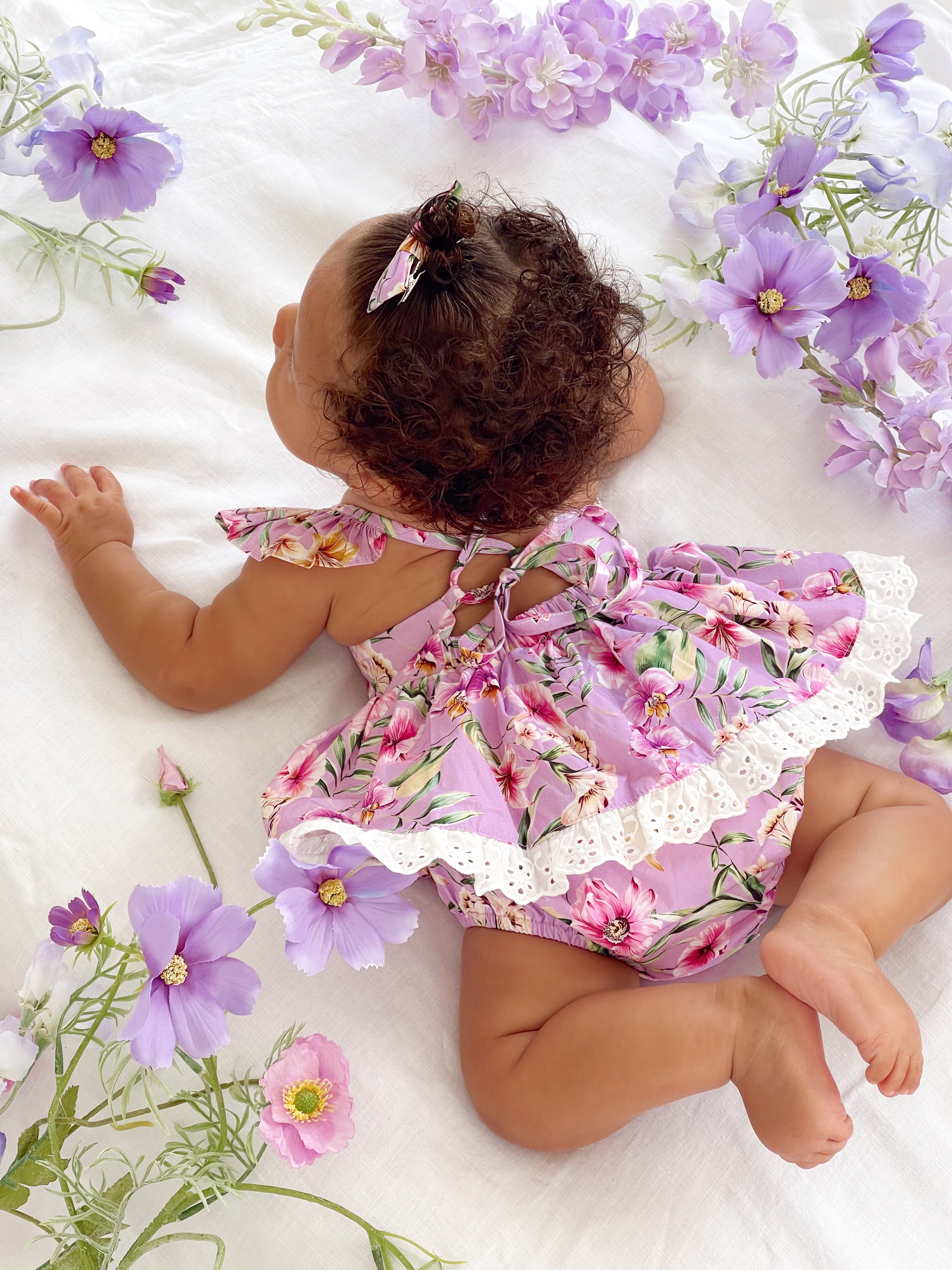 Hibiscus Breeze Baby Girl Purple Floral Cotton Romper
