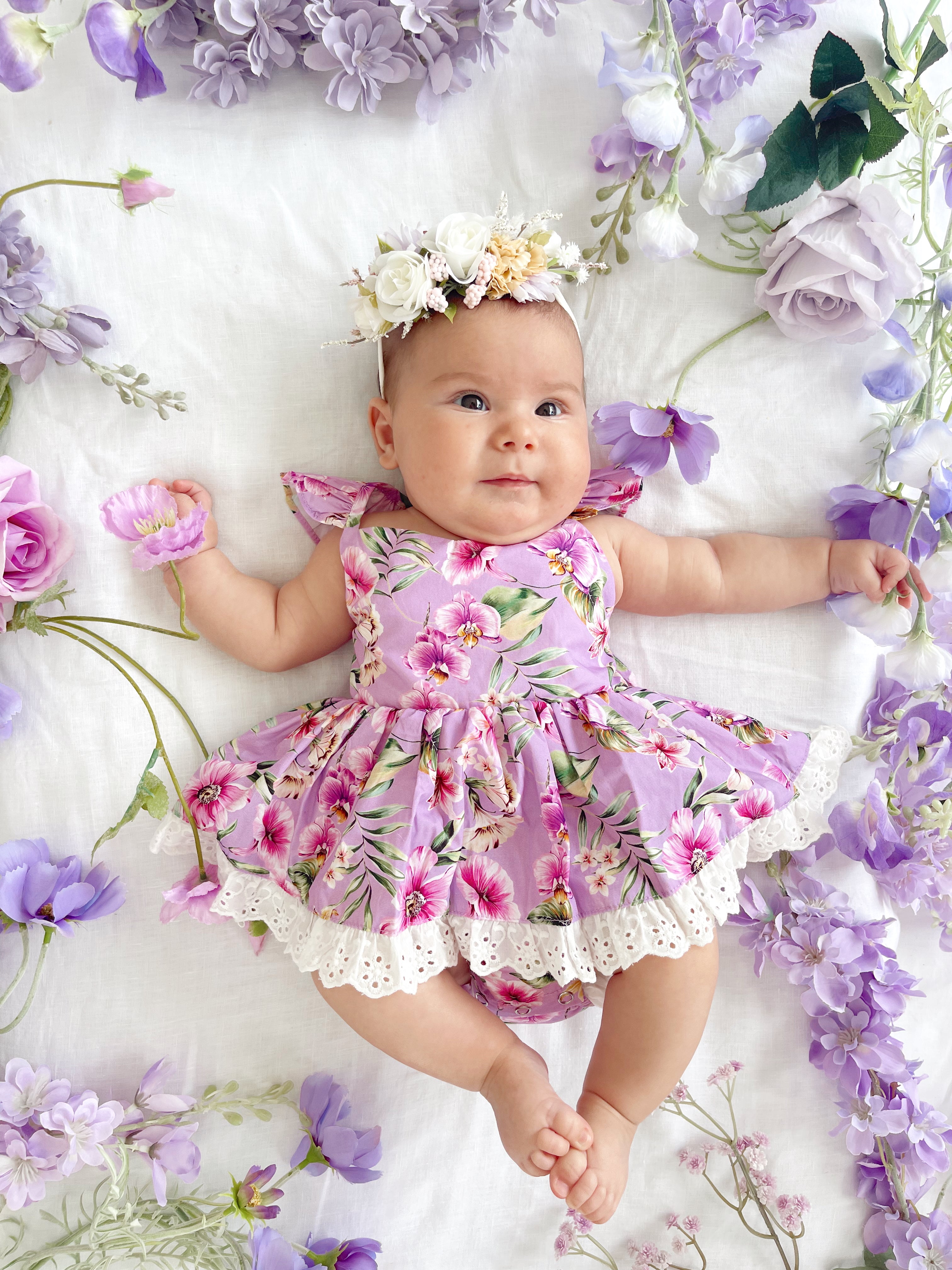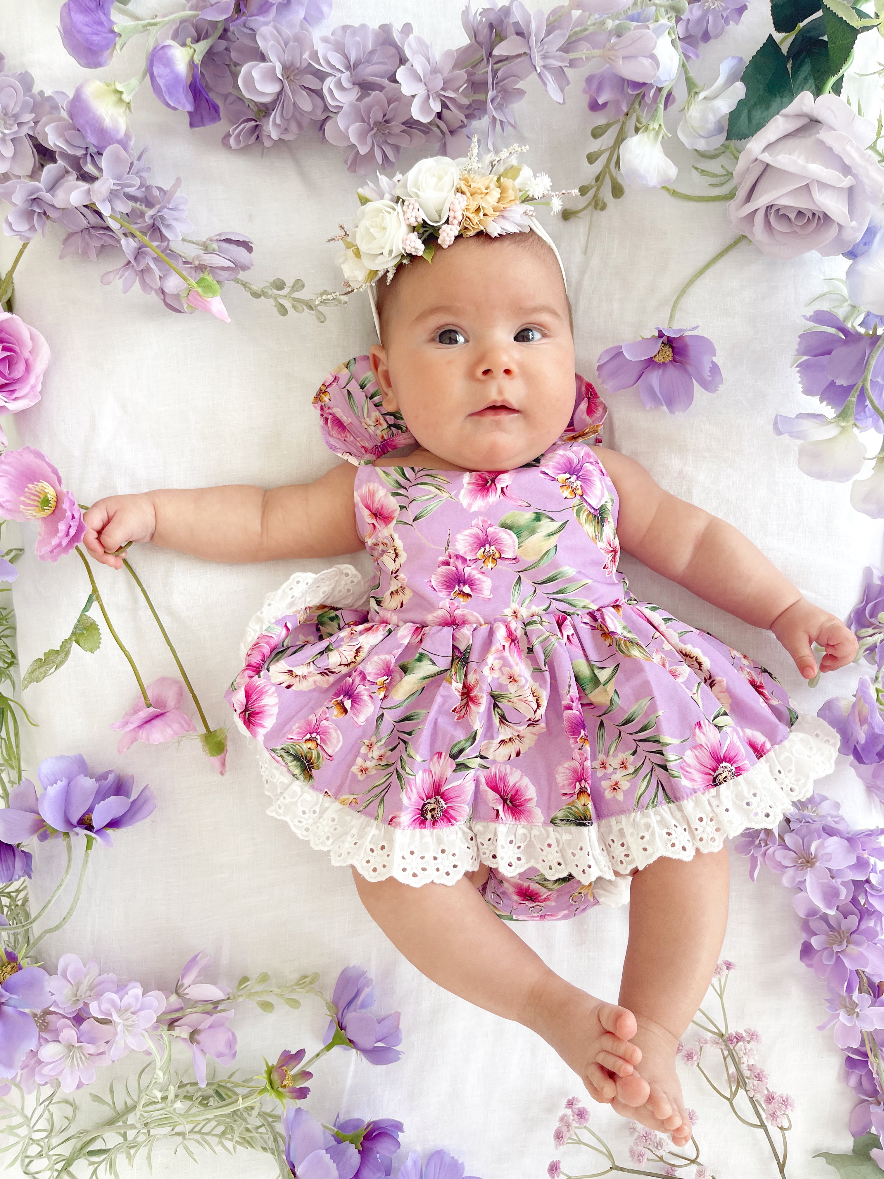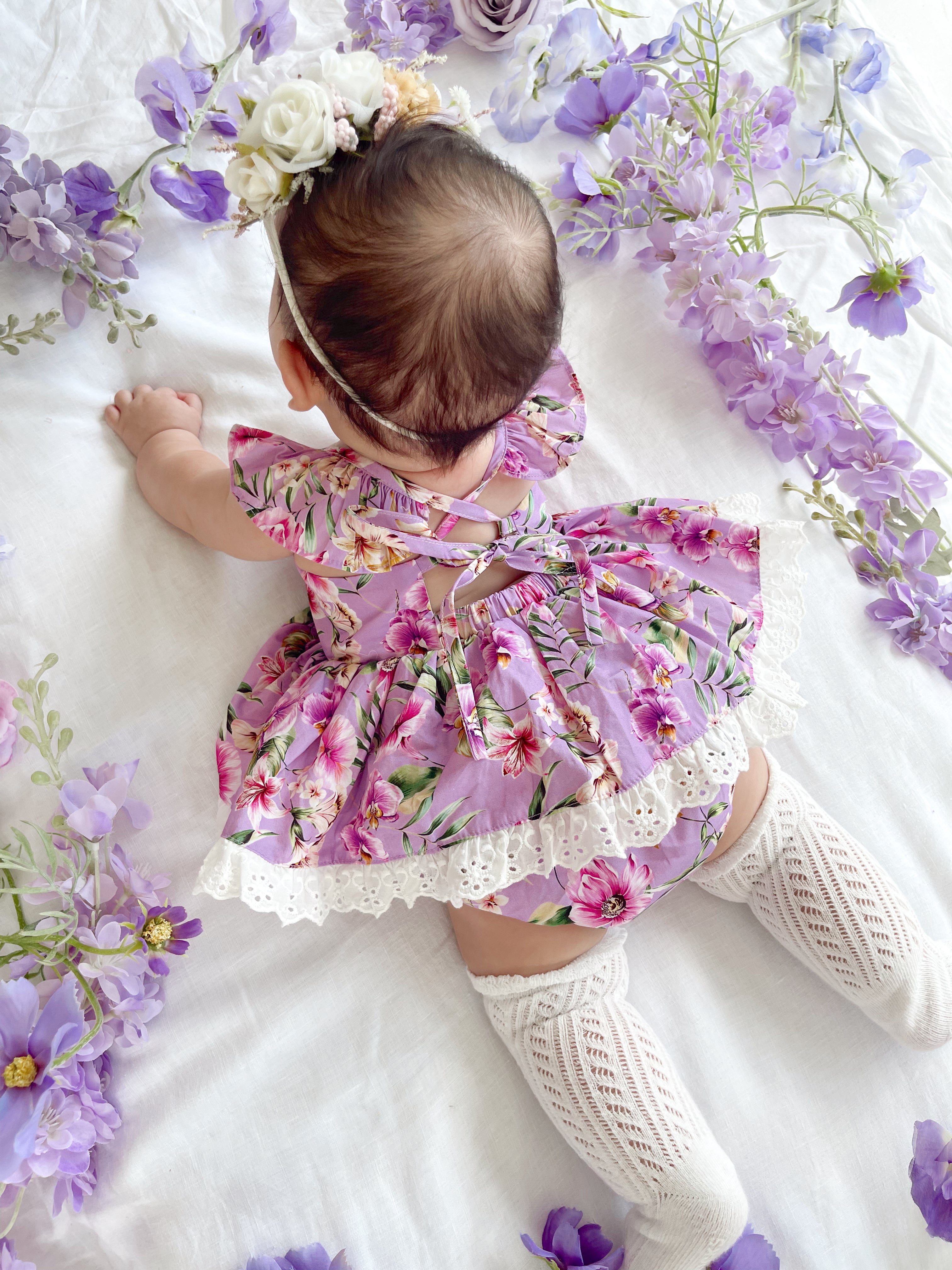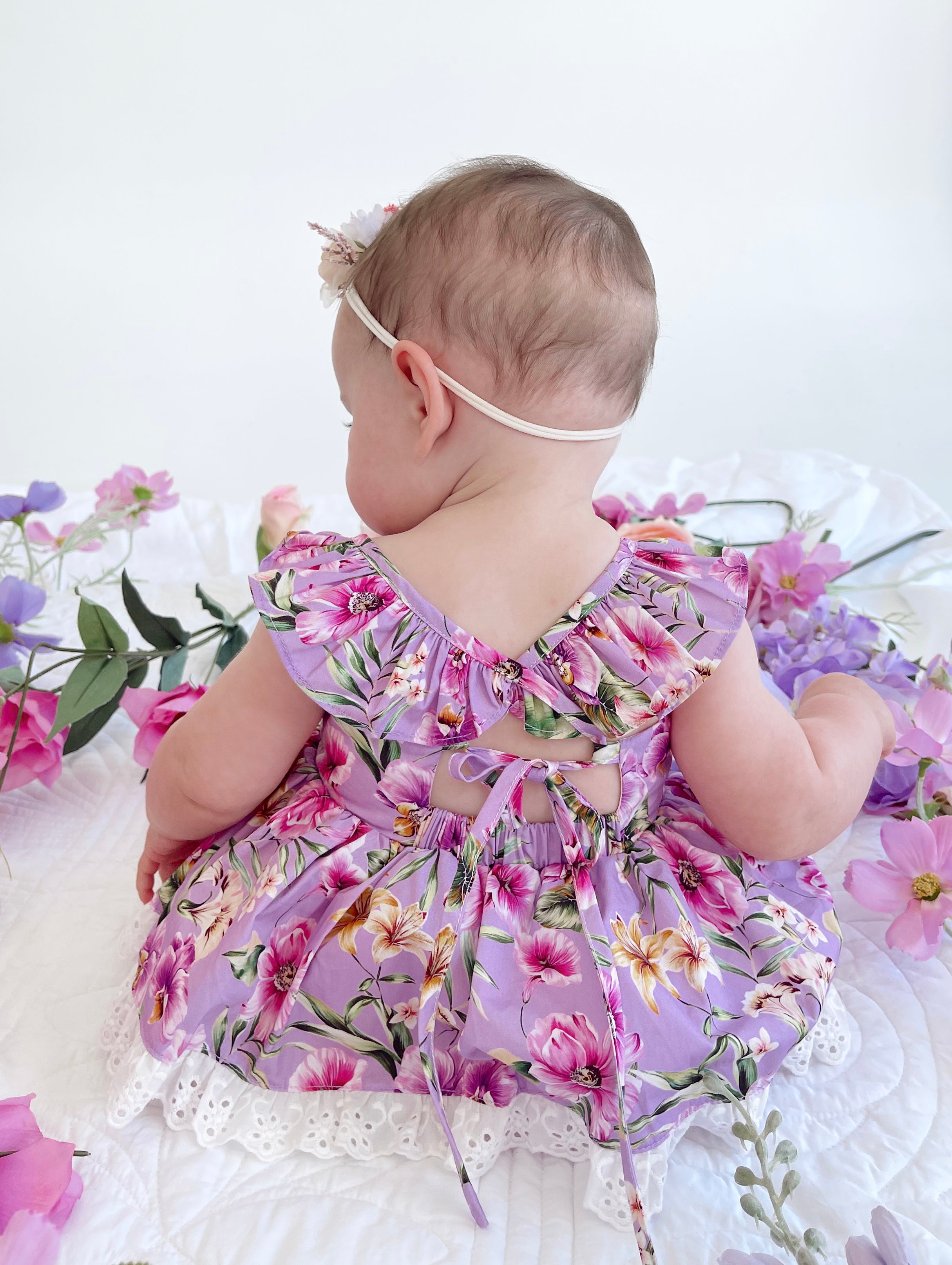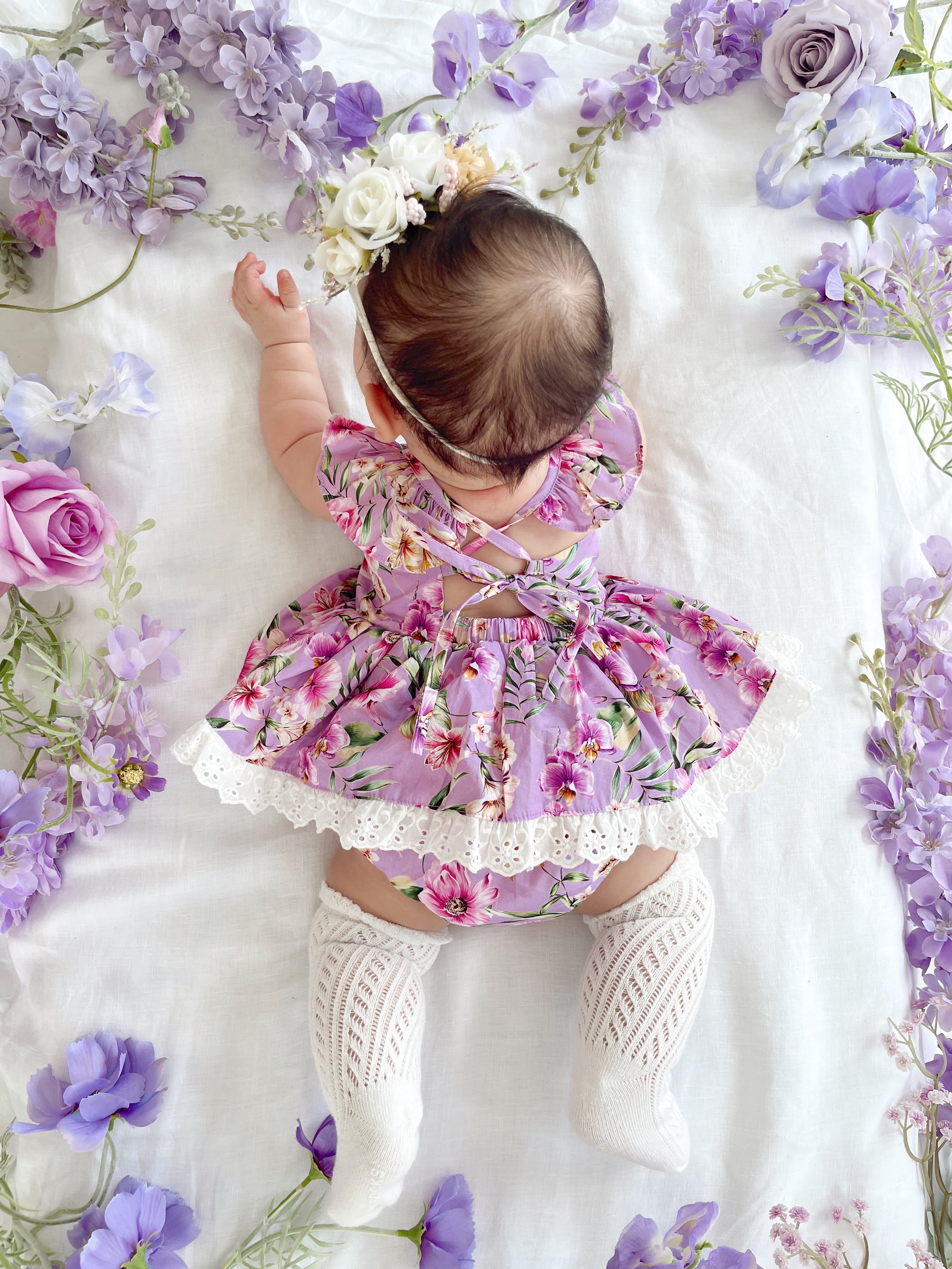 Hibiscus Breeze Baby Girl Purple Floral Cotton Romper