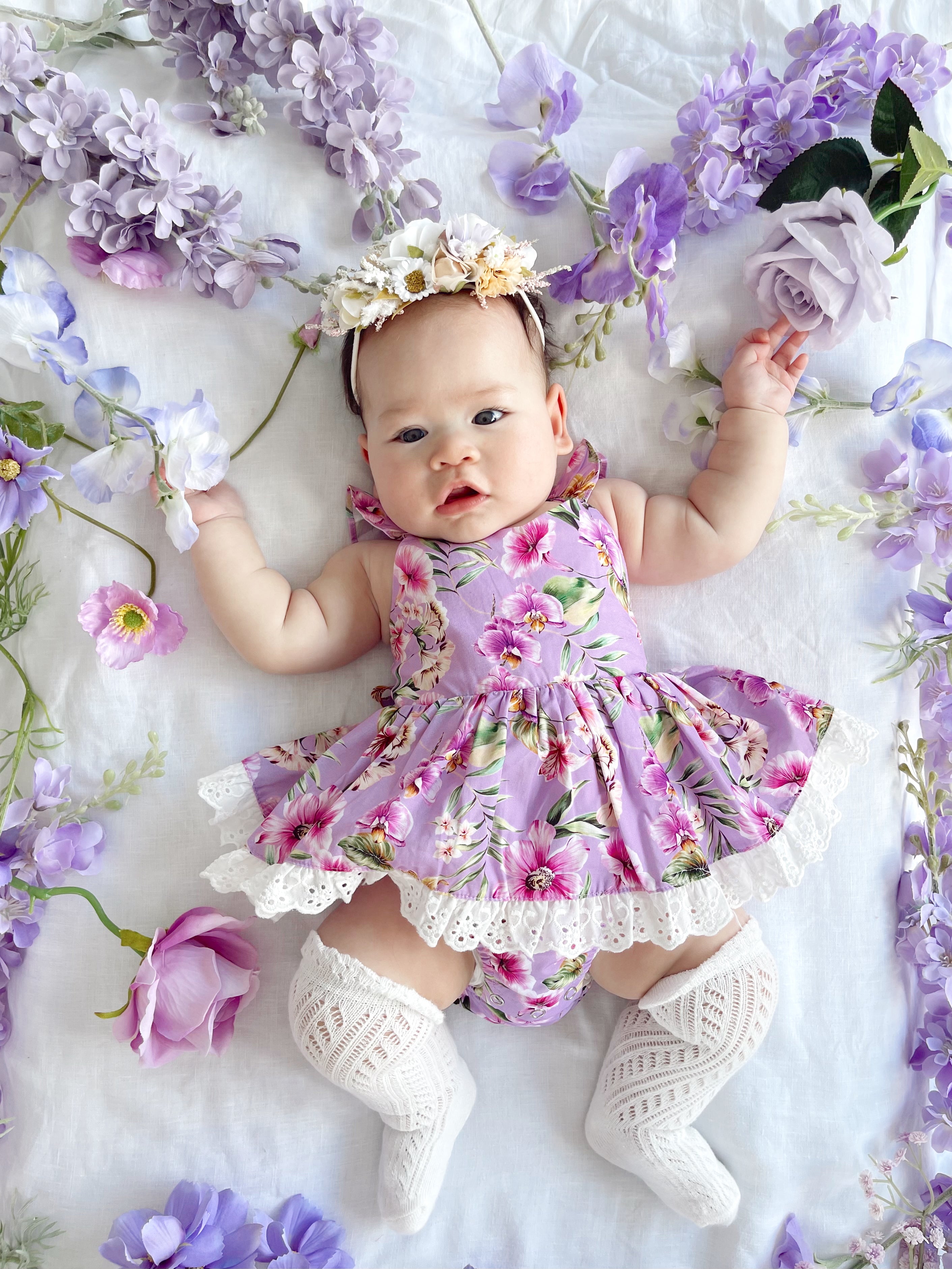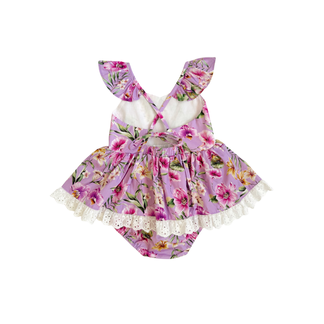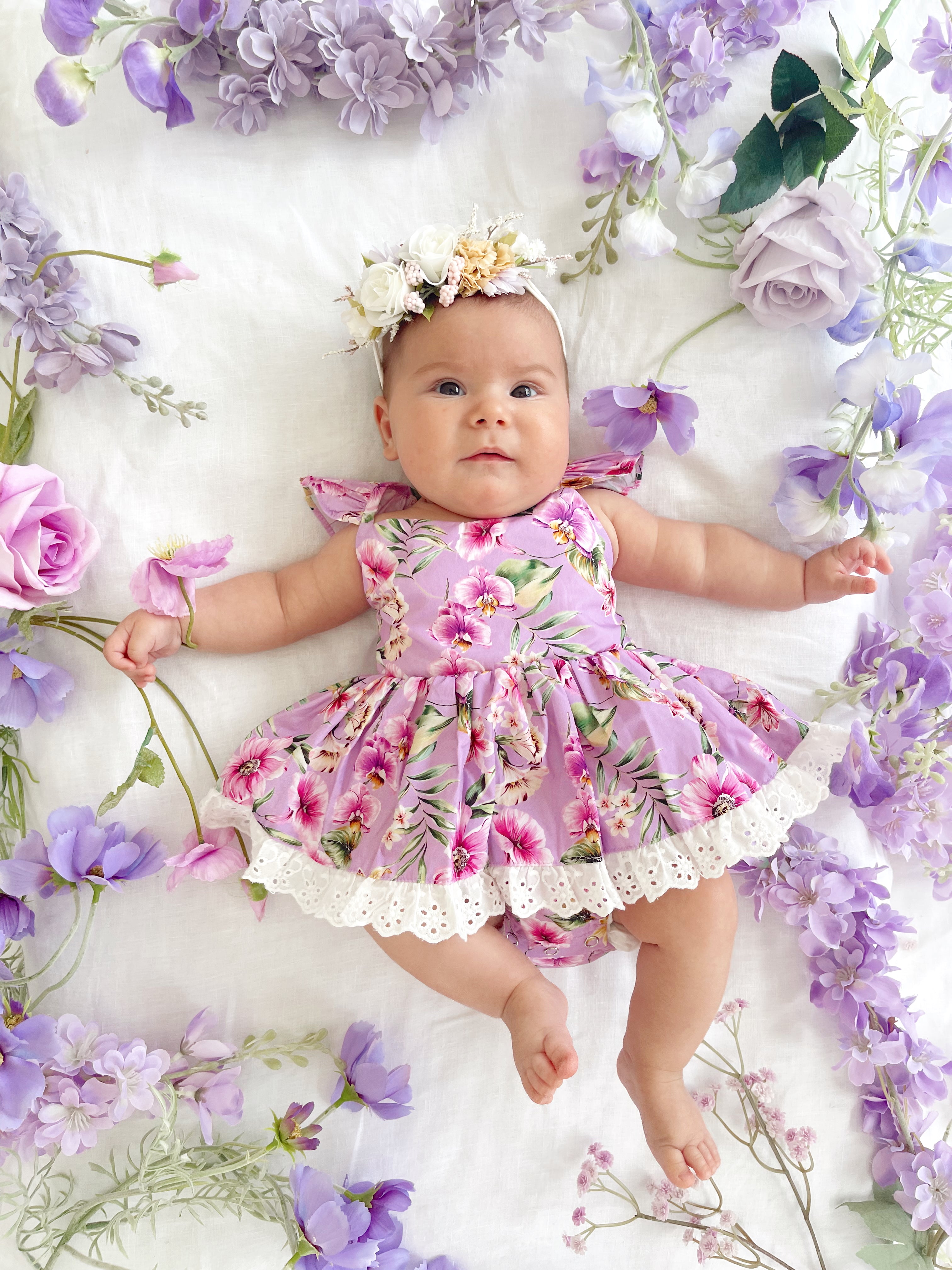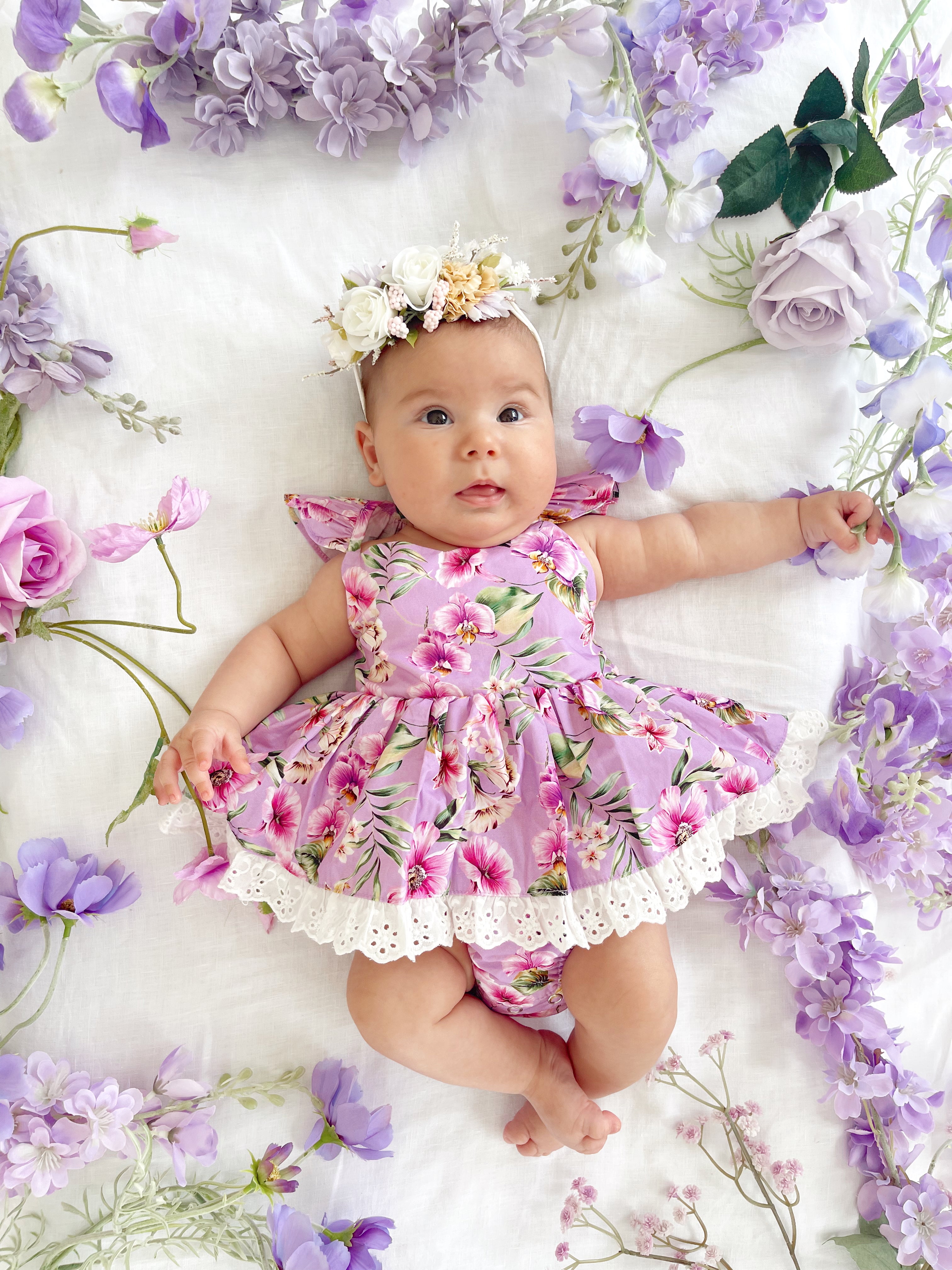 Hibiscus Breeze Baby Girl Purple Floral Cotton Romper