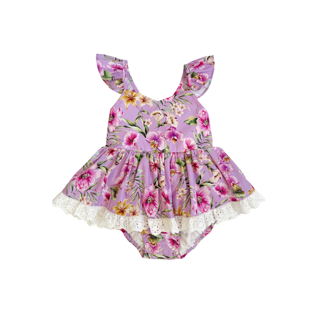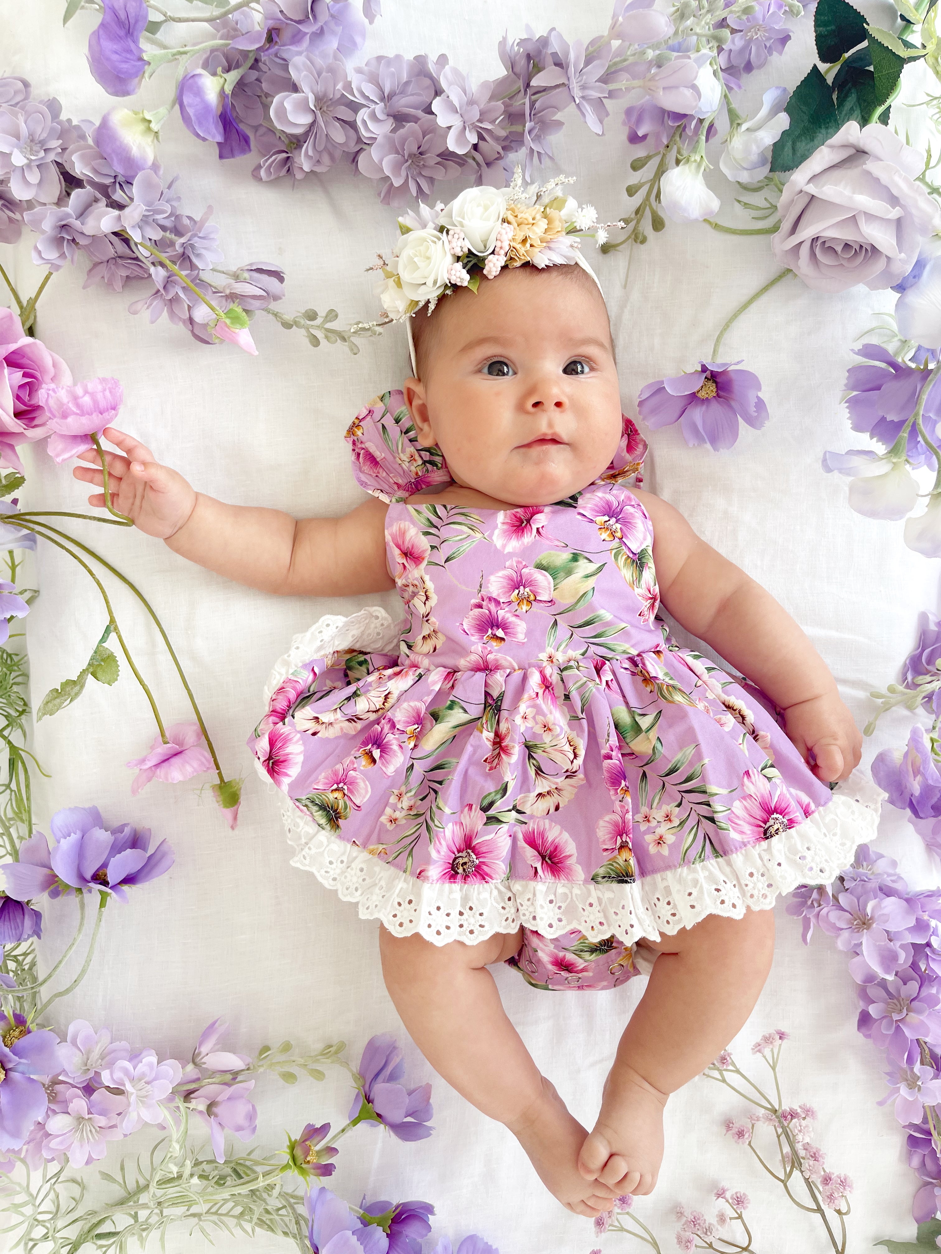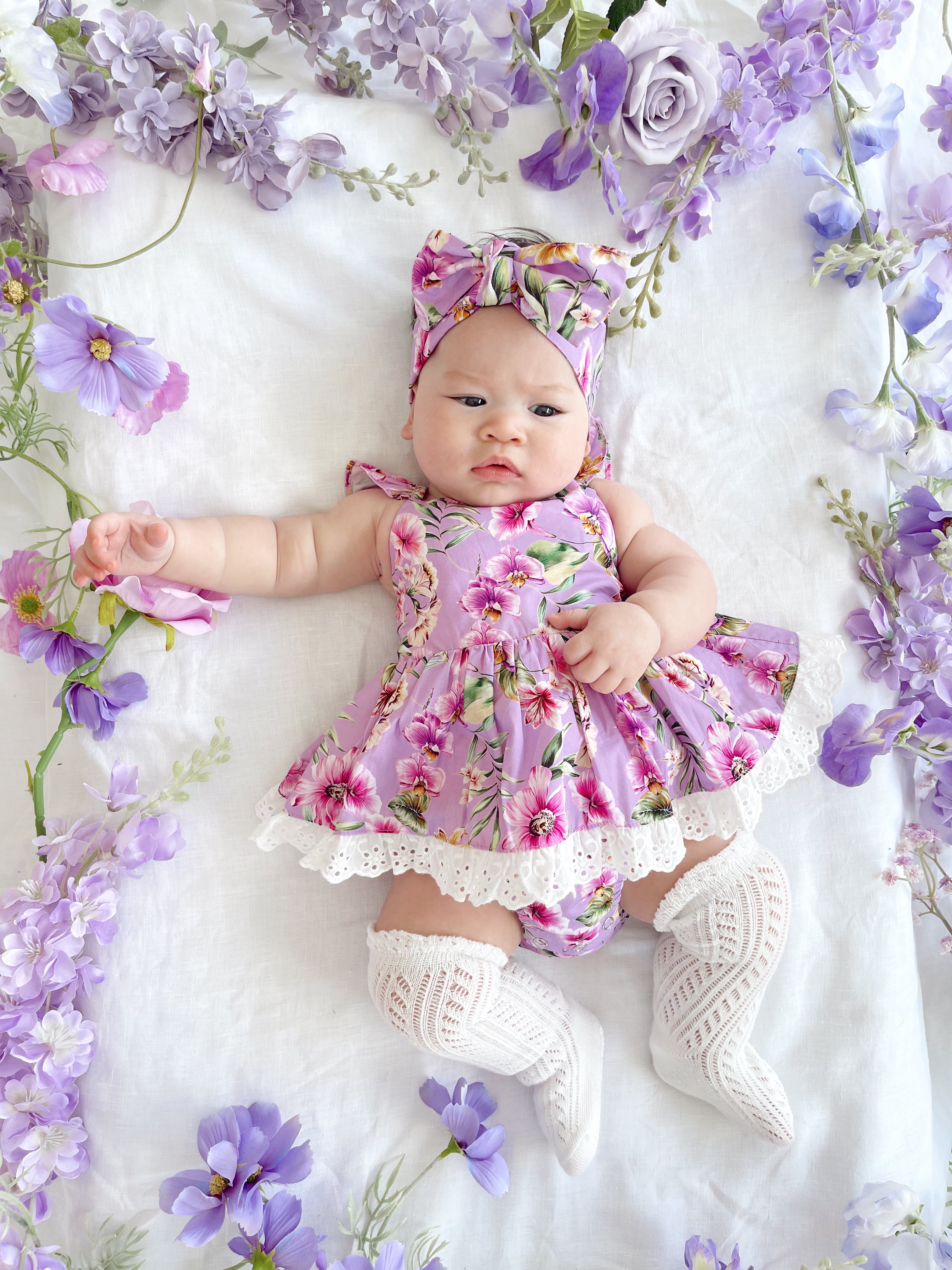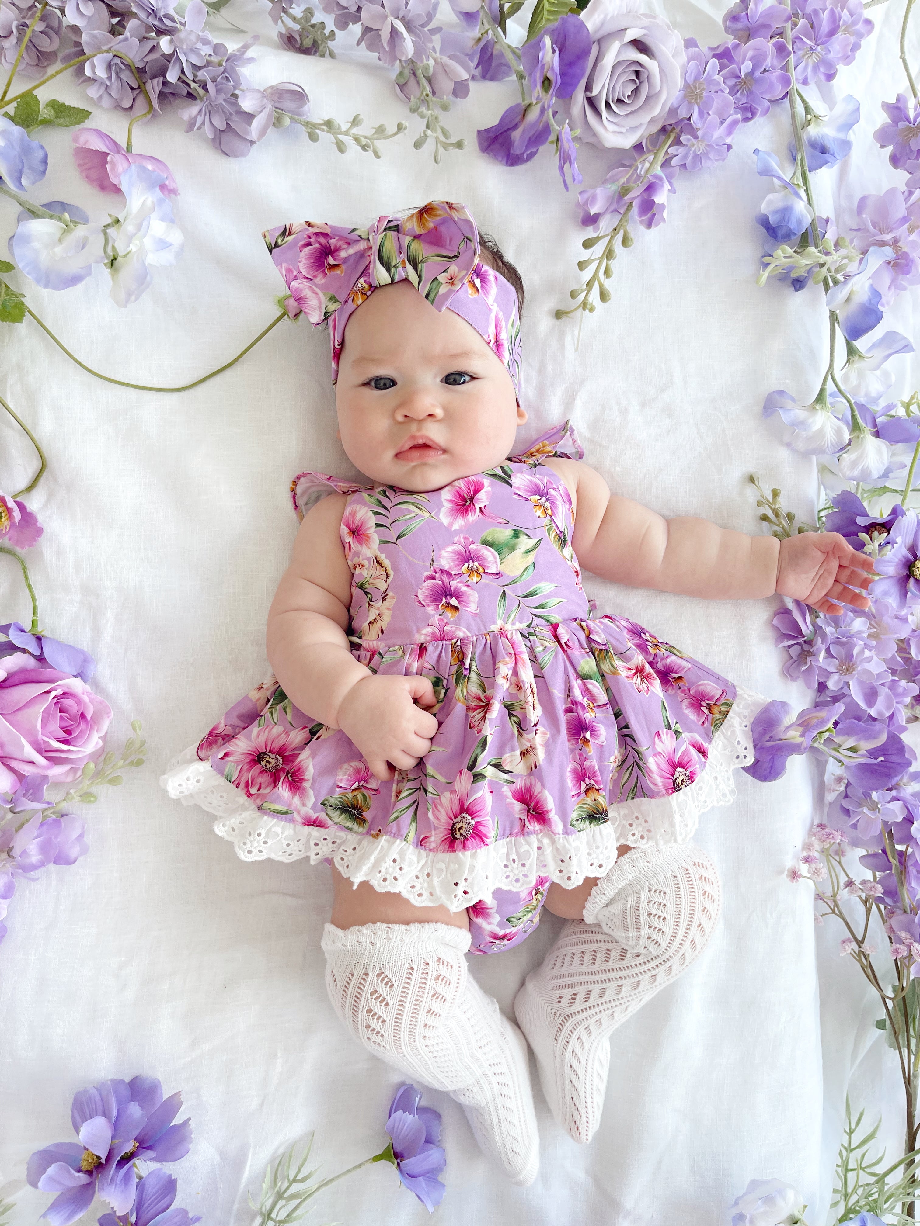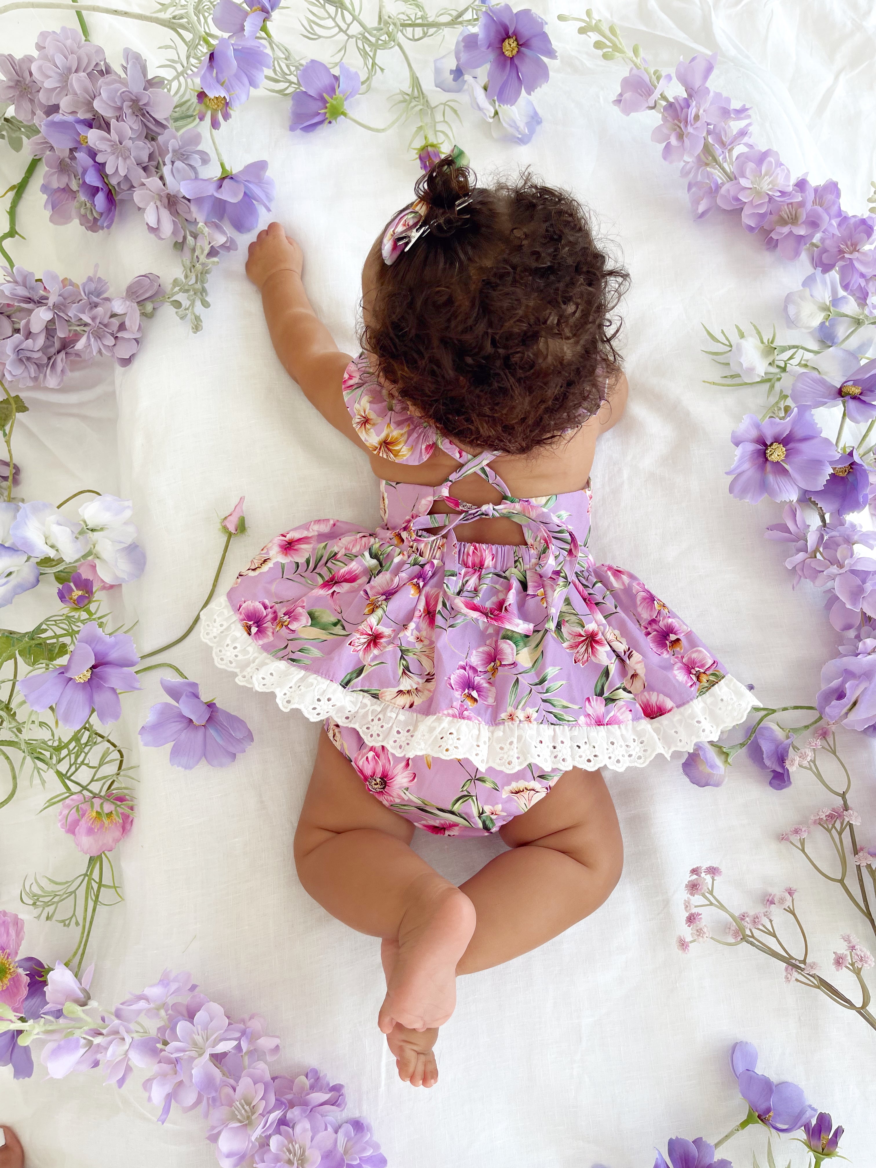 Hibiscus Breeze Baby Girl Purple Floral Cotton Romper