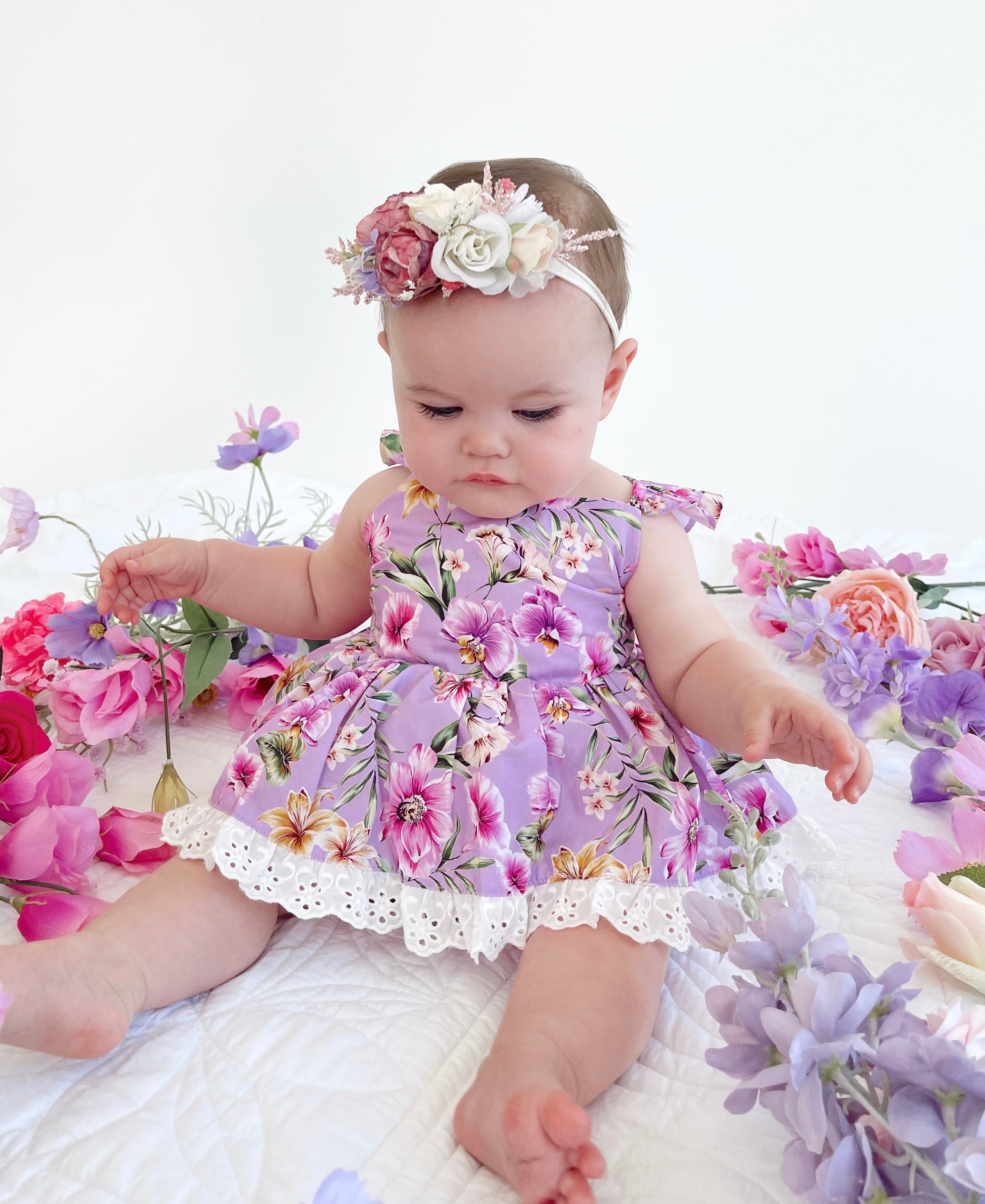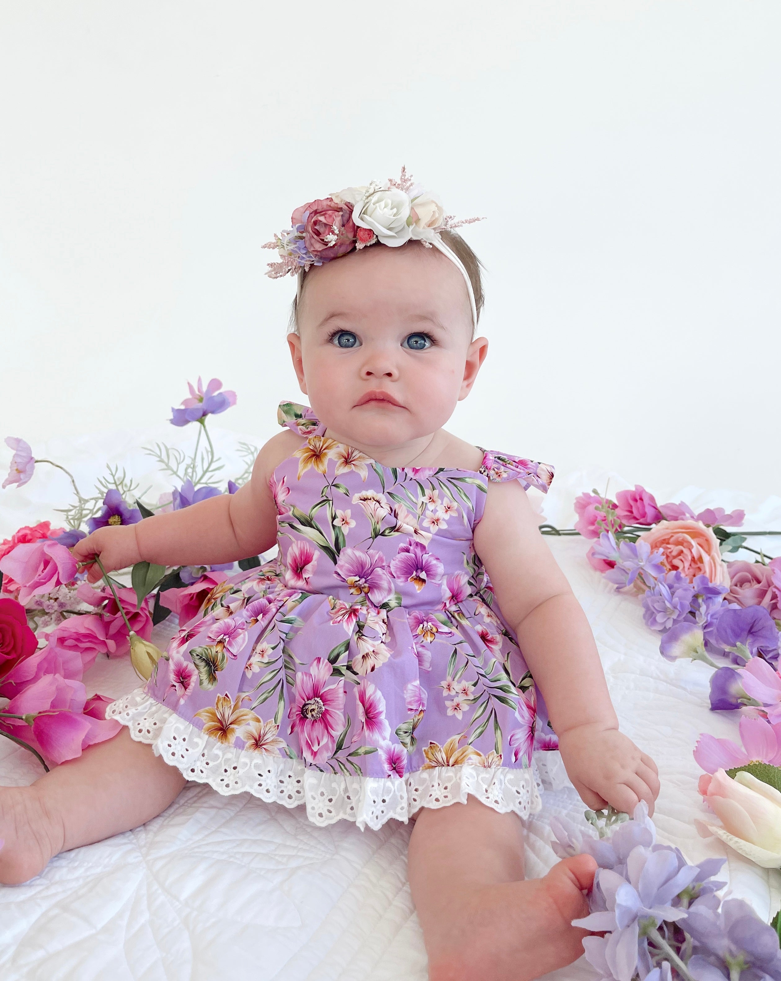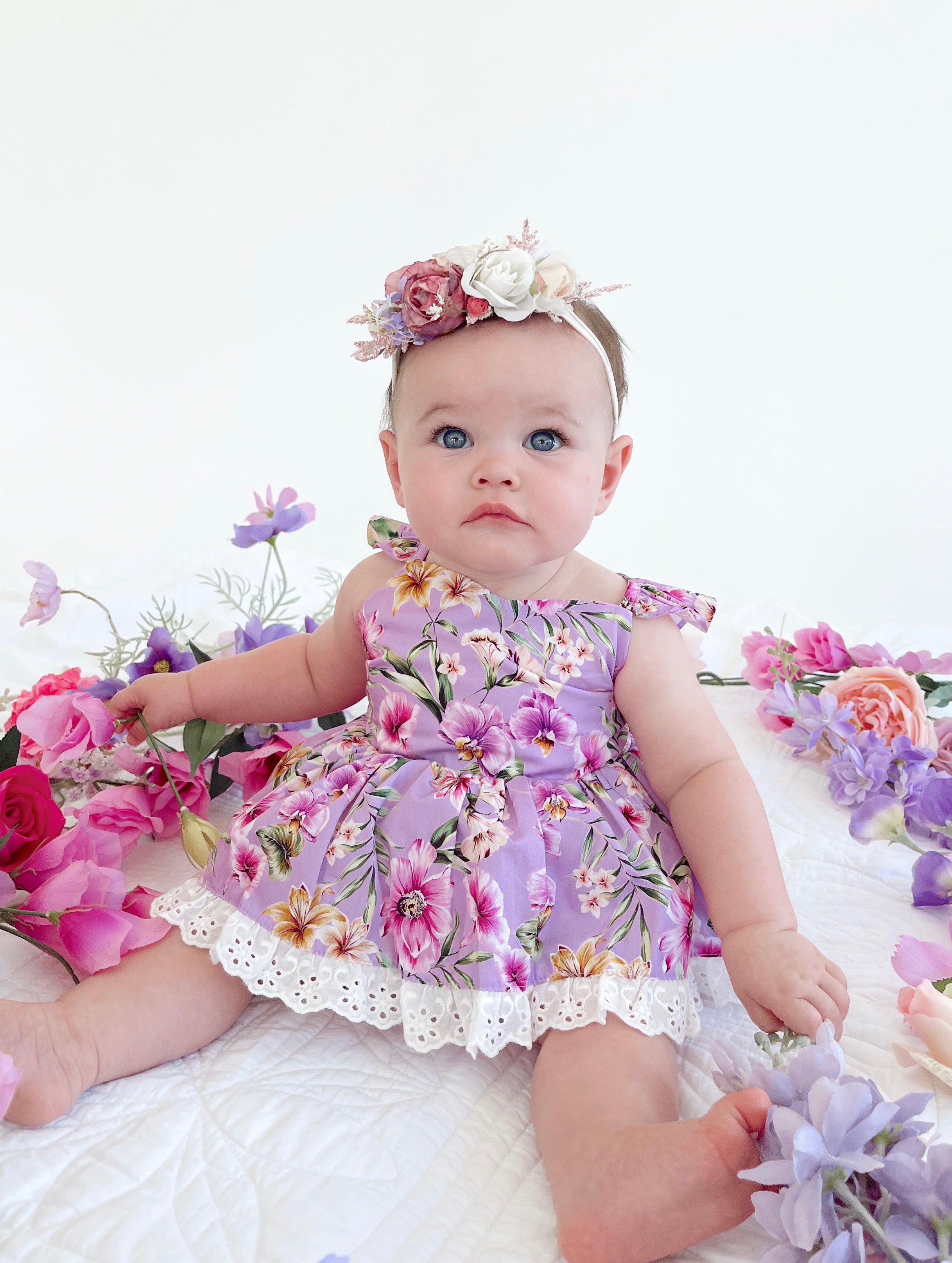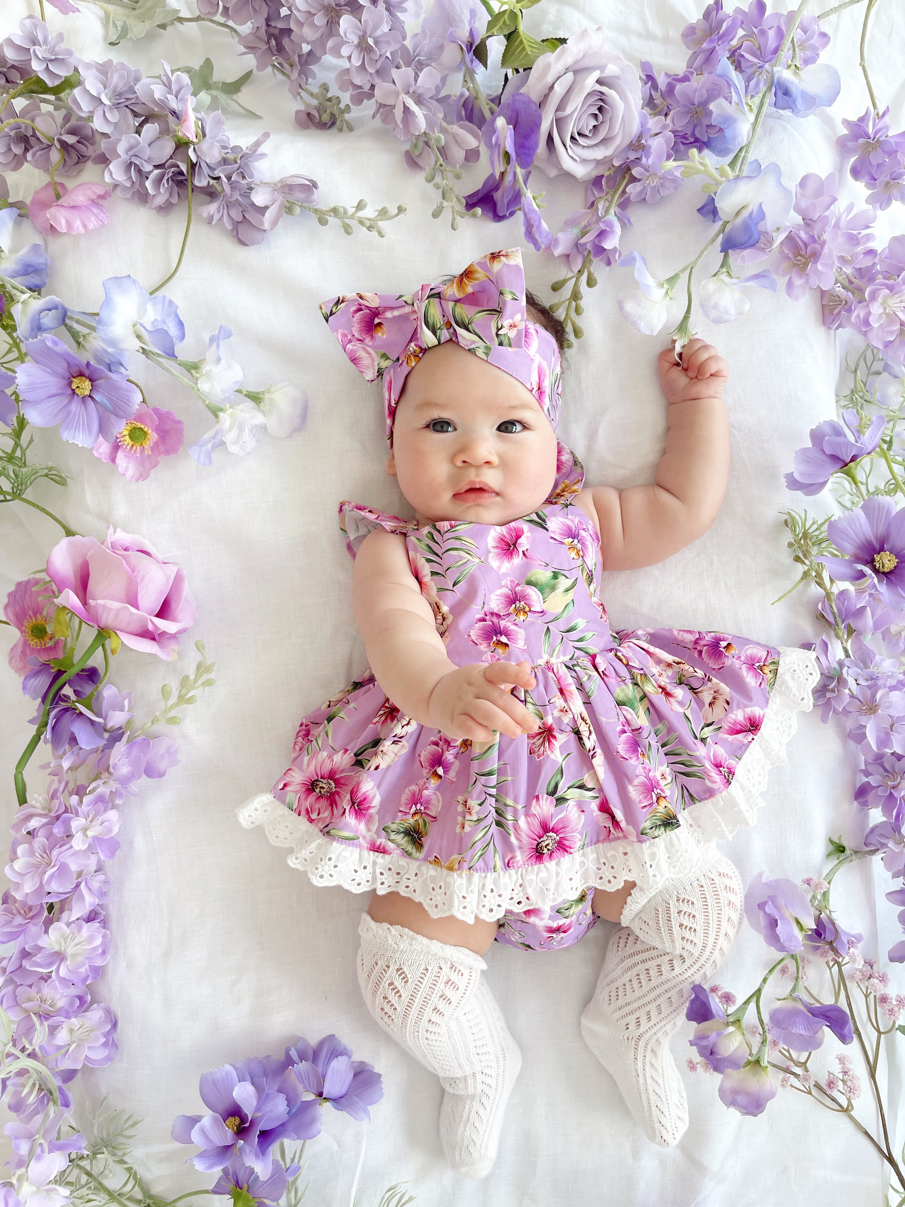 Hibiscus Breeze Baby Girl Purple Floral Cotton Romper