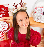 Our Angel Christmas Reindeer Garland features sweet white florals with reindeer antlers. Add that extra special touch to your little girls festive outfit.