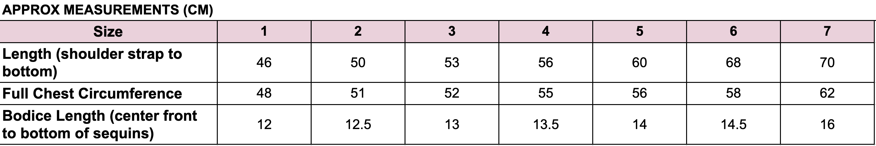 Please note: Sequin placement and quantity on the bodice will vary slightly on each individual item. Bows do not come pre-tied and can be tied at the front or back of the dress. This style has no stretch in the chest, so it’s easy to size up if your child is between sizes. Be sure to check the size chart in the photo gallery.