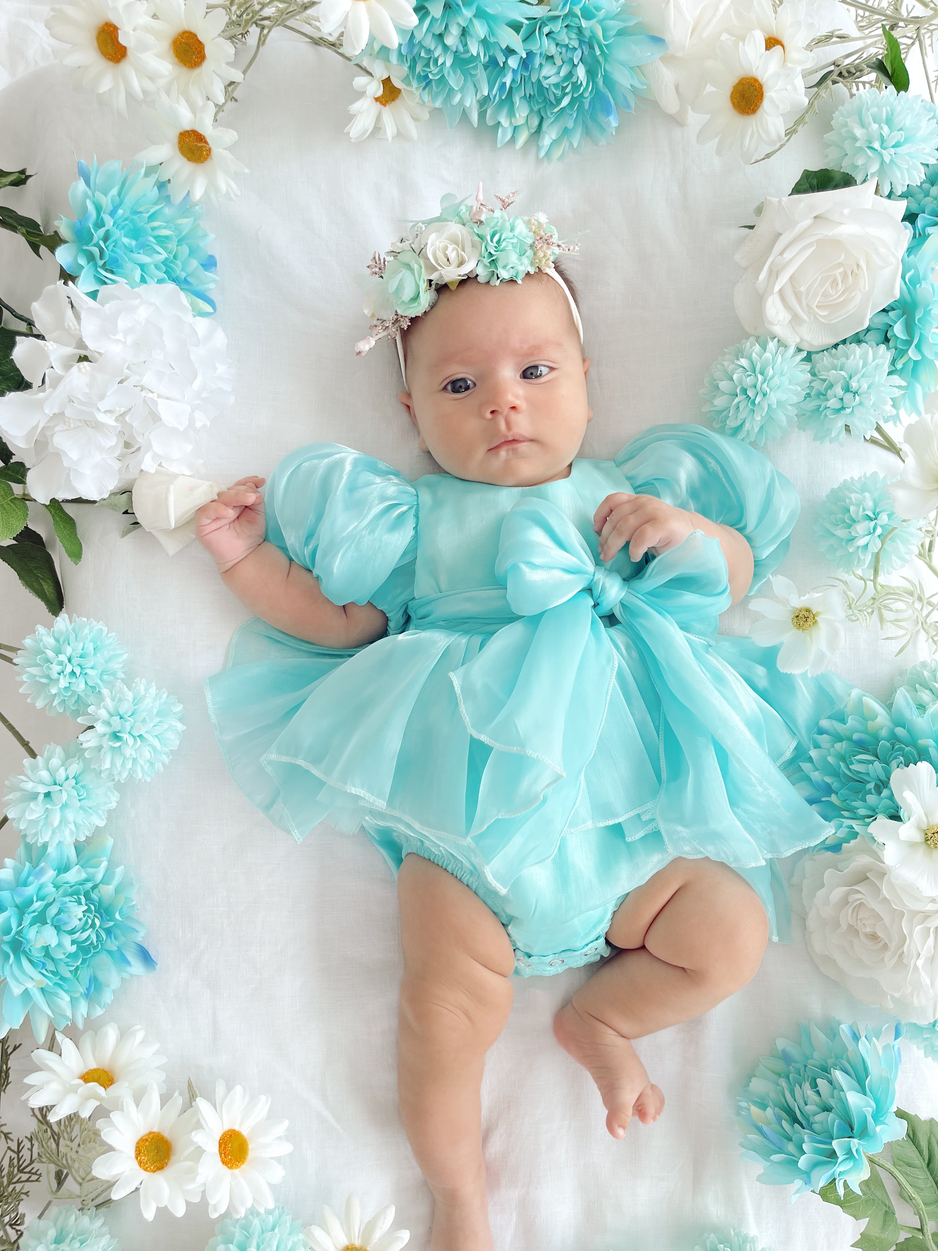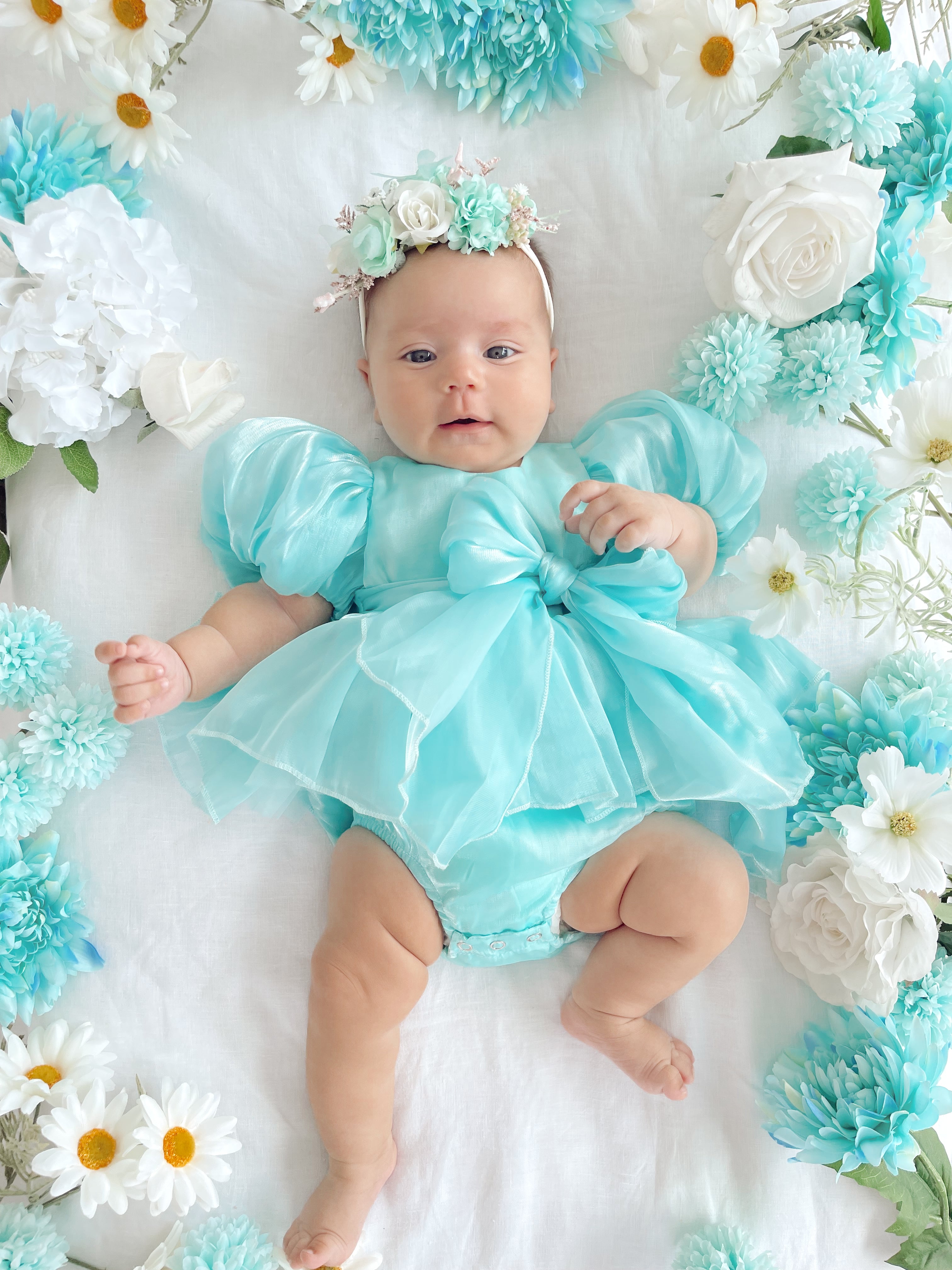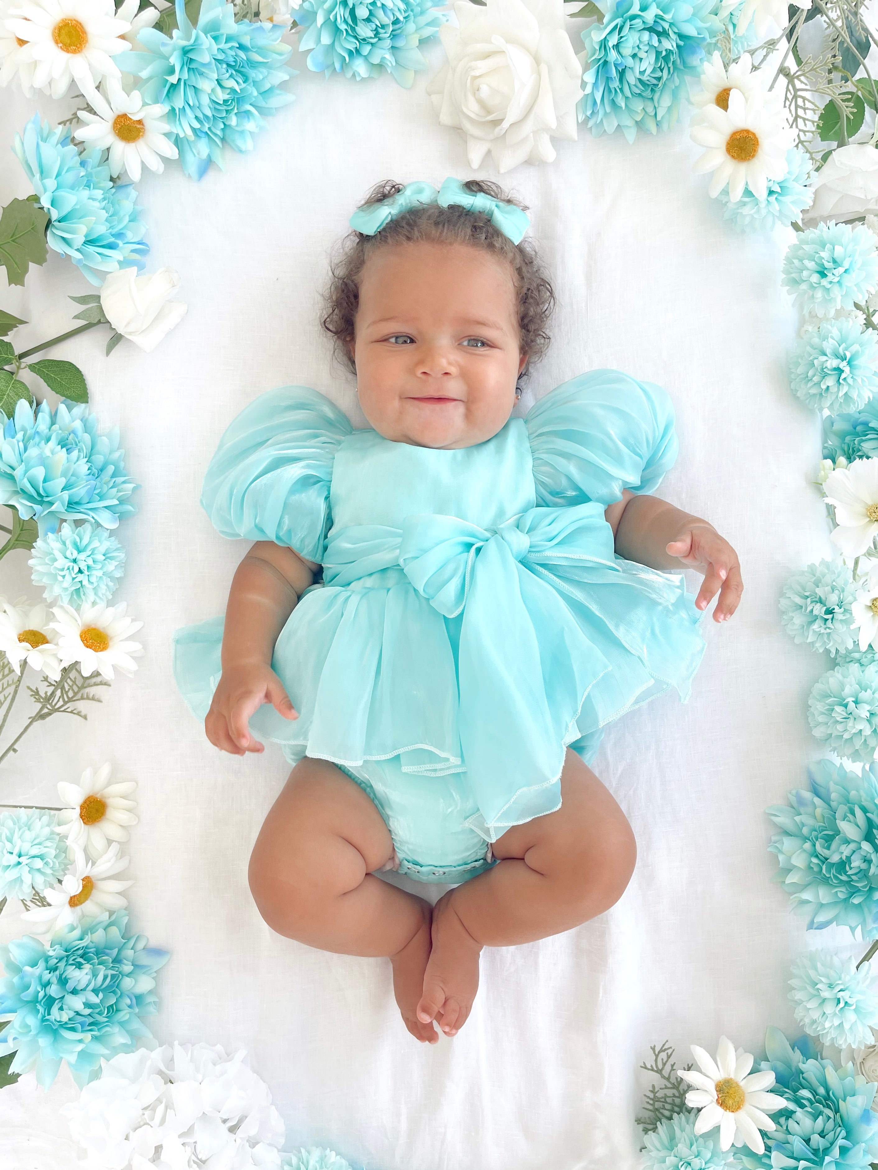 Dolly Turquoise Sky Organza Baby Girl Blue Party Romper
