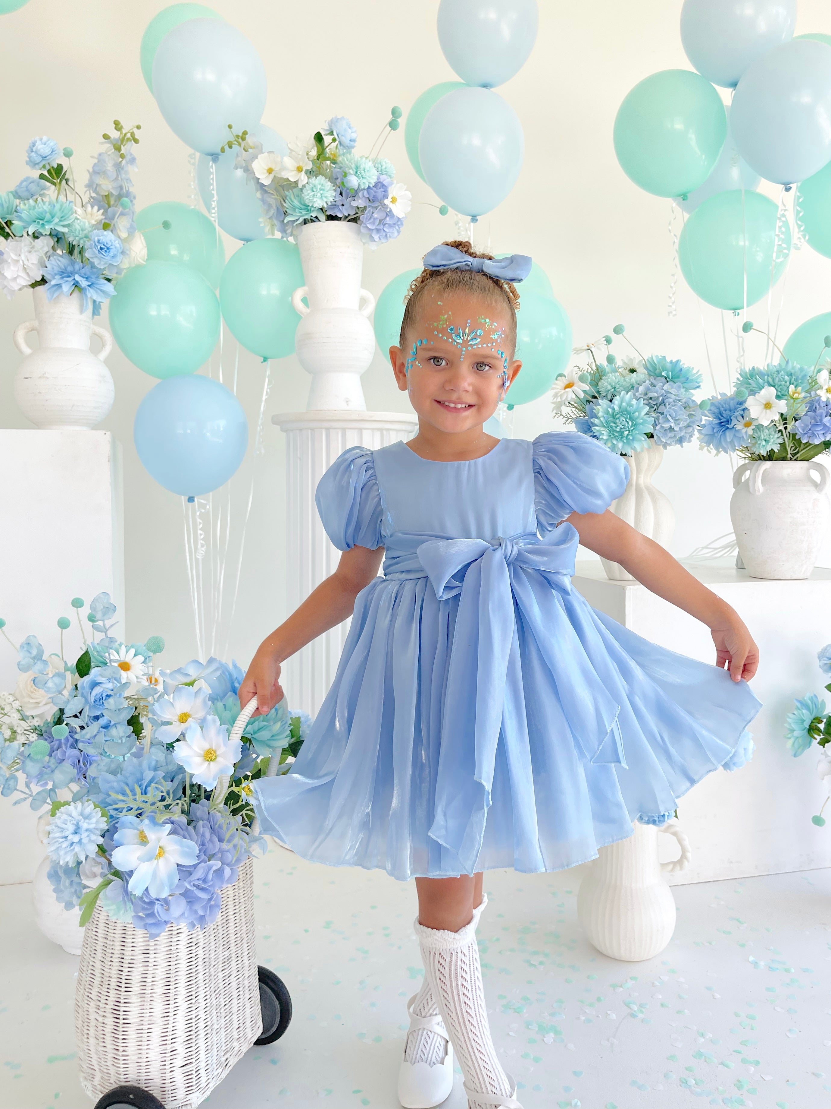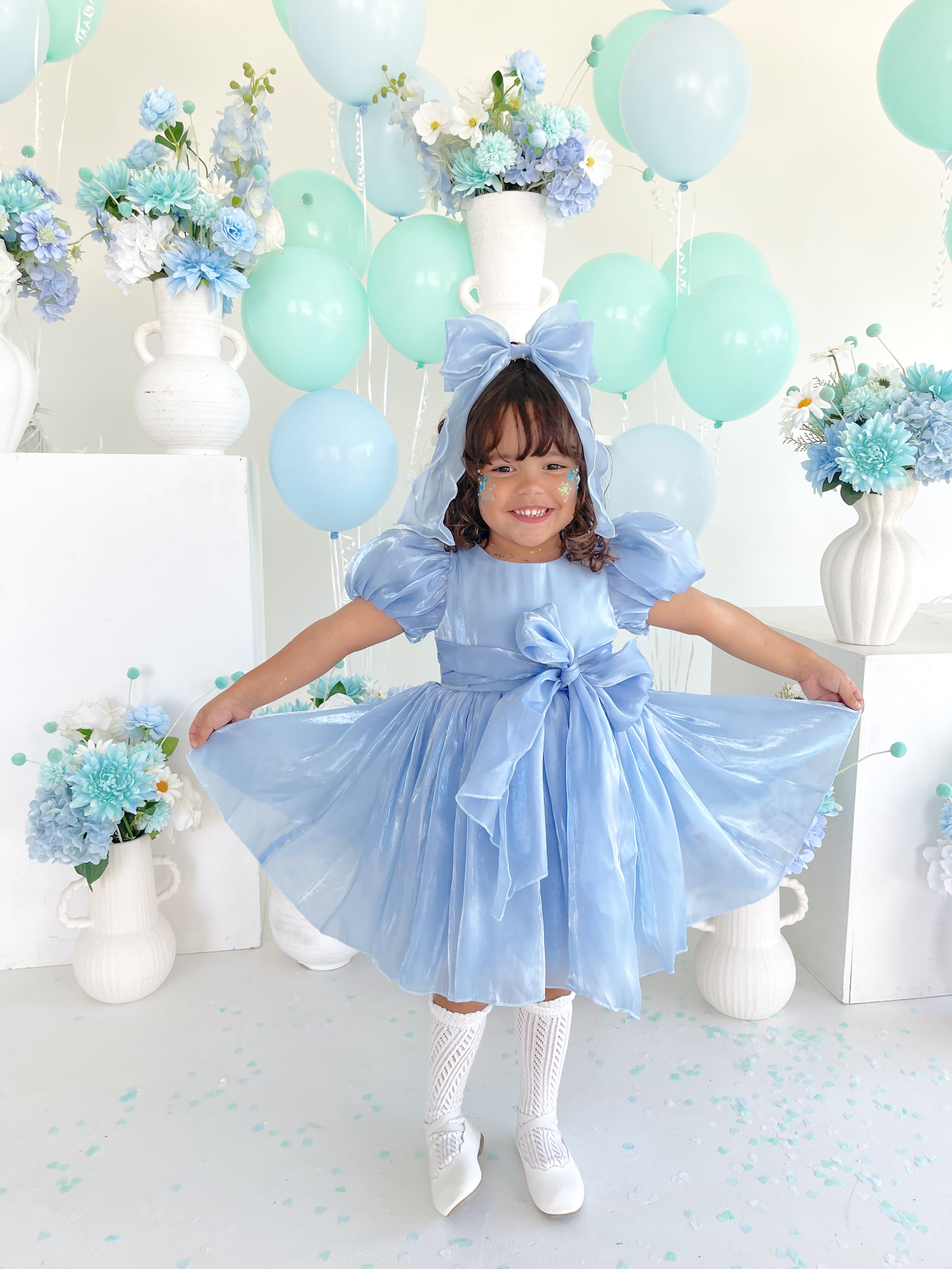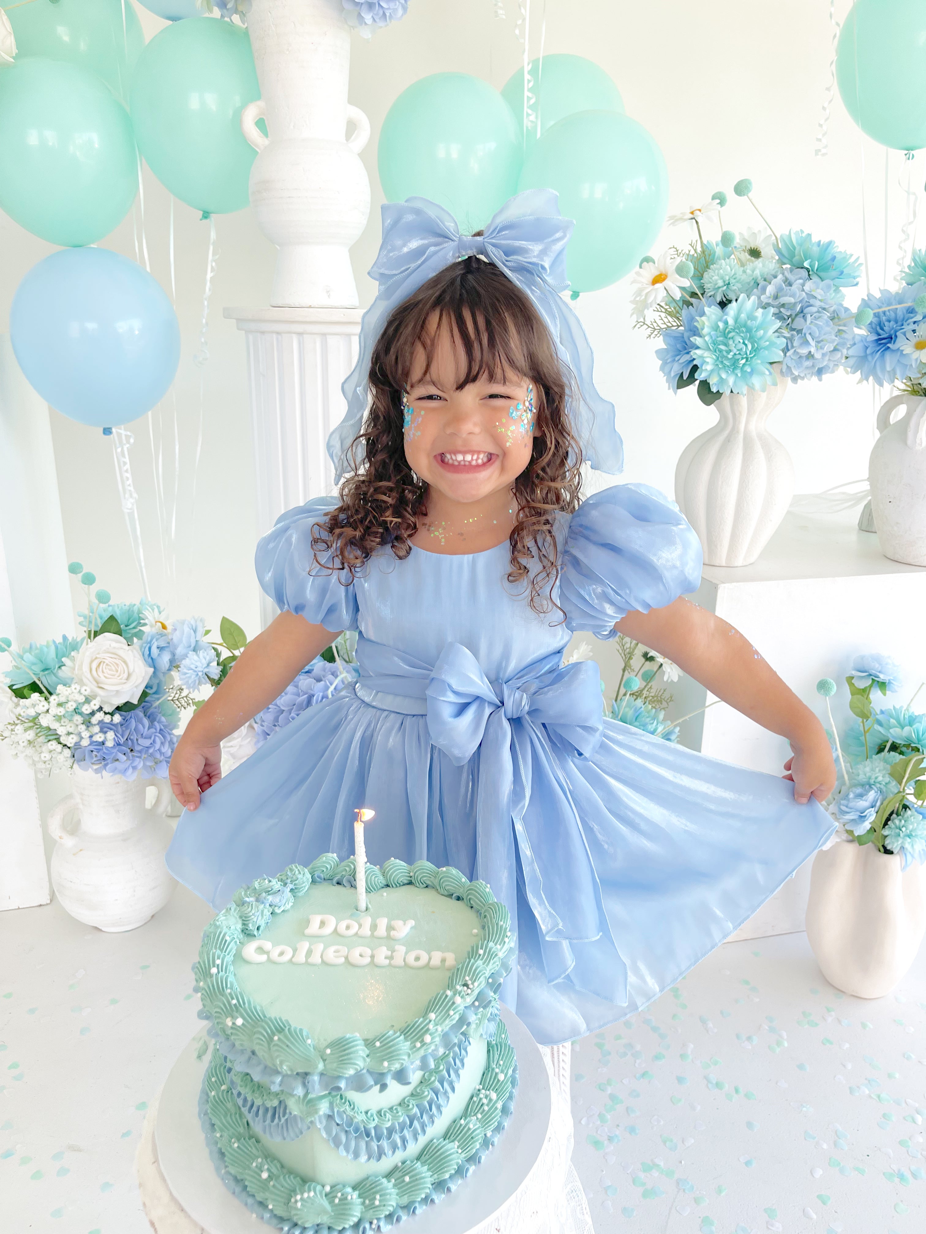 Everyone’s favourite collection is back! The Dolly Blue Collection has been thoughtfully crafted from stunning glossy organza, bringing elegance to every detail. Discover two beautiful new colourways, Turquoise Sky and Dove Blue, perfectly complementing the collection. Featuring dresses, matching baby sister rompers, and of course, coordinating accessories, this collection is designed to make every moment feel extra special!