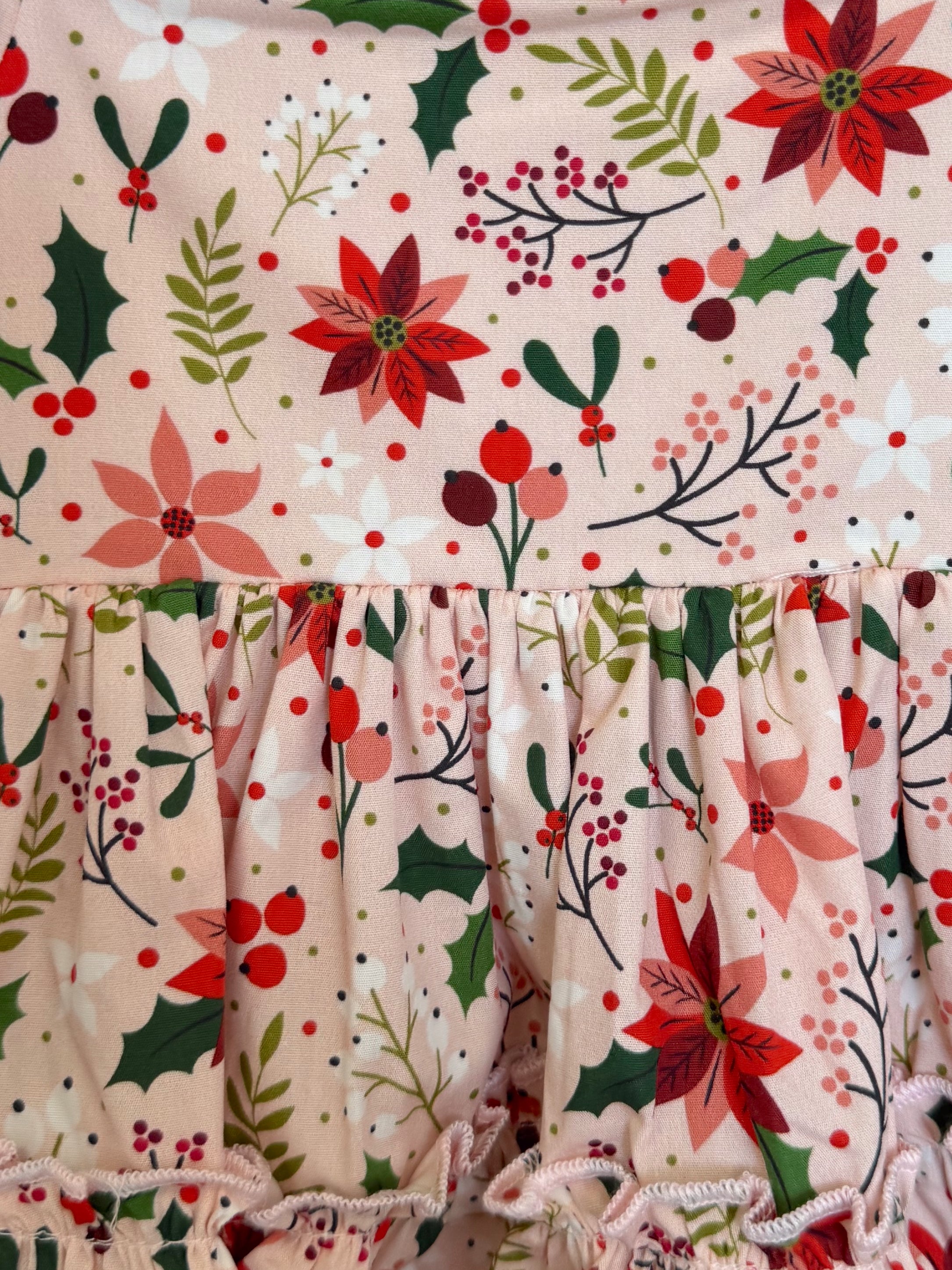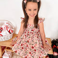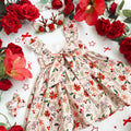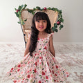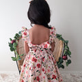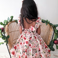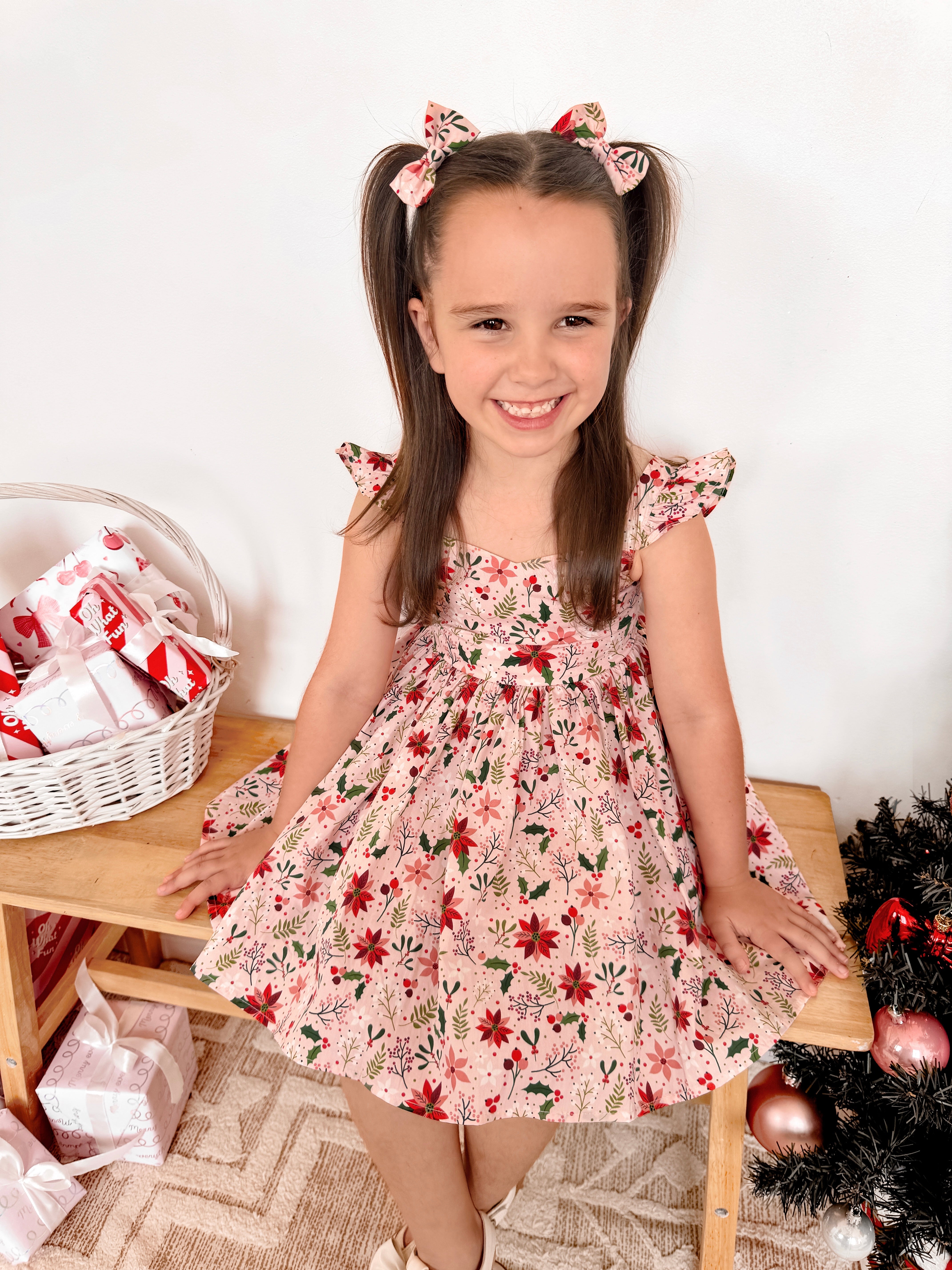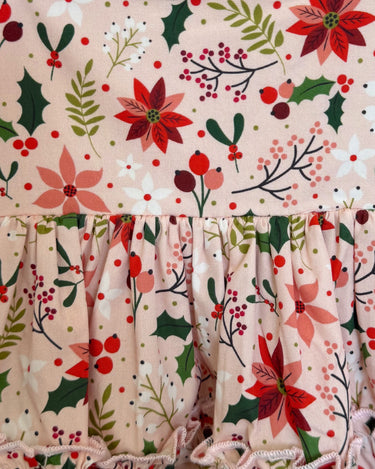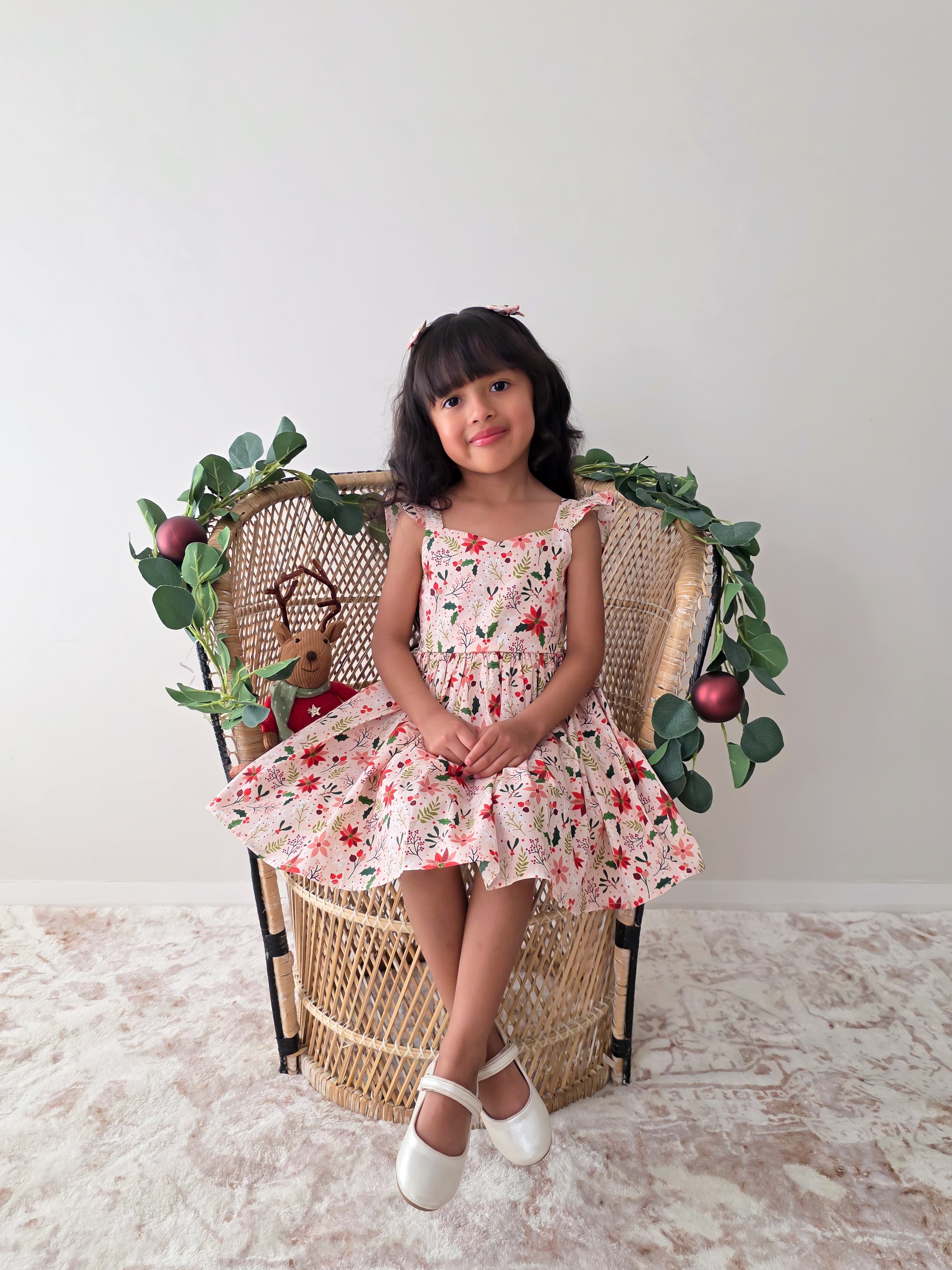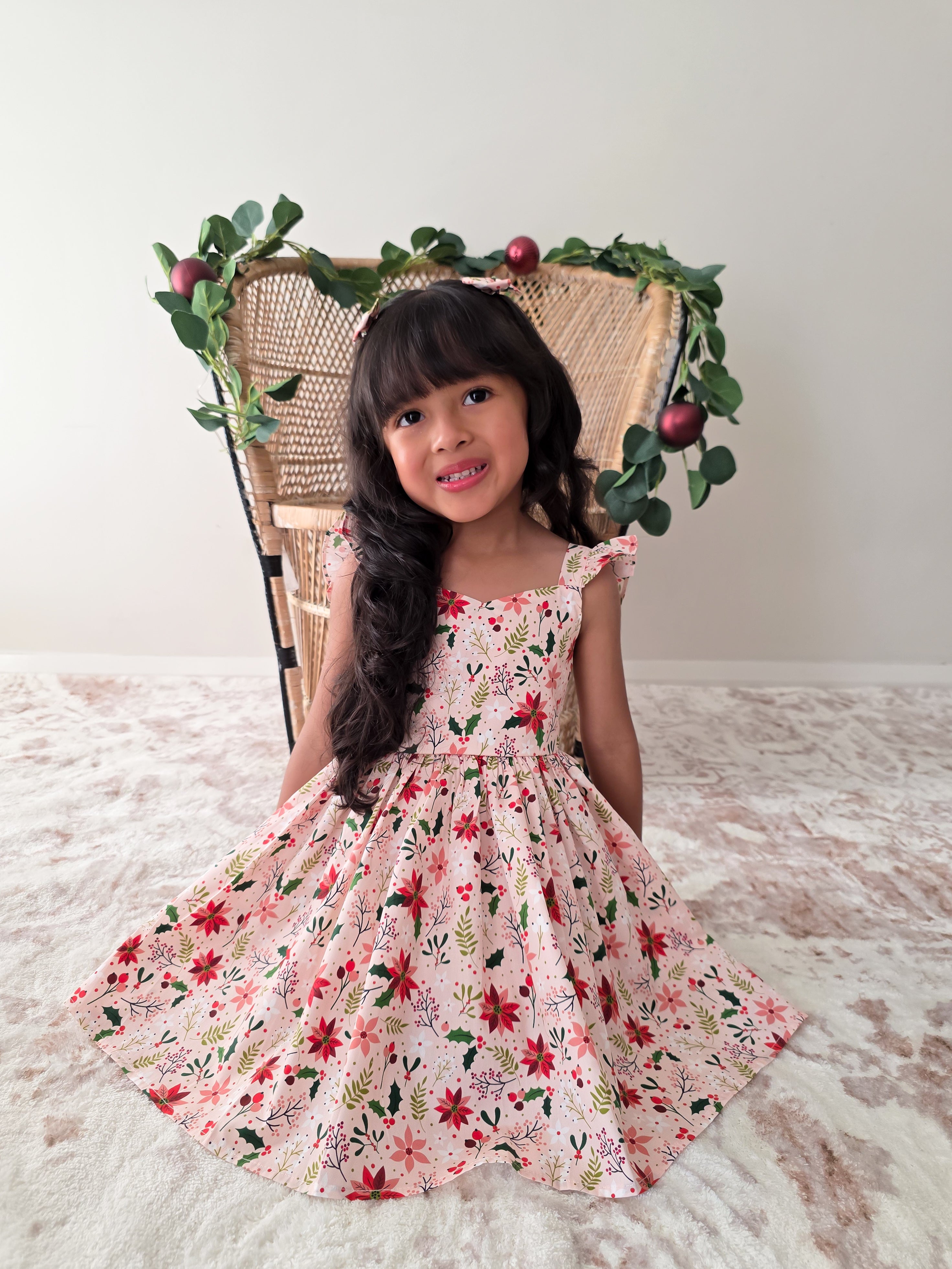 Crafted in a lightweight cotton fabric, this dress is beautifully crafted in the sweetest poinsettia floral print on a pink hue base! It features a sweetheart neckline, a flouncy A-line skirt, statement ruffled straps and a large back bow. It also features an elasticated waist for comfort and to ensure best fit.