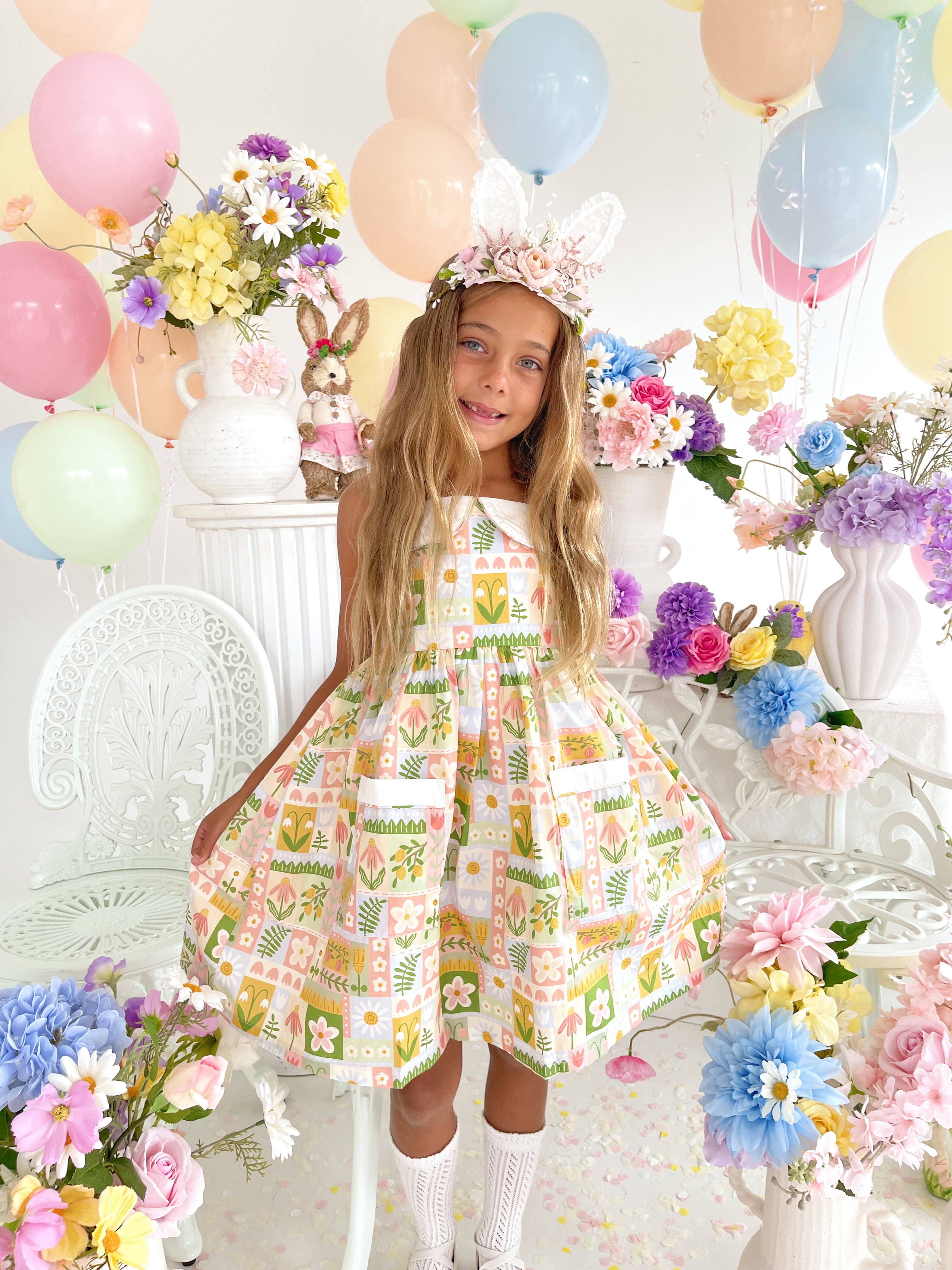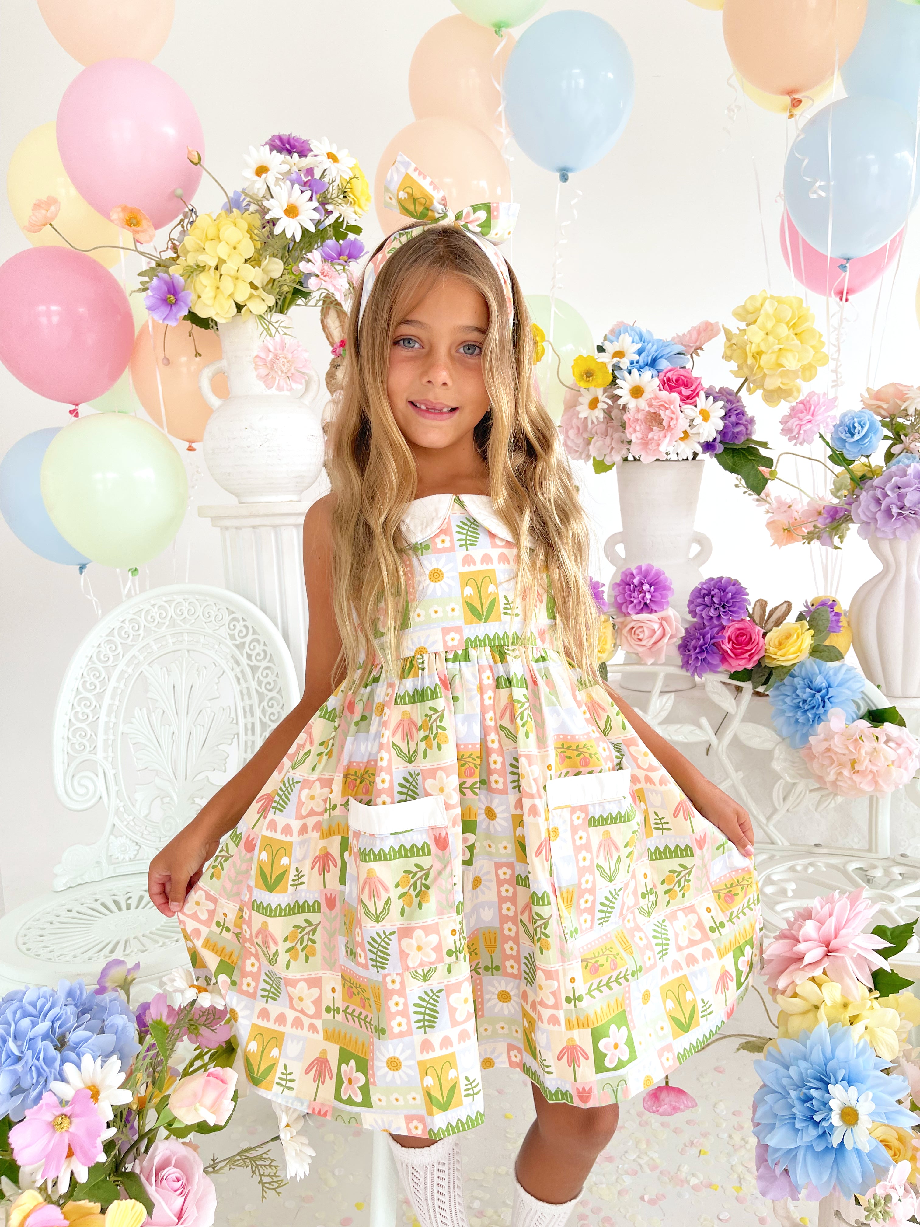 Our Enchanted Meadow Girls Floral Cotton Dress is a staple in your girl's wardrobe! Beautifully crafted in the sweetest floral print, this 100% Cotton Poplin dress features a cute collar detail, adorable pockets, and a flouncy A-line skirt. Perfect to wear on its own in warmer weather or styled with tights and a cardigan for cooler days.