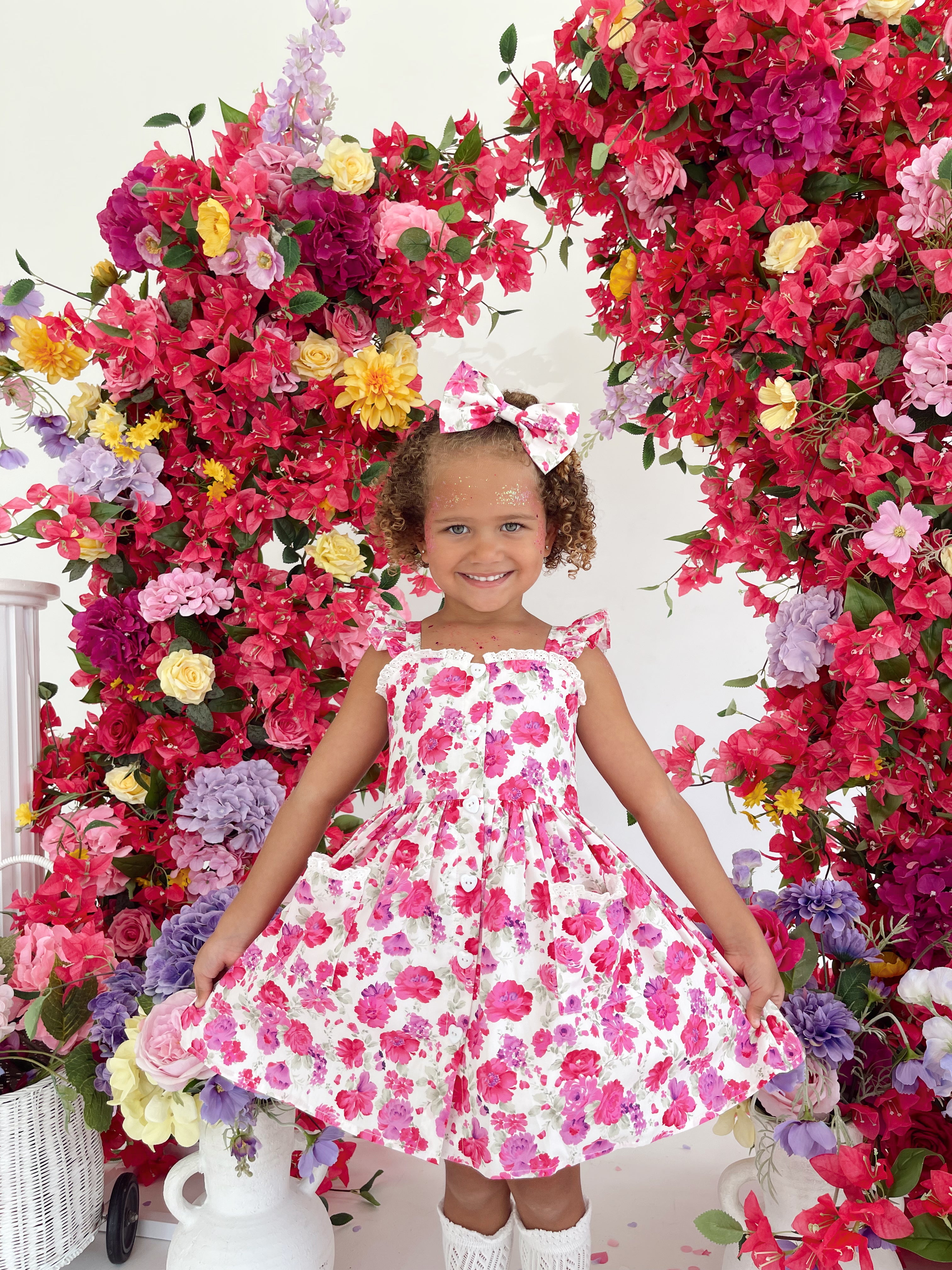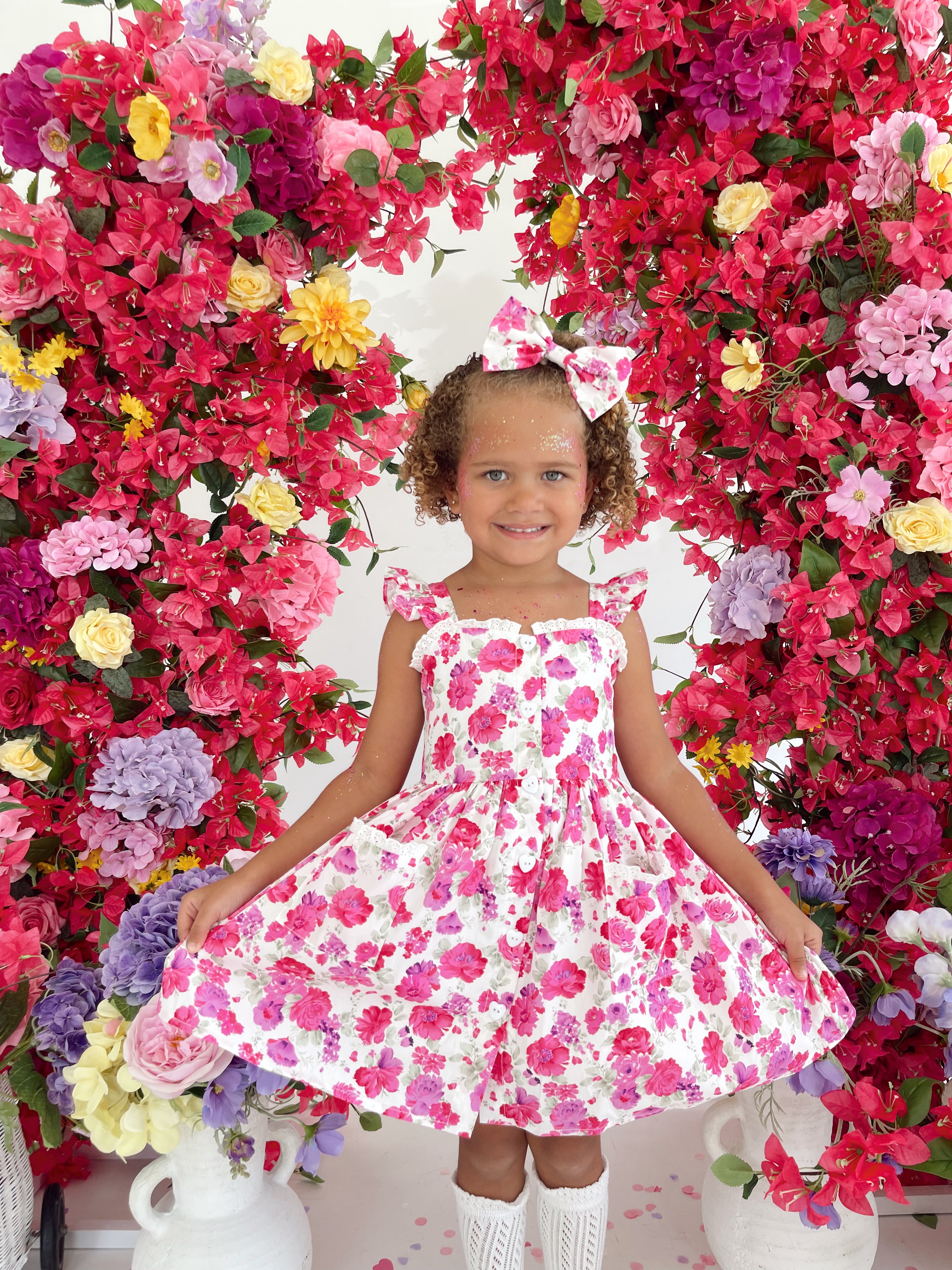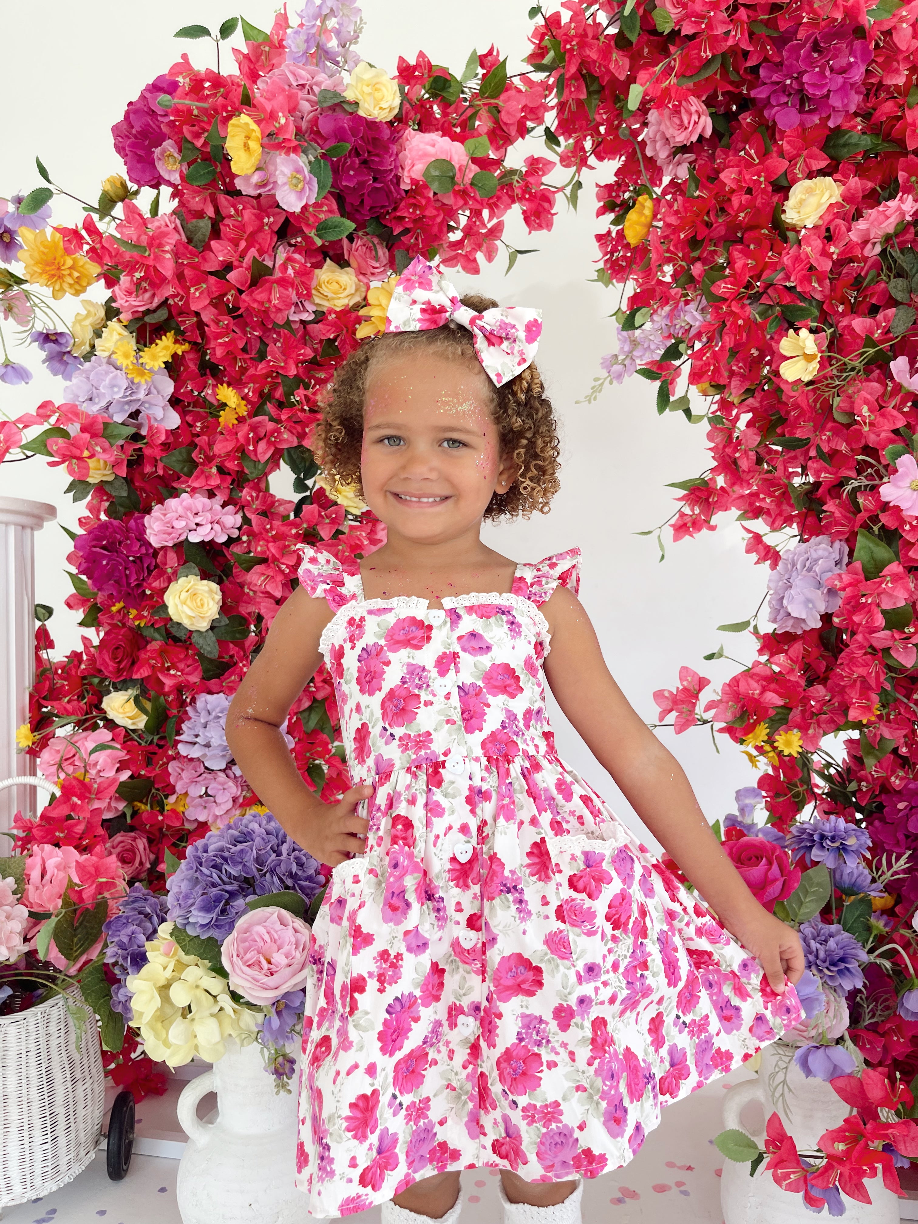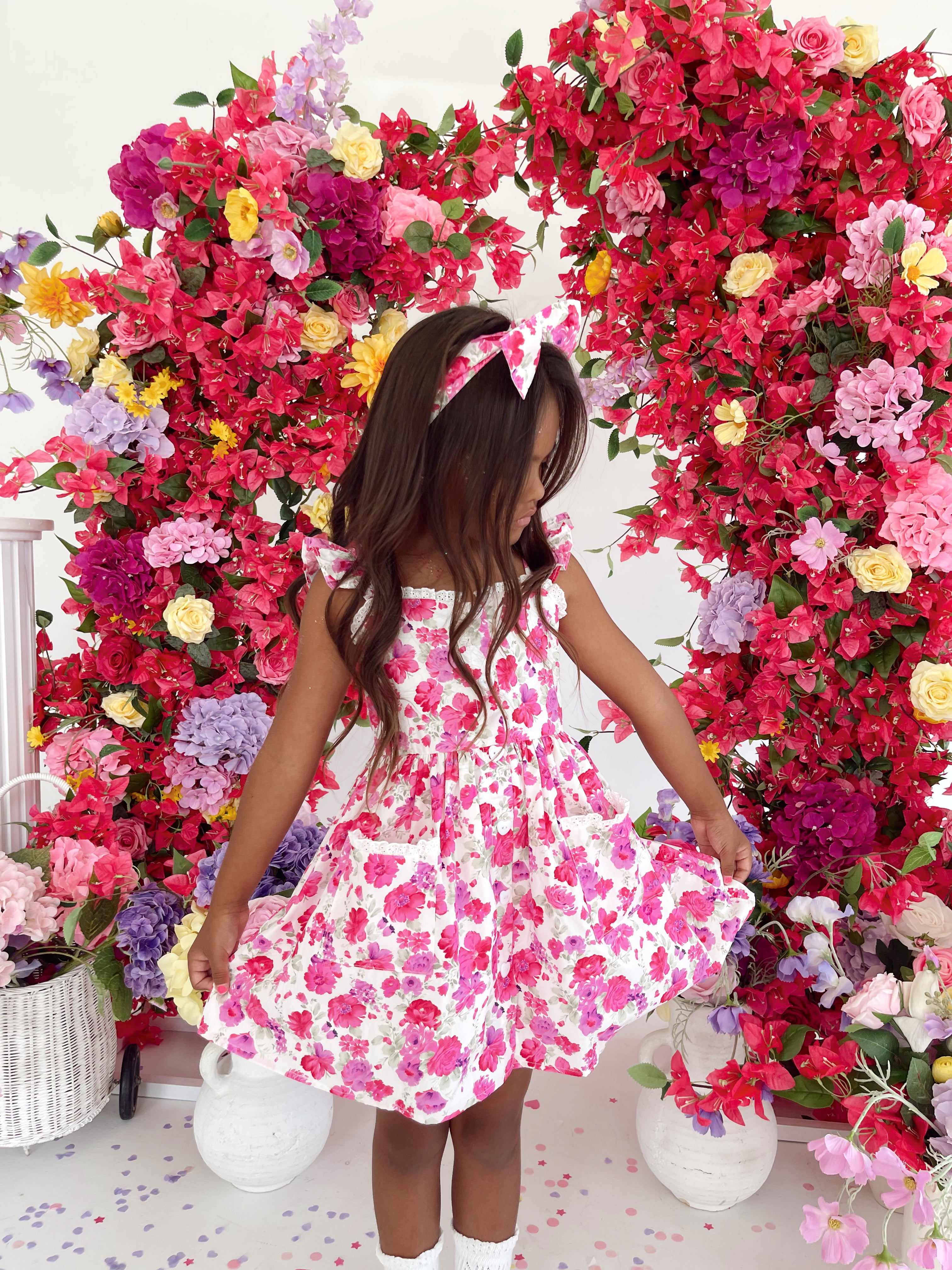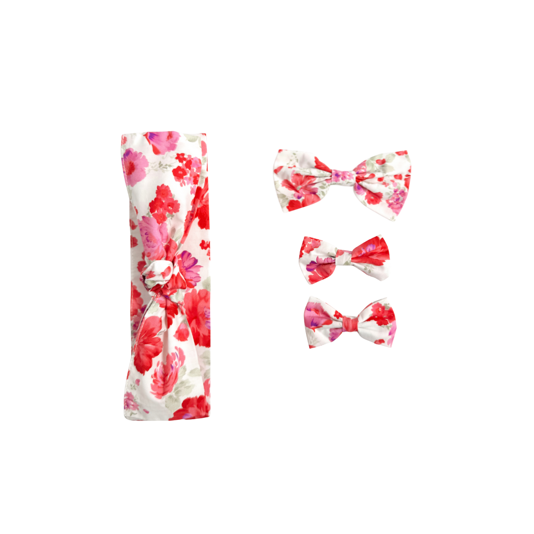 Our Blooming Belle Accessories are crafted in the sweetest pink florals to complete your little girl’s outfit!
