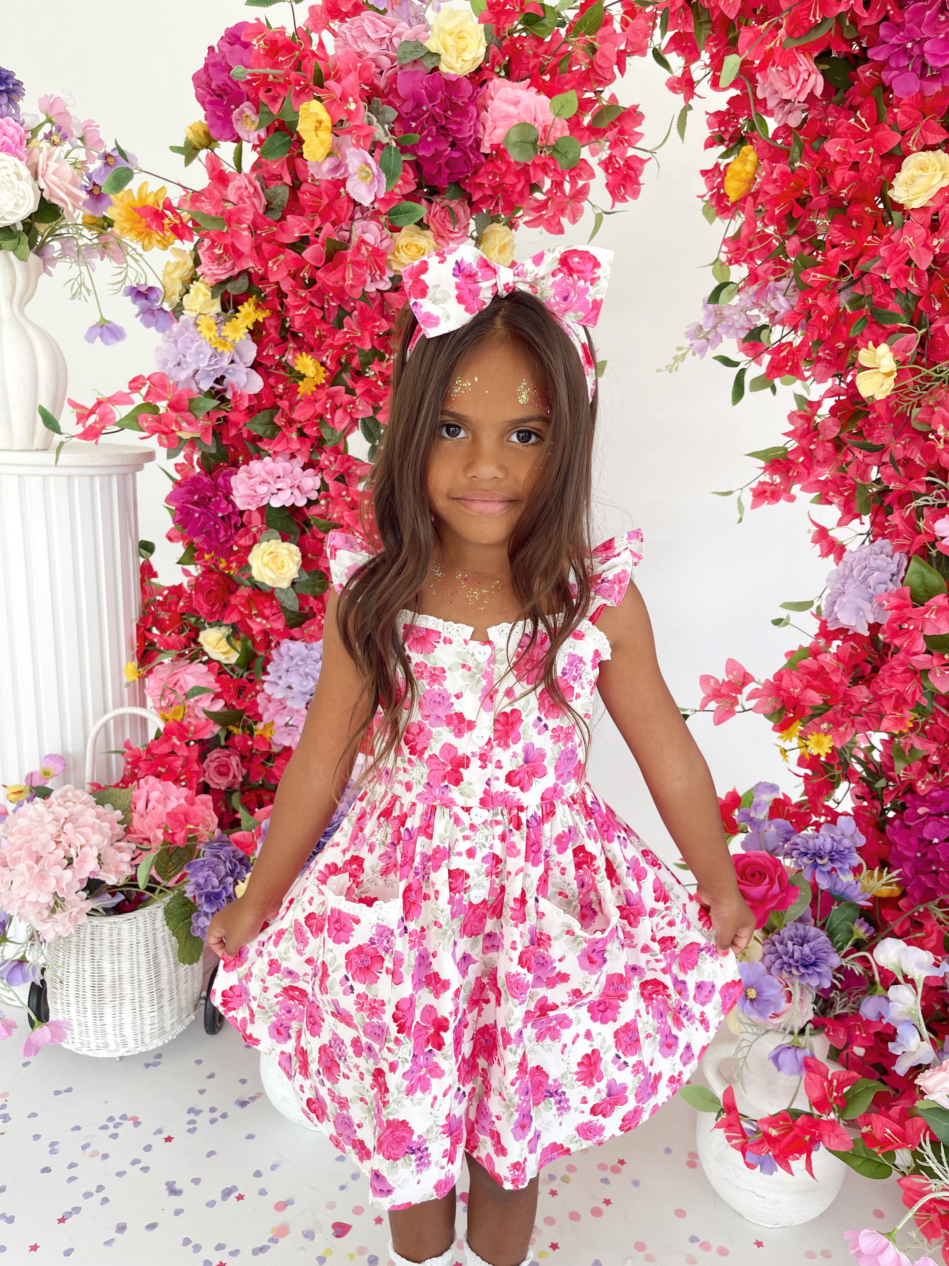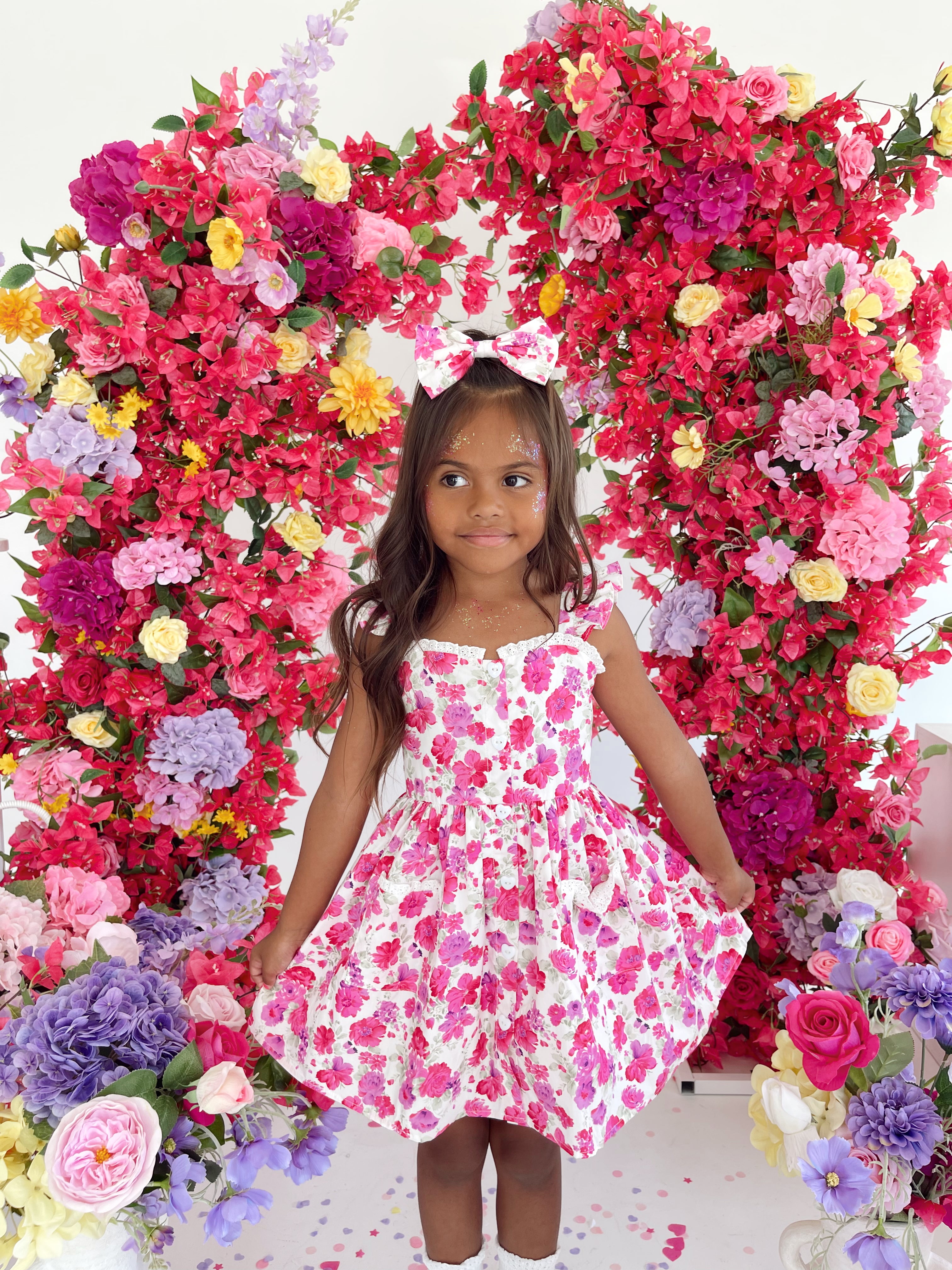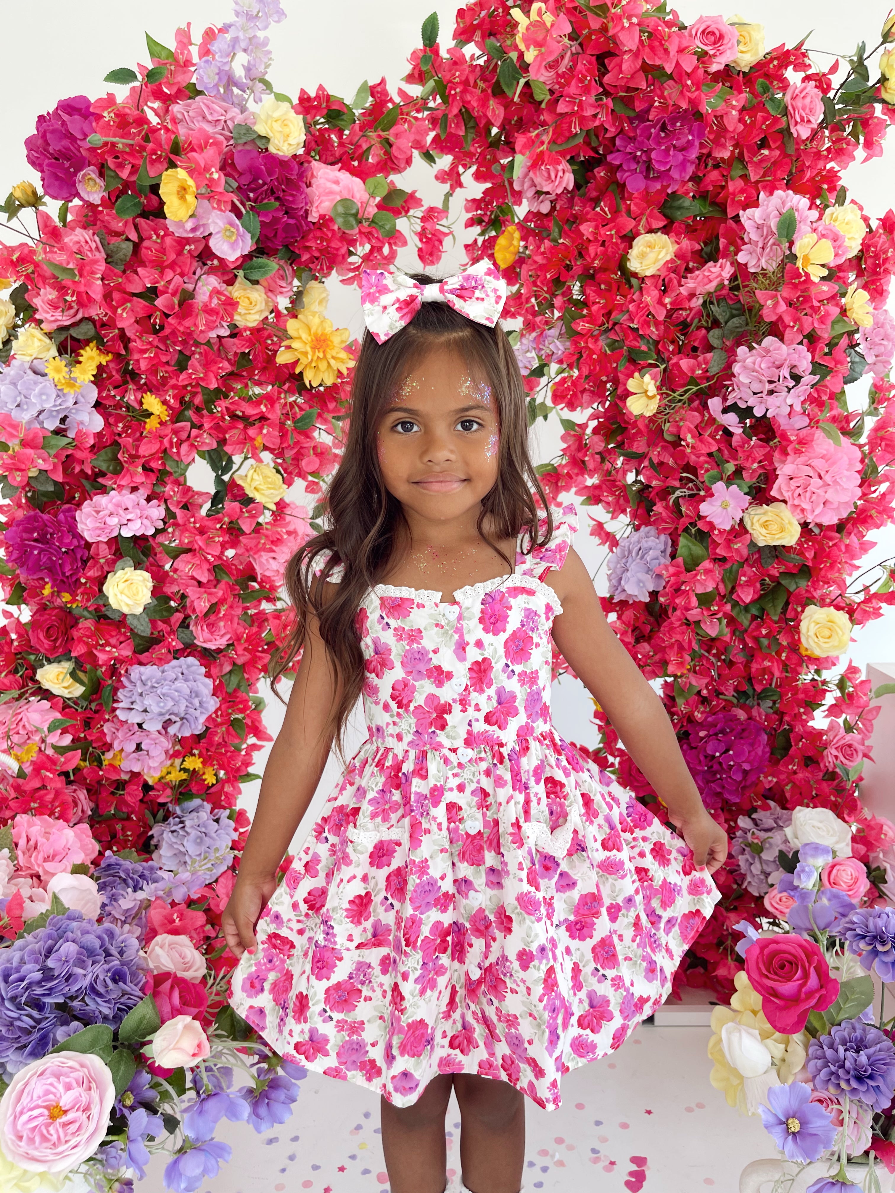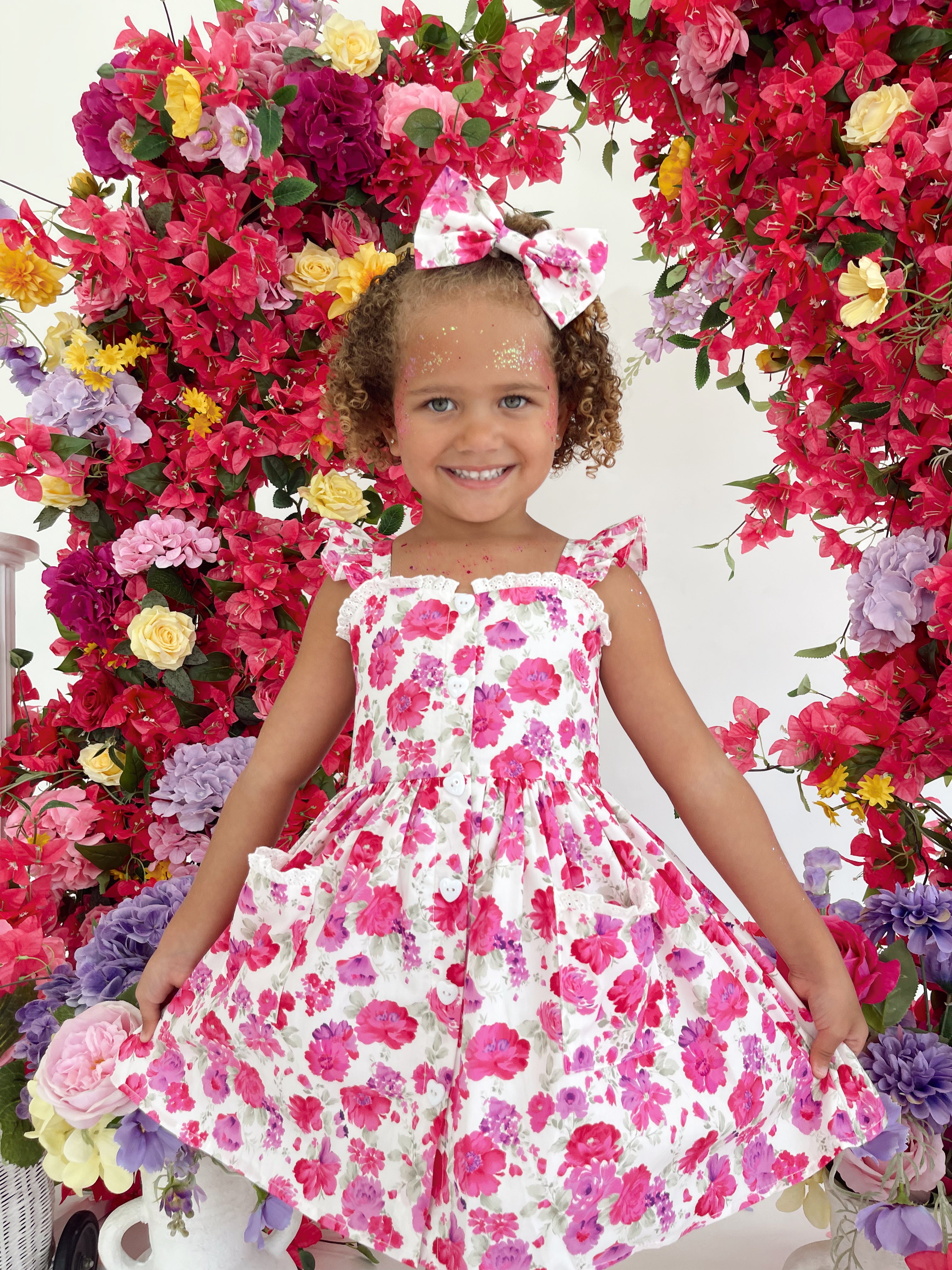 Our Blooming Belle Accessories are crafted in the sweetest pink florals to complete your little girl’s outfit!