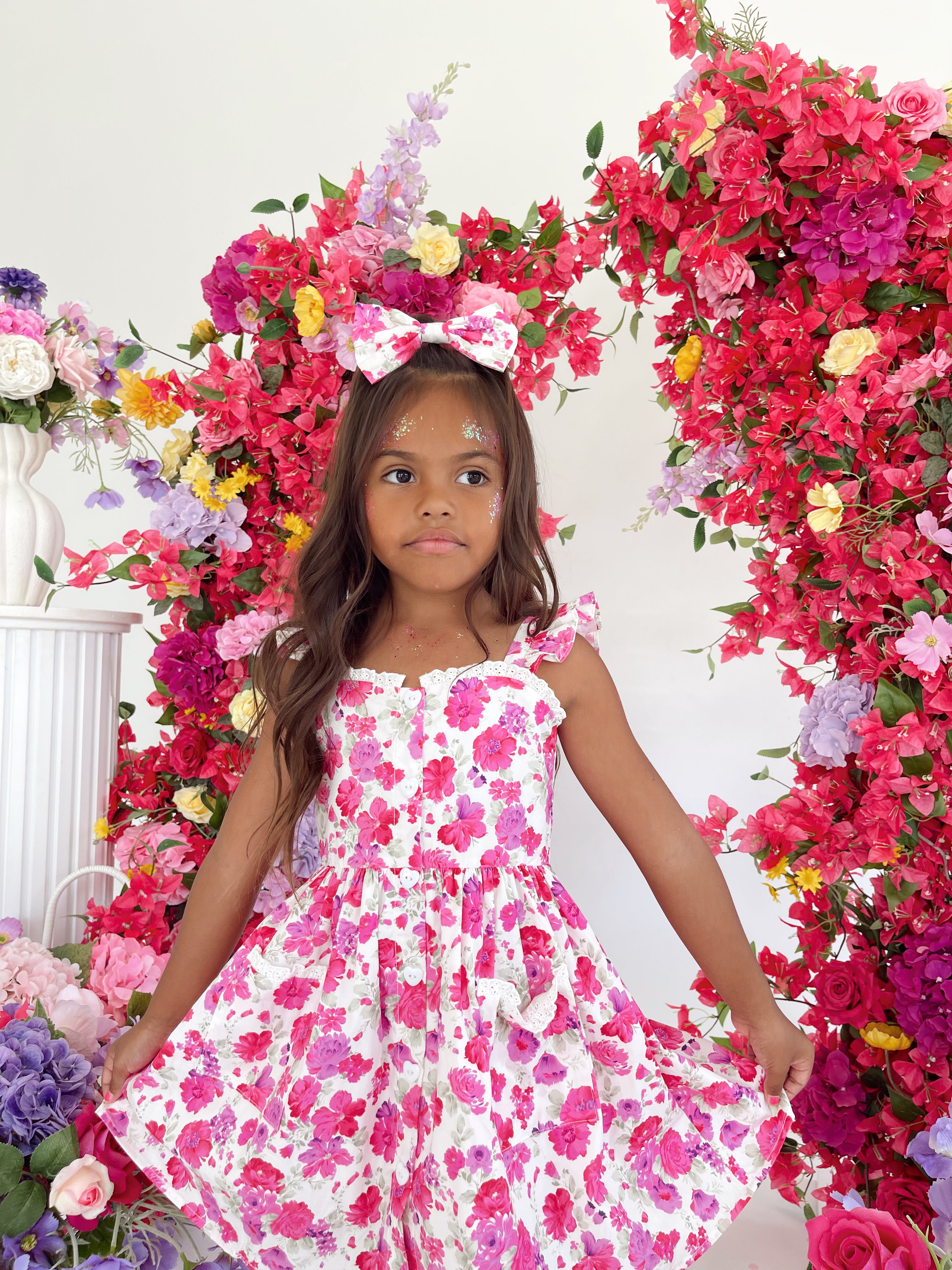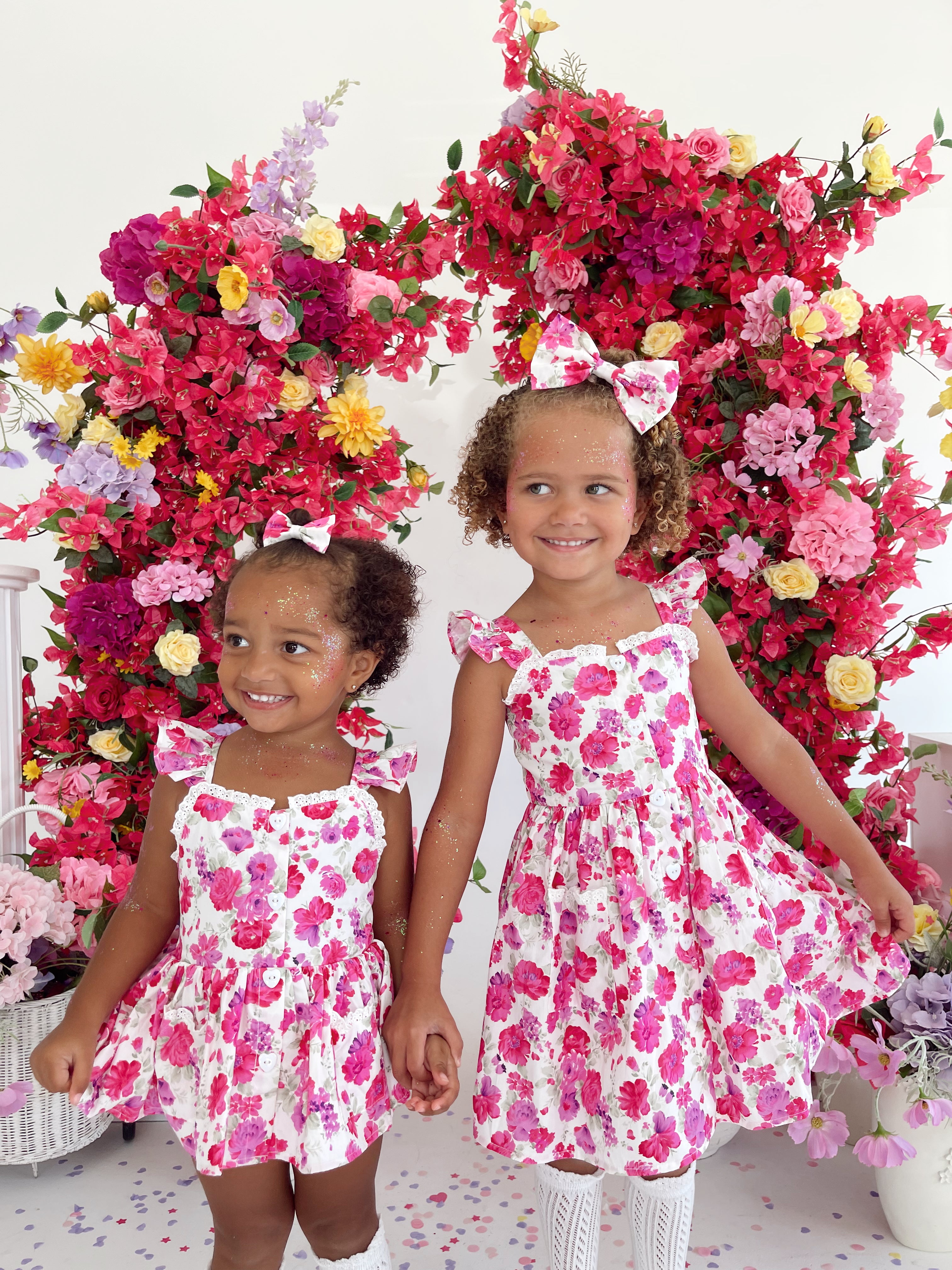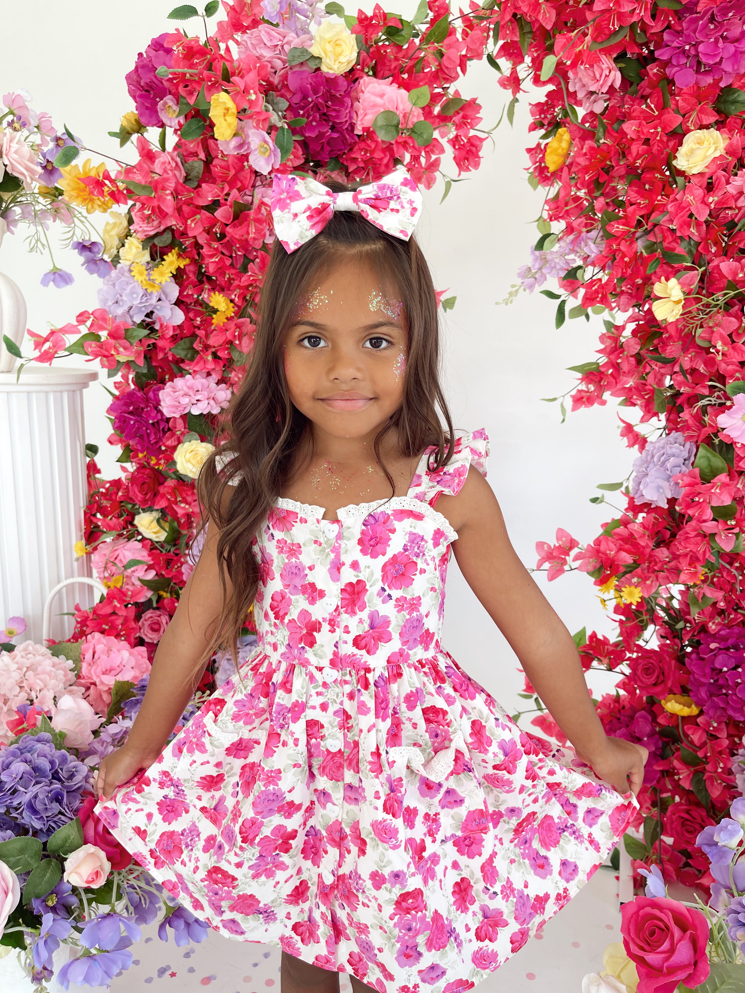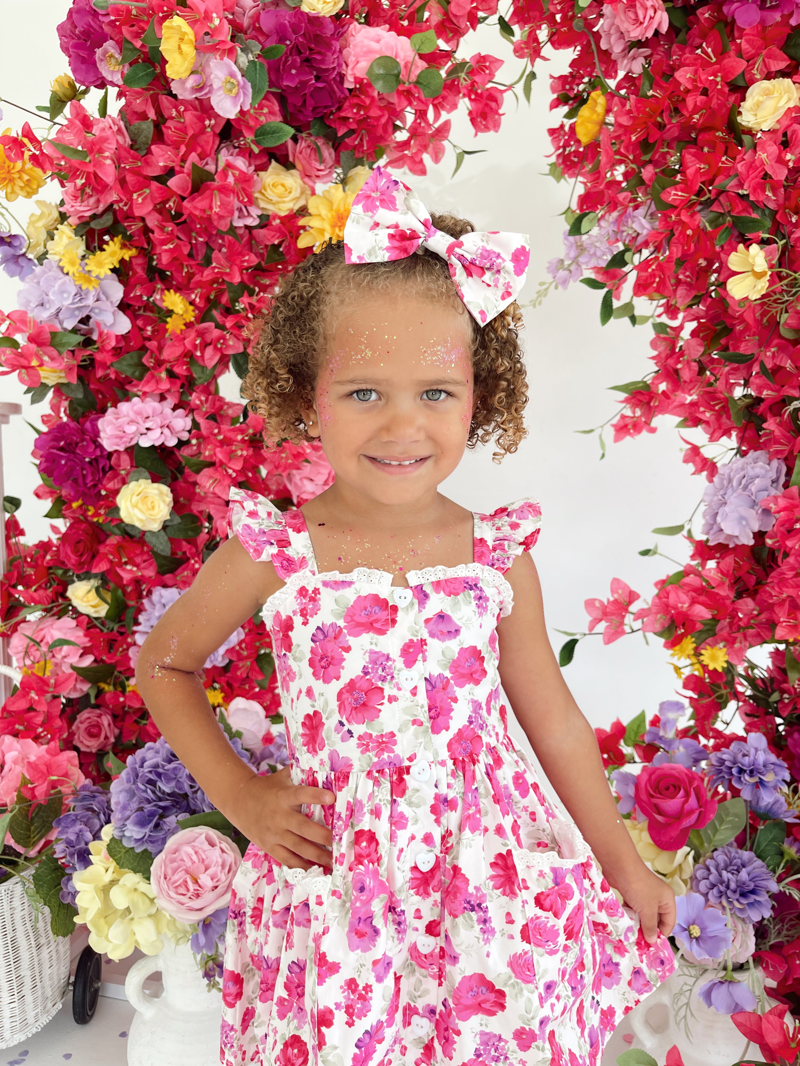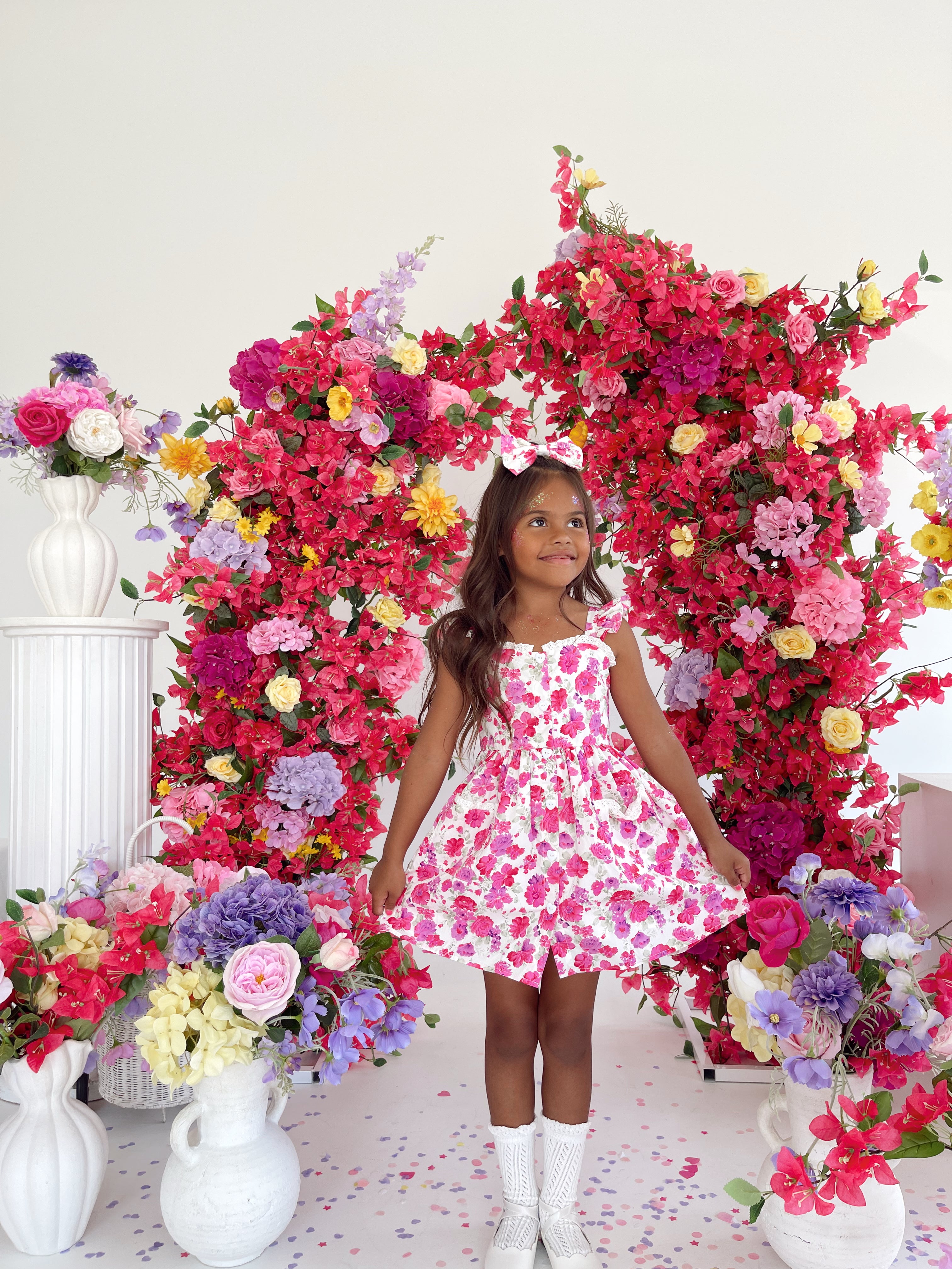 Our Blooming Belle Accessories are crafted in the sweetest pink florals to complete your little girl’s outfit!