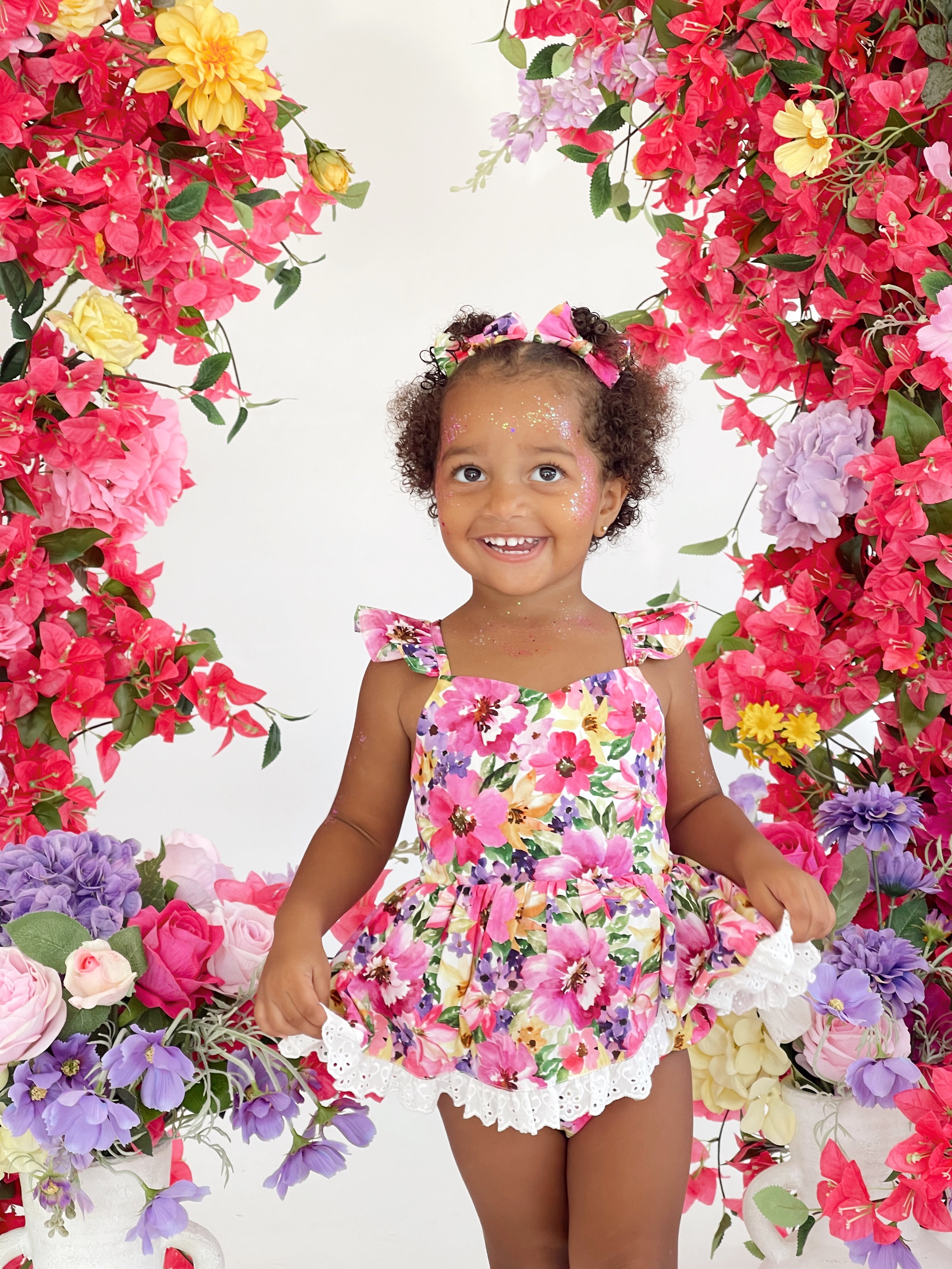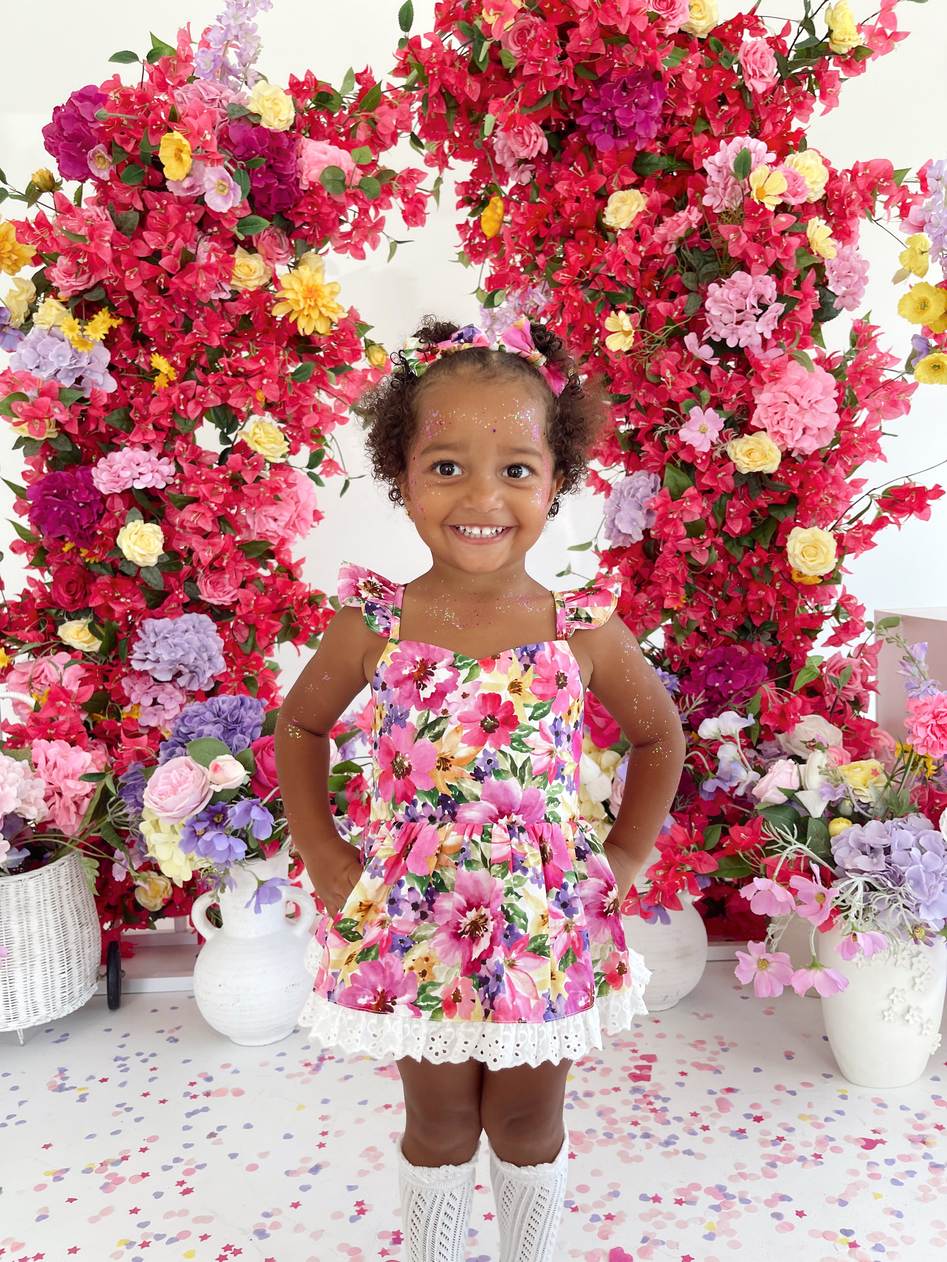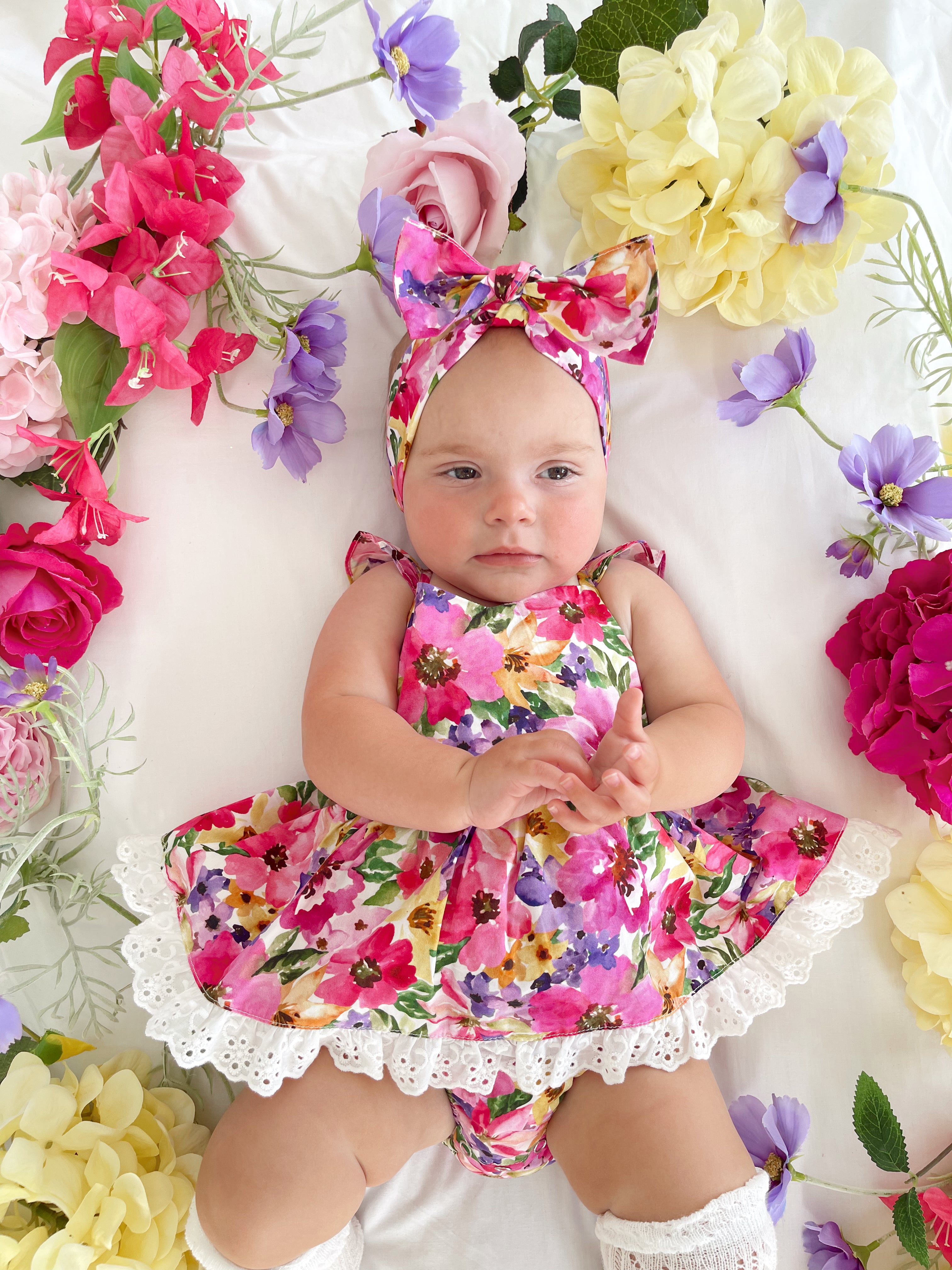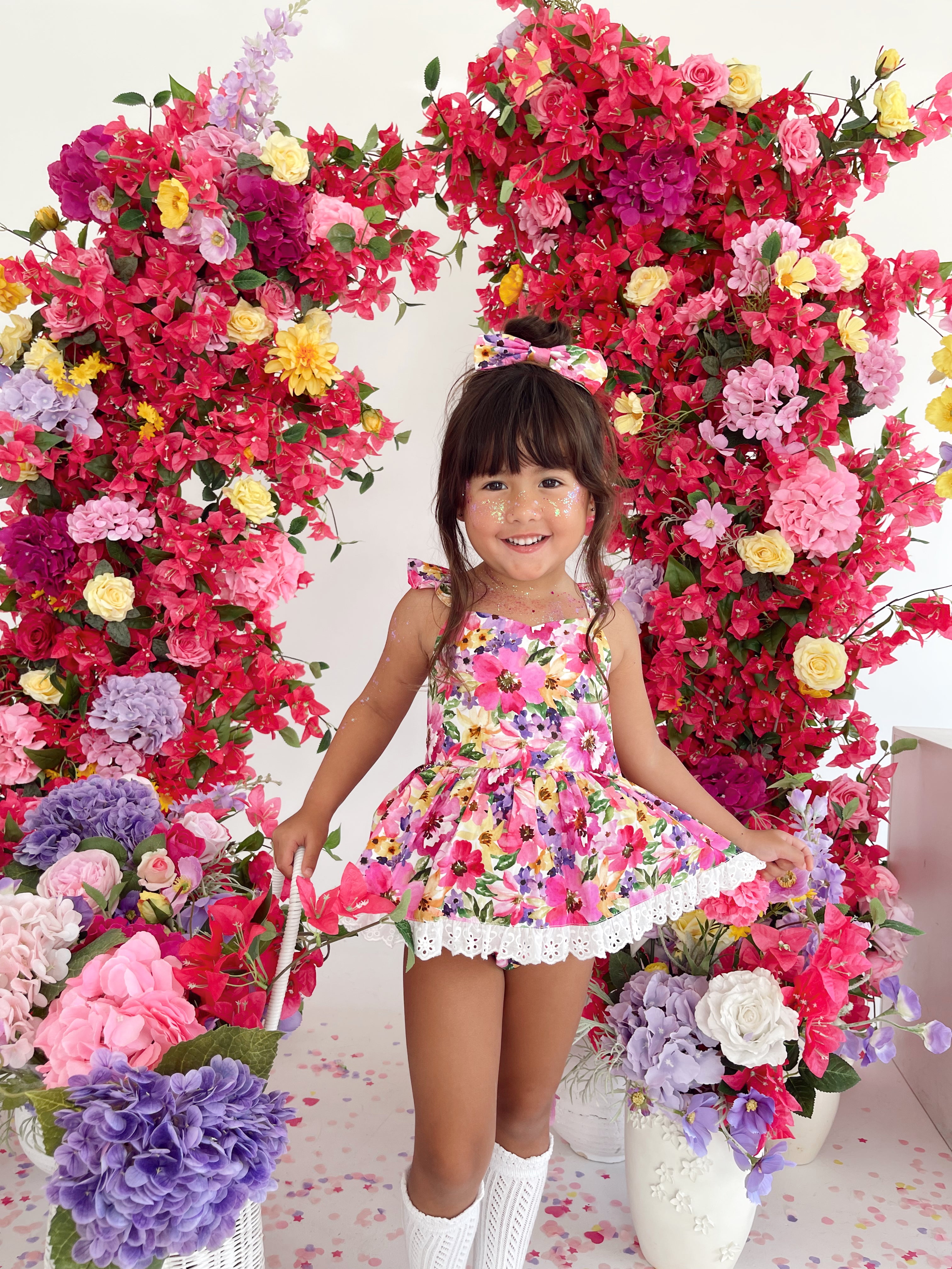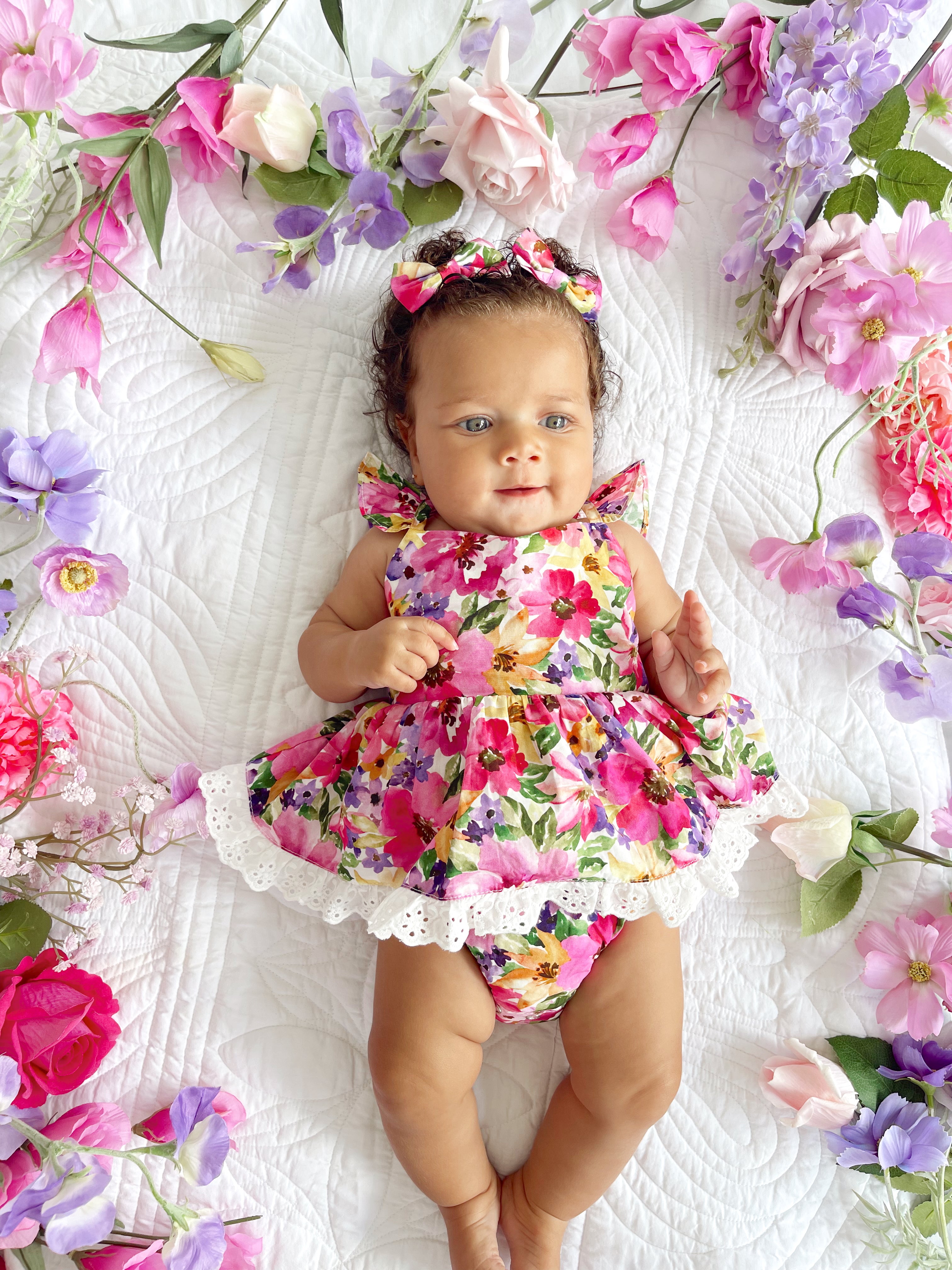 Prepare to fall in love with our new Floral Fiesta Collection! This bright and blooming lineup features three gorgeous dresses with matching baby sister rompers, plus the sweetest coordinating accessories. Bursting with vibrant florals, these pieces are made to bring joy, colour, and sweetness to your little girl’s Spring/Summer wardrobe.