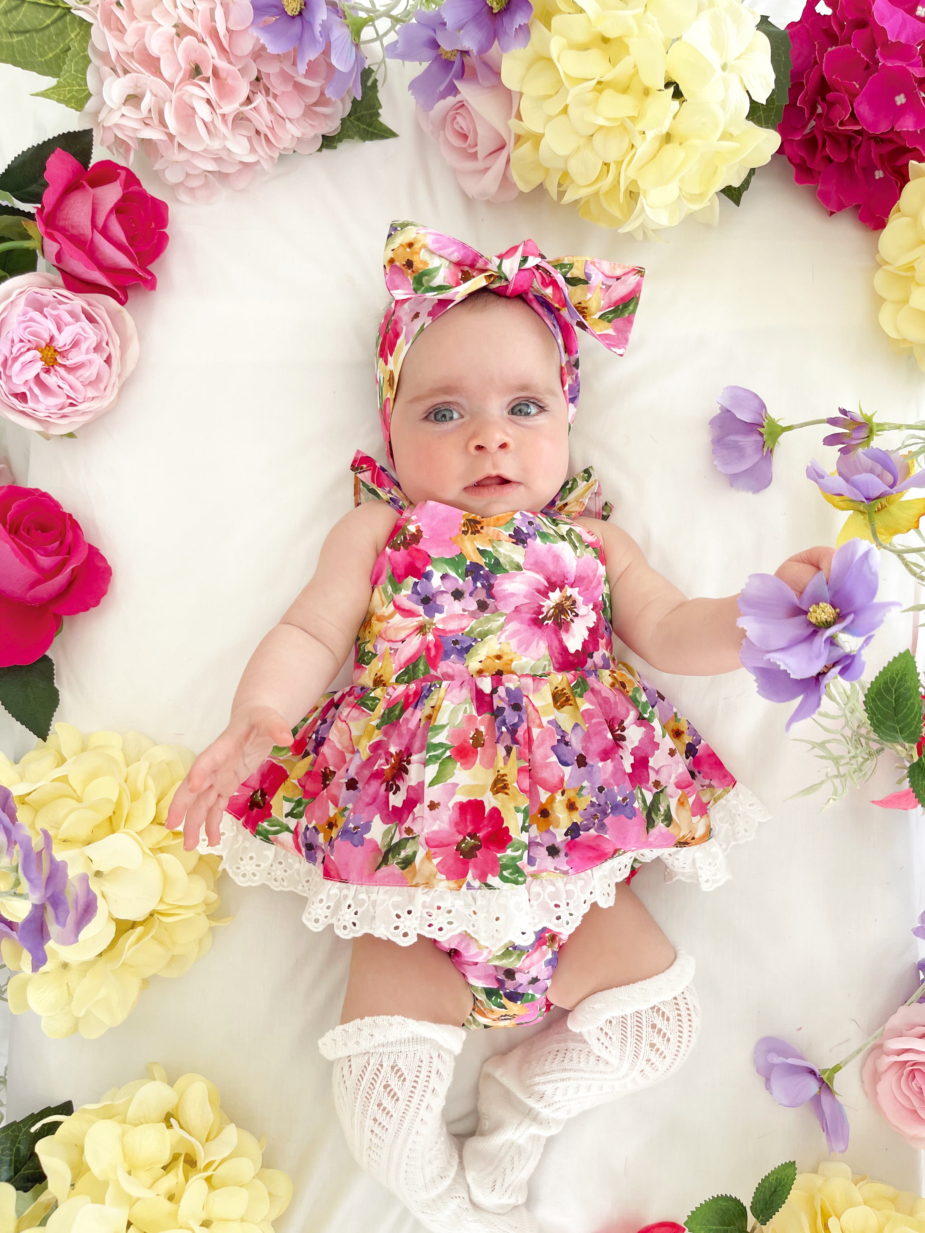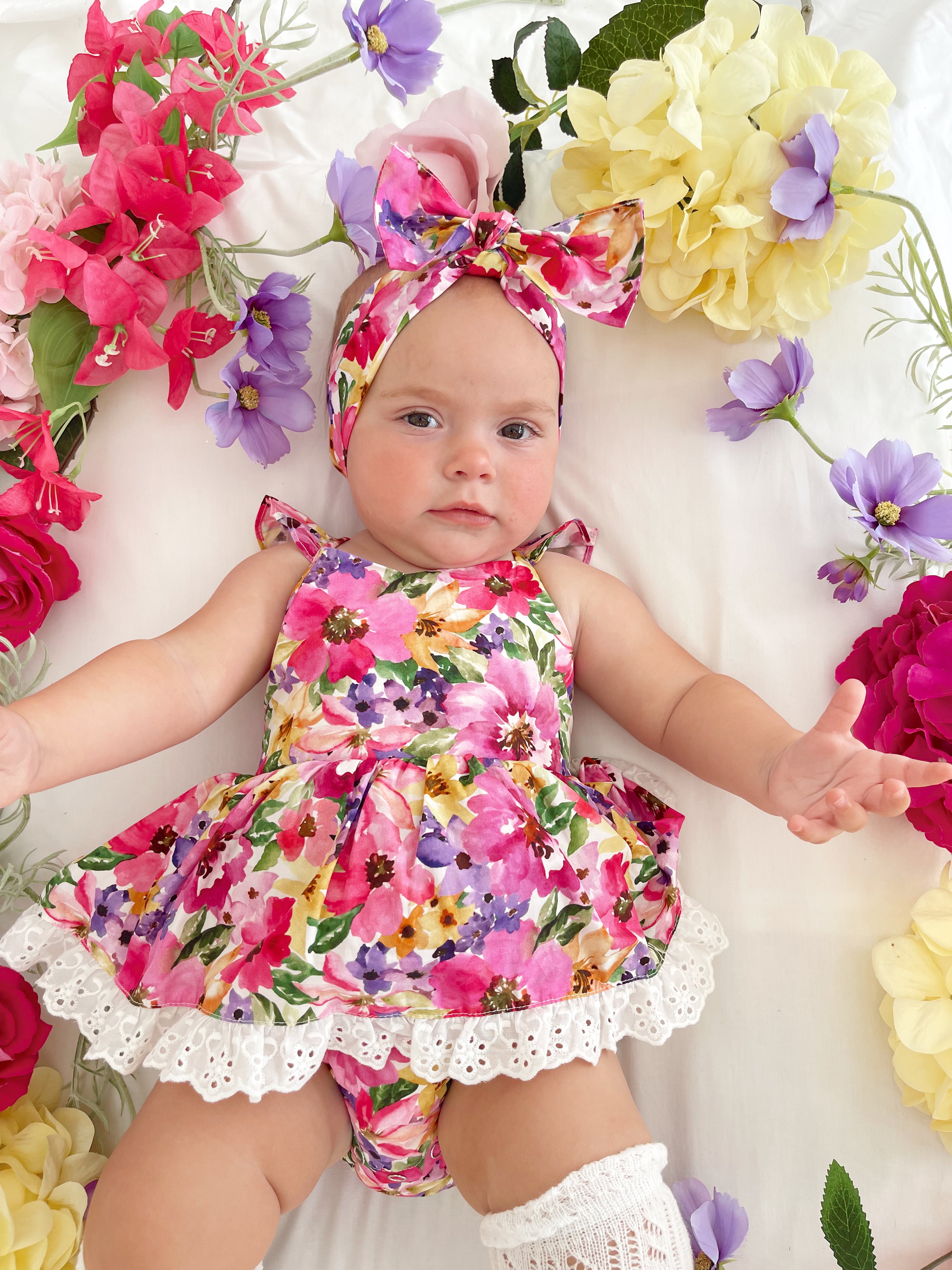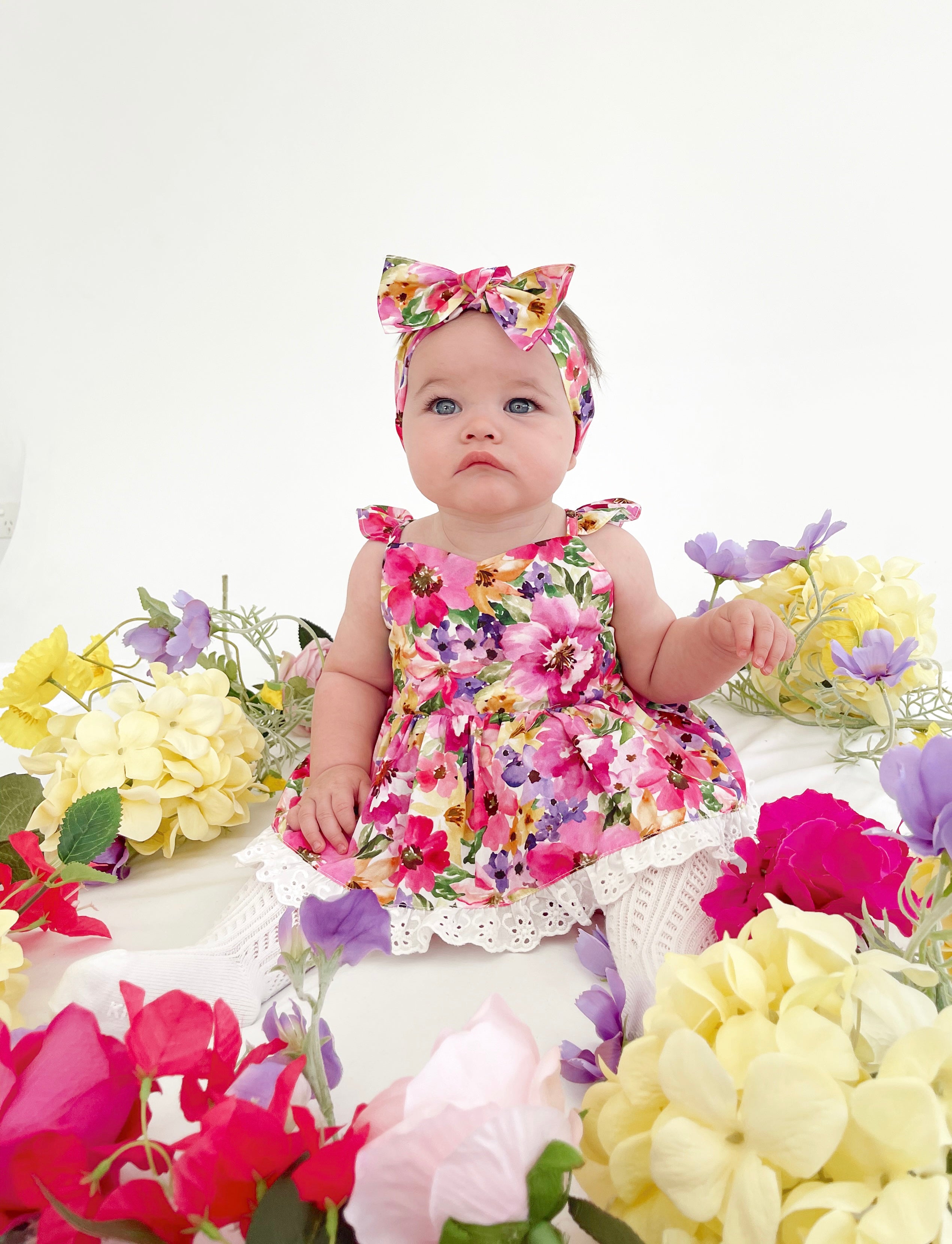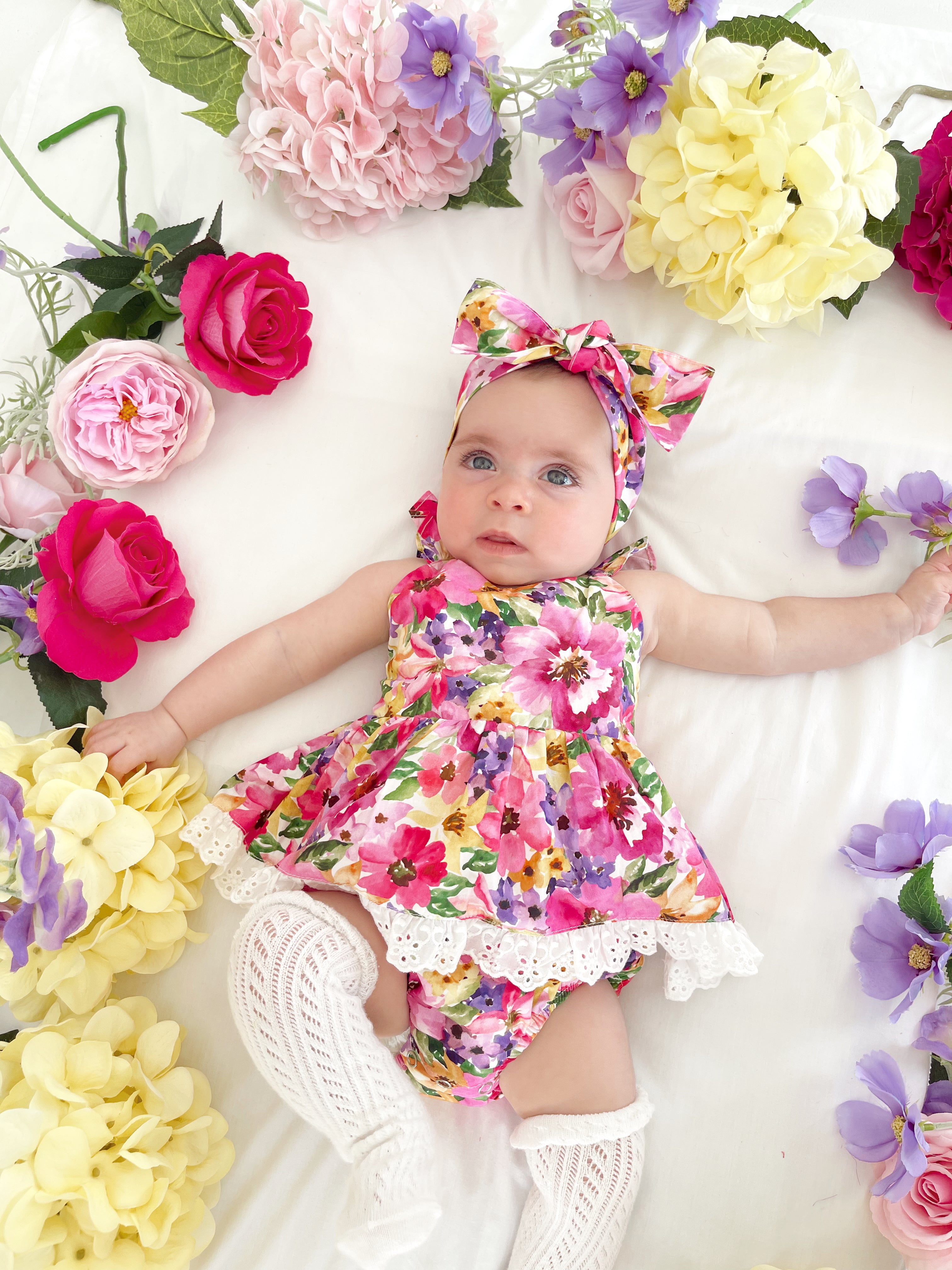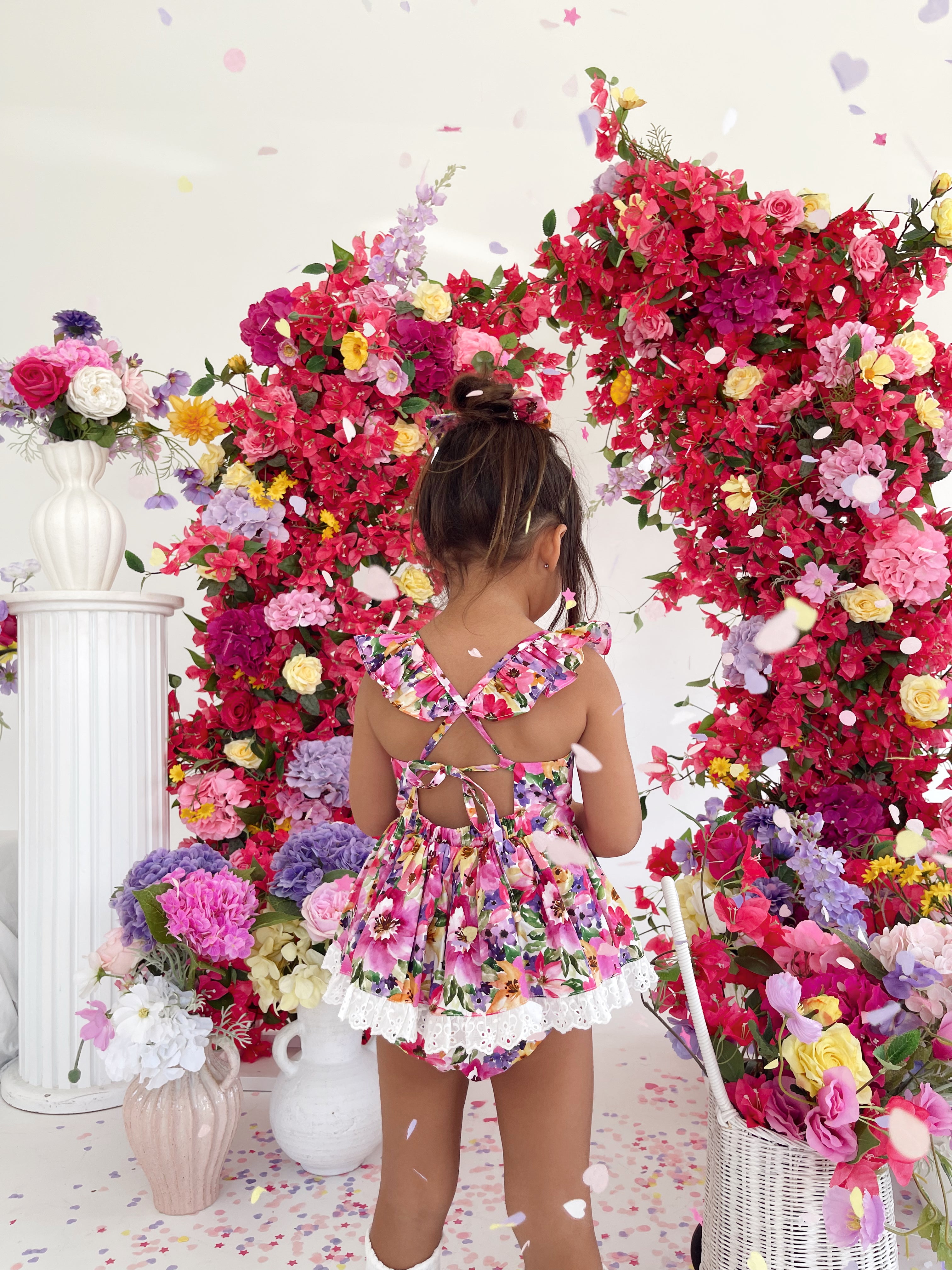 Prepare to fall in love with our new Floral Fiesta Collection! This bright and blooming lineup features three gorgeous dresses with matching baby sister rompers, plus the sweetest coordinating accessories. Bursting with vibrant florals, these pieces are made to bring joy, colour, and sweetness to your little girl’s Spring/Summer wardrobe.