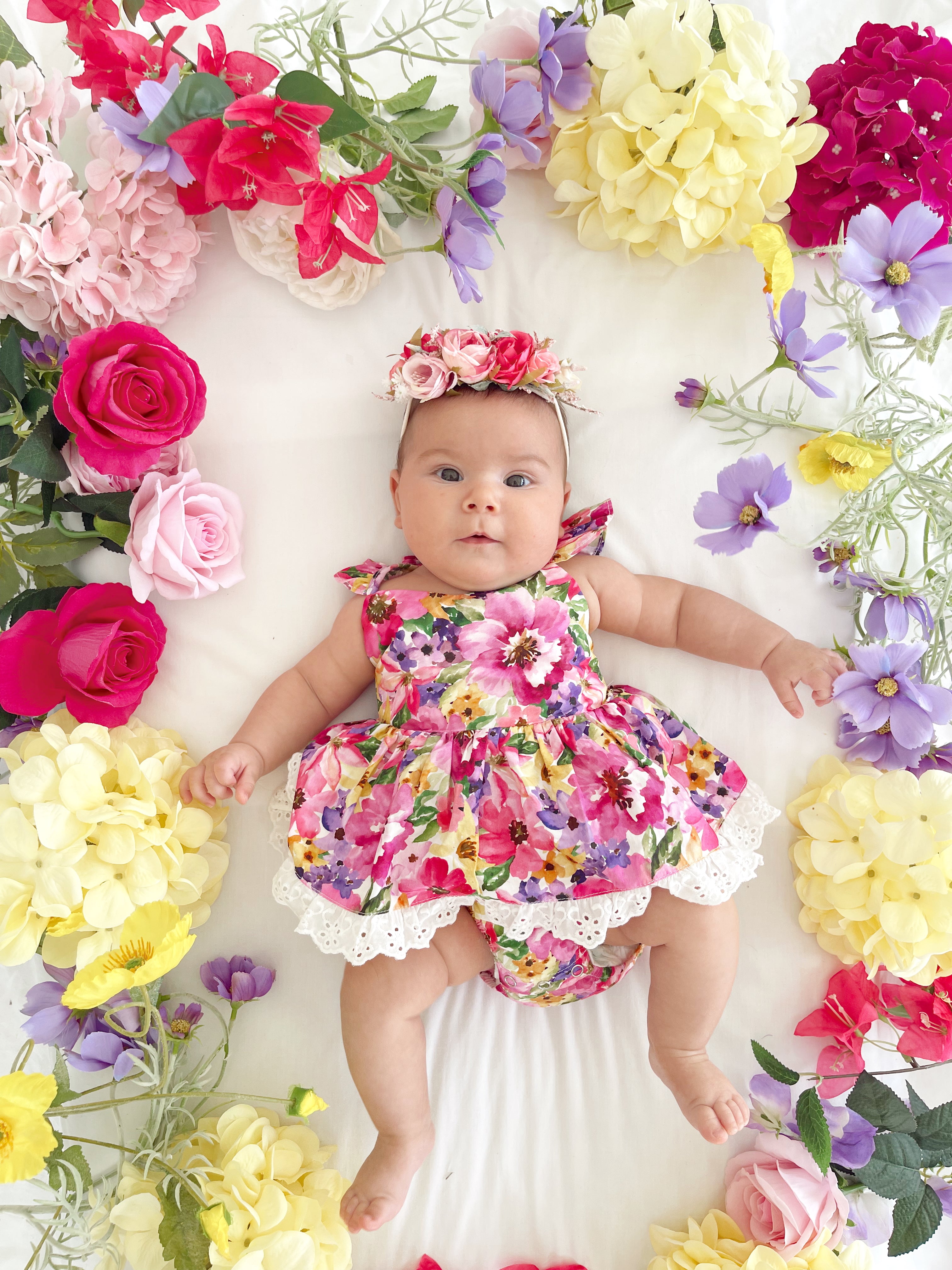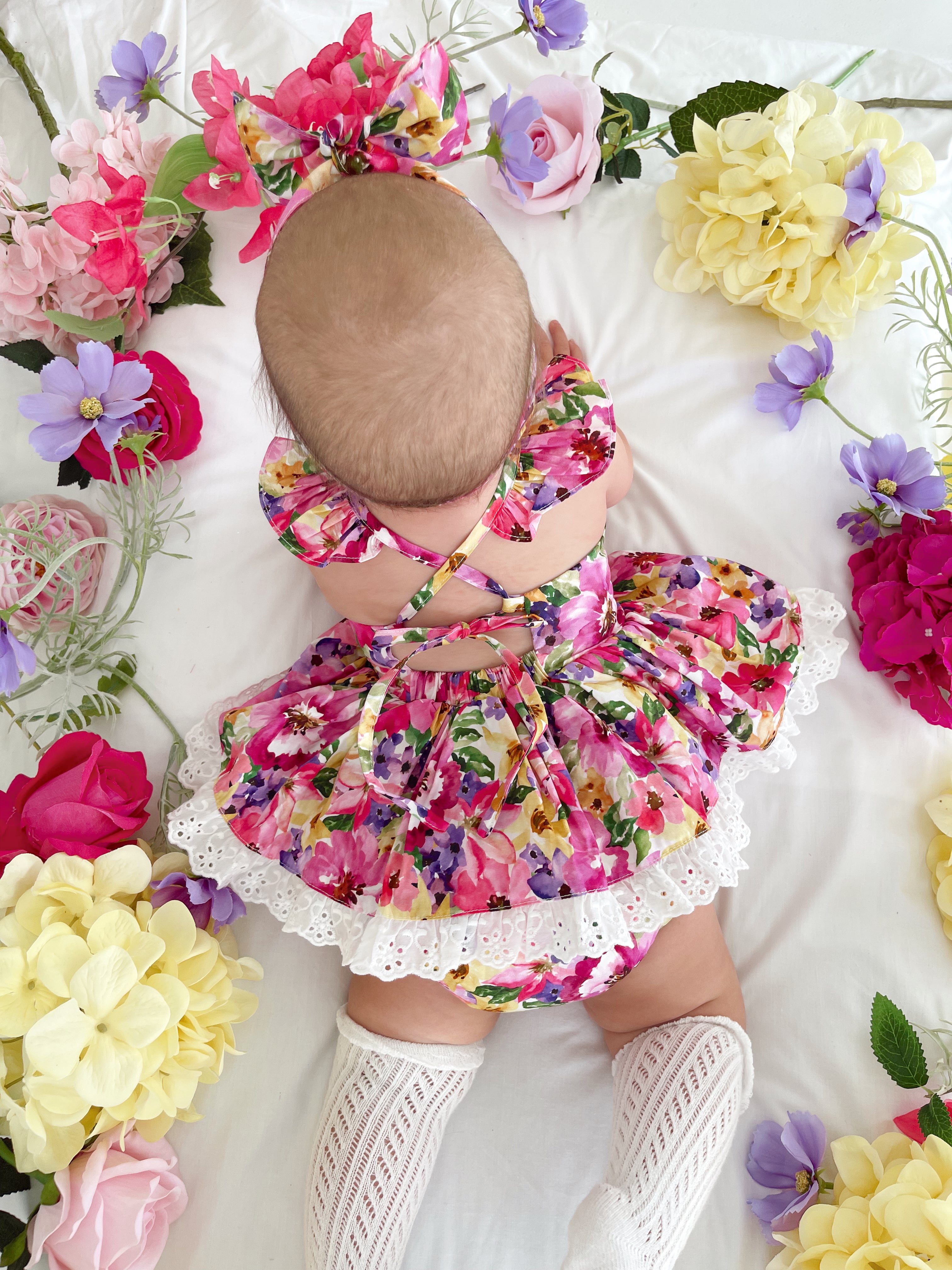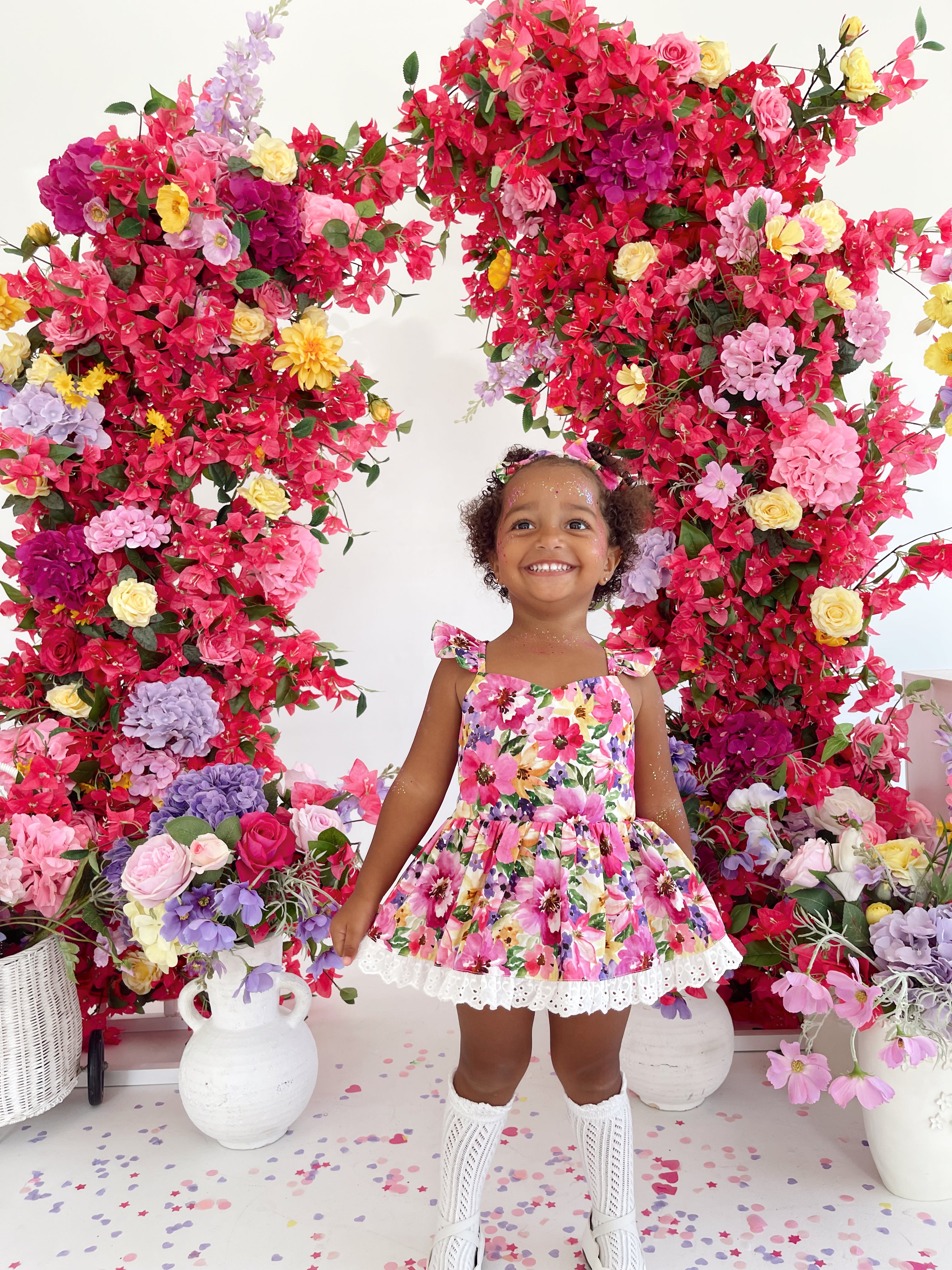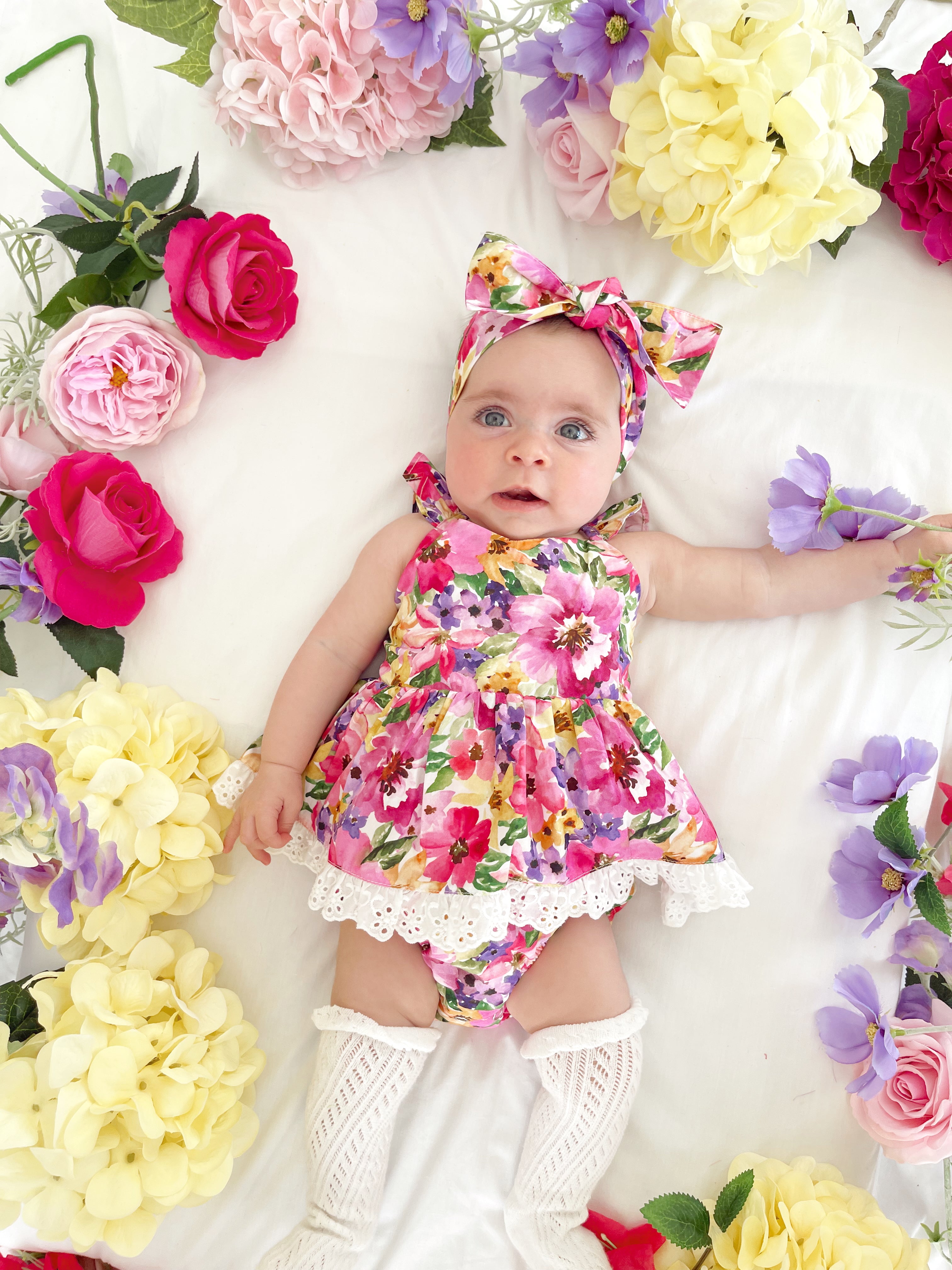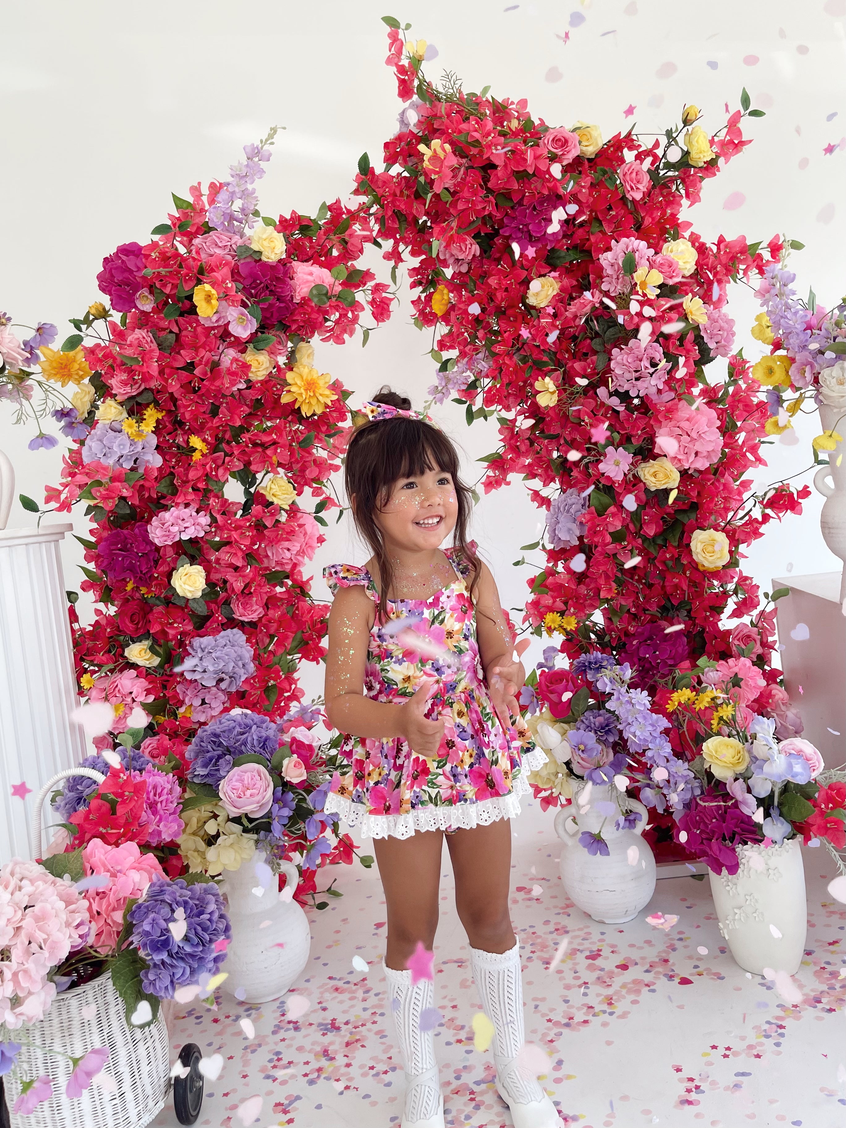 Prepare to fall in love with our new Floral Fiesta Collection! This bright and blooming lineup features three gorgeous dresses with matching baby sister rompers, plus the sweetest coordinating accessories. Bursting with vibrant florals, these pieces are made to bring joy, colour, and sweetness to your little girl’s Spring/Summer wardrobe.