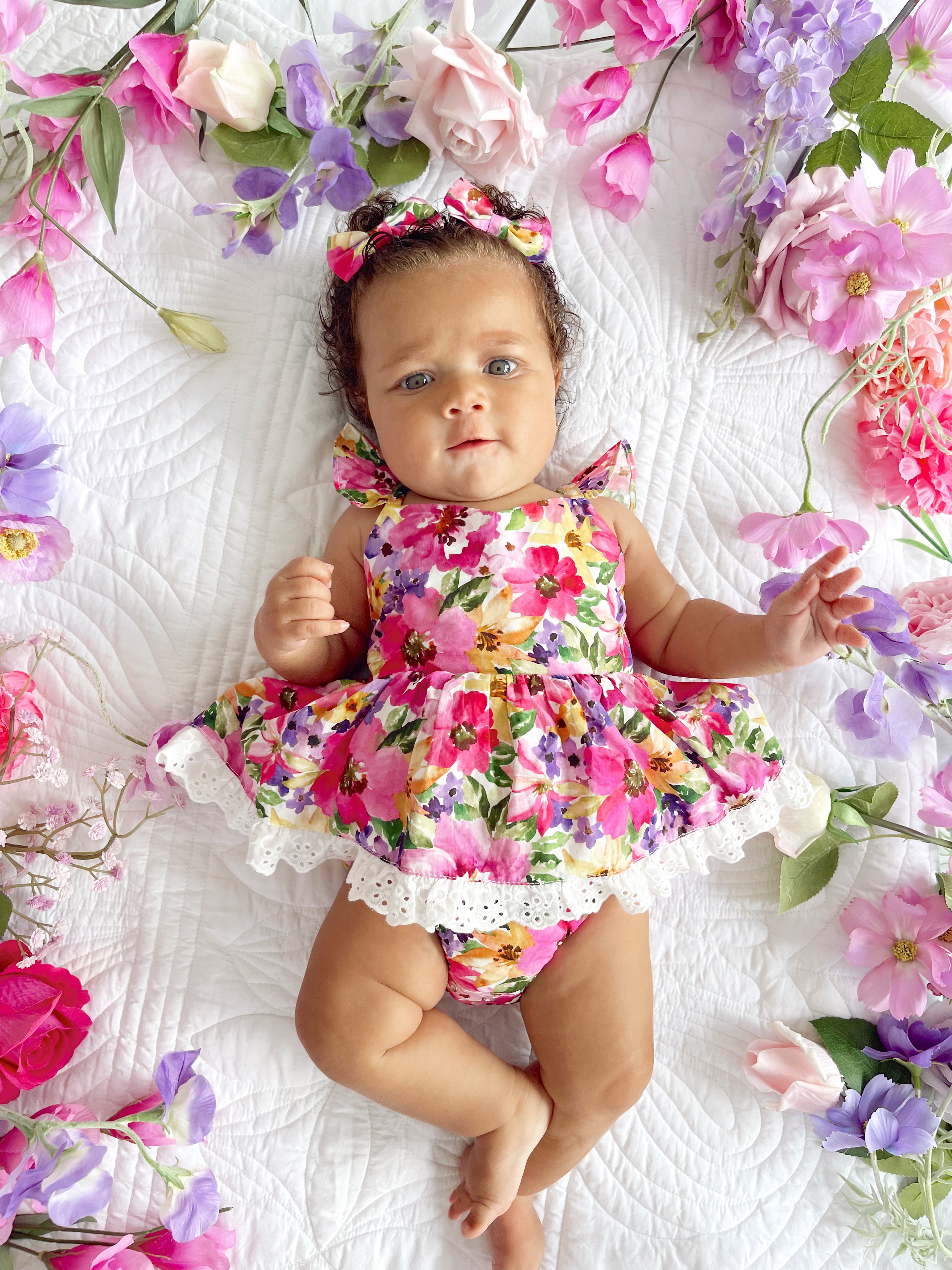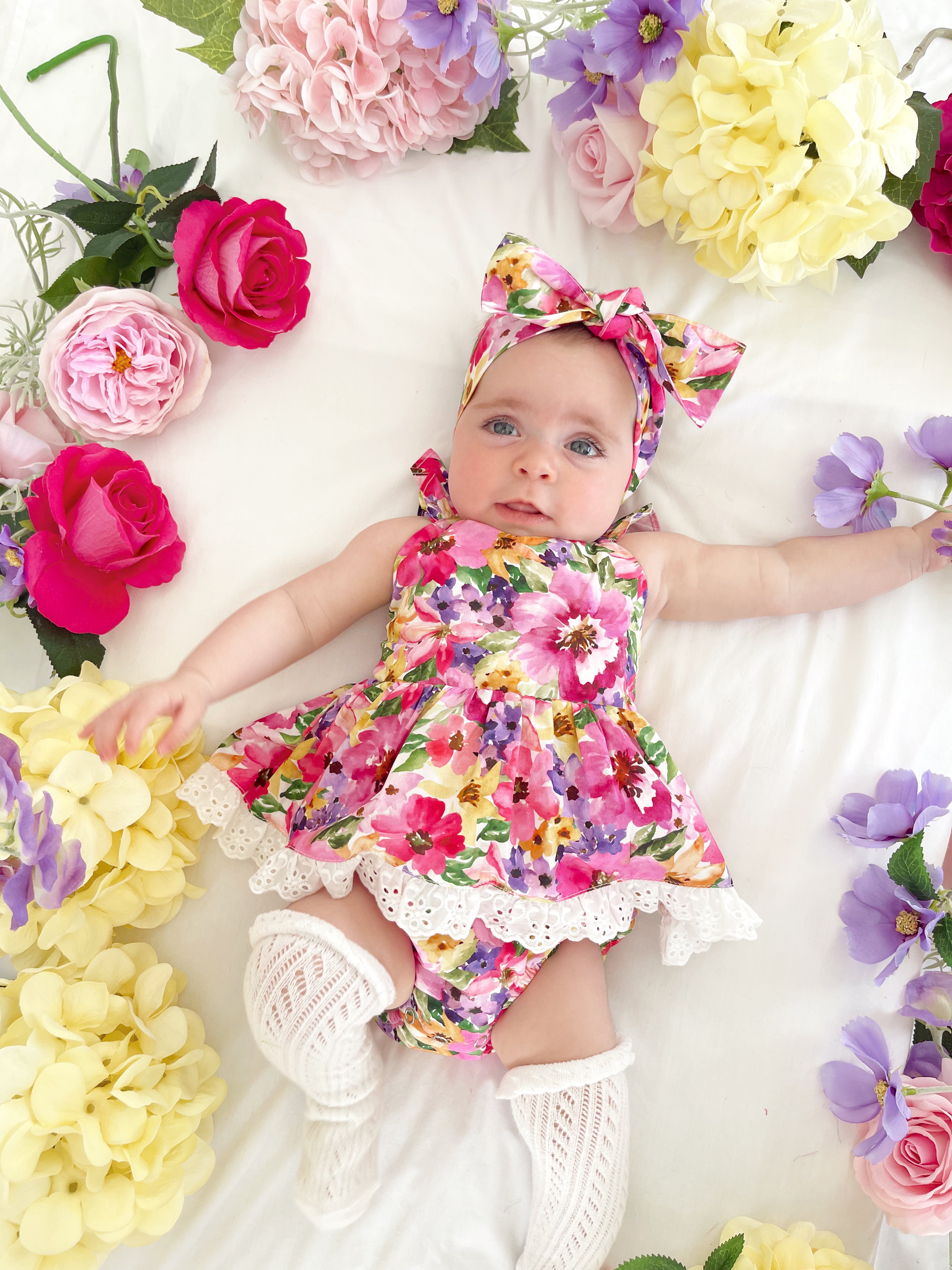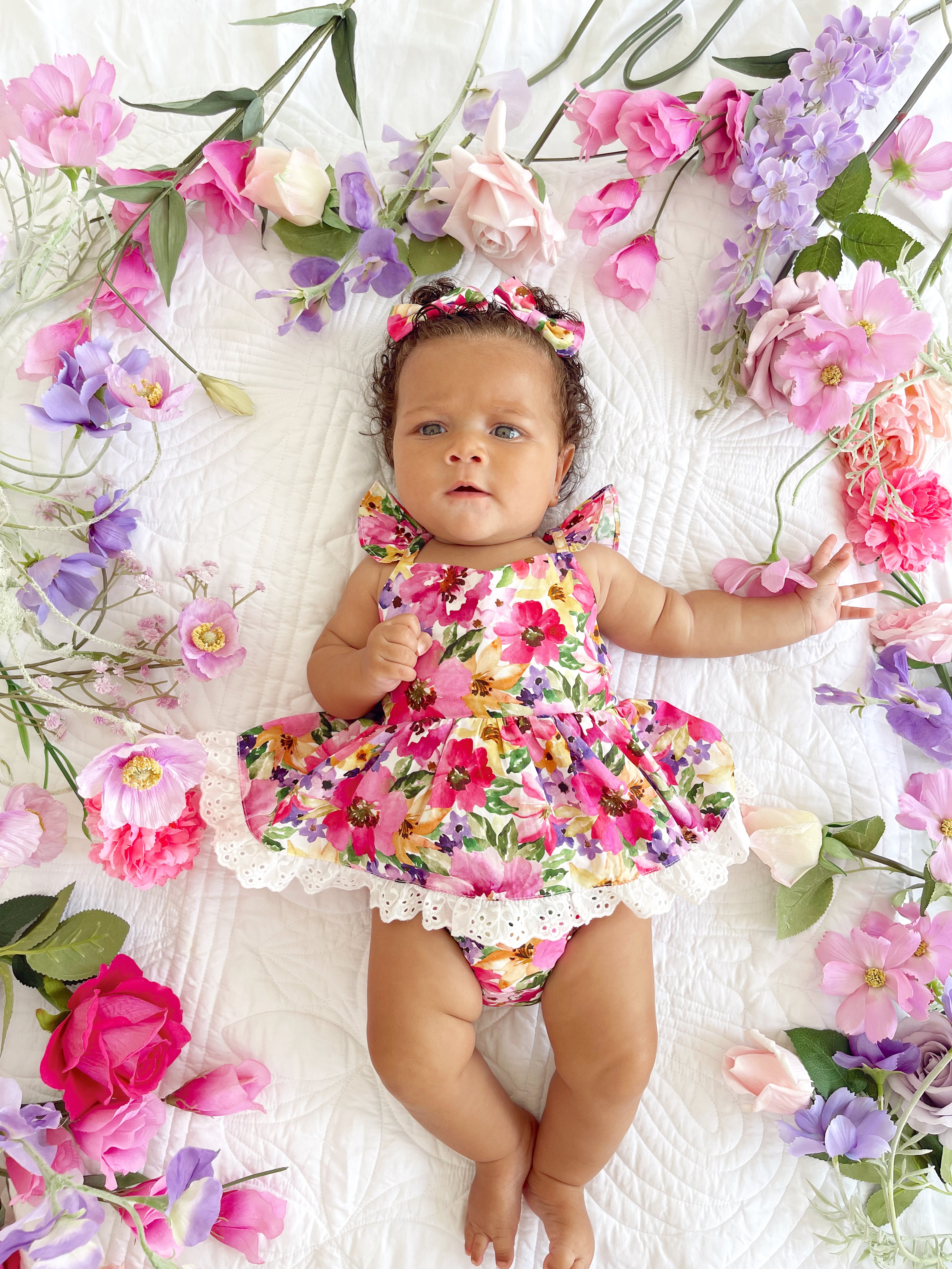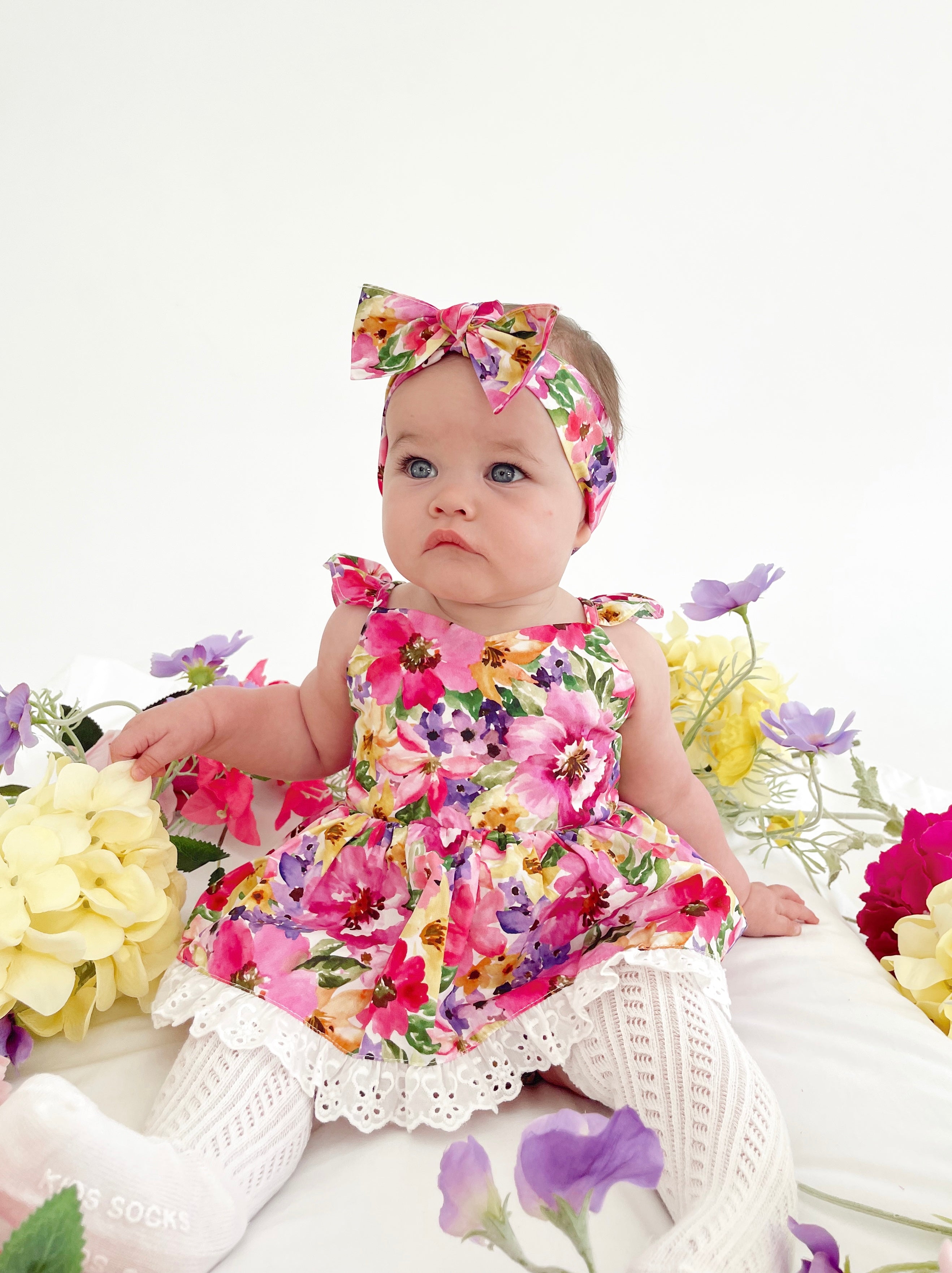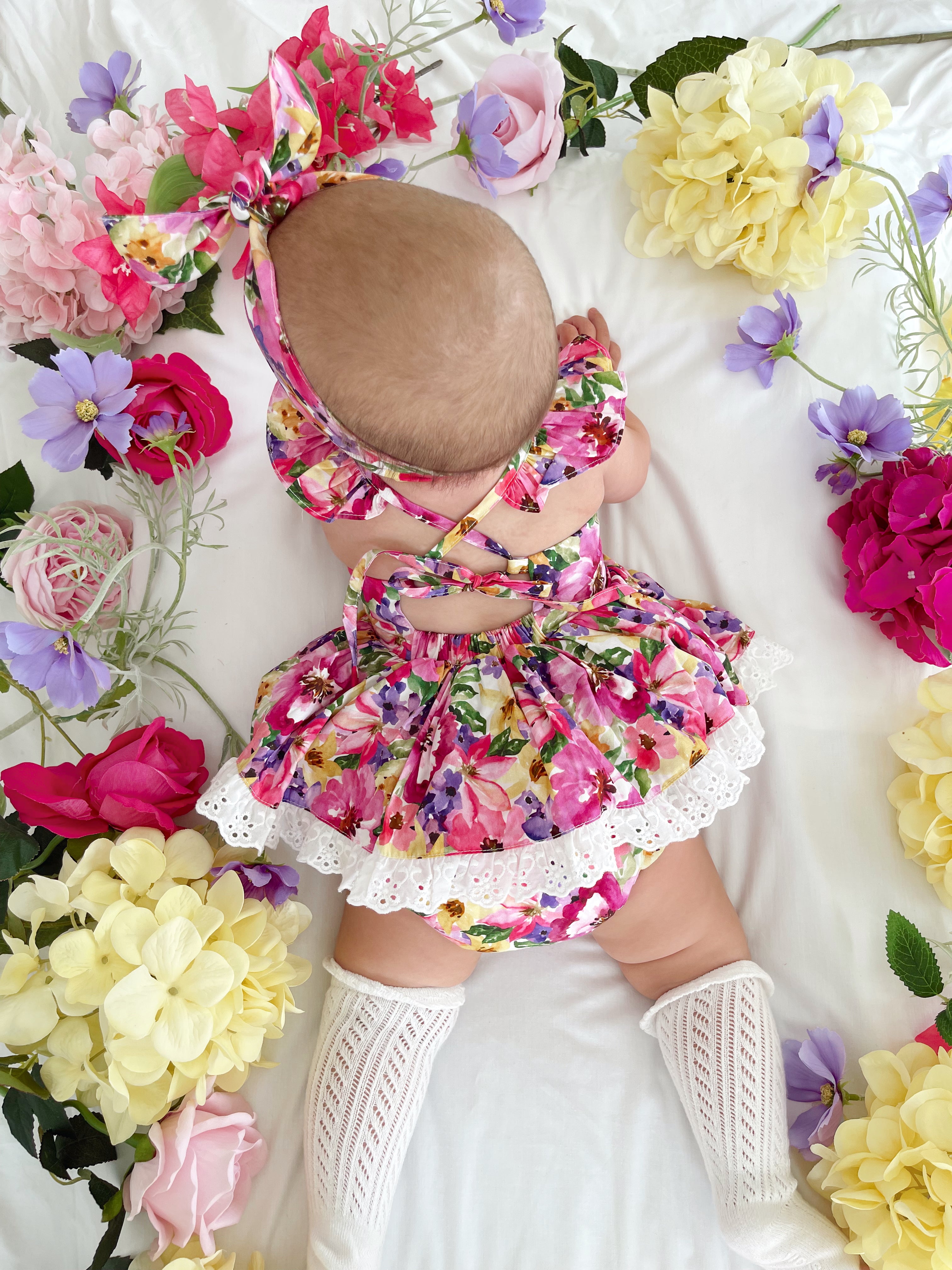 Prepare to fall in love with our new Floral Fiesta Collection! This bright and blooming lineup features three gorgeous dresses with matching baby sister rompers, plus the sweetest coordinating accessories. Bursting with vibrant florals, these pieces are made to bring joy, colour, and sweetness to your little girl’s Spring/Summer wardrobe.