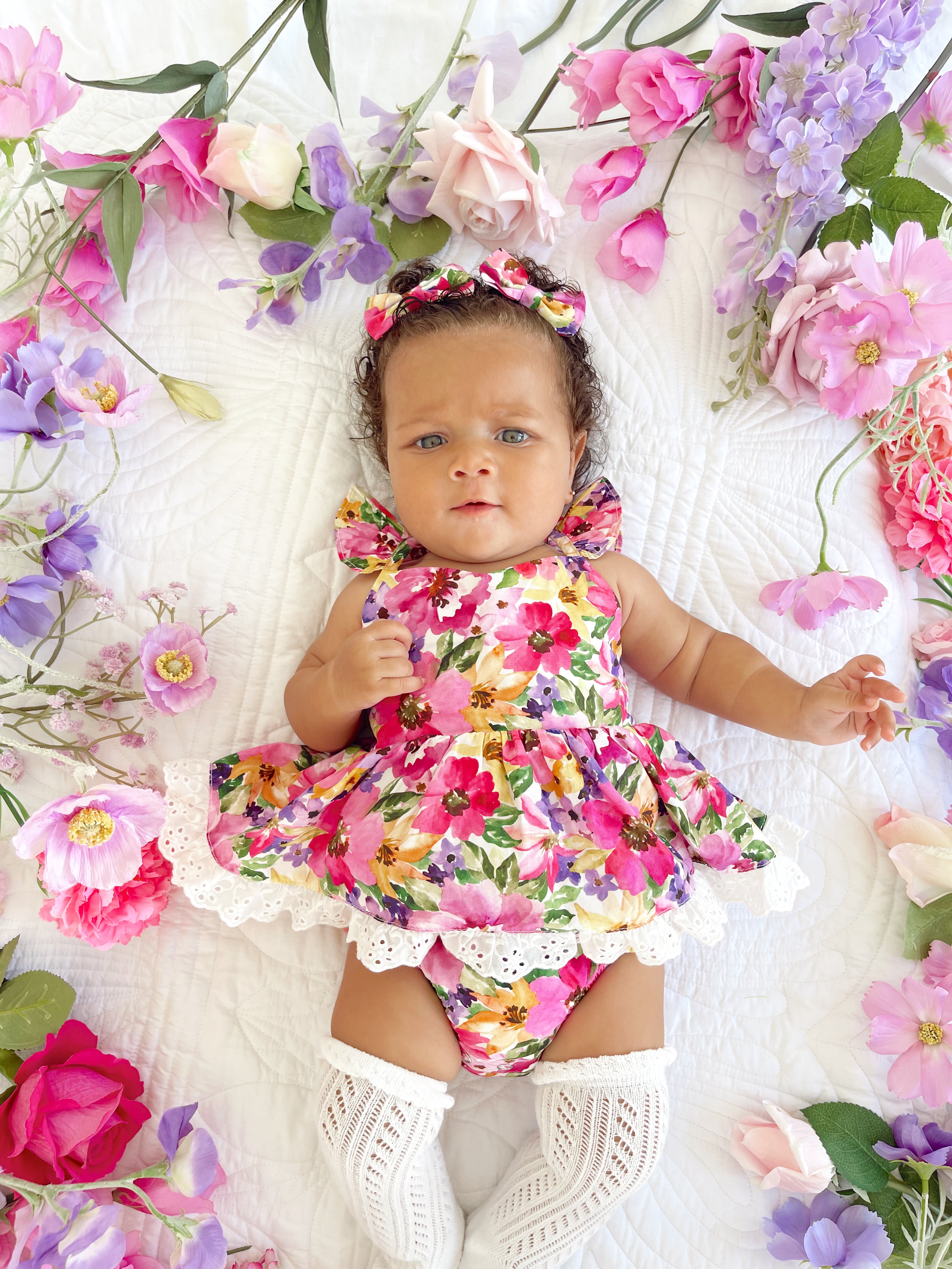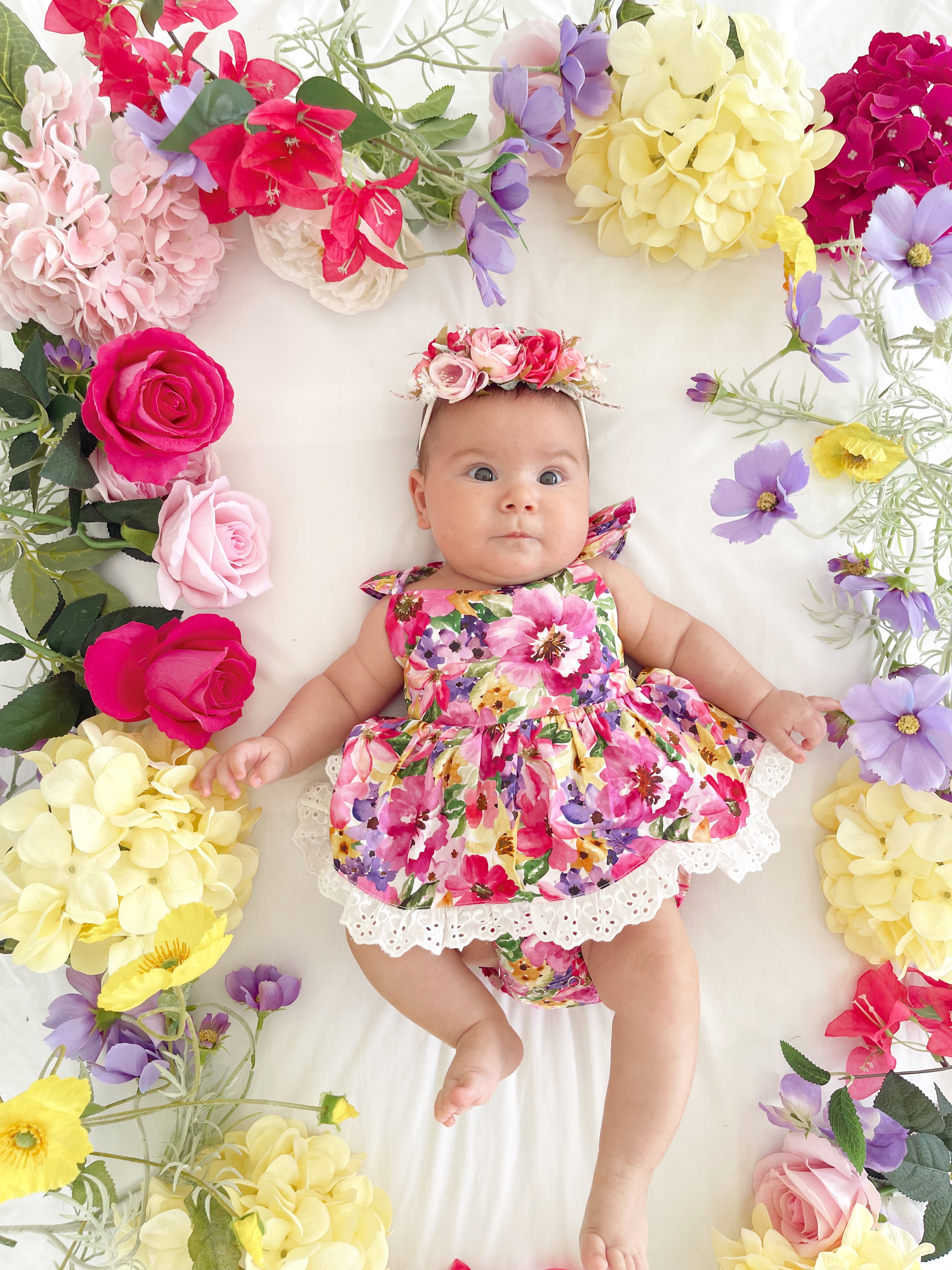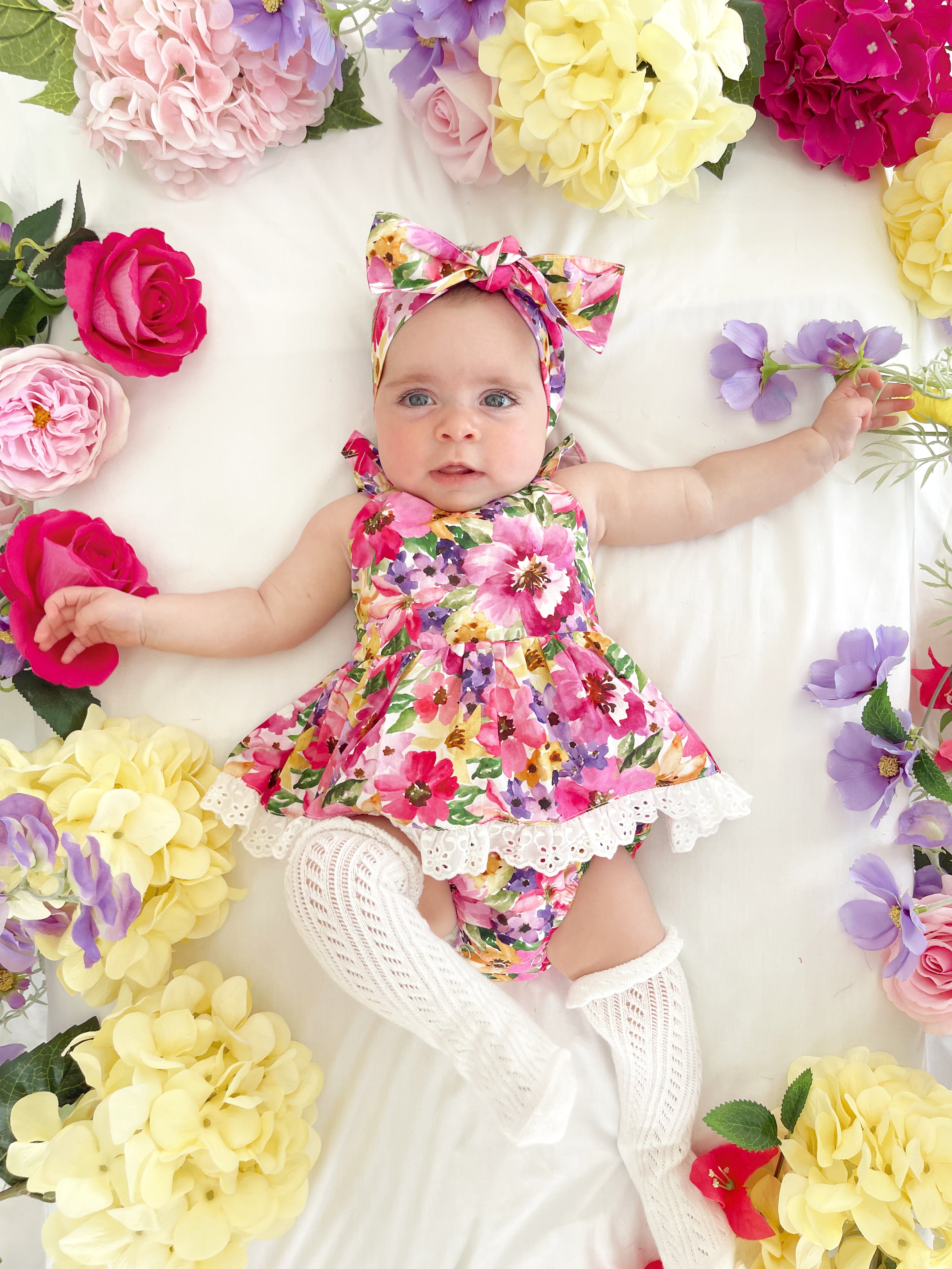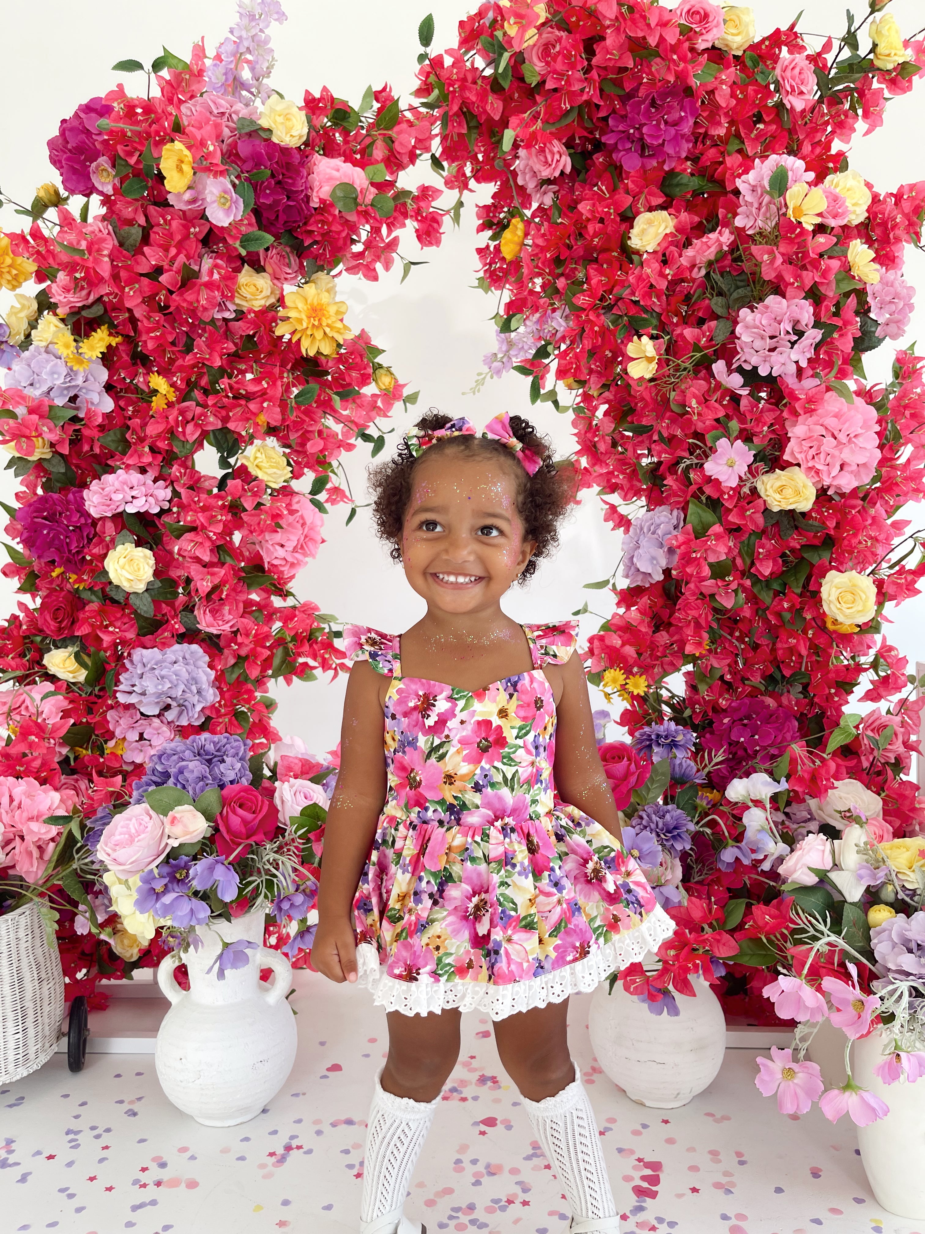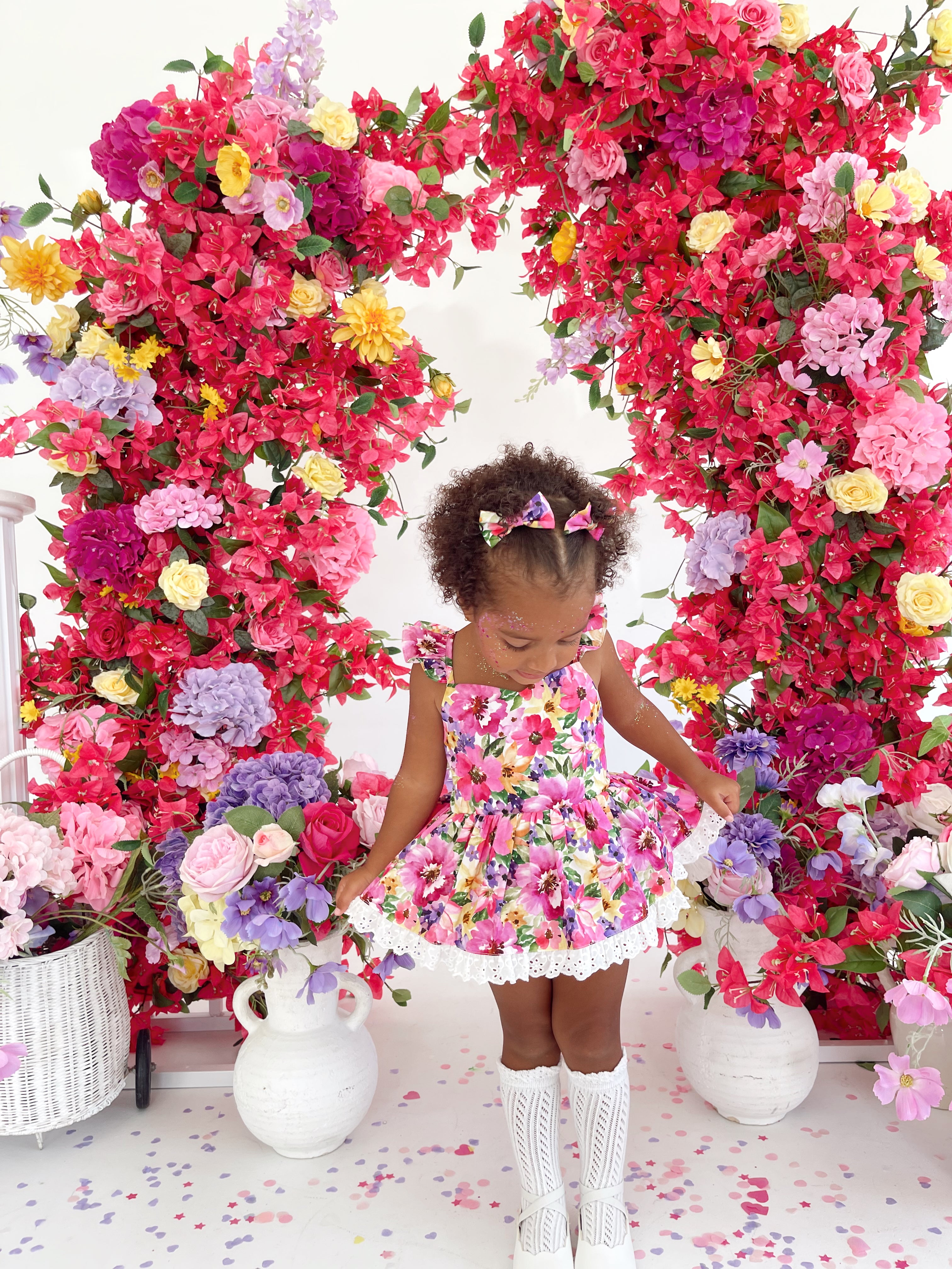 Prepare to fall in love with our new Floral Fiesta Collection! This bright and blooming lineup features three gorgeous dresses with matching baby sister rompers, plus the sweetest coordinating accessories. Bursting with vibrant florals, these pieces are made to bring joy, colour, and sweetness to your little girl’s Spring/Summer wardrobe.