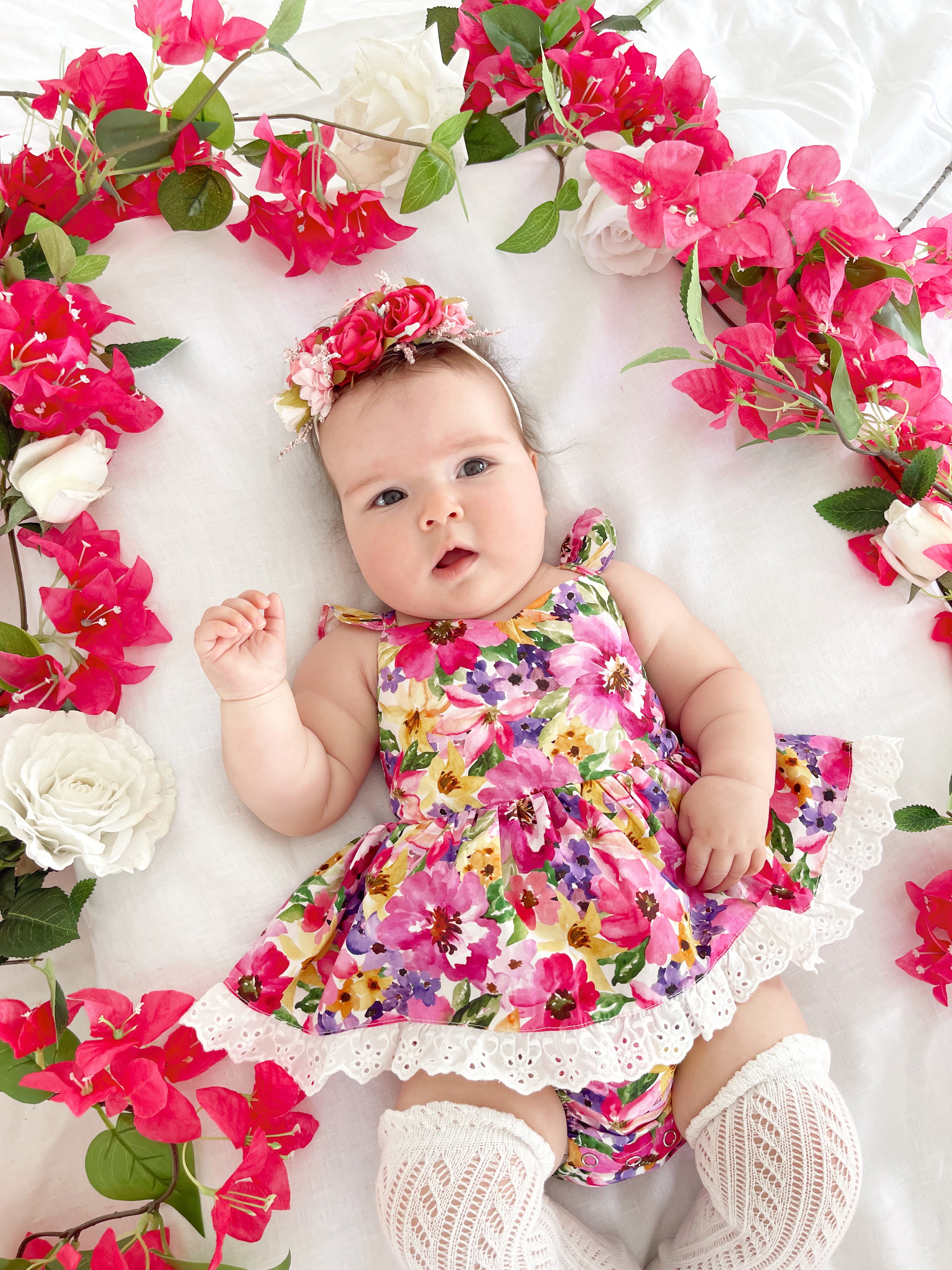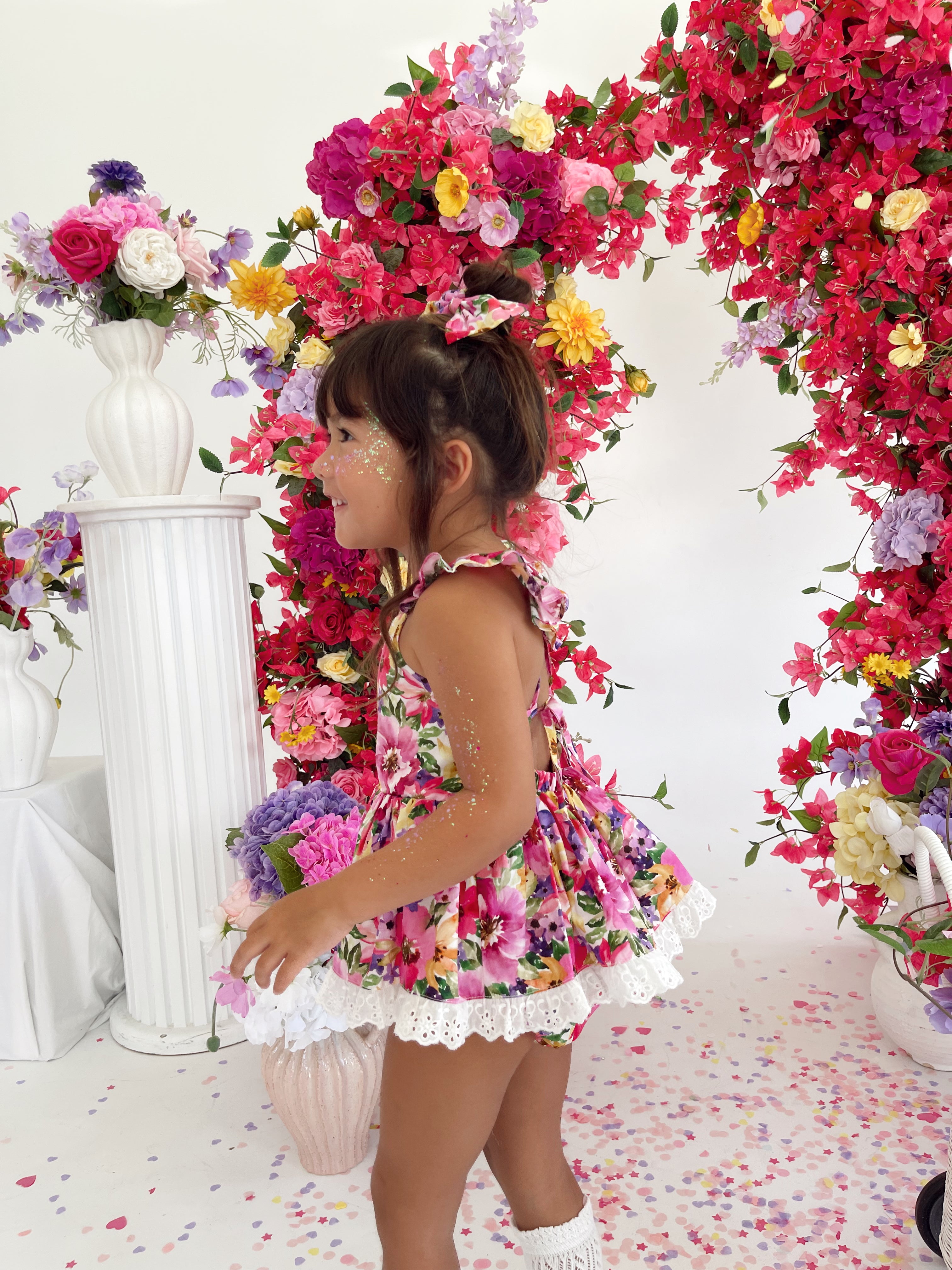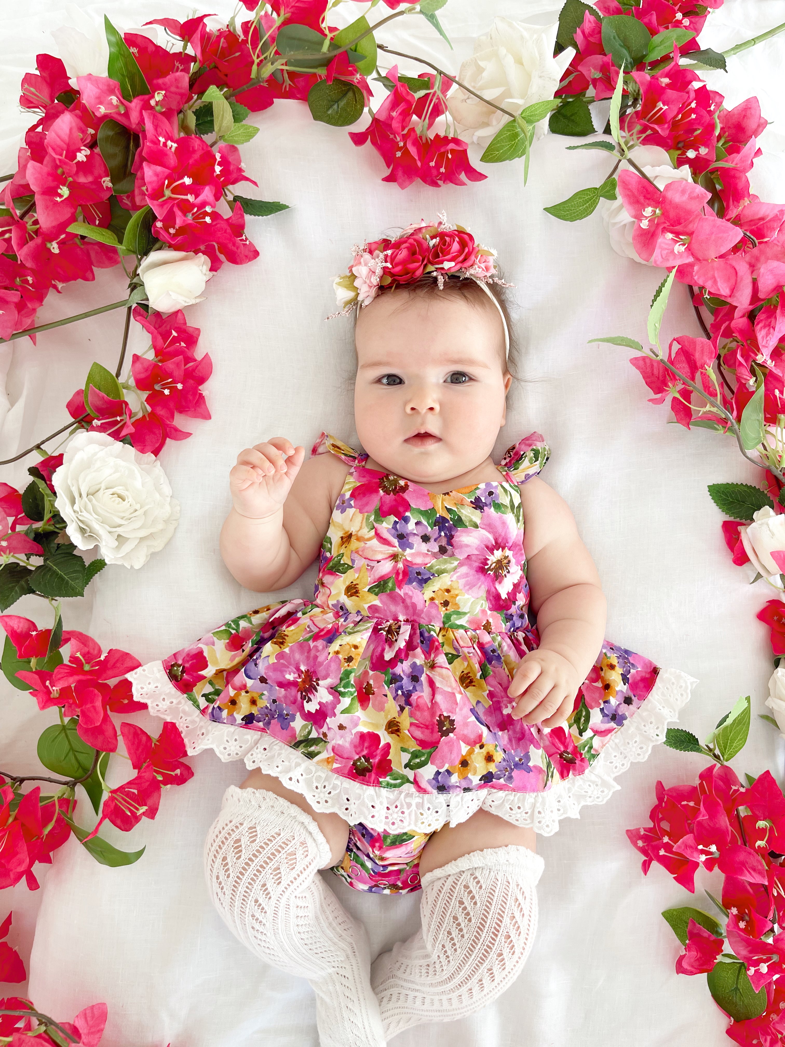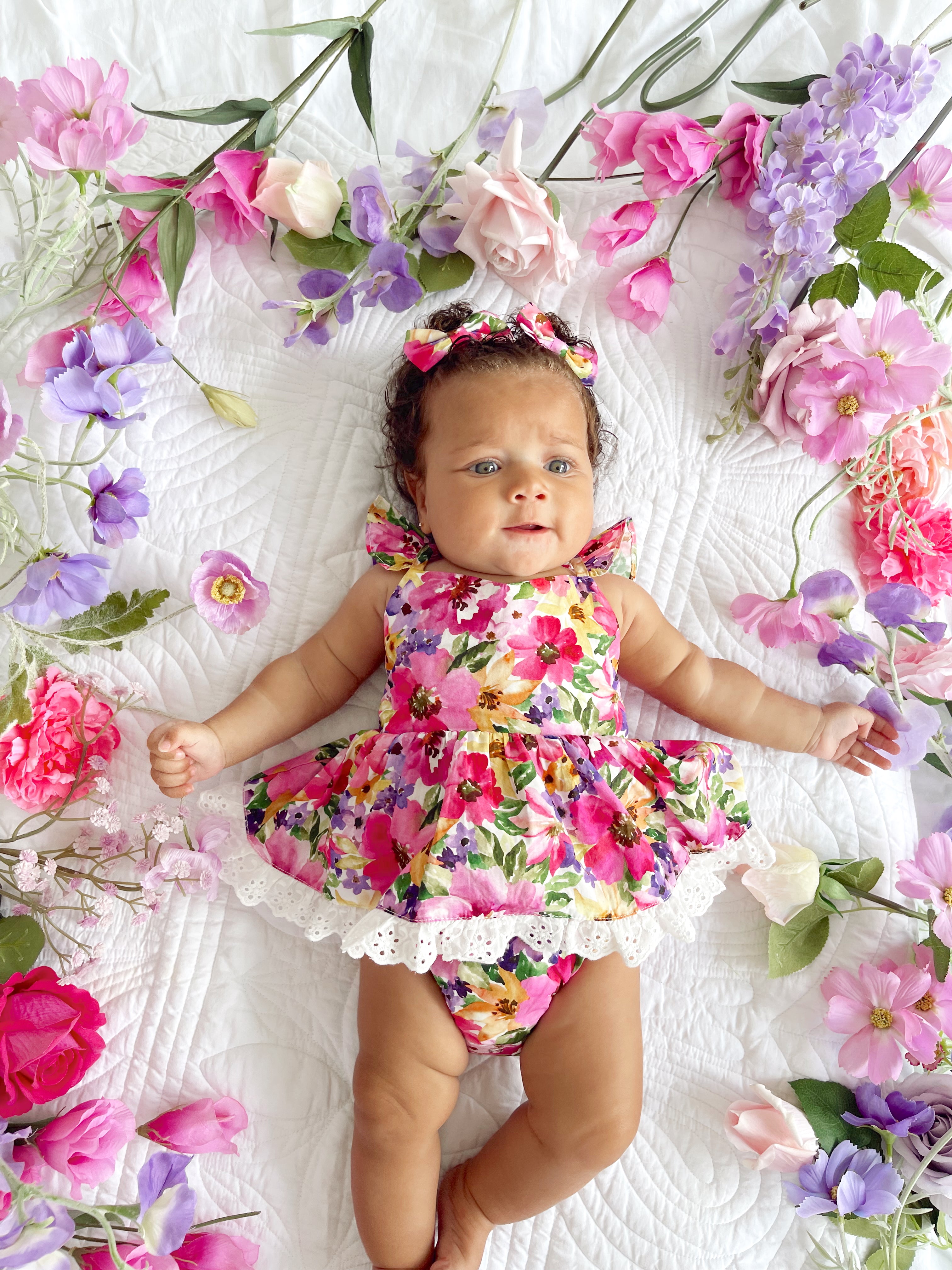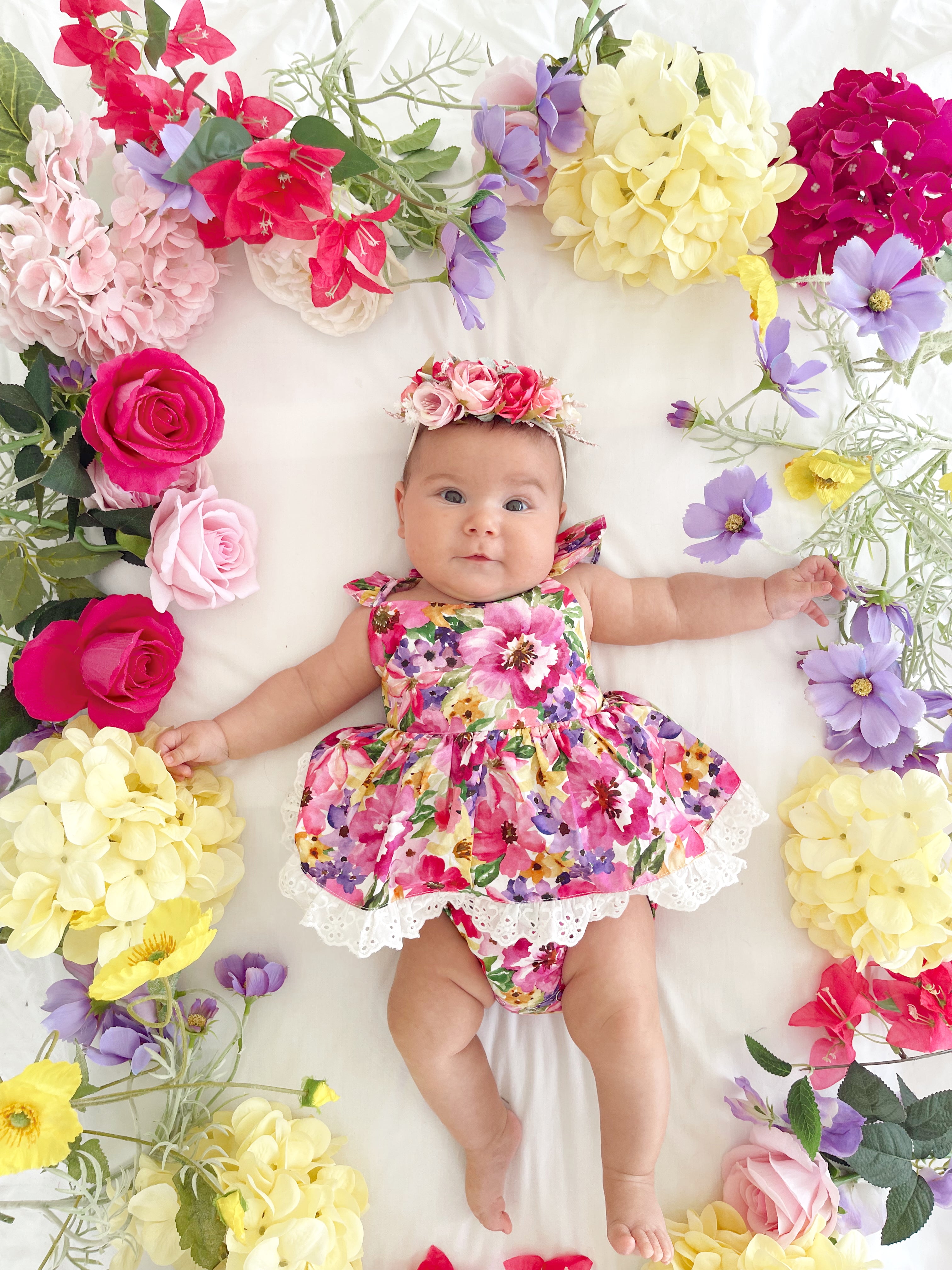 Prepare to fall in love with our new Floral Fiesta Collection! This bright and blooming lineup features three gorgeous dresses with matching baby sister rompers, plus the sweetest coordinating accessories. Bursting with vibrant florals, these pieces are made to bring joy, colour, and sweetness to your little girl’s Spring/Summer wardrobe.