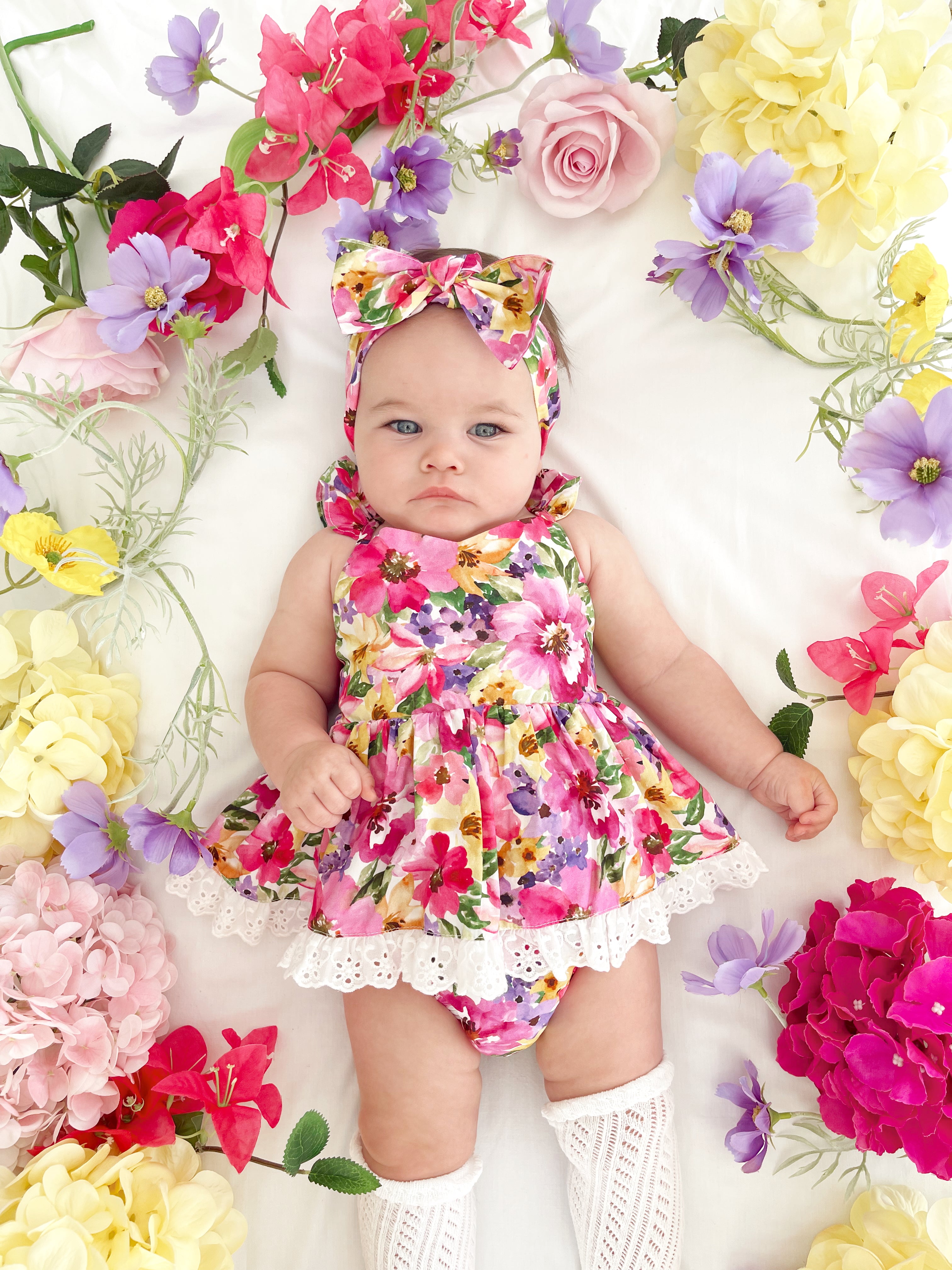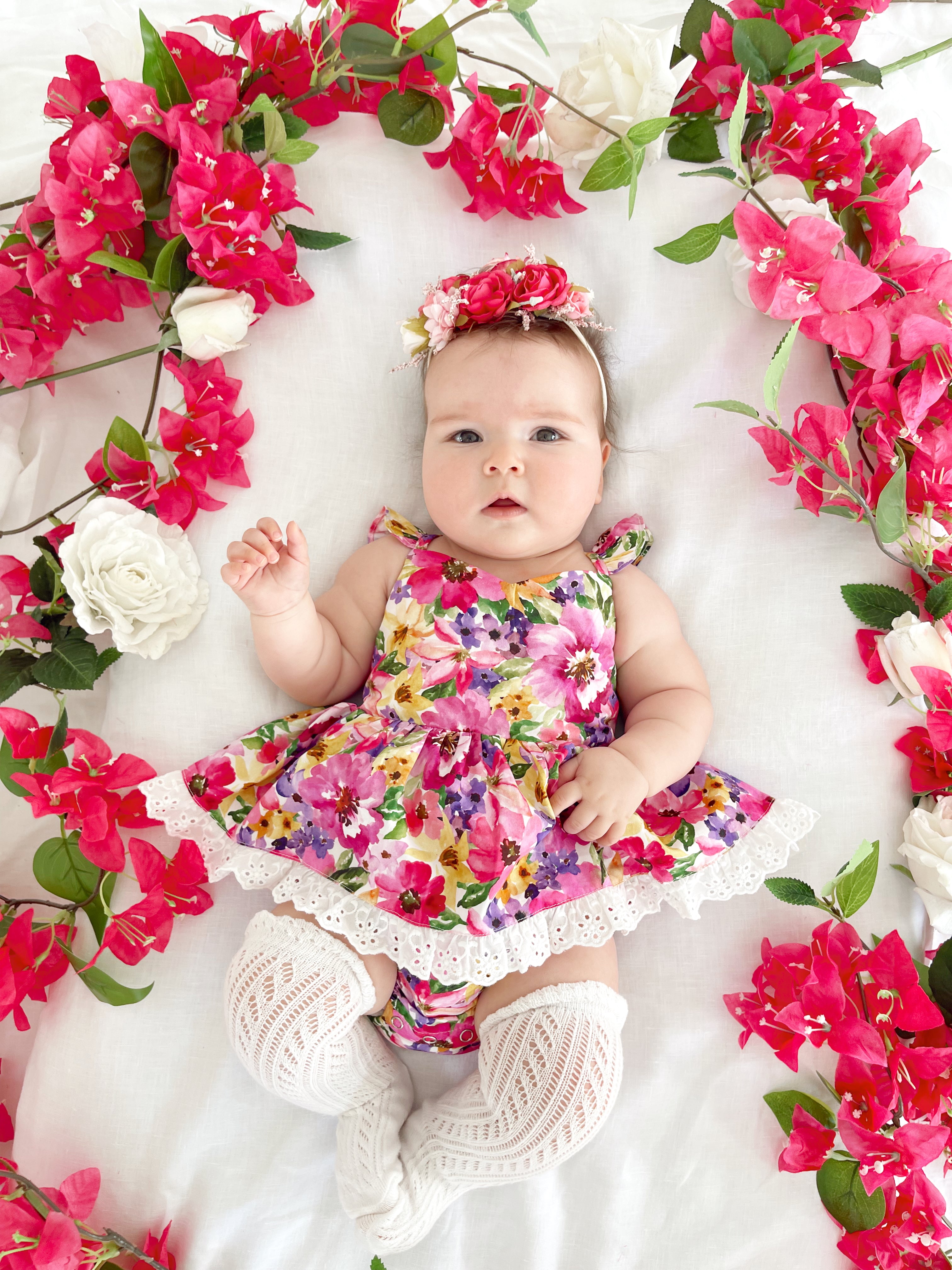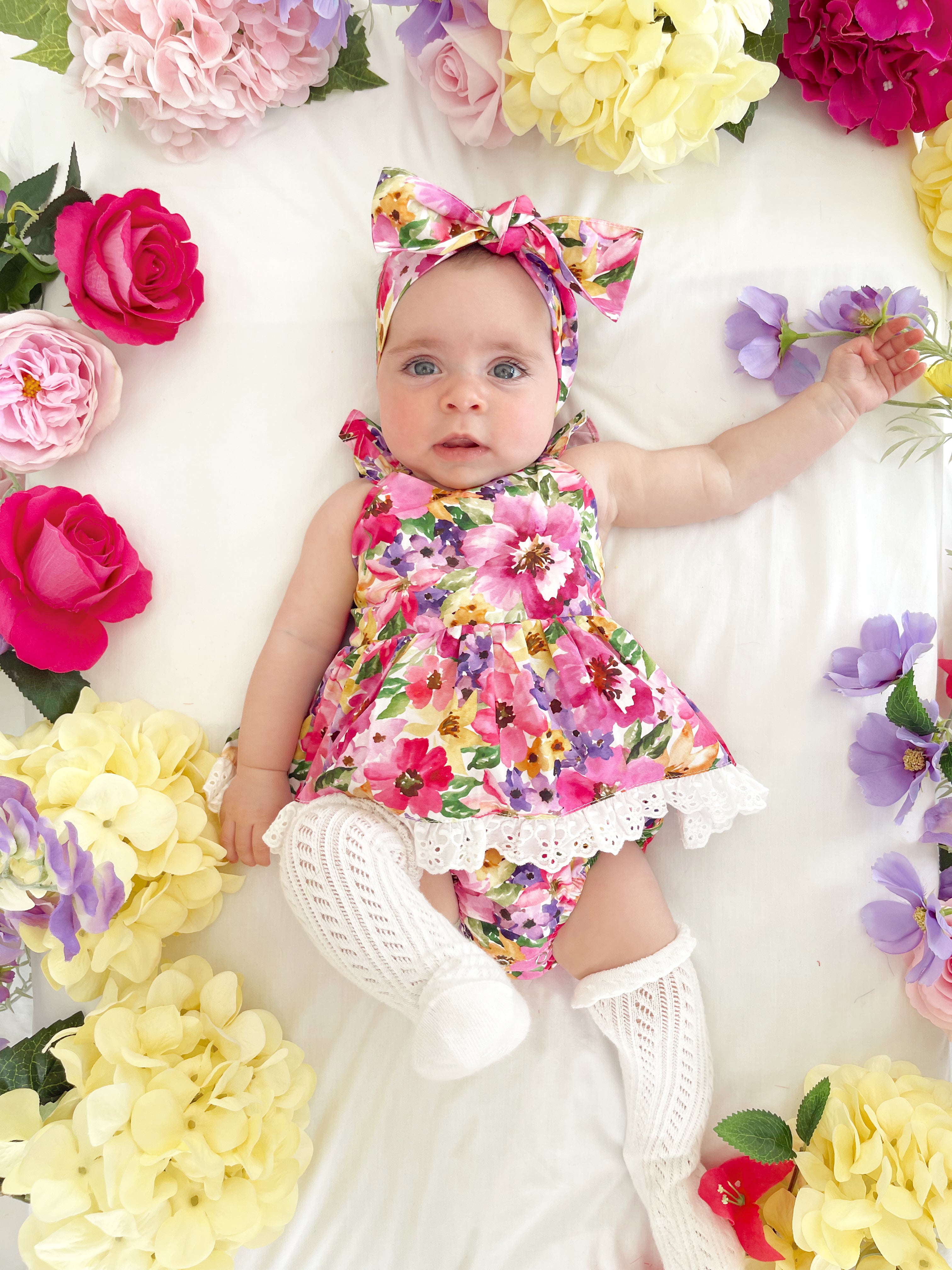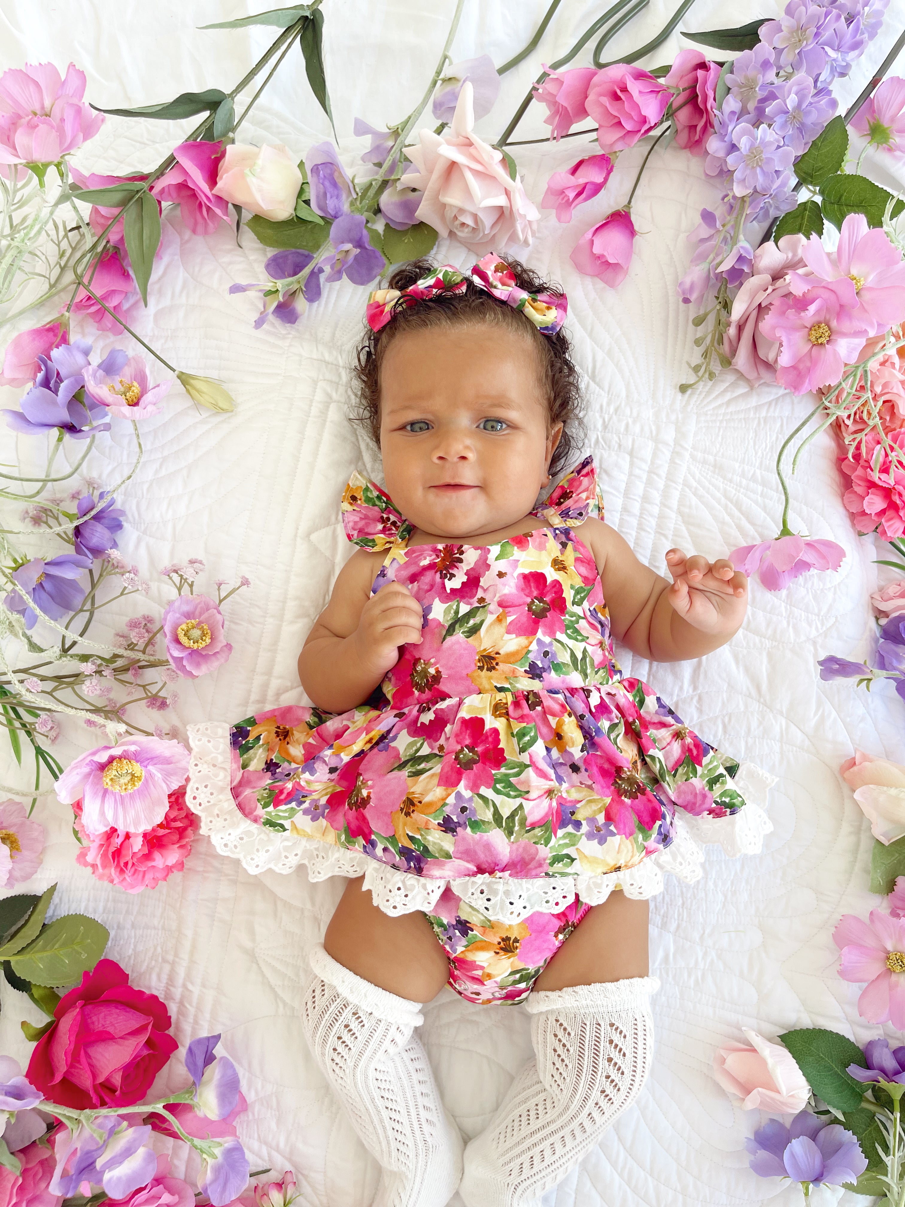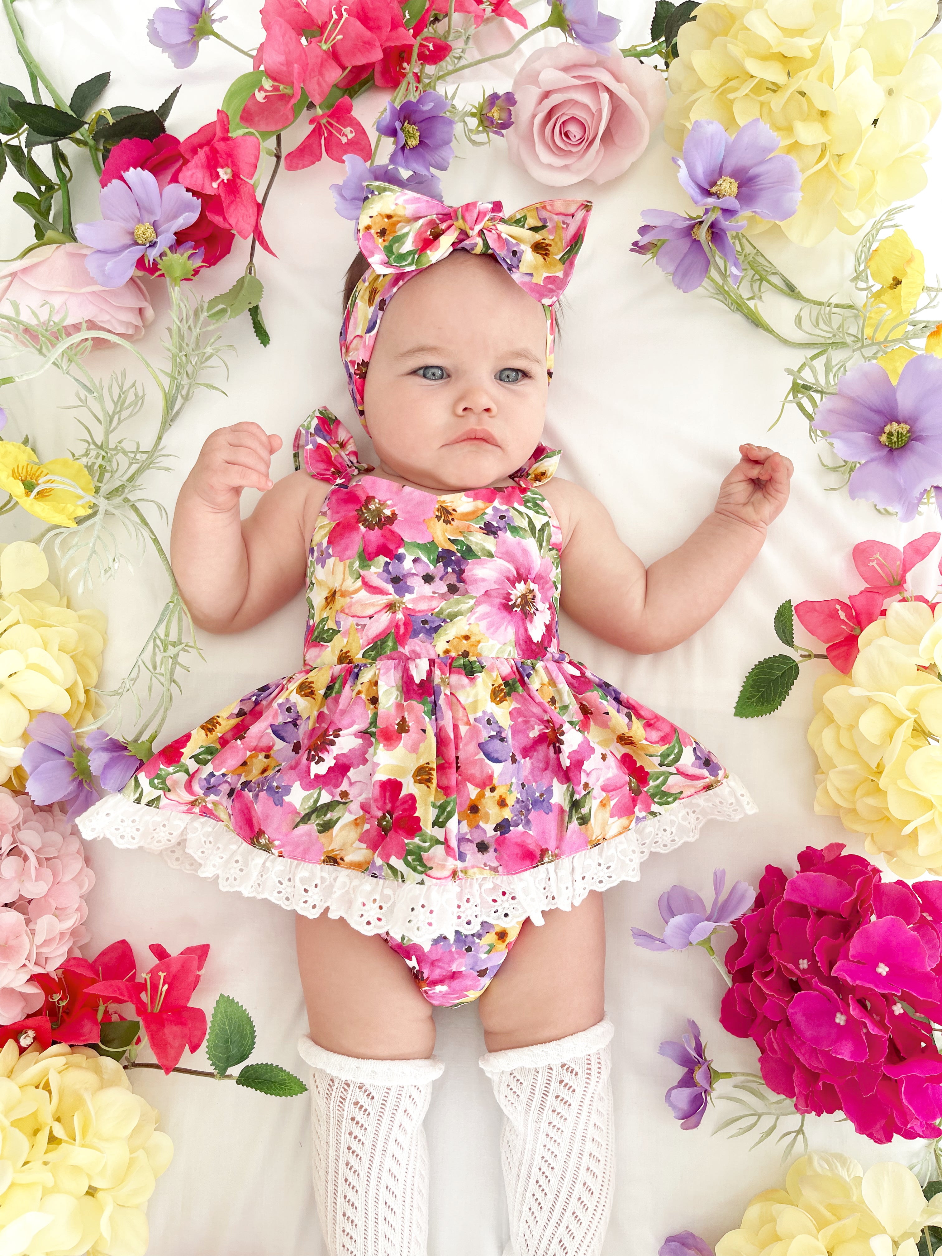 Prepare to fall in love with our new Floral Fiesta Collection! This bright and blooming lineup features three gorgeous dresses with matching baby sister rompers, plus the sweetest coordinating accessories. Bursting with vibrant florals, these pieces are made to bring joy, colour, and sweetness to your little girl’s Spring/Summer wardrobe.
