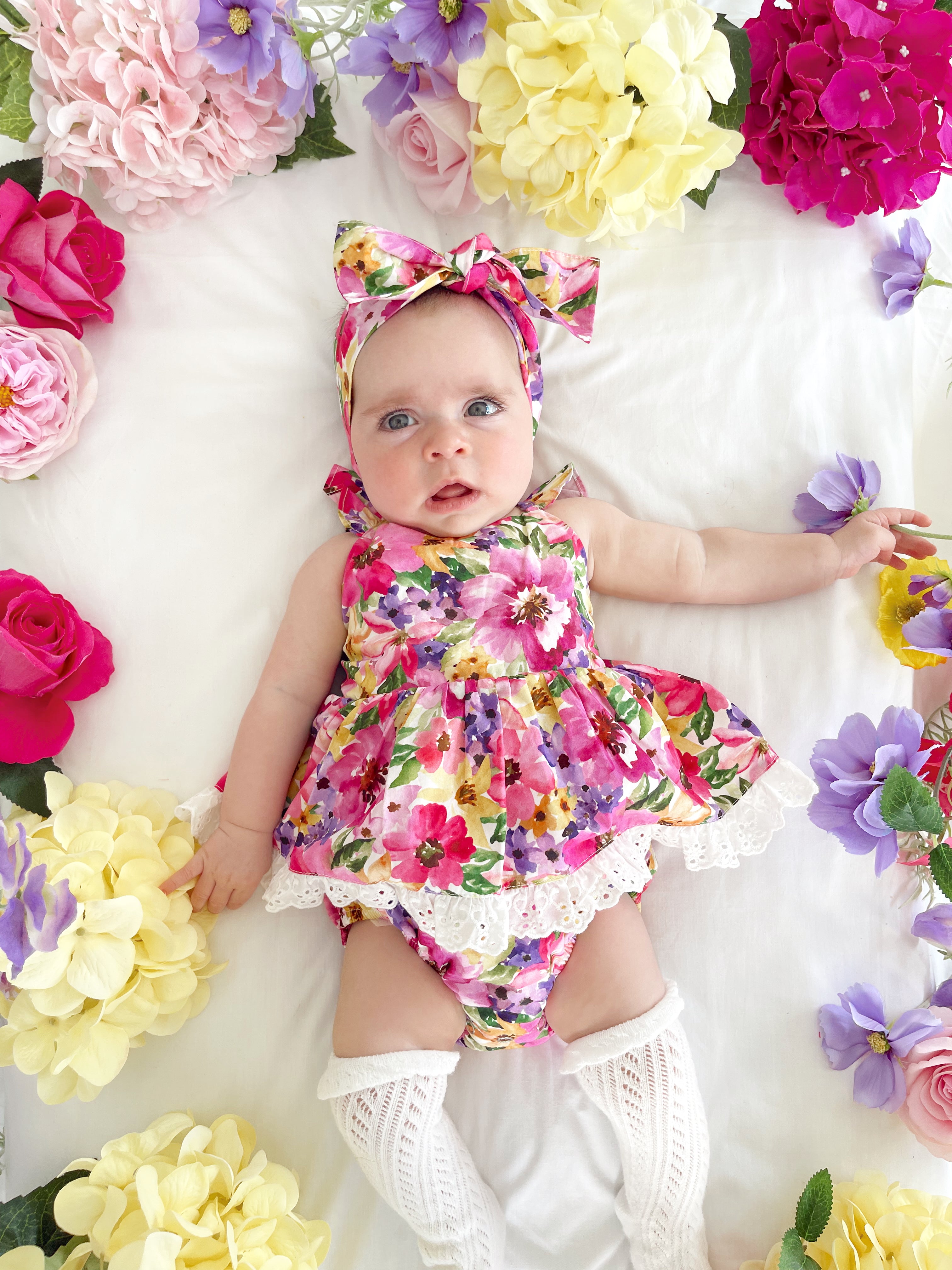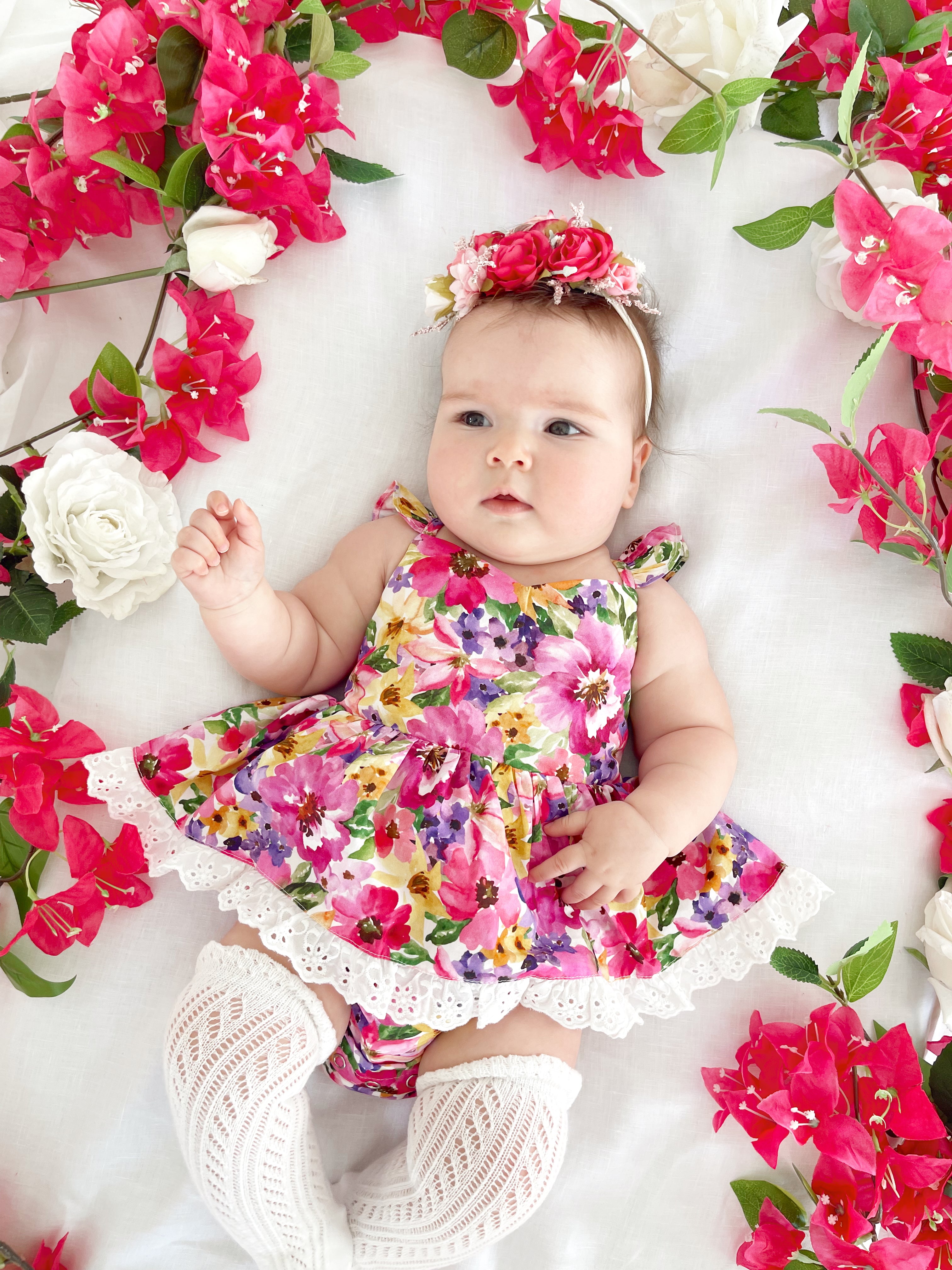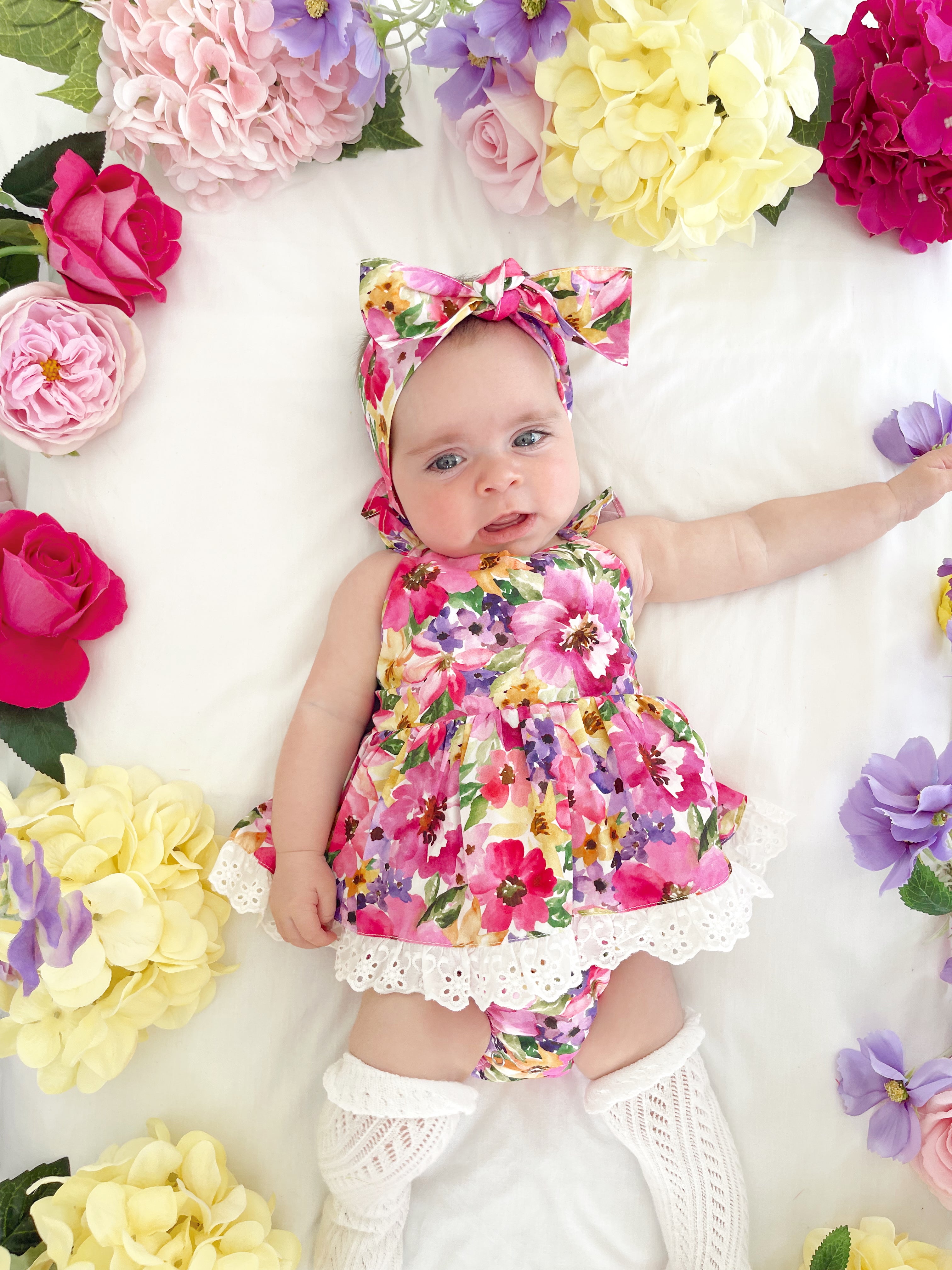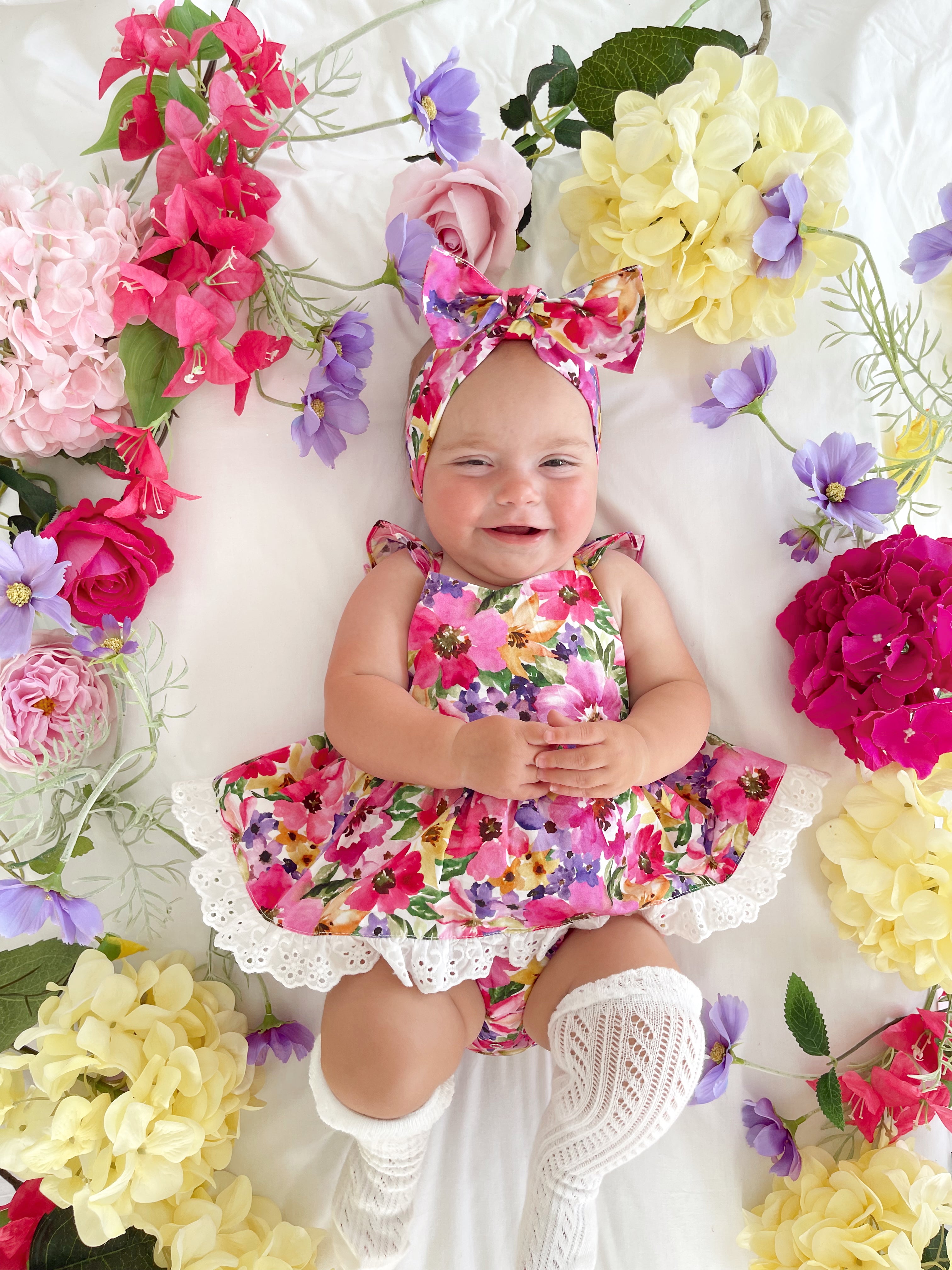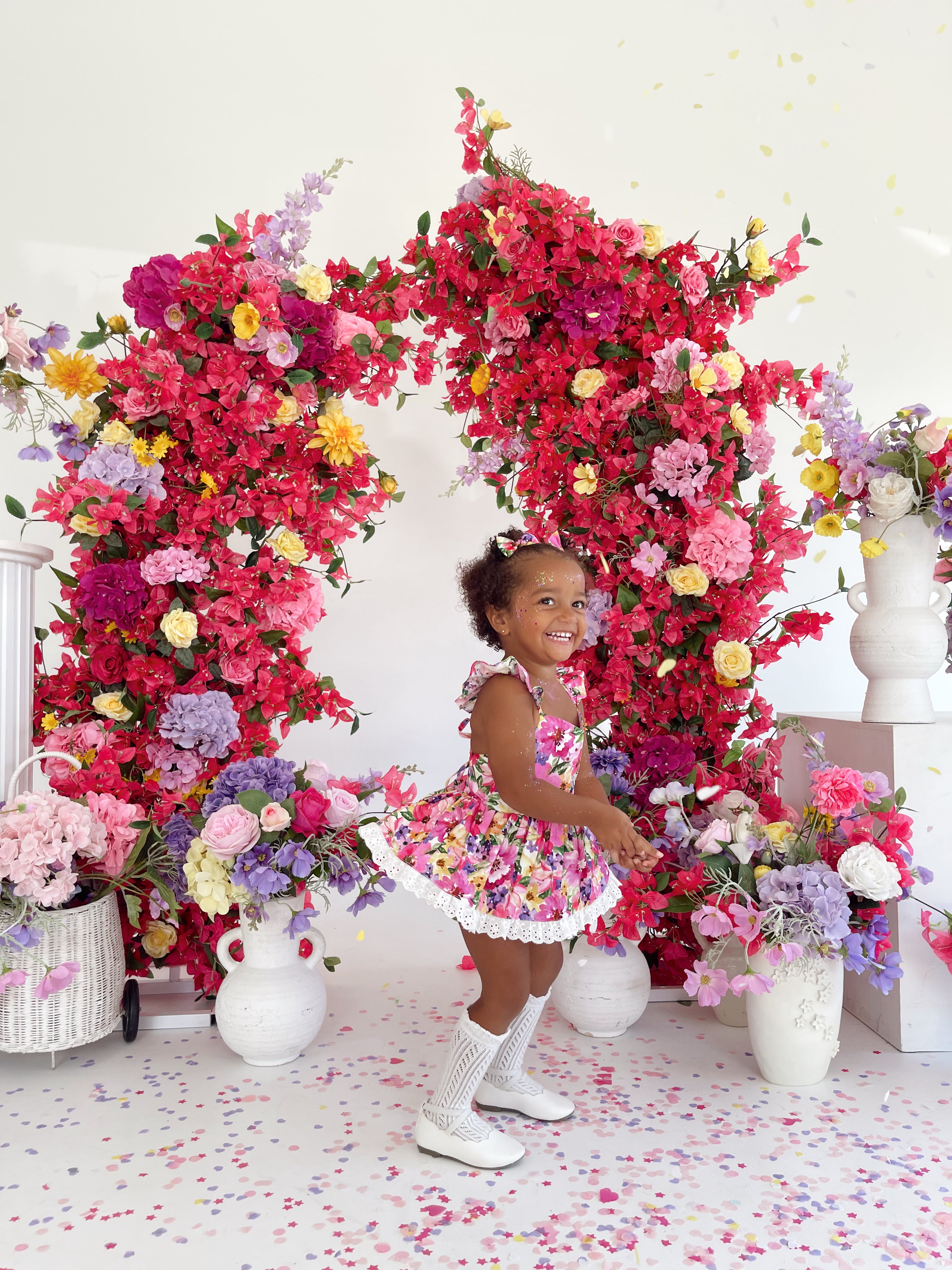Prepare to fall in love with our new Floral Fiesta Collection! This bright and blooming lineup features three gorgeous dresses with matching baby sister rompers, plus the sweetest coordinating accessories. Bursting with vibrant florals, these pieces are made to bring joy, colour, and sweetness to your little girl’s Spring/Summer wardrobe.