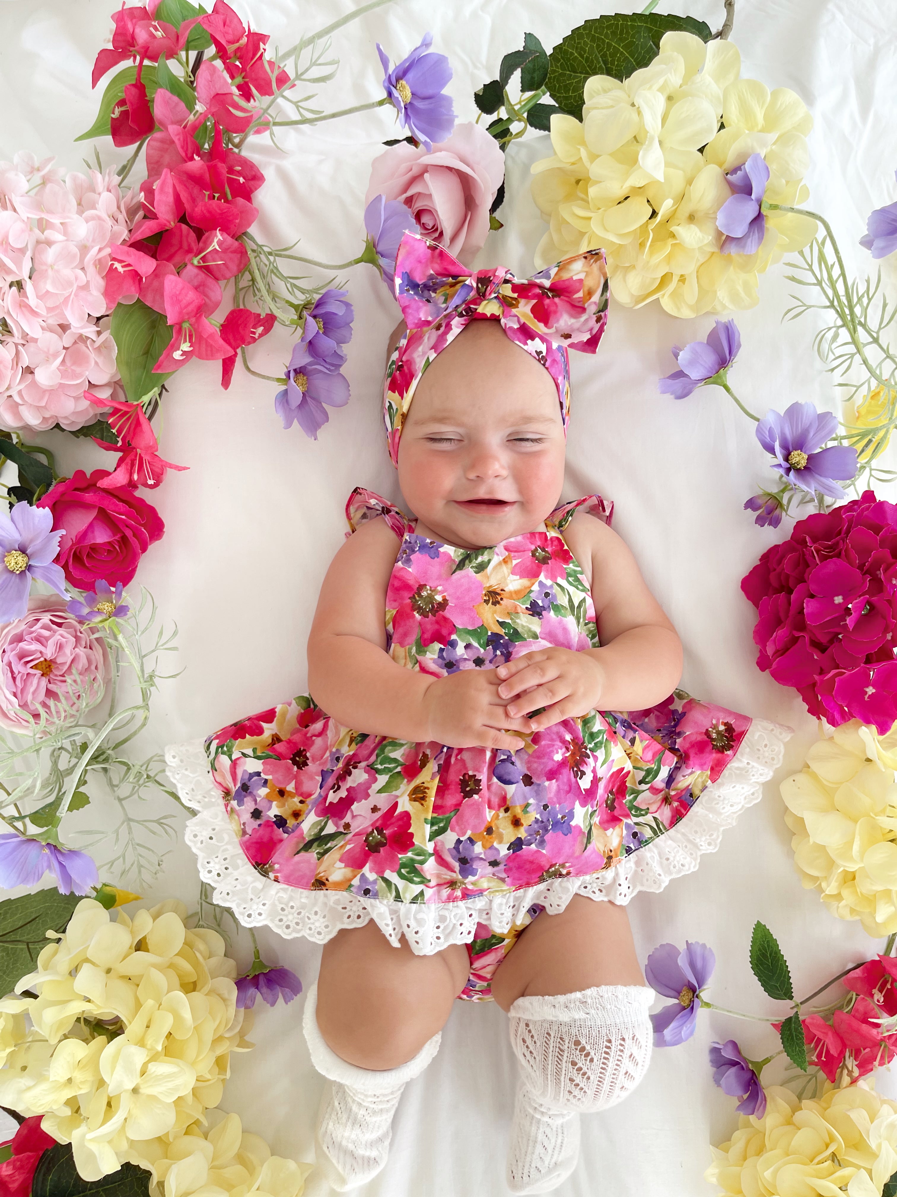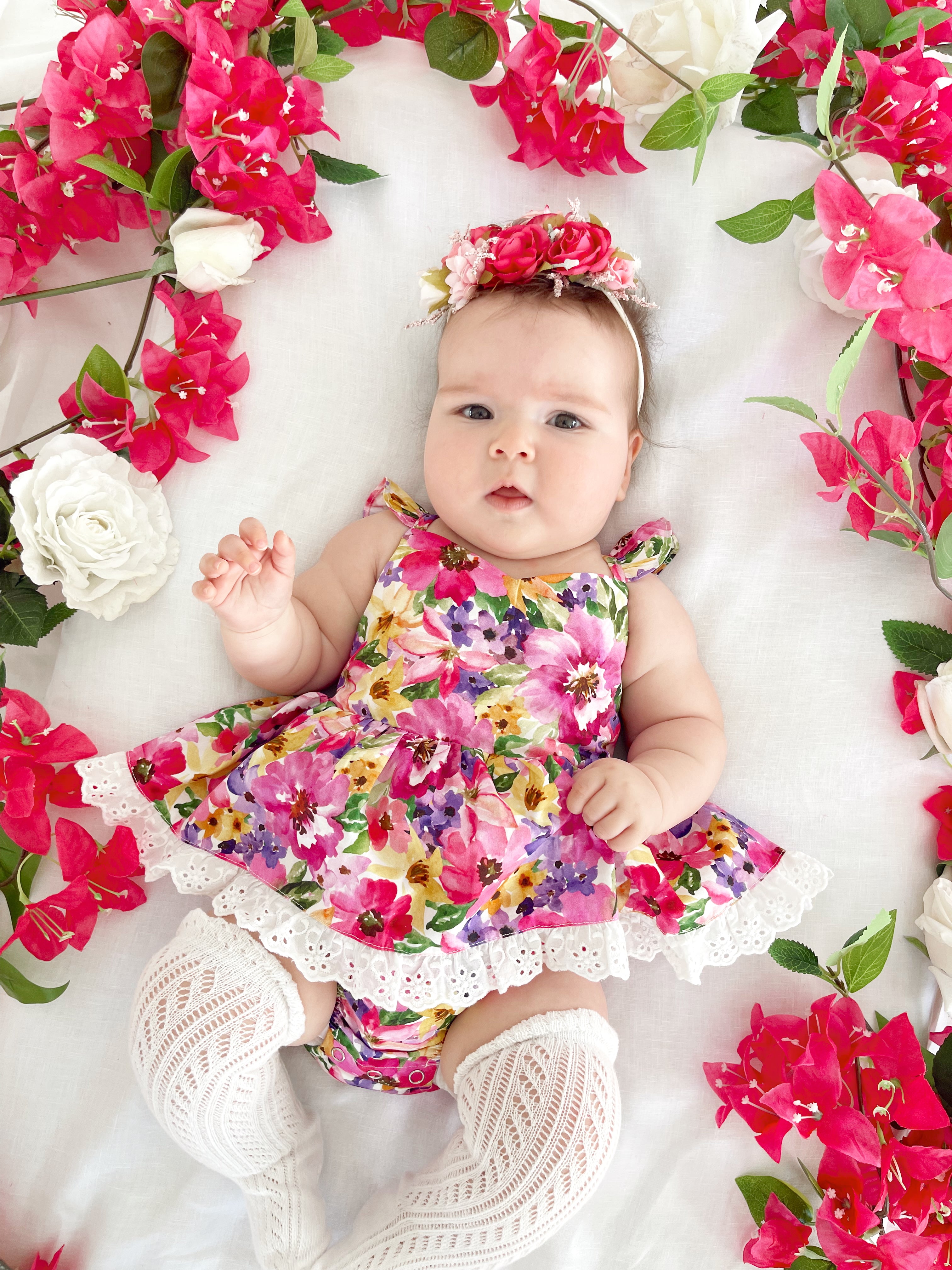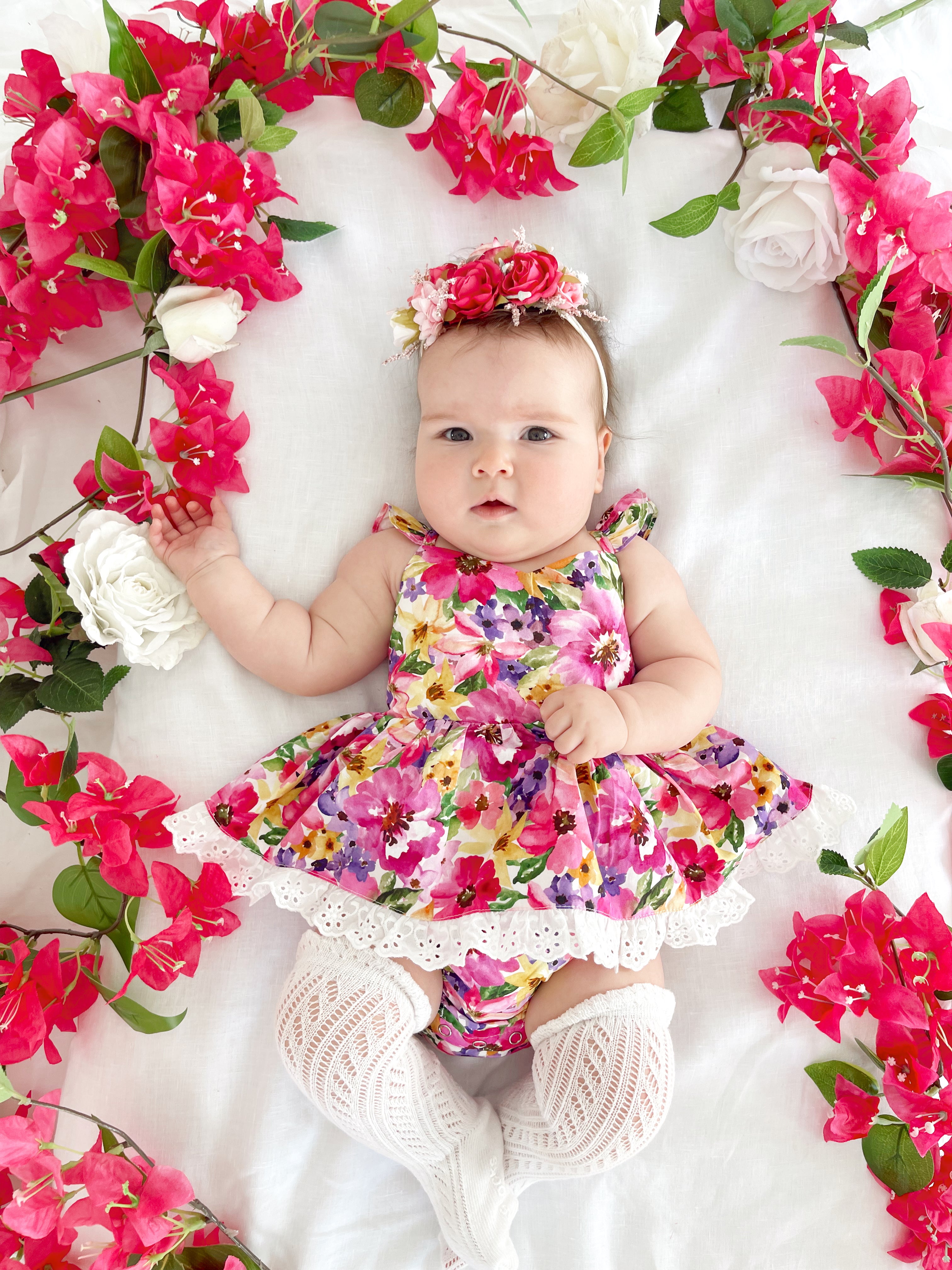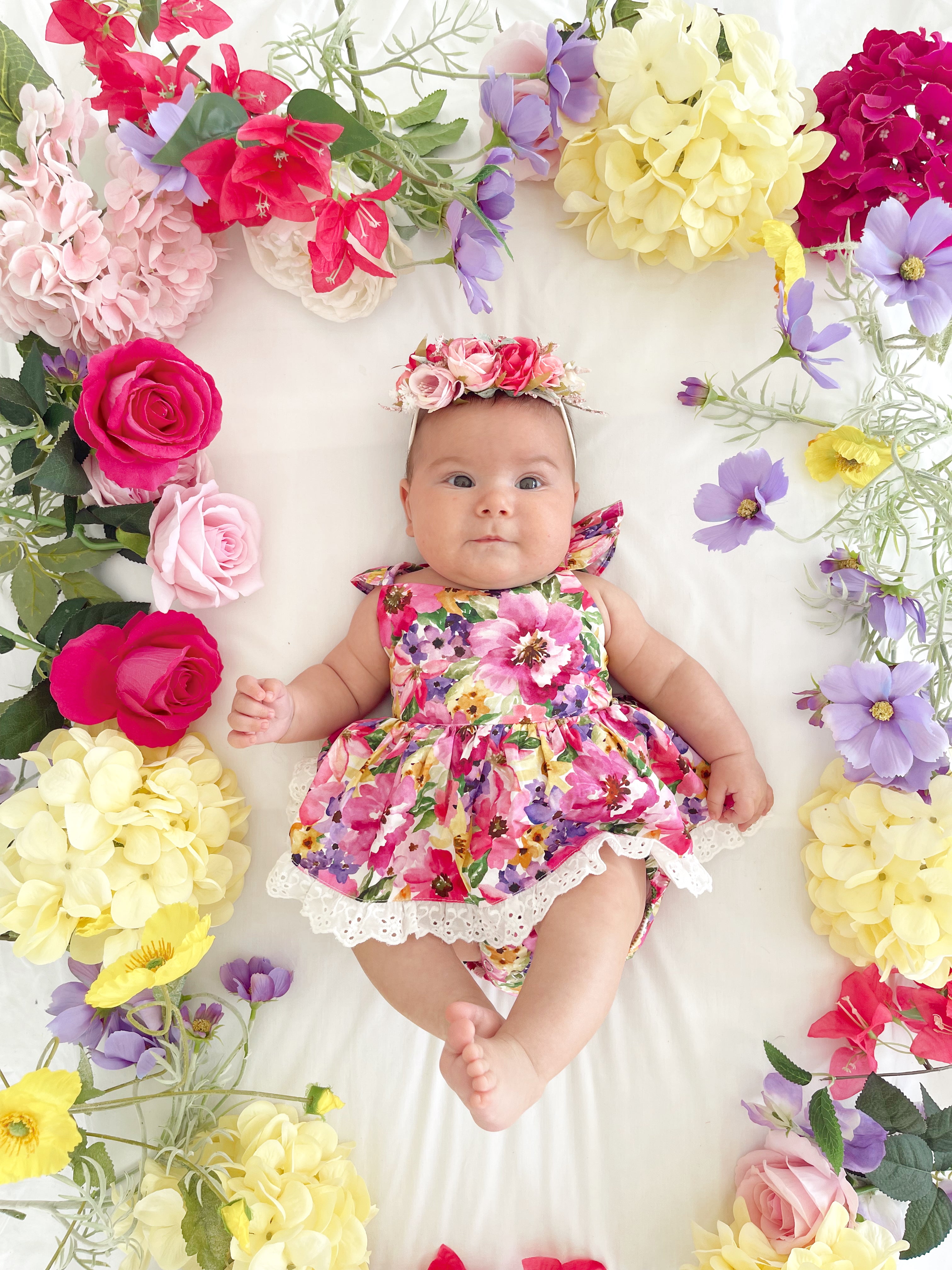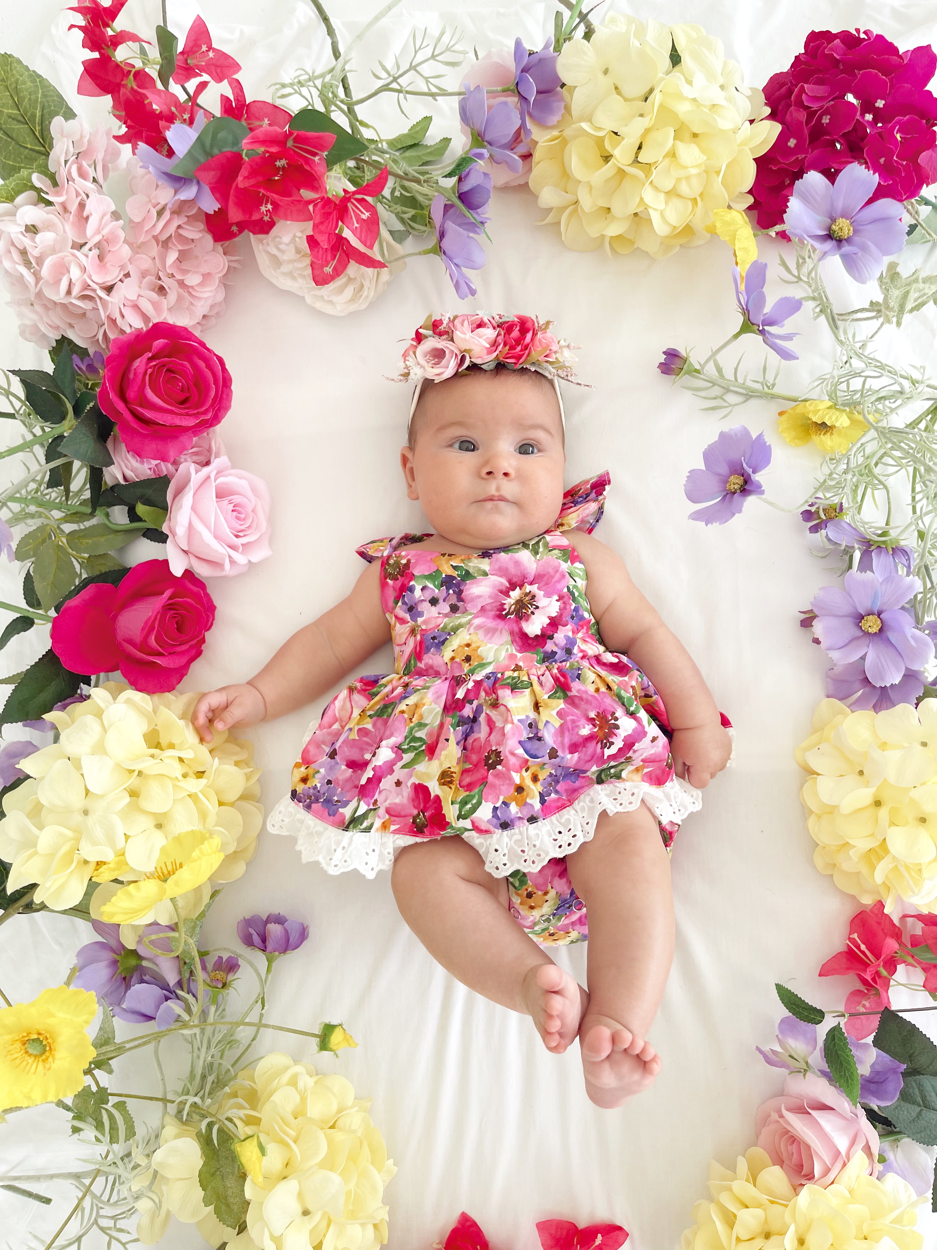 Prepare to fall in love with our new Floral Fiesta Collection! This bright and blooming lineup features three gorgeous dresses with matching baby sister rompers, plus the sweetest coordinating accessories. Bursting with vibrant florals, these pieces are made to bring joy, colour, and sweetness to your little girl’s Spring/Summer wardrobe.