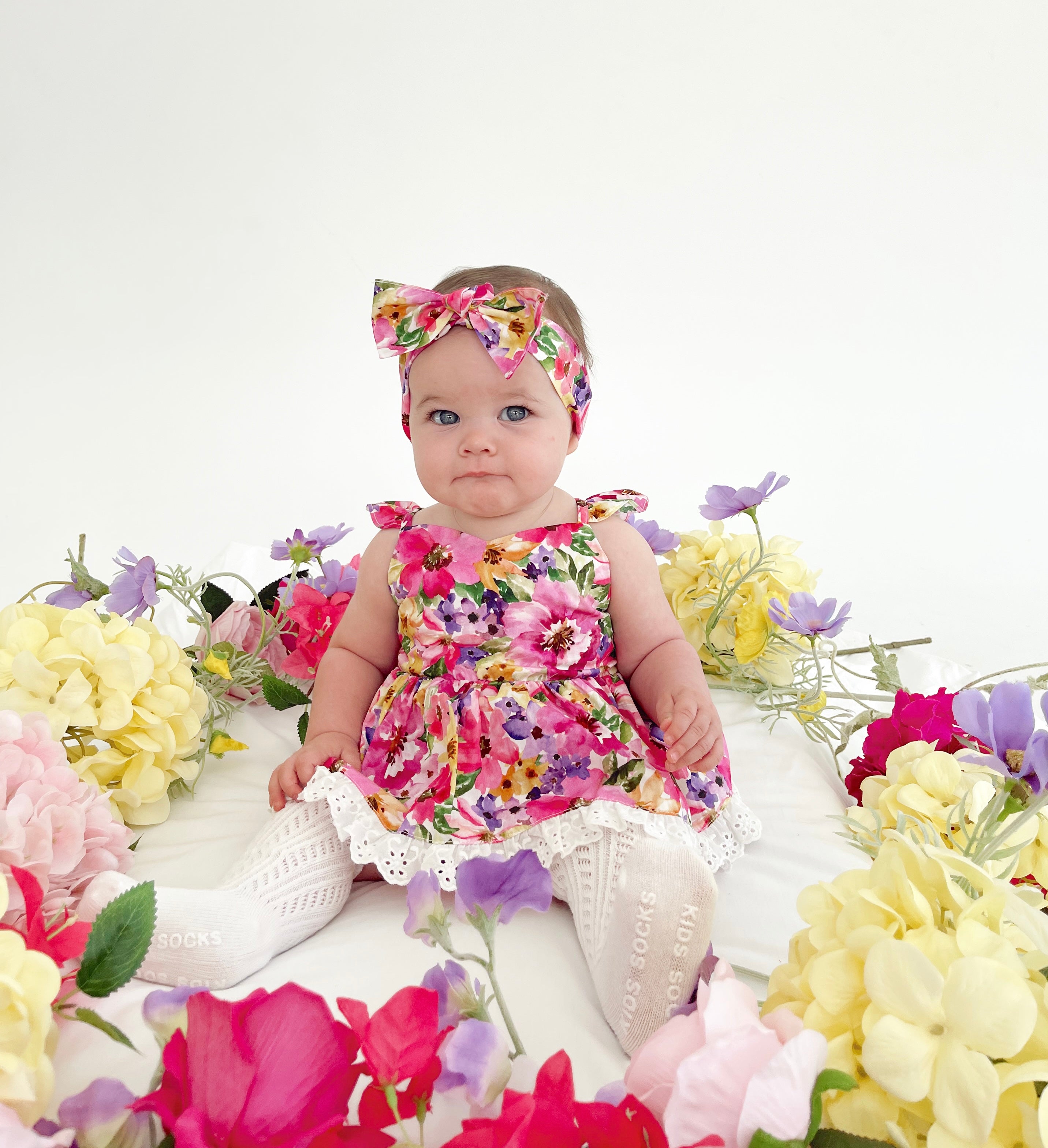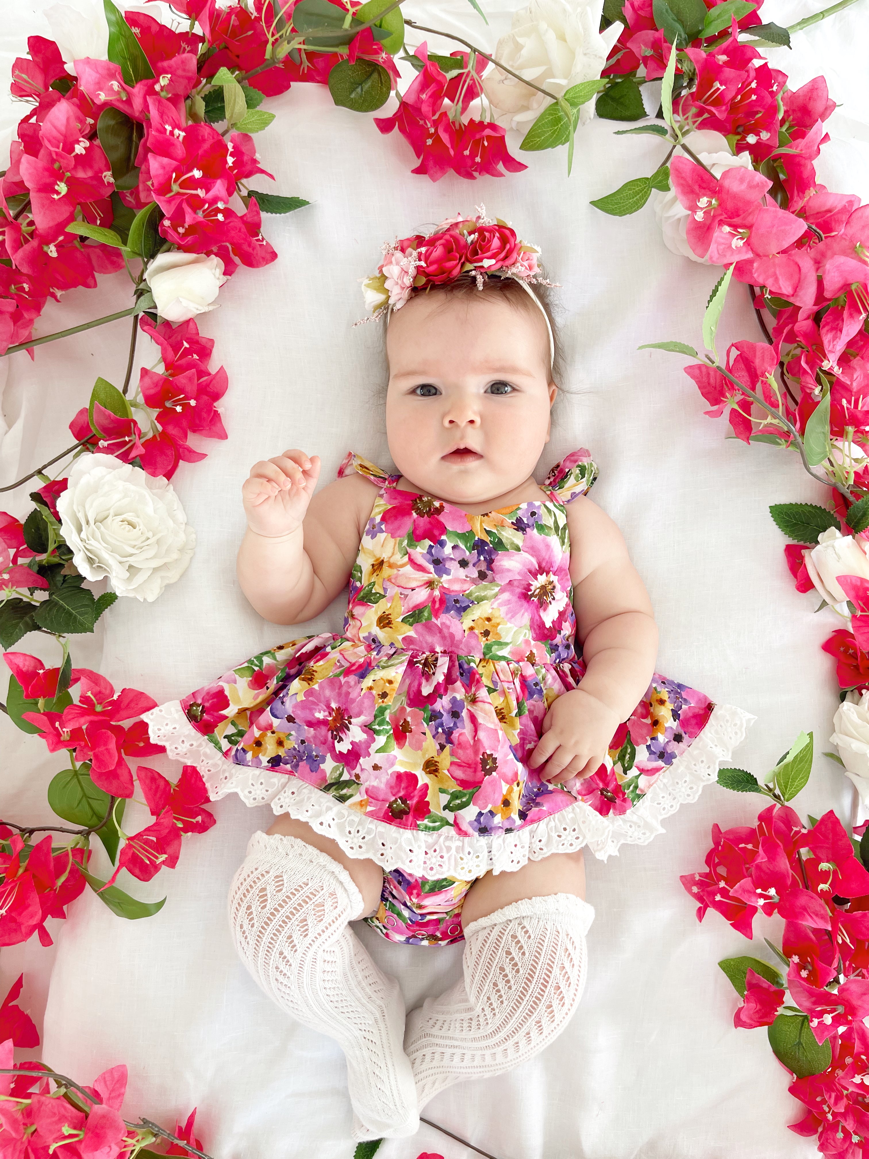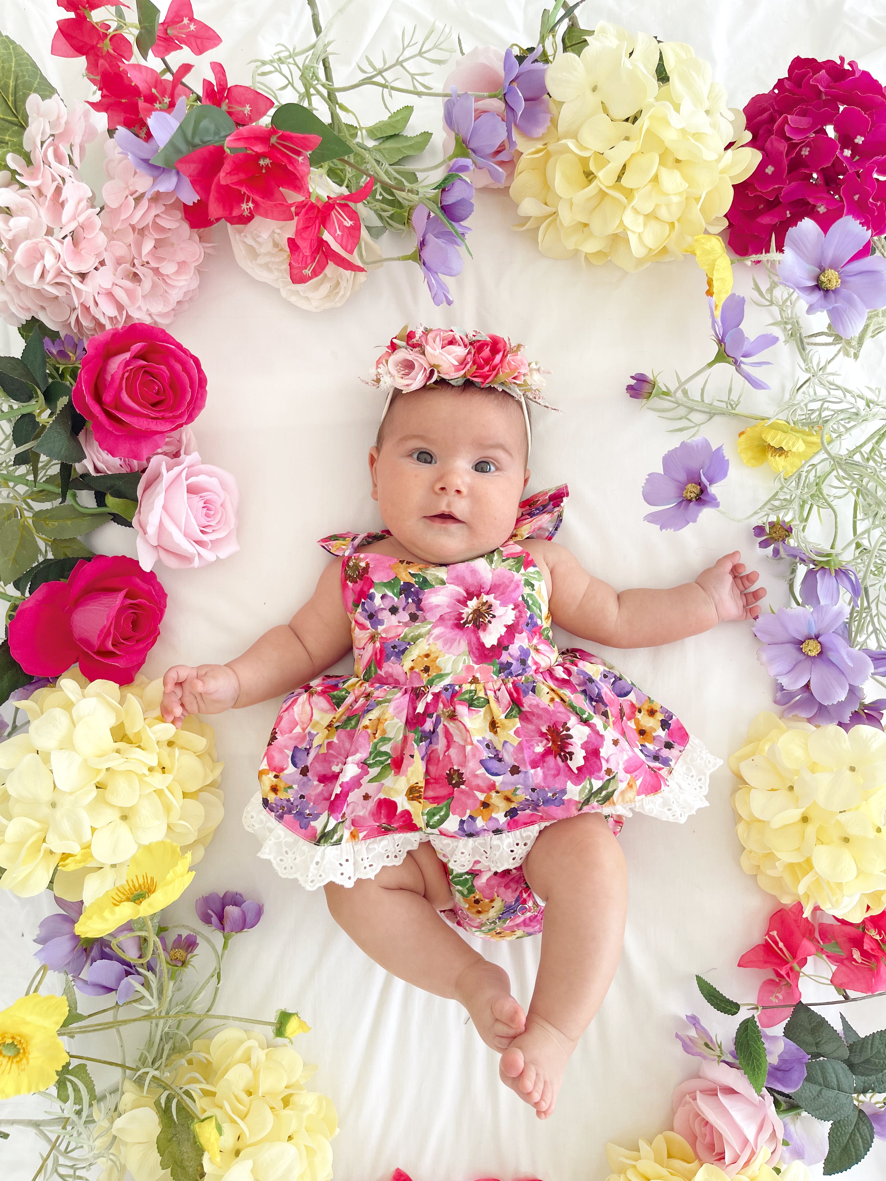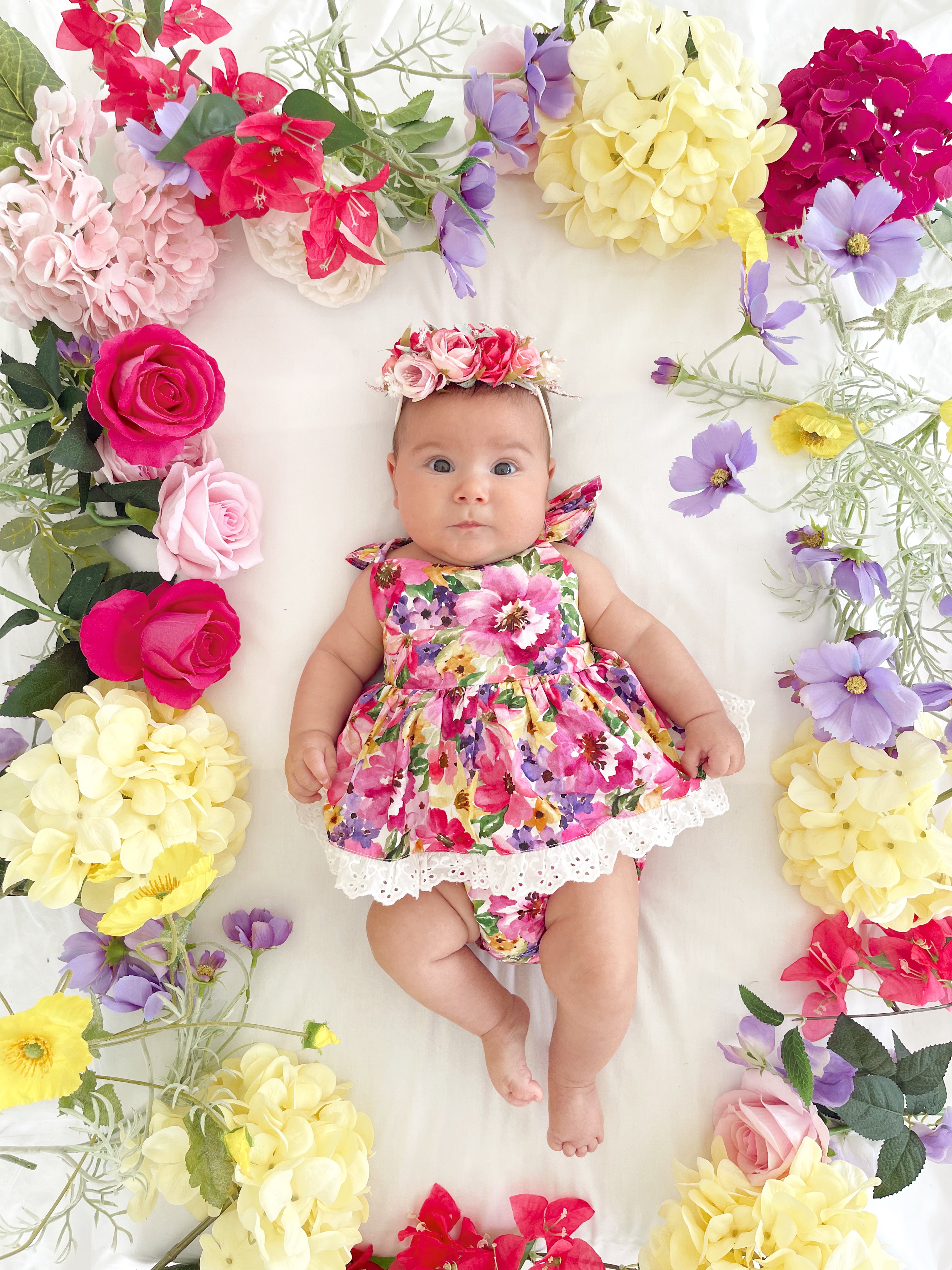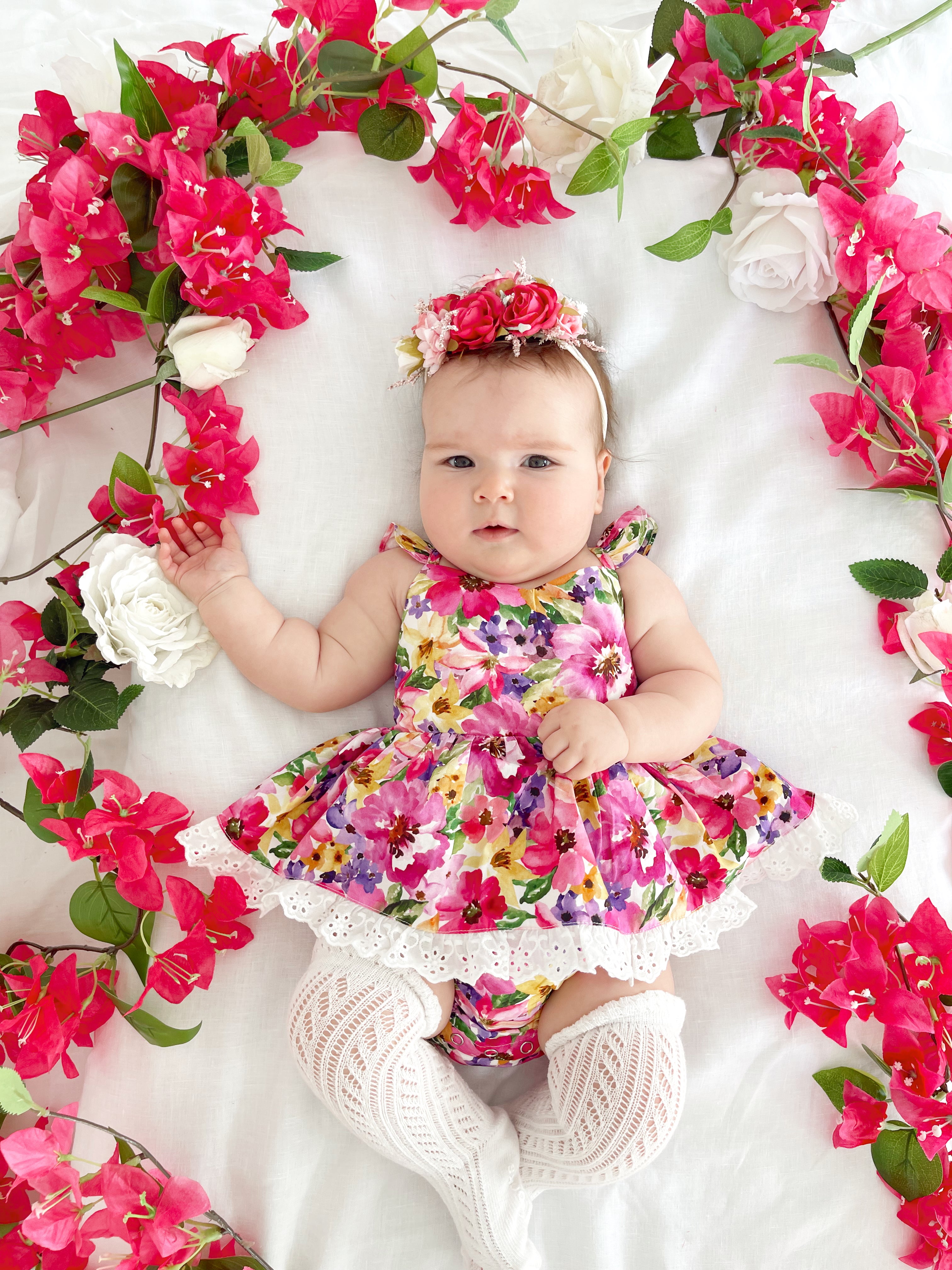 Prepare to fall in love with our new Floral Fiesta Collection! This bright and blooming lineup features three gorgeous dresses with matching baby sister rompers, plus the sweetest coordinating accessories. Bursting with vibrant florals, these pieces are made to bring joy, colour, and sweetness to your little girl’s Spring/Summer wardrobe.