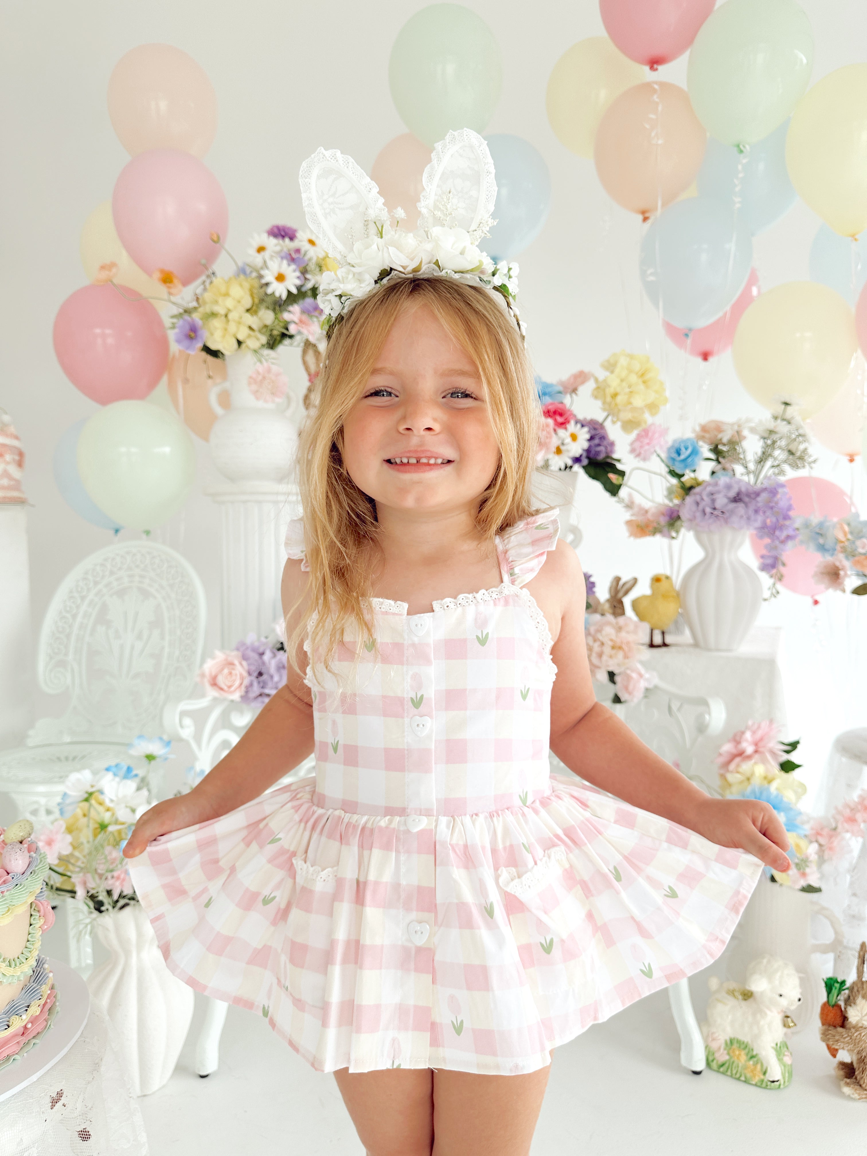 Notre collection de Pâques 2025 est arrivée ! Célébrez Pâques avec style grâce à nos nouvelles robes et barboteuses pour fille aux imprimés les plus adorables ! Votre petite fille trouvera forcément la tenue de Pâques parfaite pour Pâques et après. Complétez votre tenue de Pâques avec l'une de nos nombreuses oreilles de lapin, bonnets et autres accessoires !