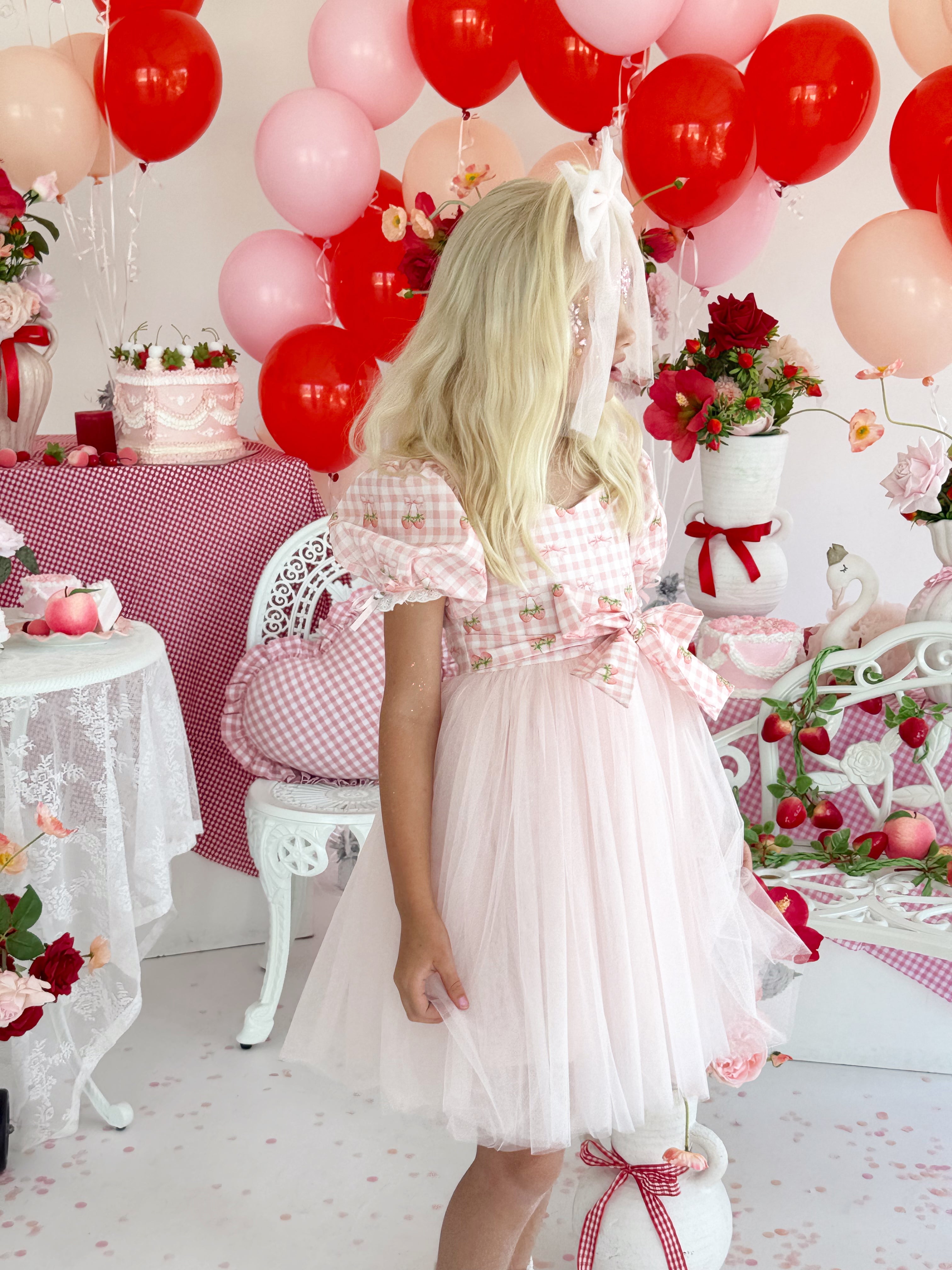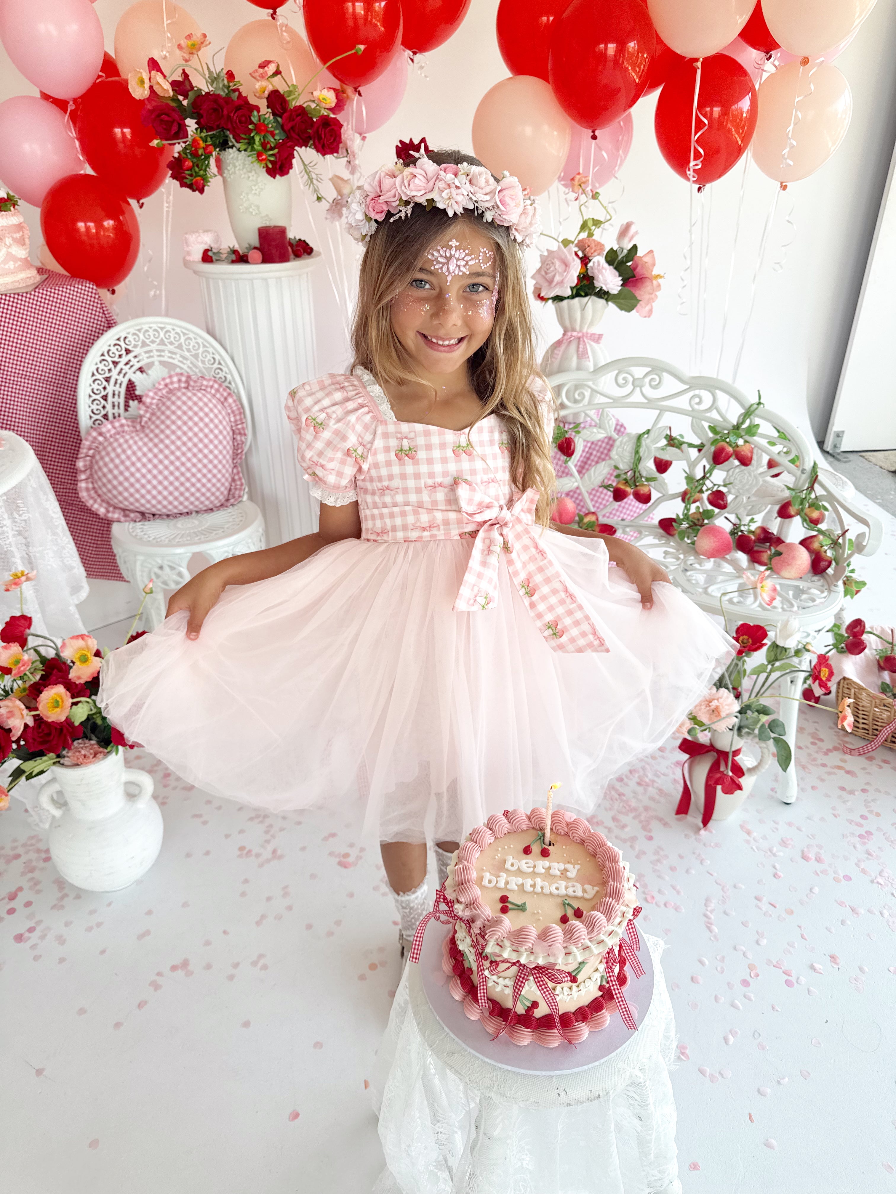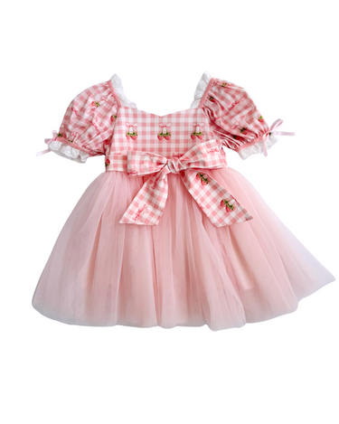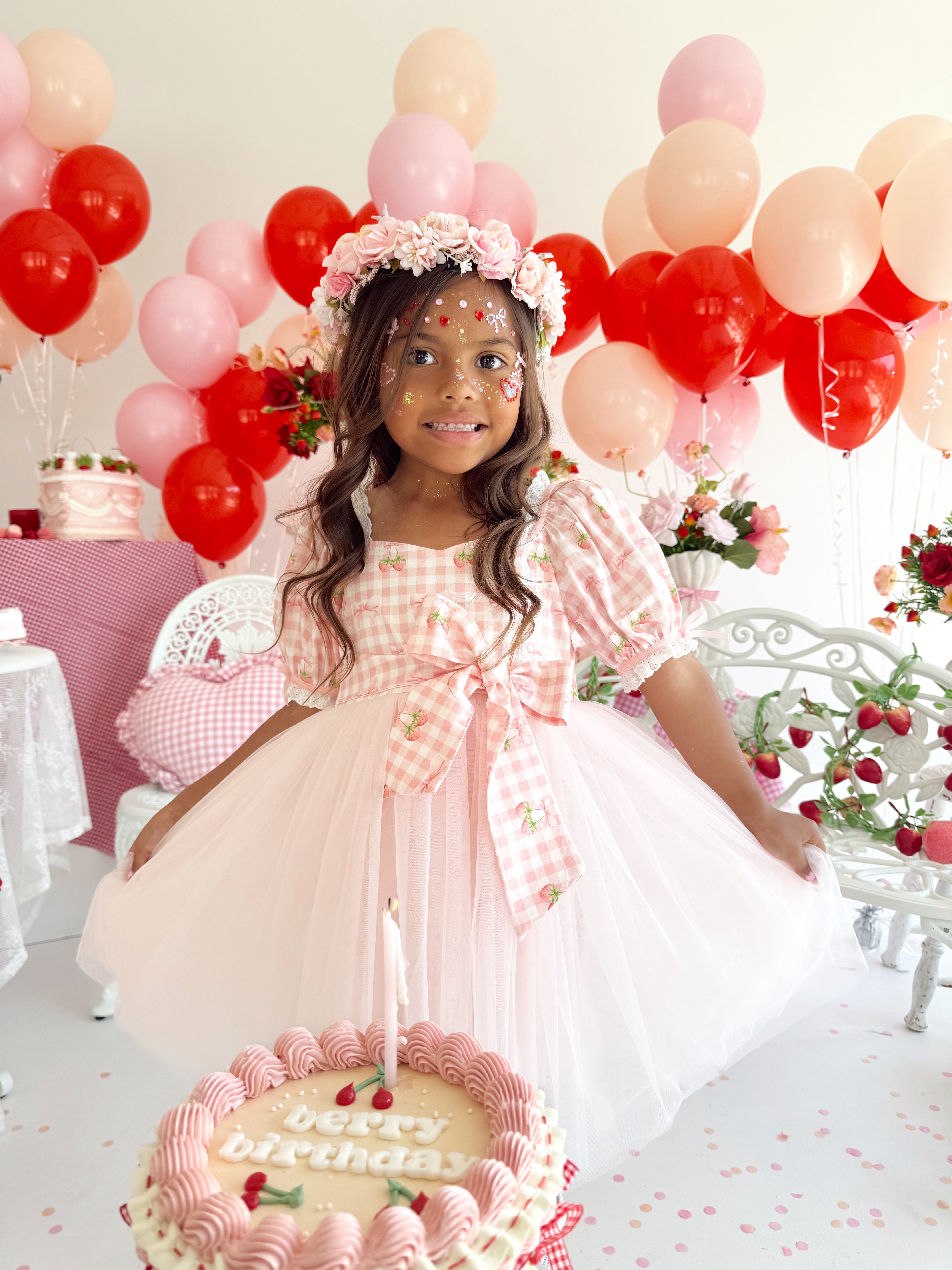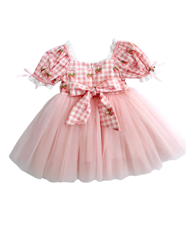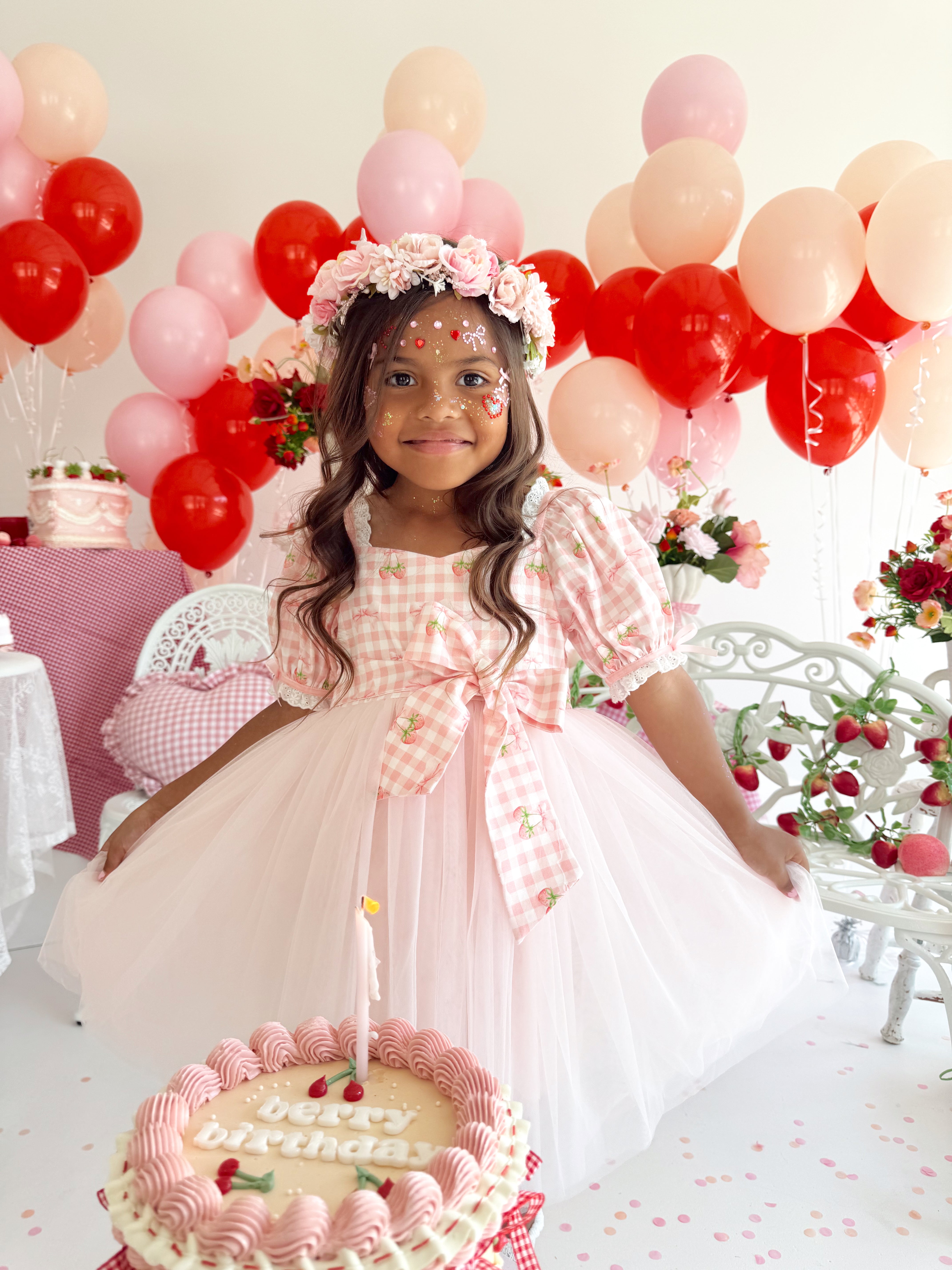 Sweet Strawberry Pink Girls Gingham Party Dress