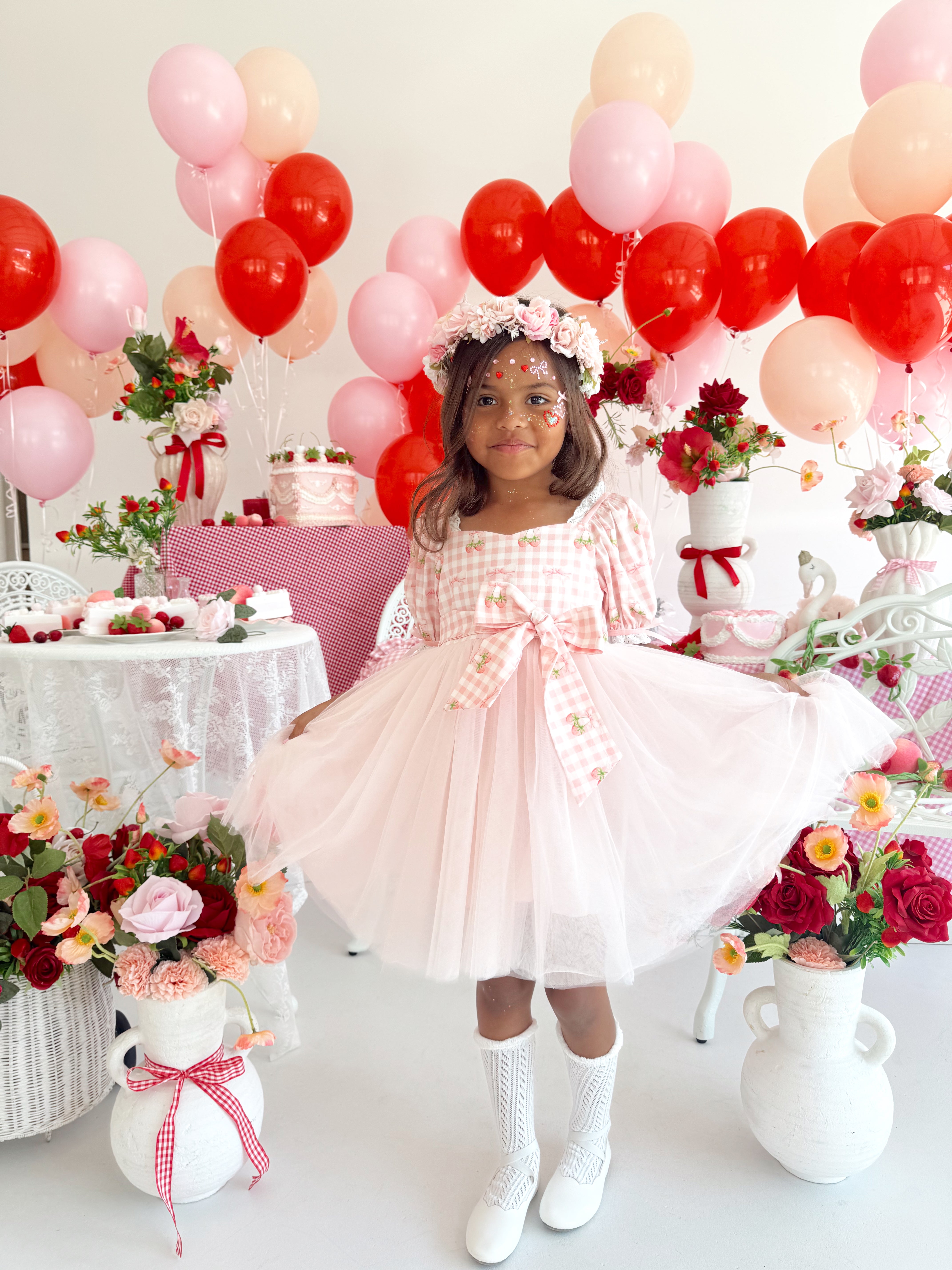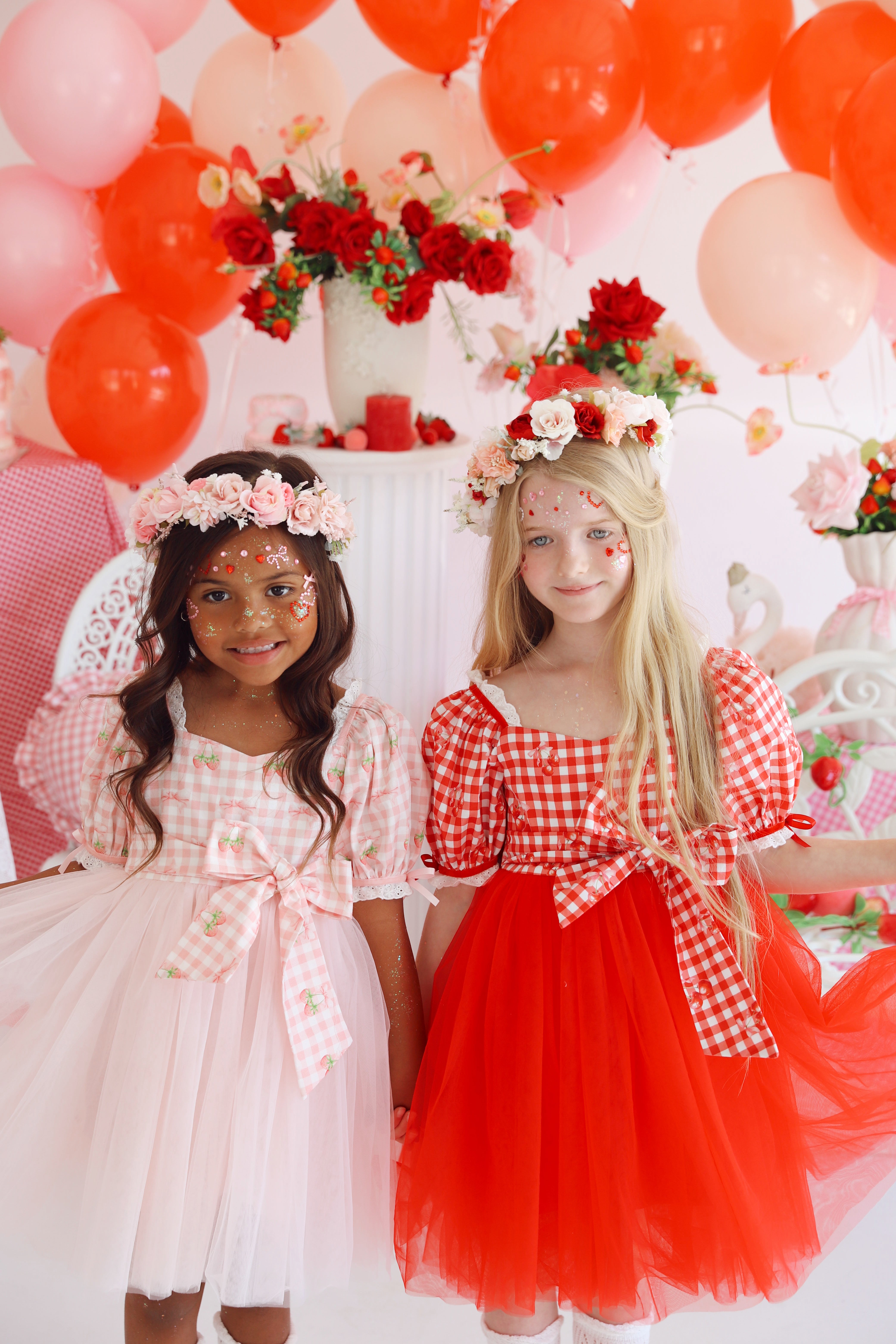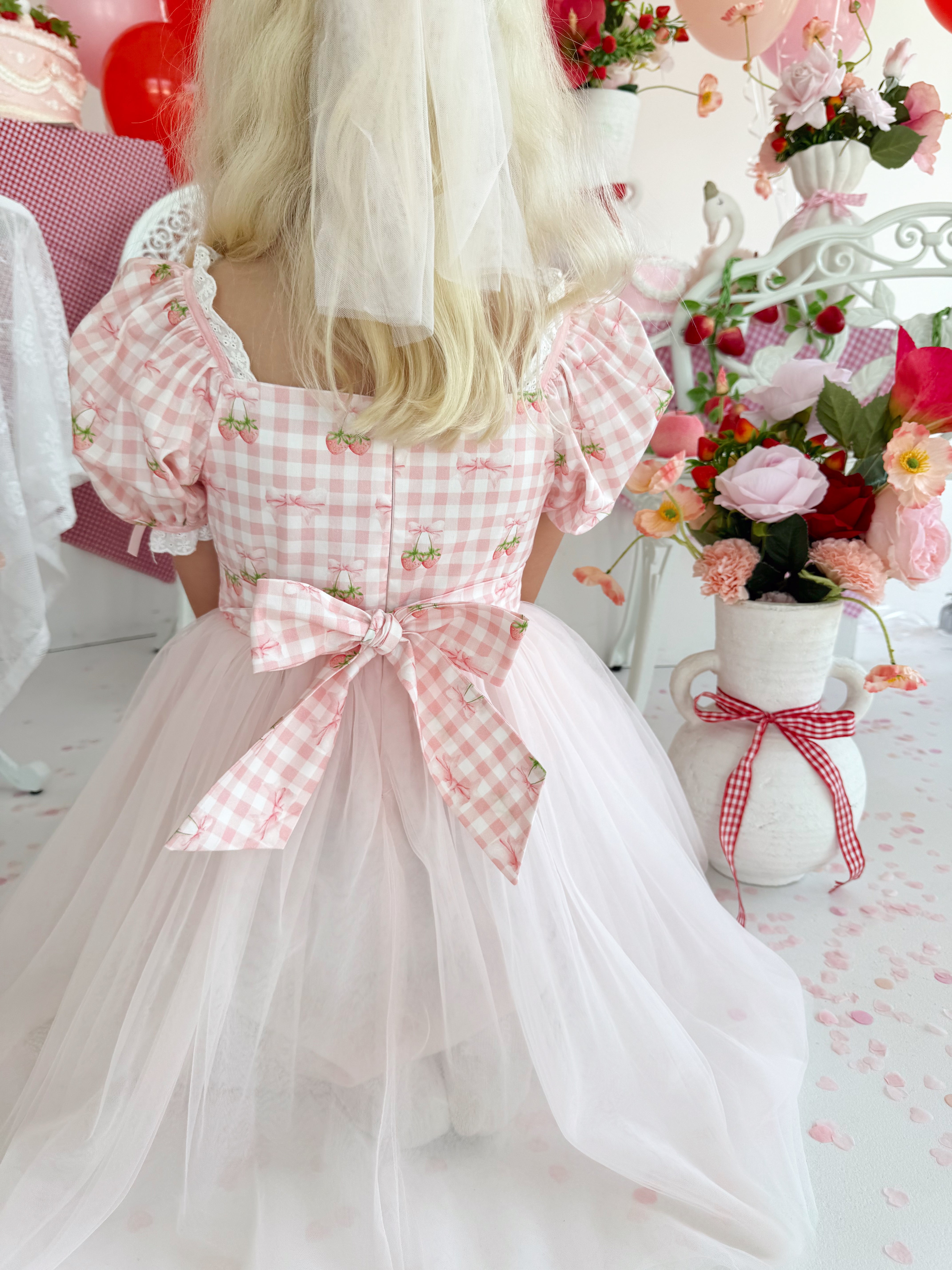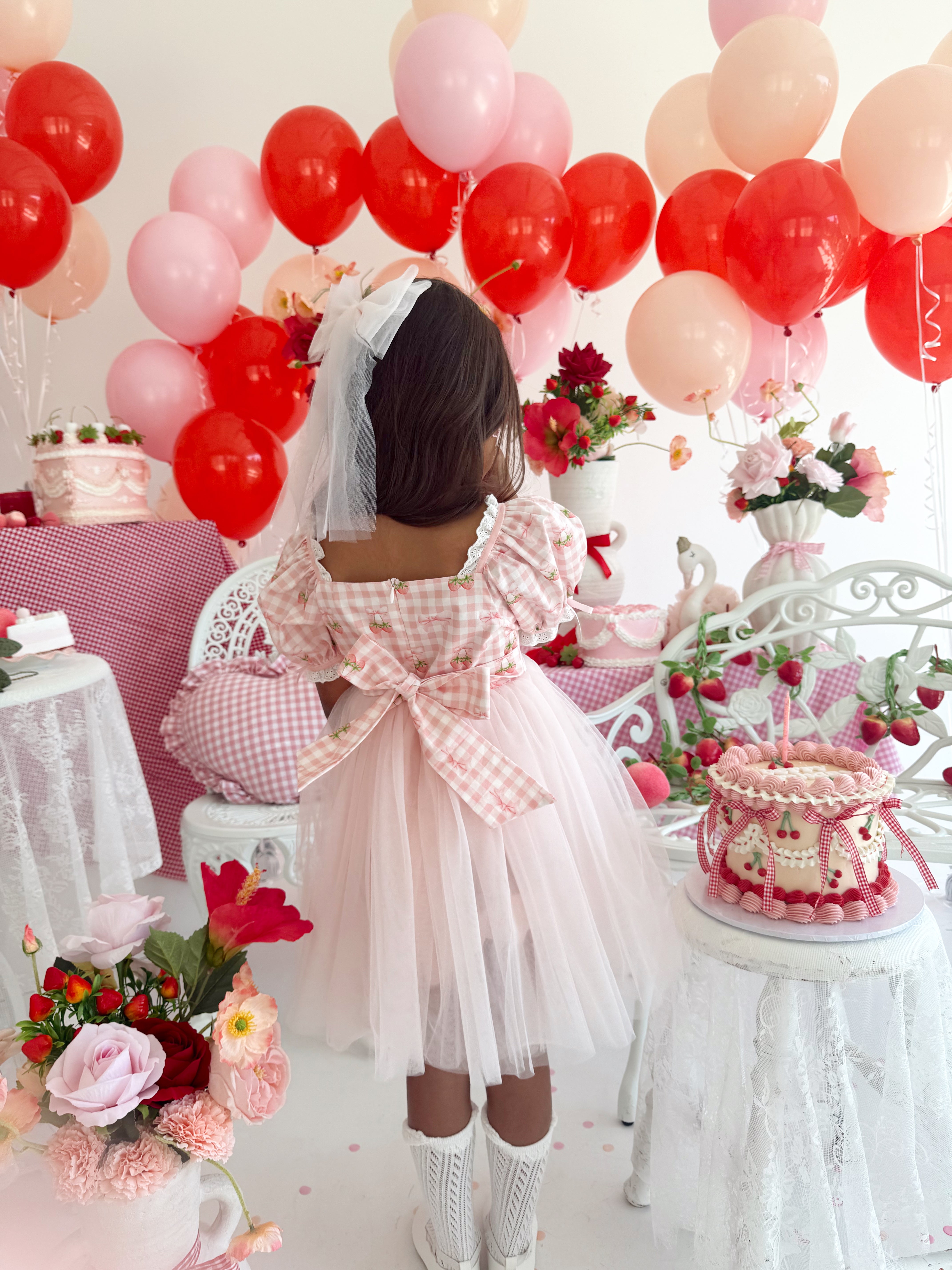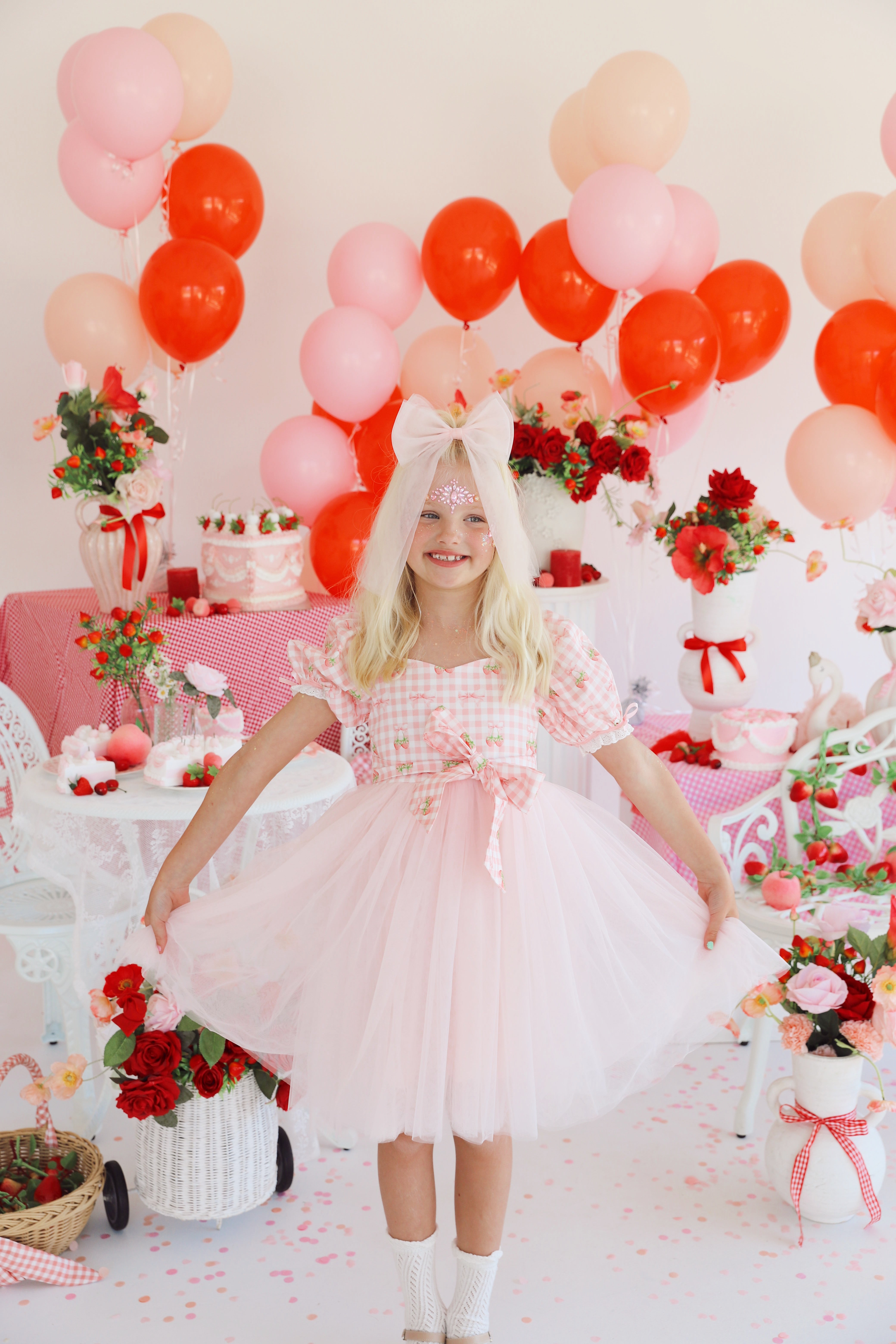 Sweet Strawberry Pink Girls Gingham Party Dress