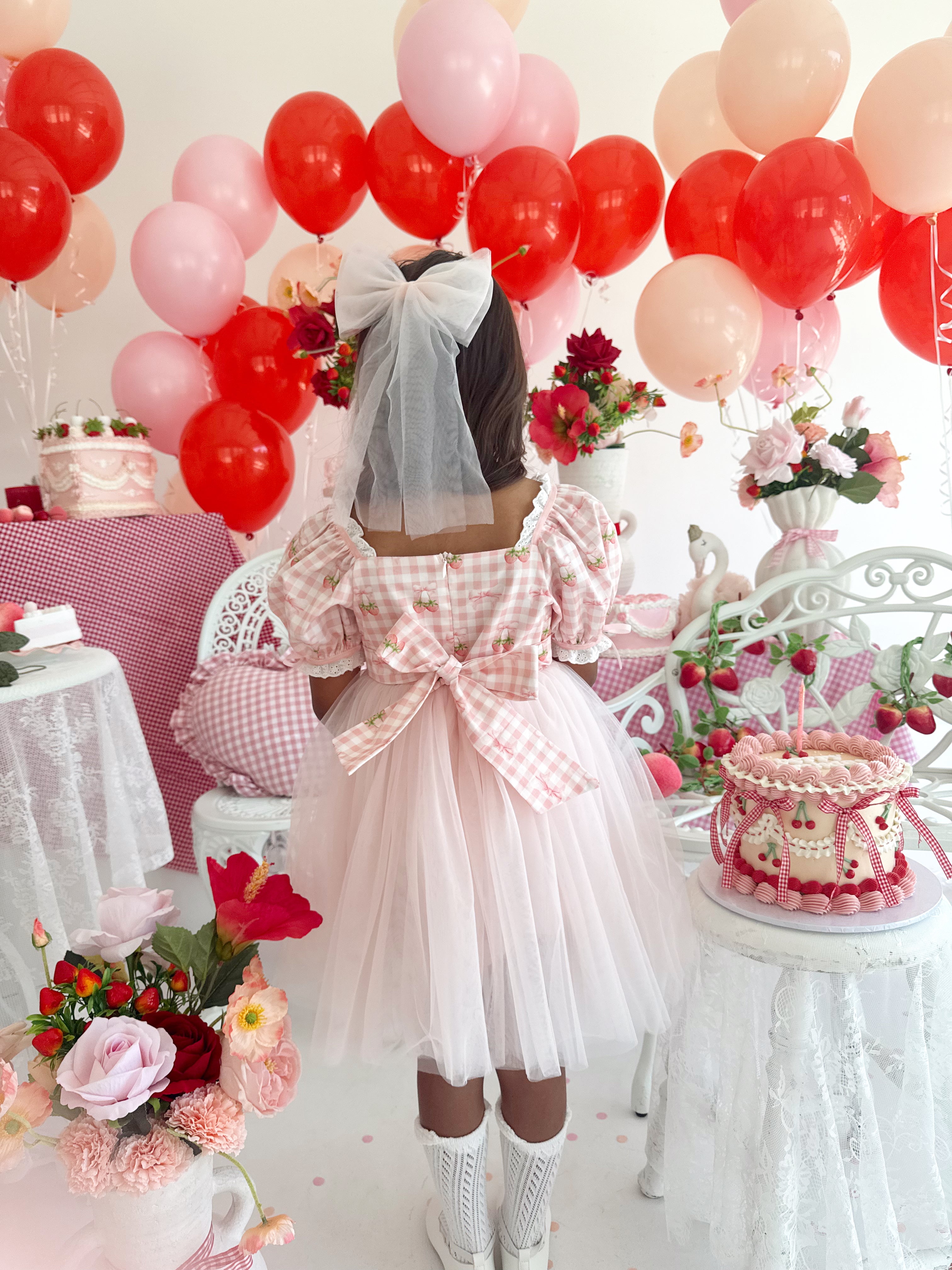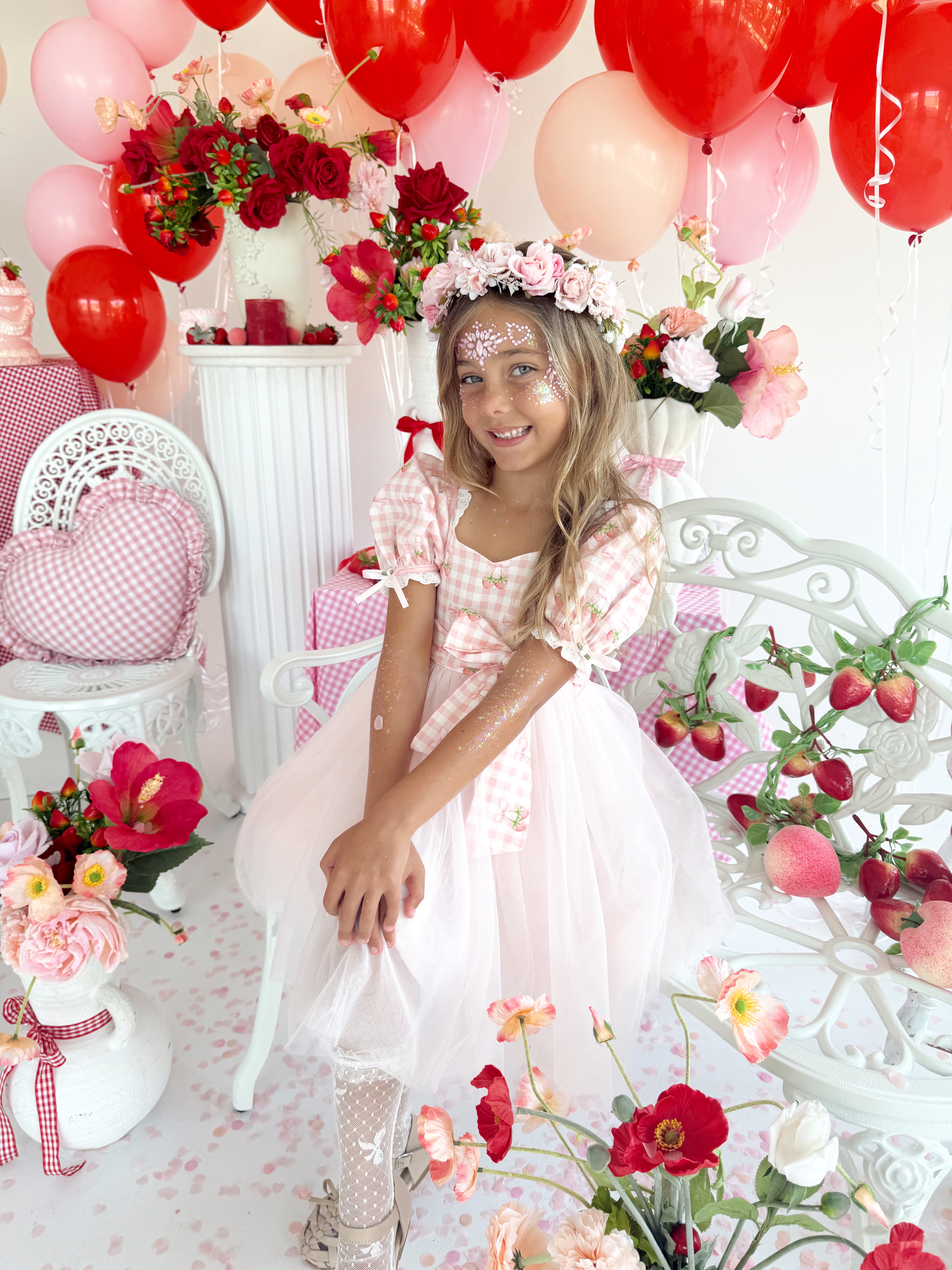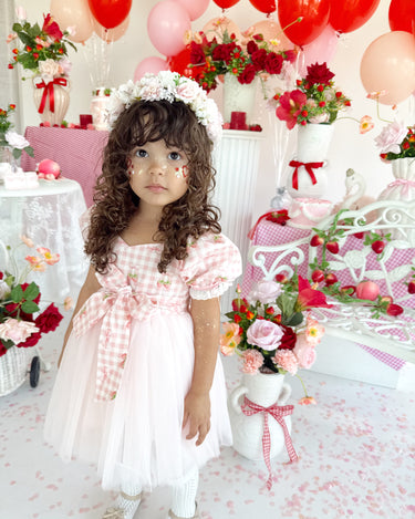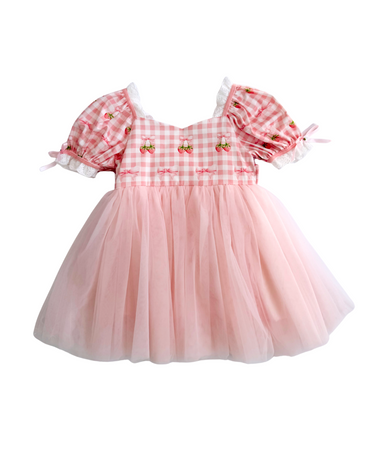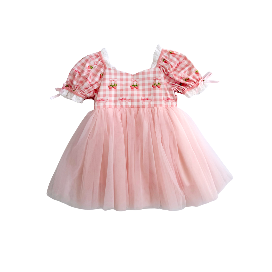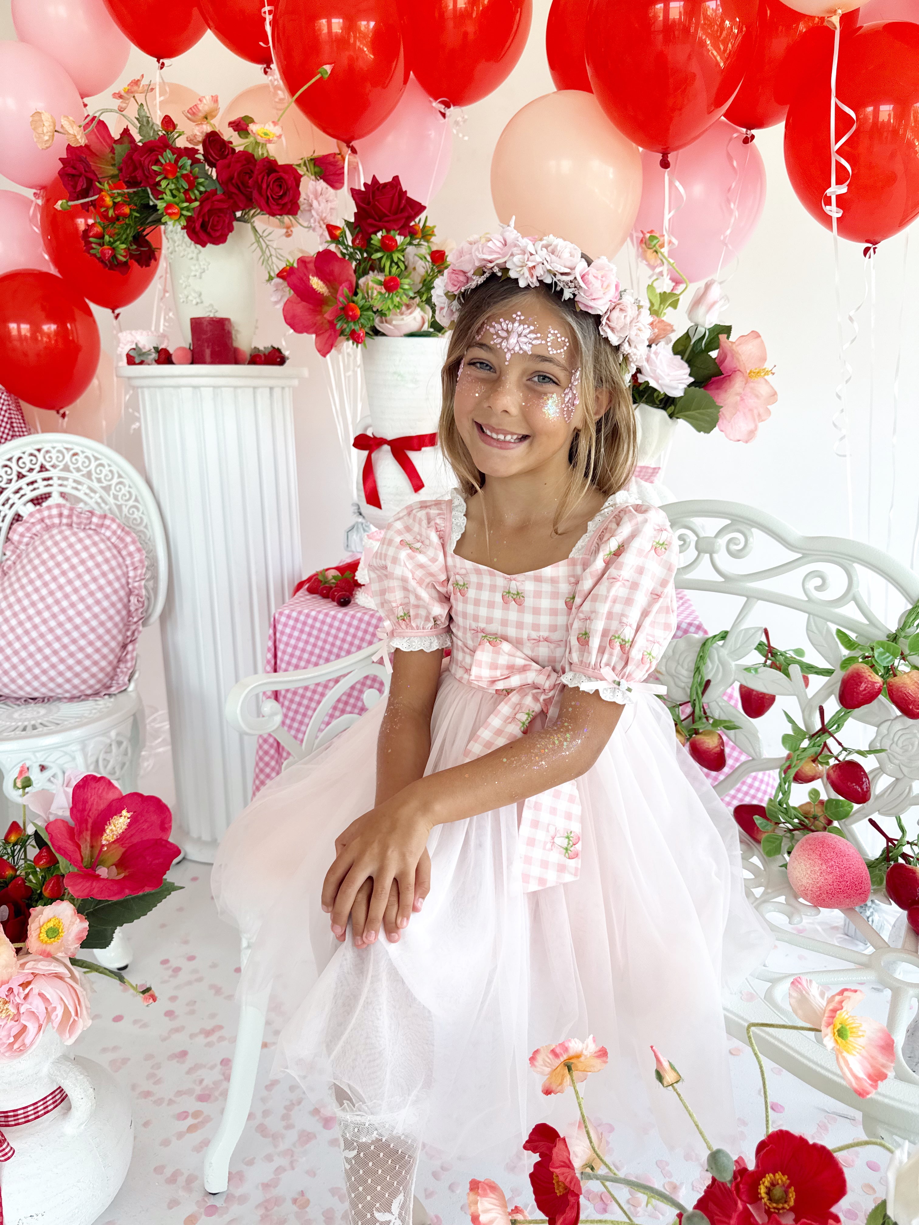 Sweet Strawberry Pink Girls Gingham Party Dress