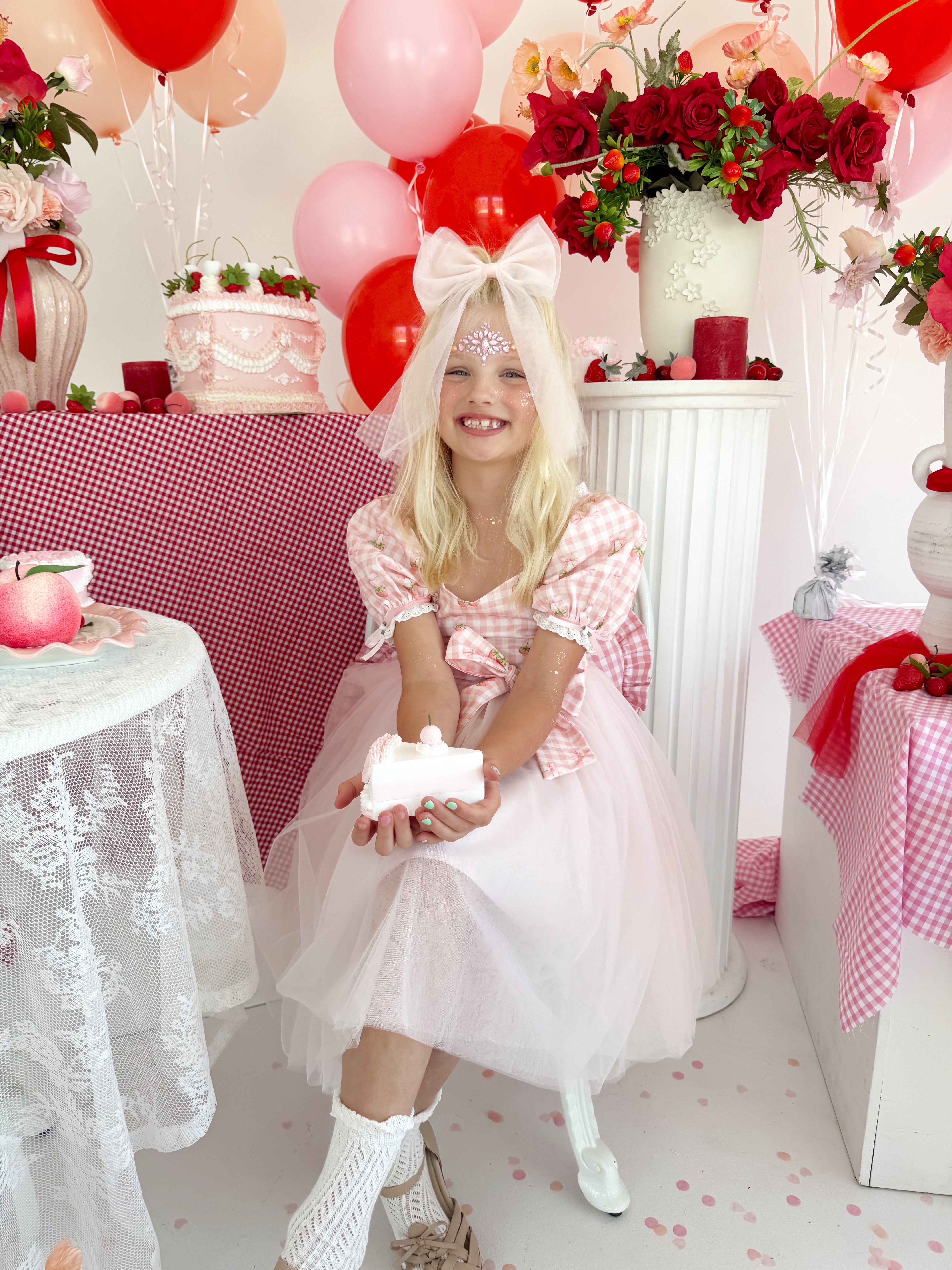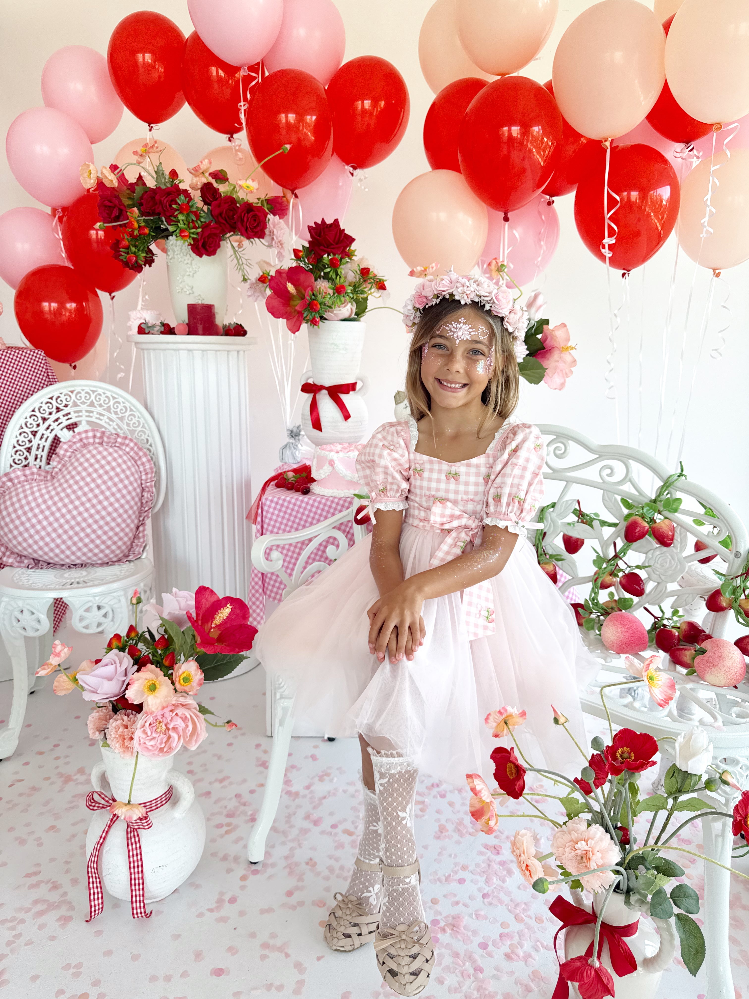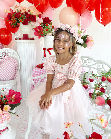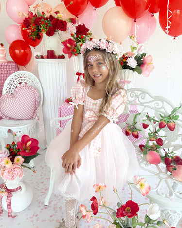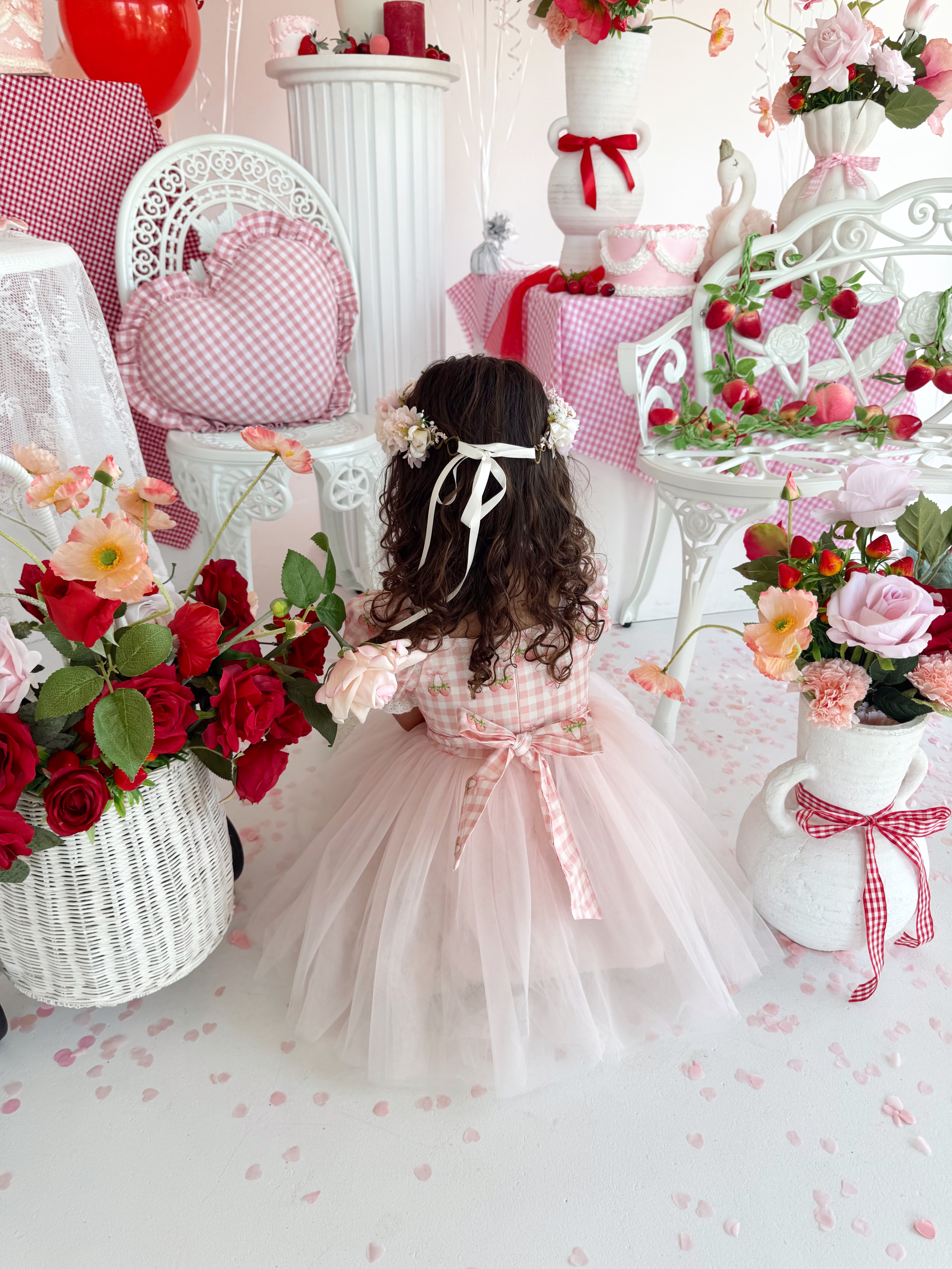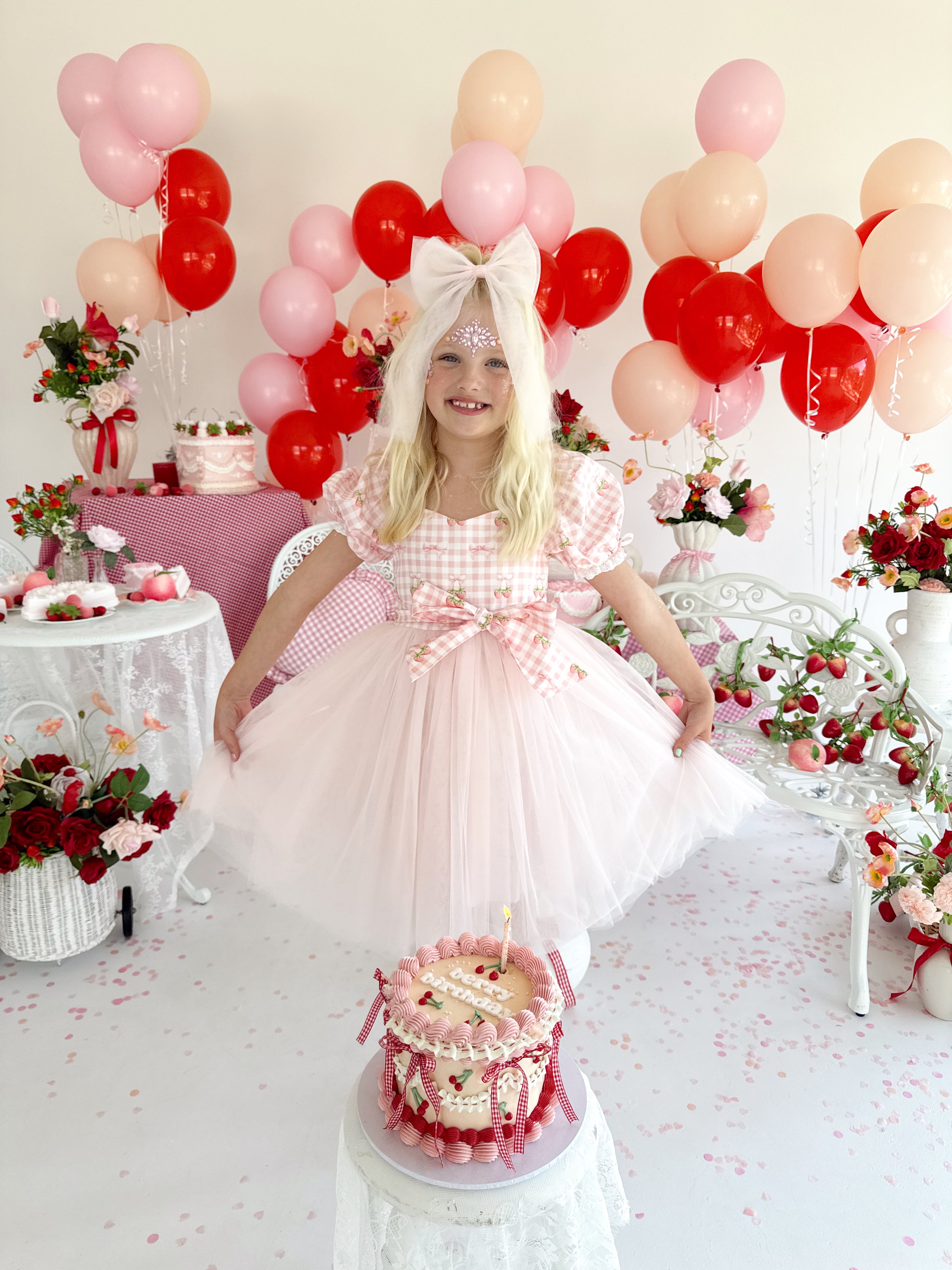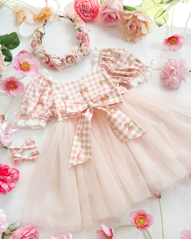 Sweet Strawberry Pink Girls Gingham Party Dress