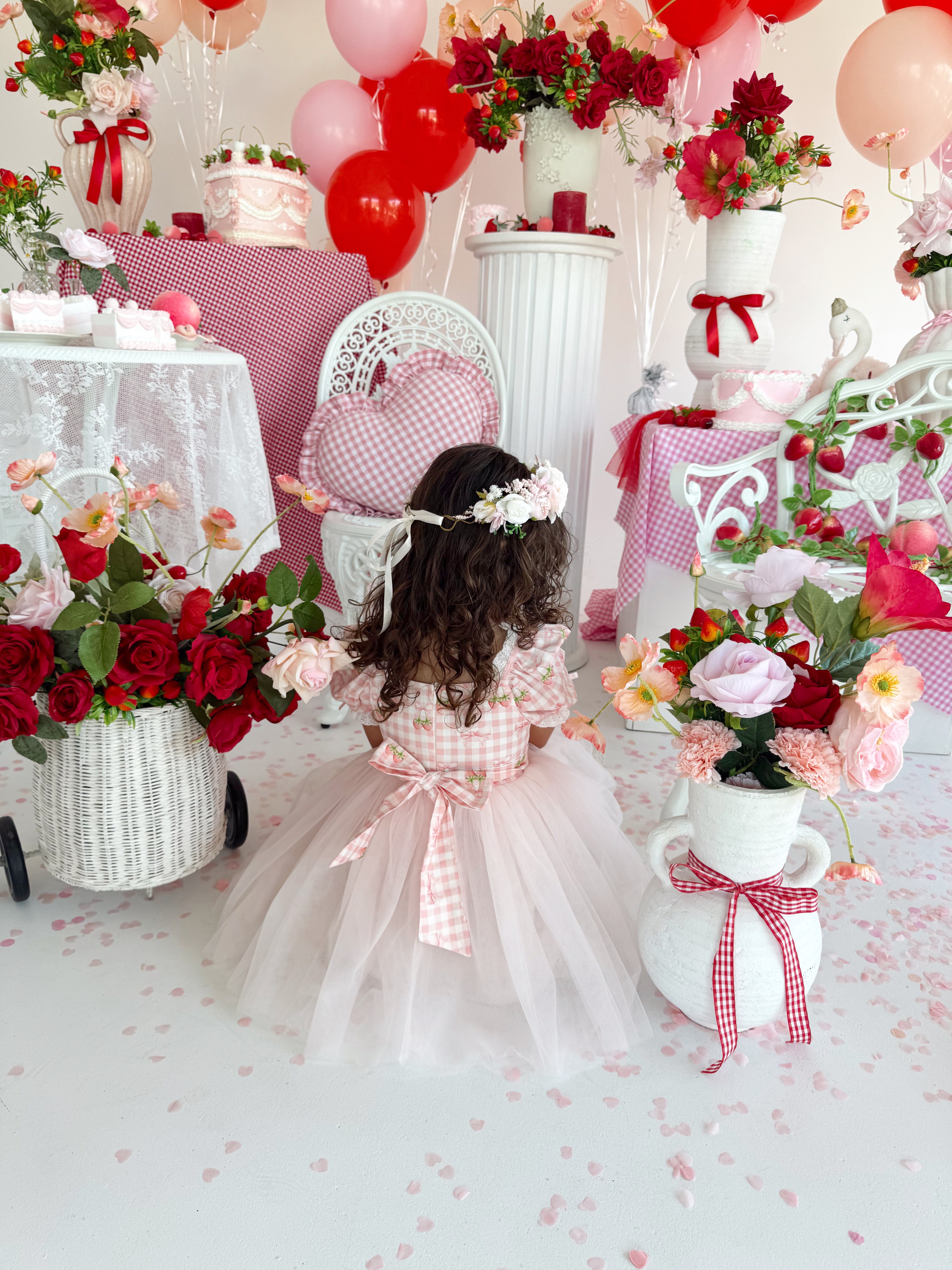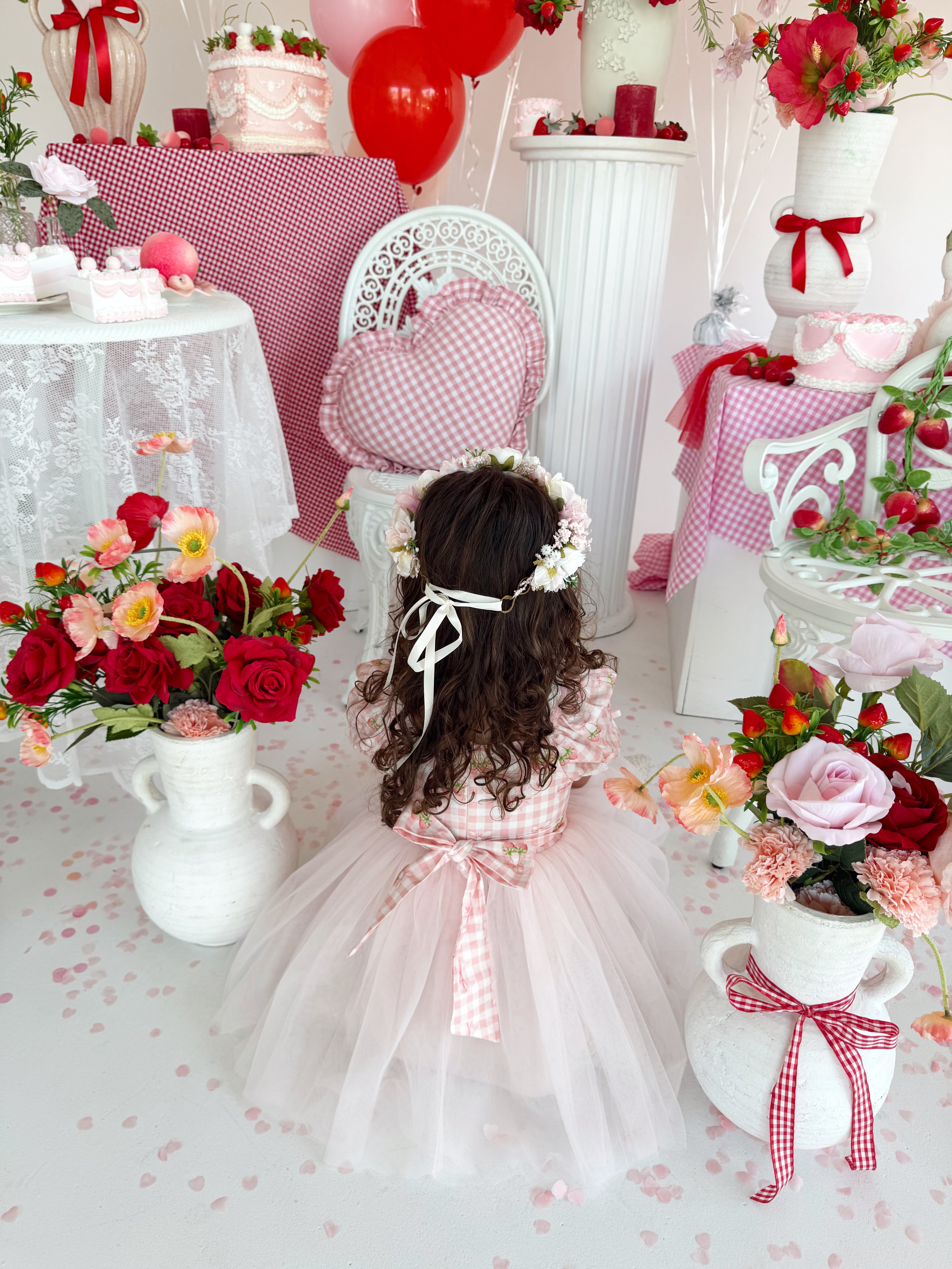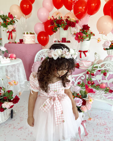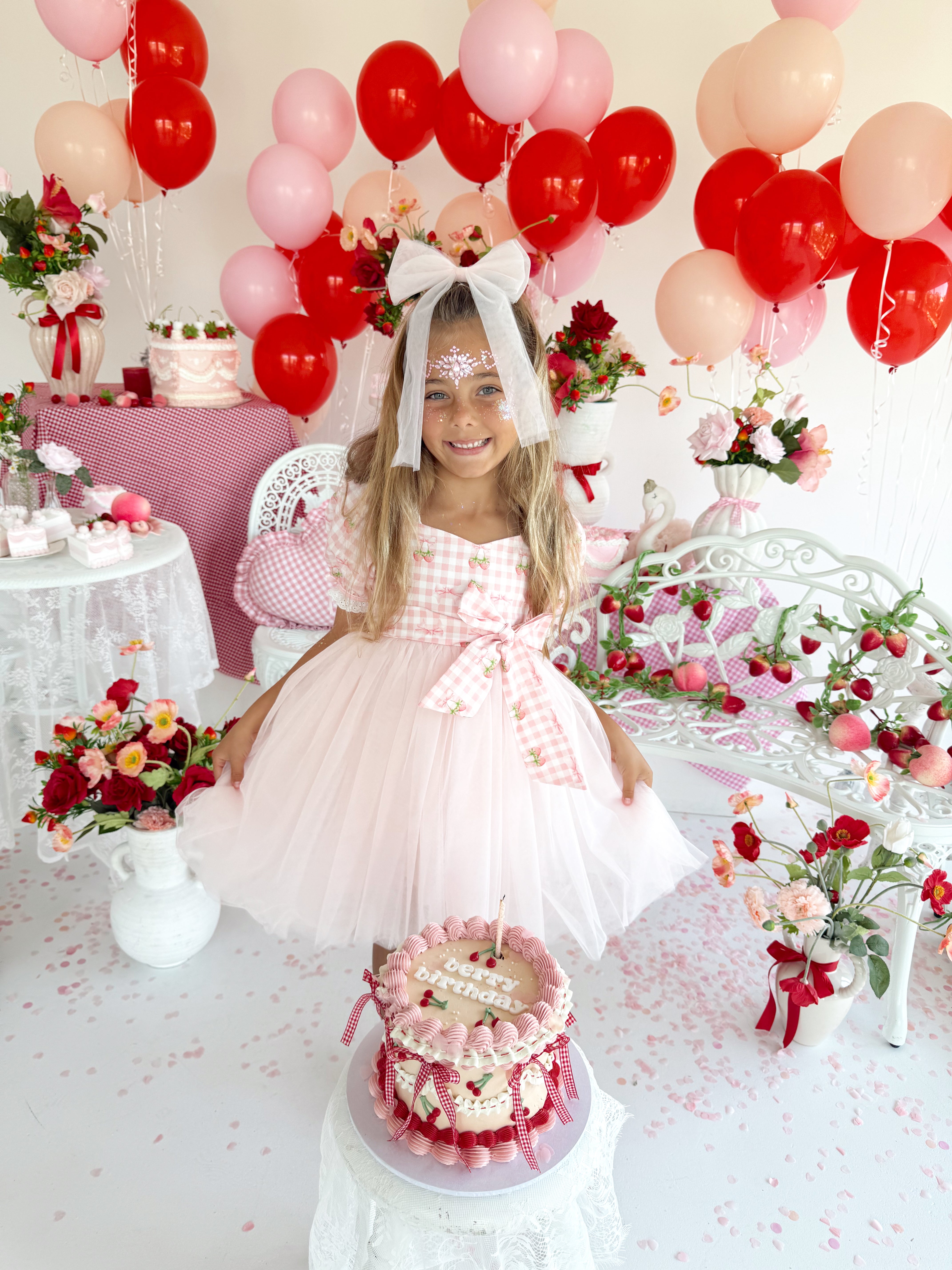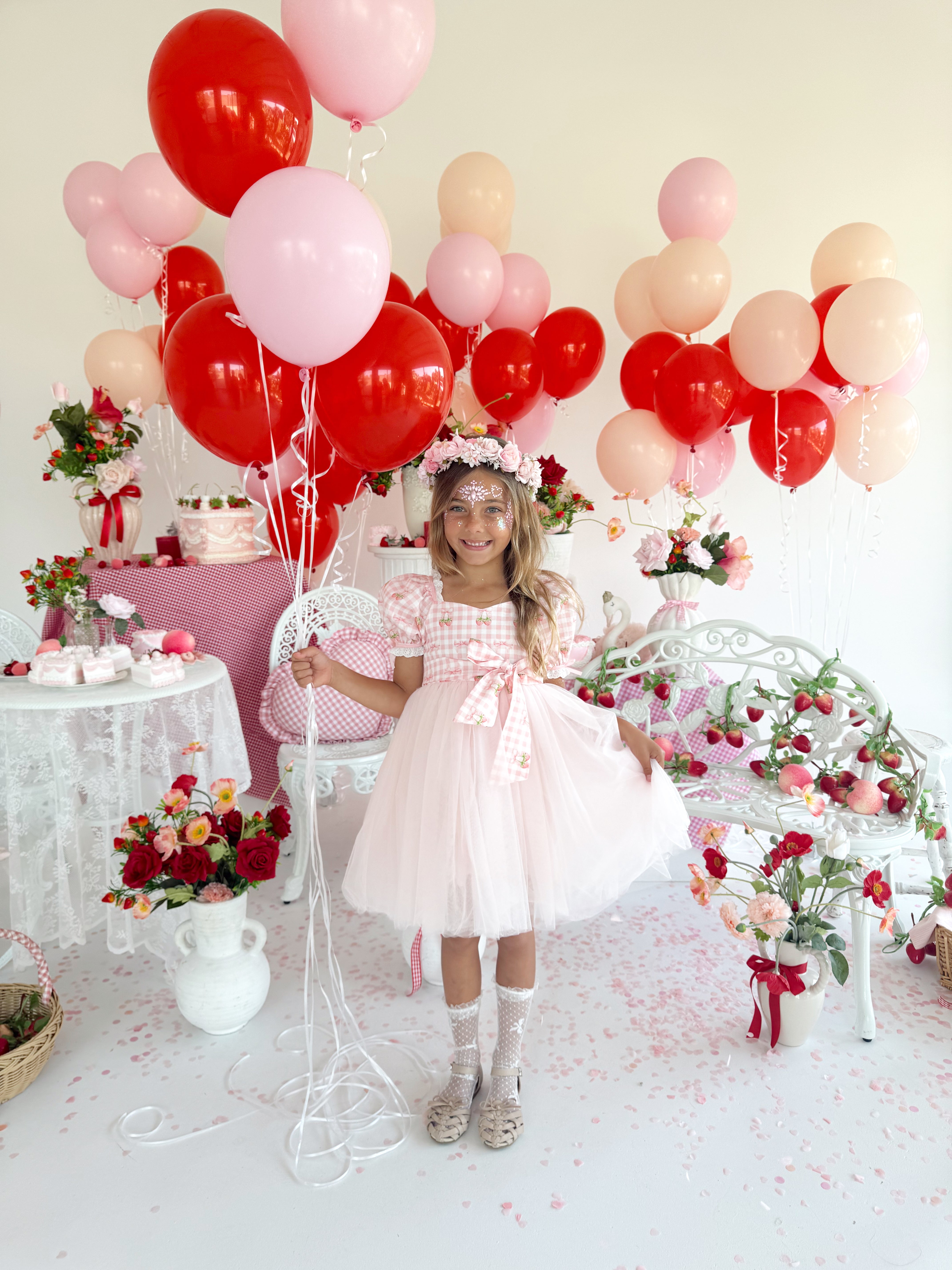 Sweet Strawberry Pink Girls Gingham Party Dress
