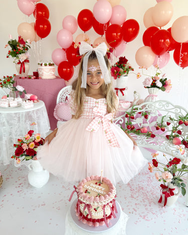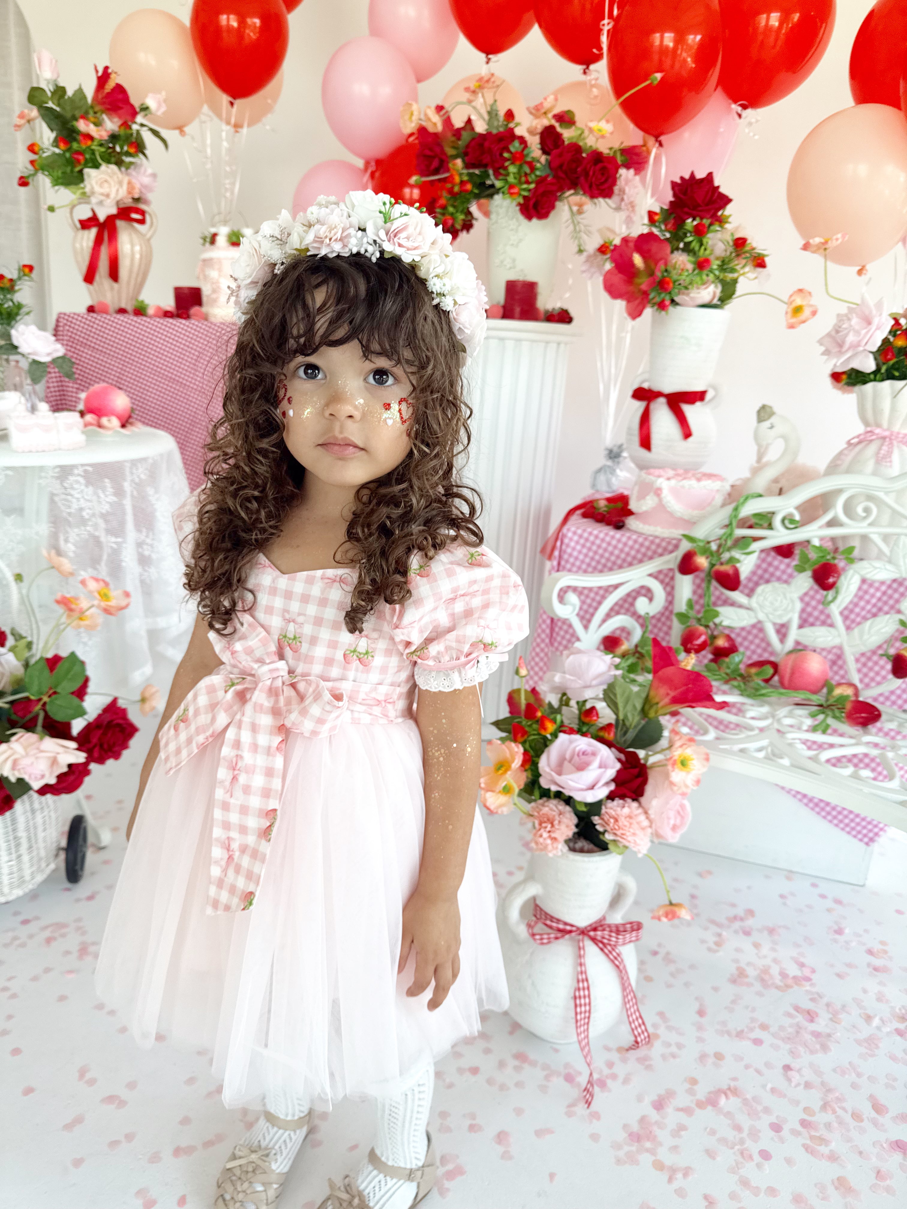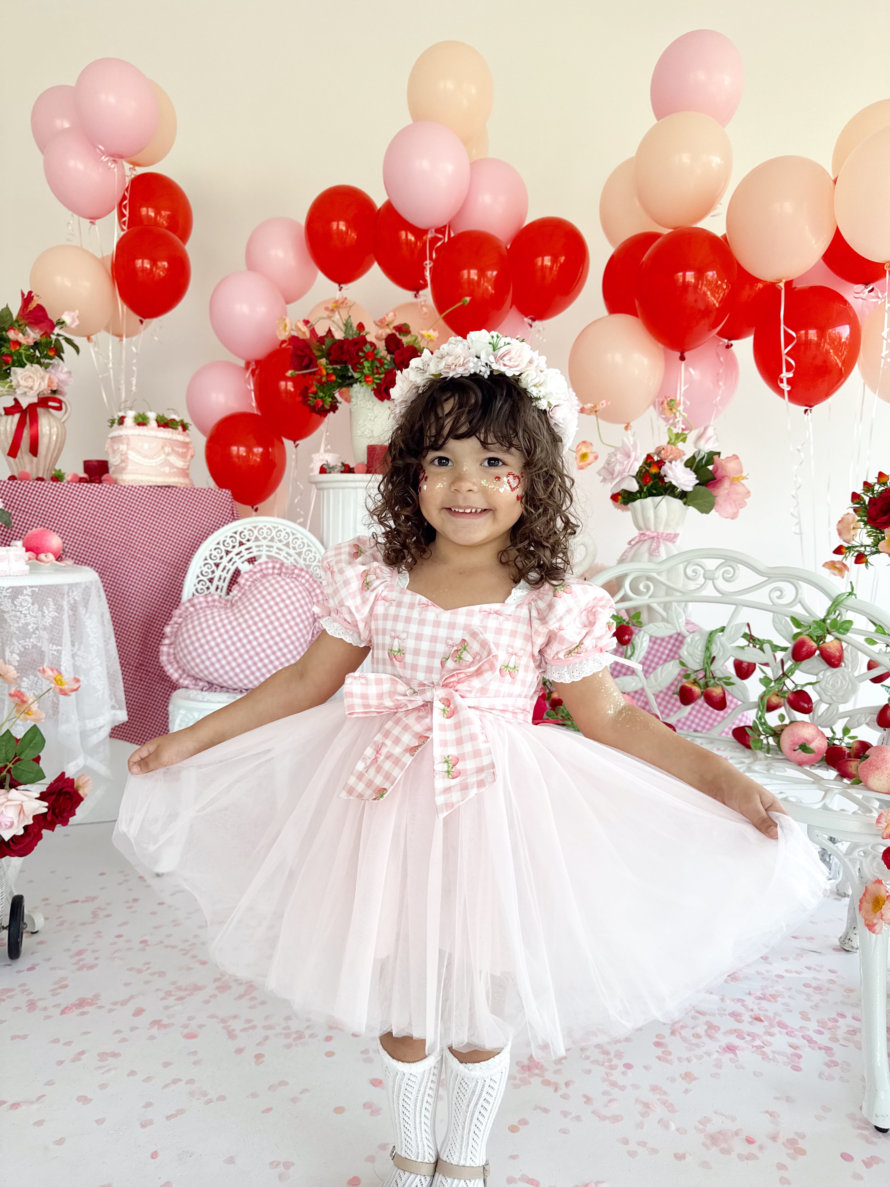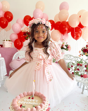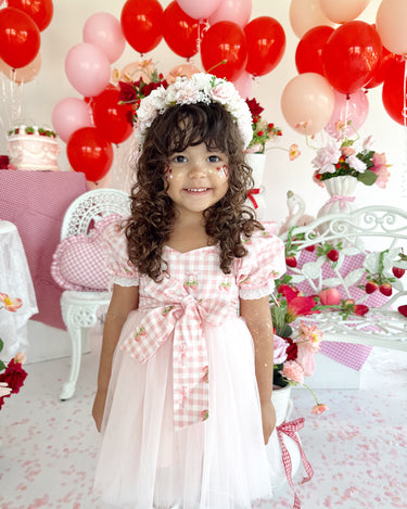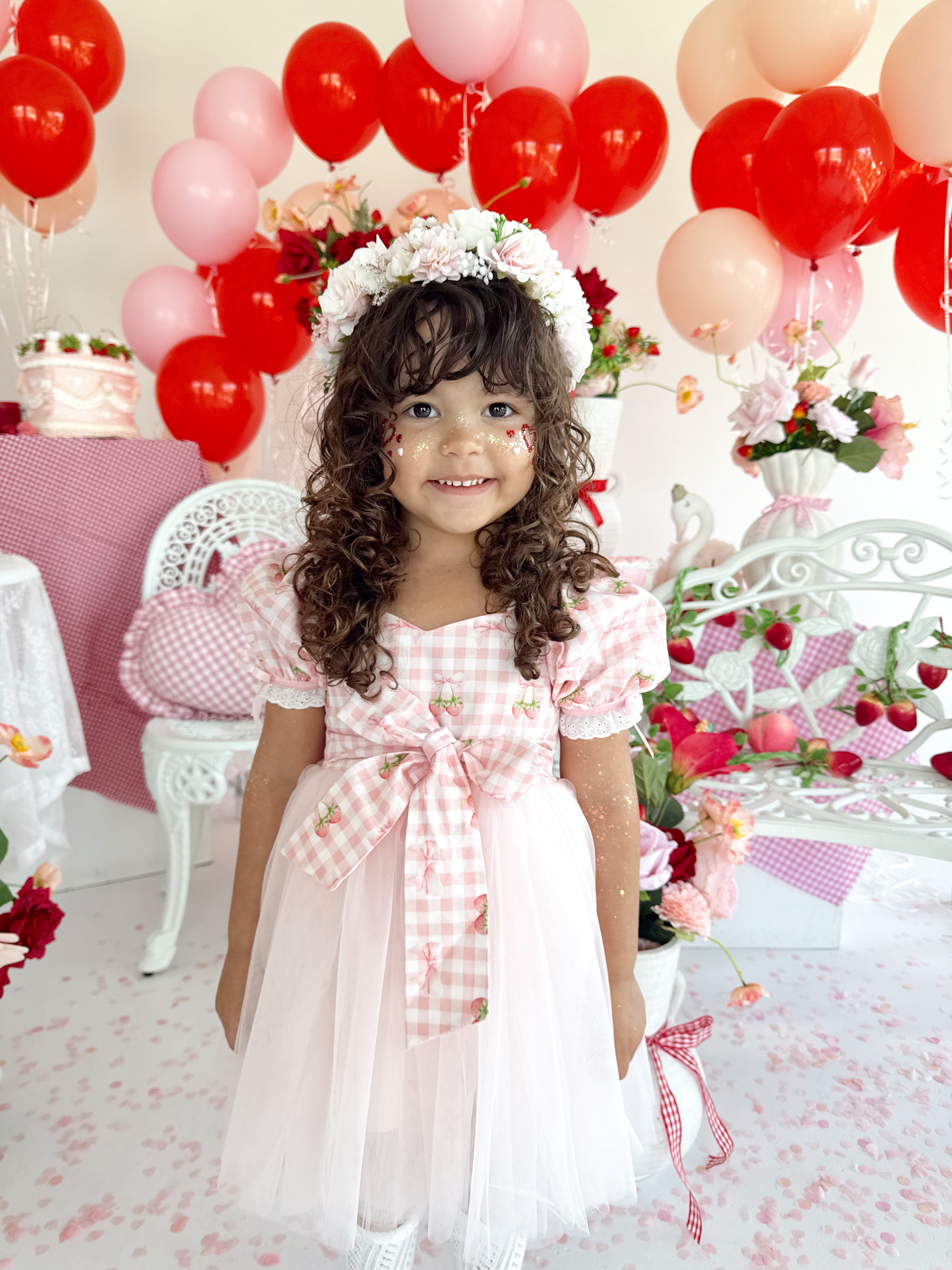 Perfect for birthday parties or any other special occasion, your little girl will adore our Sweet Strawberry Pink Girls Gingham Dress!