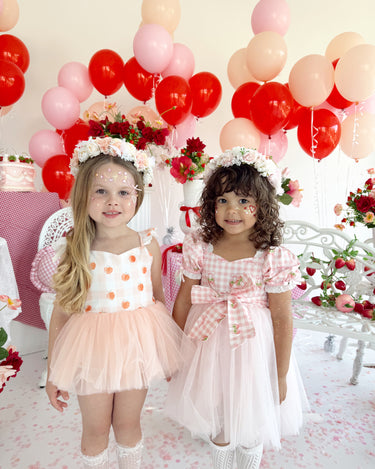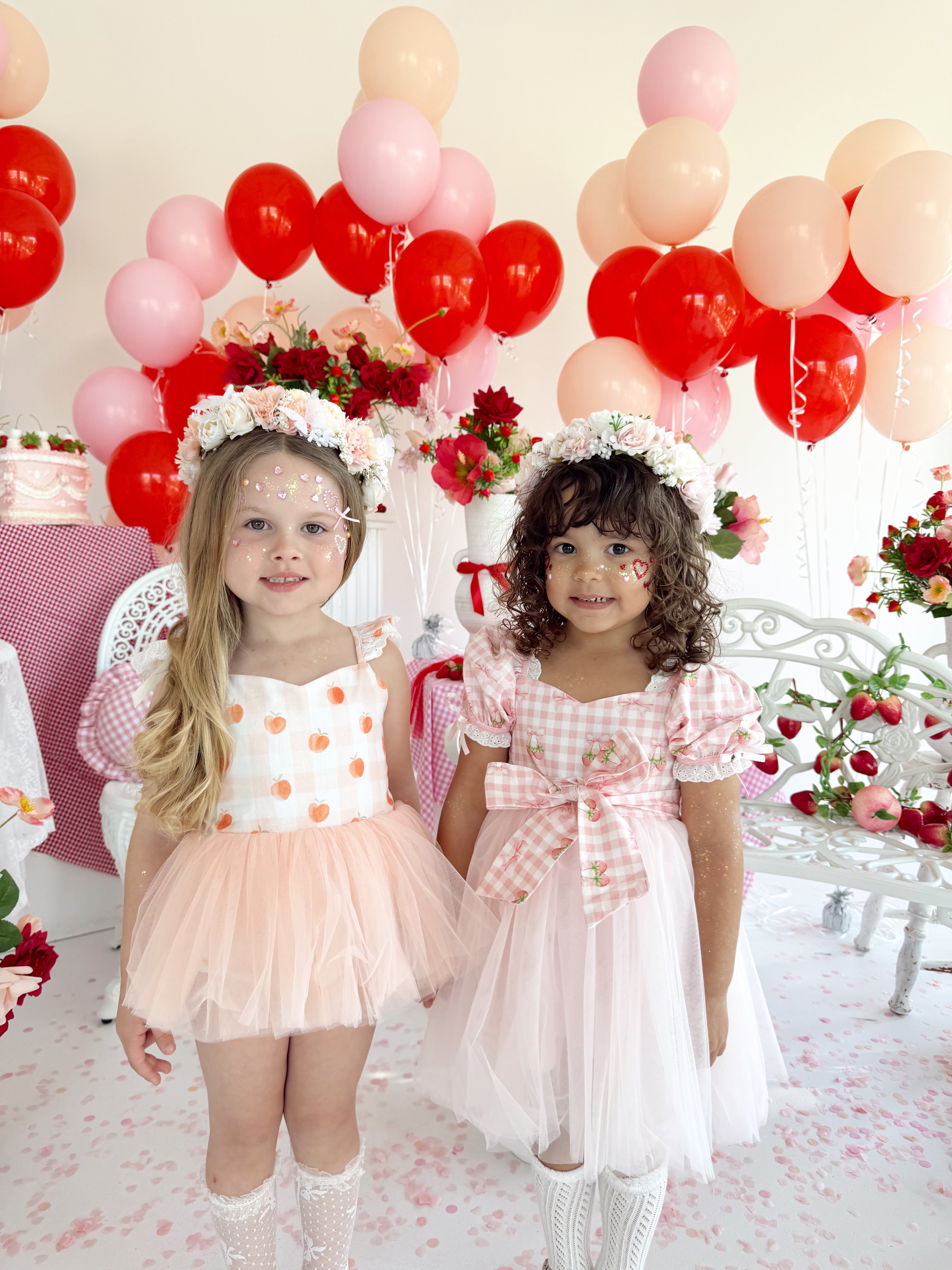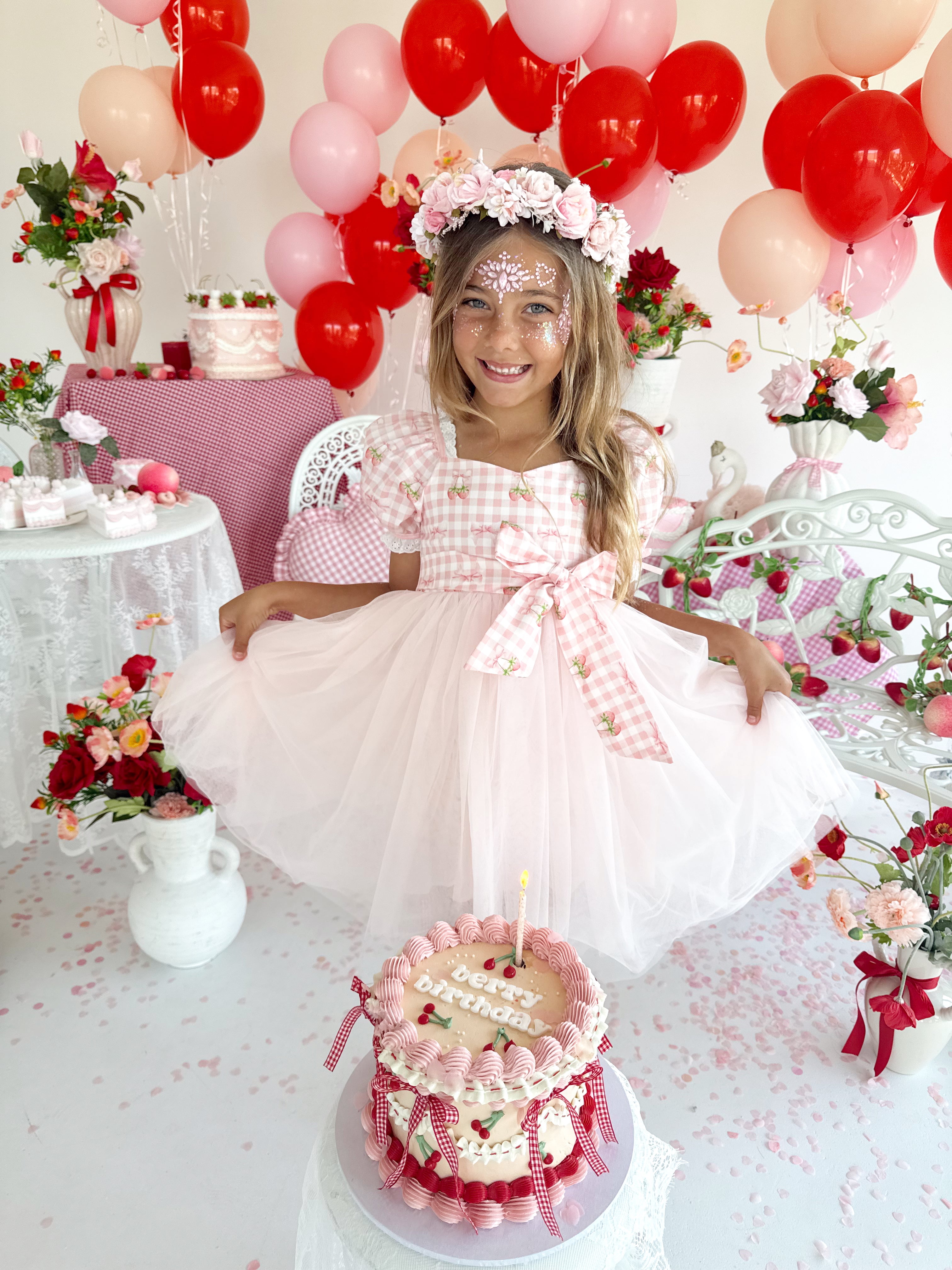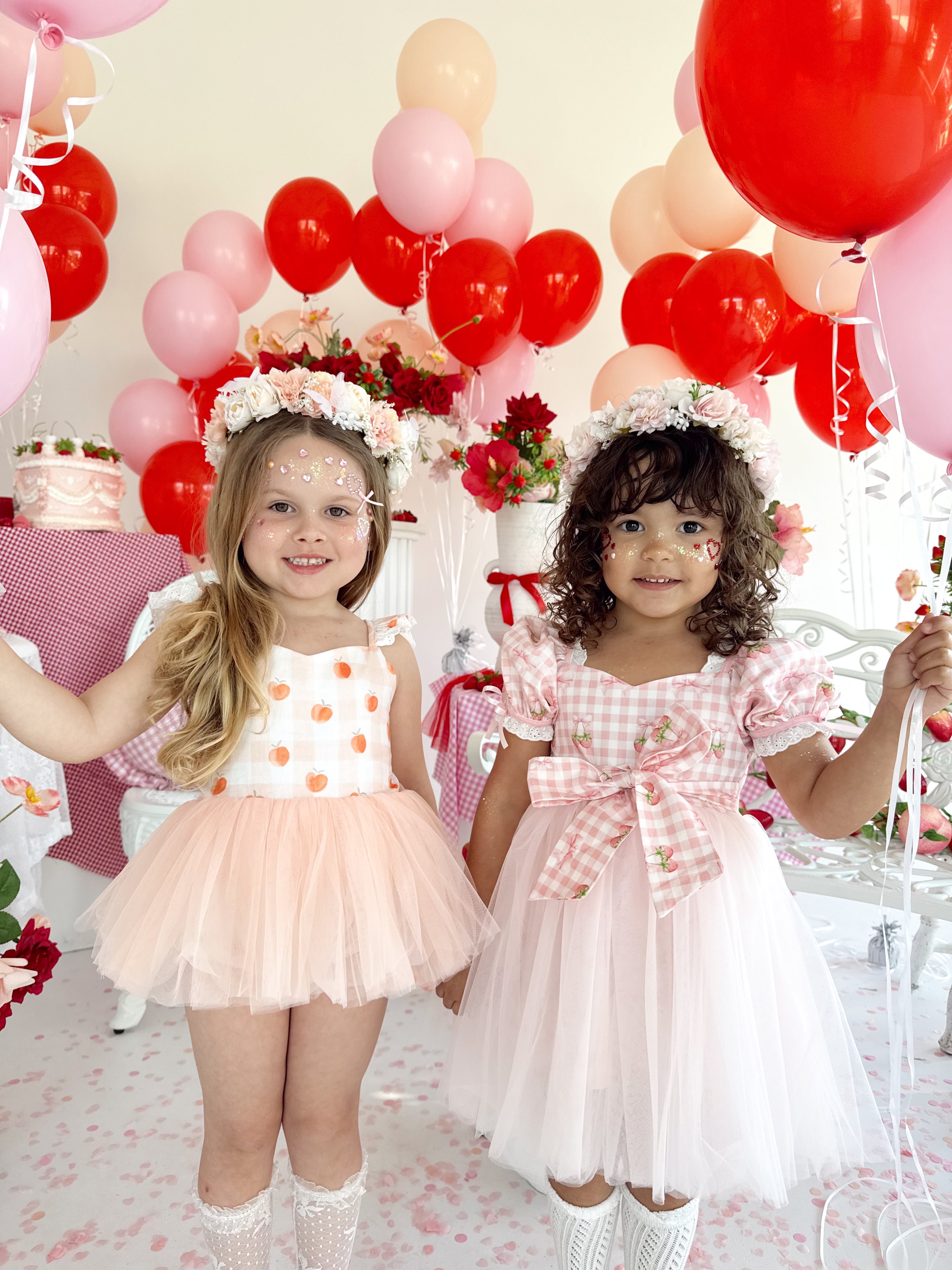 Say hello to the sweetest celebration yet… The Berry Birthday Collection is a sweet blend of classic gingham and fruity hues, made for your little one’s most picture-perfect moments. Featuring three adorable dresses and three matching baby rompers in Cherry Red, Strawberry Pink, and Peach Sorbet, each piece is designed to delight. Whether it’s a berry first birthday, picnic, or special occasion, the matching accessories and adorable gingham bows add the perfect finishing touch!
